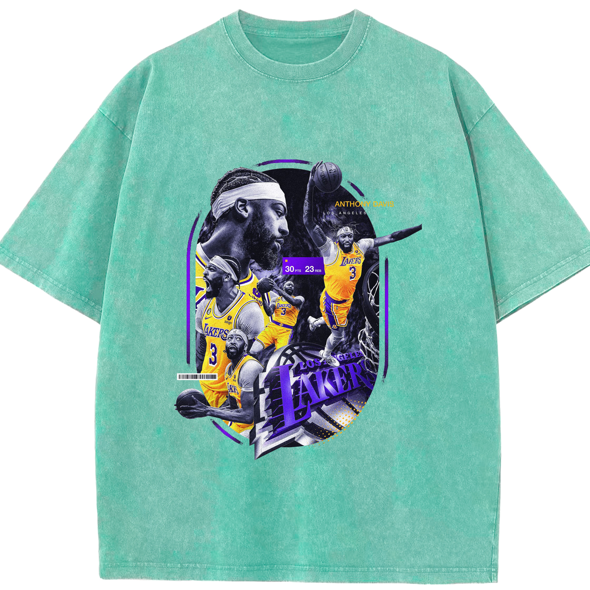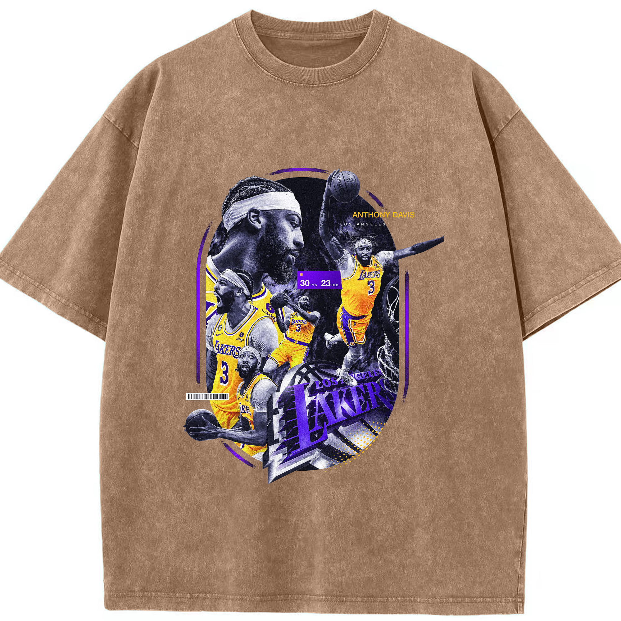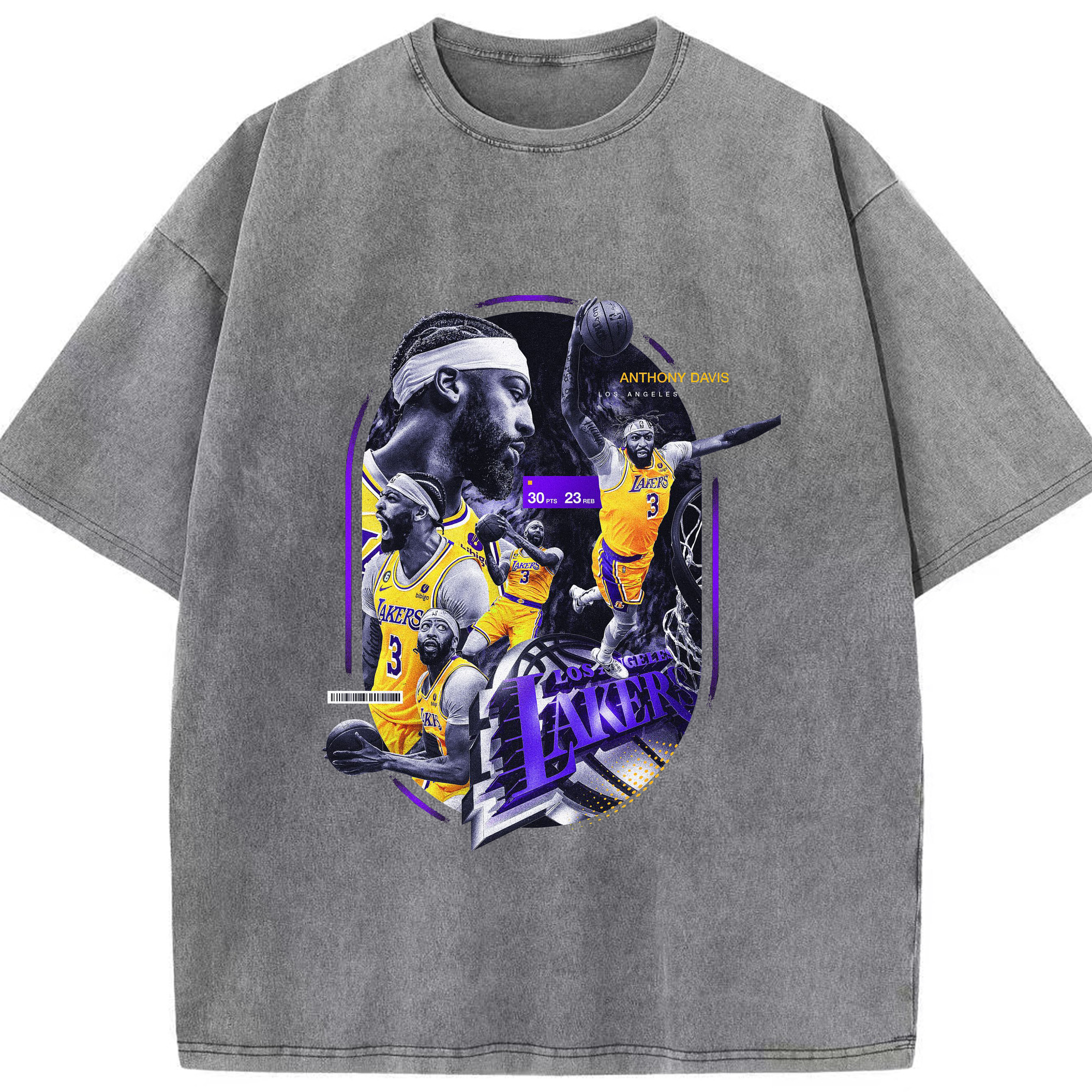 Anthony Davis 30 Points 23 Rebounds Lakers Shirt - Washed Vintage Look 230g Cotton Oversized T-Shirt With Front Heat Transfer Print – Soft, Lightweight, Stylish Fit – Comfortable Casual Wear For Sports & Everyday Use
