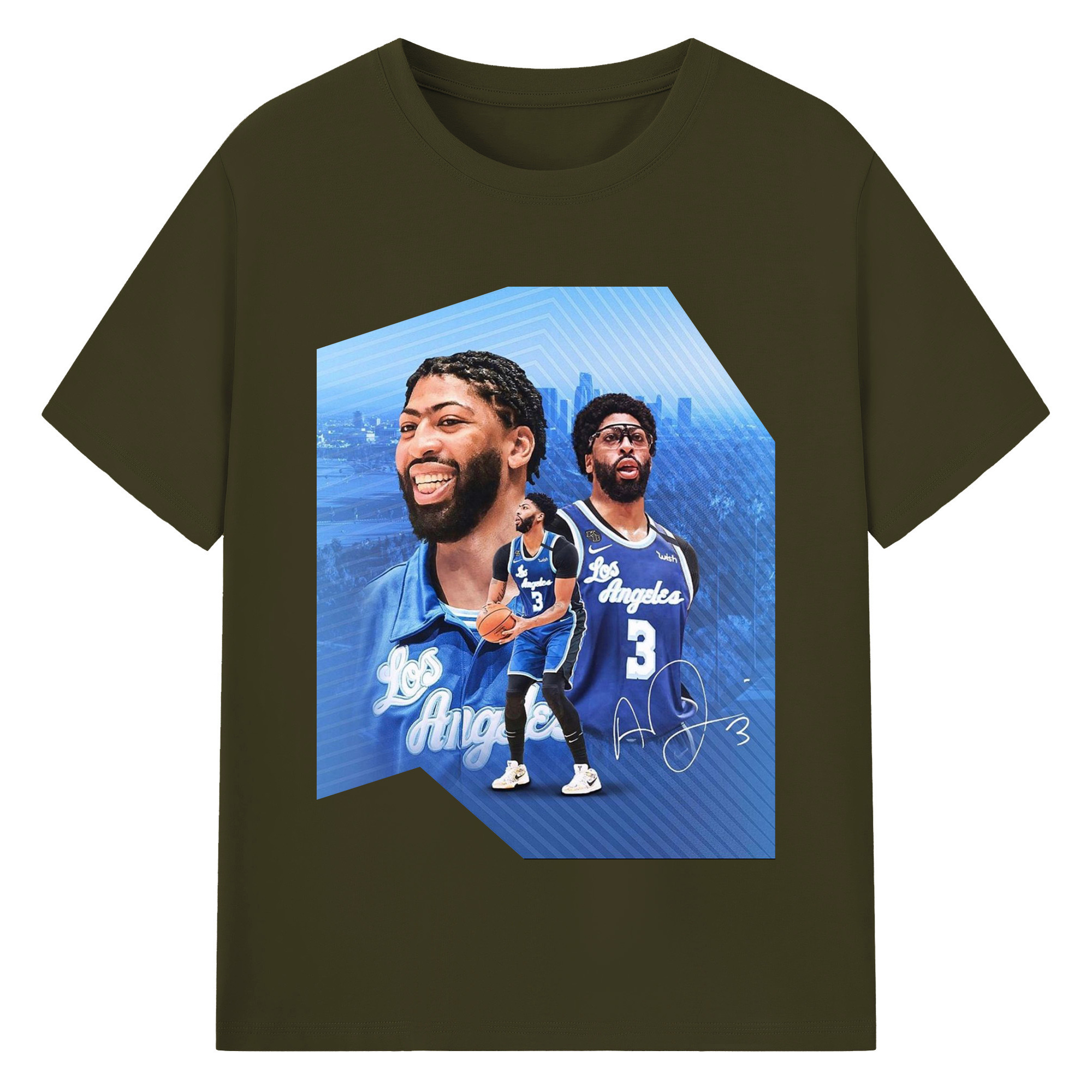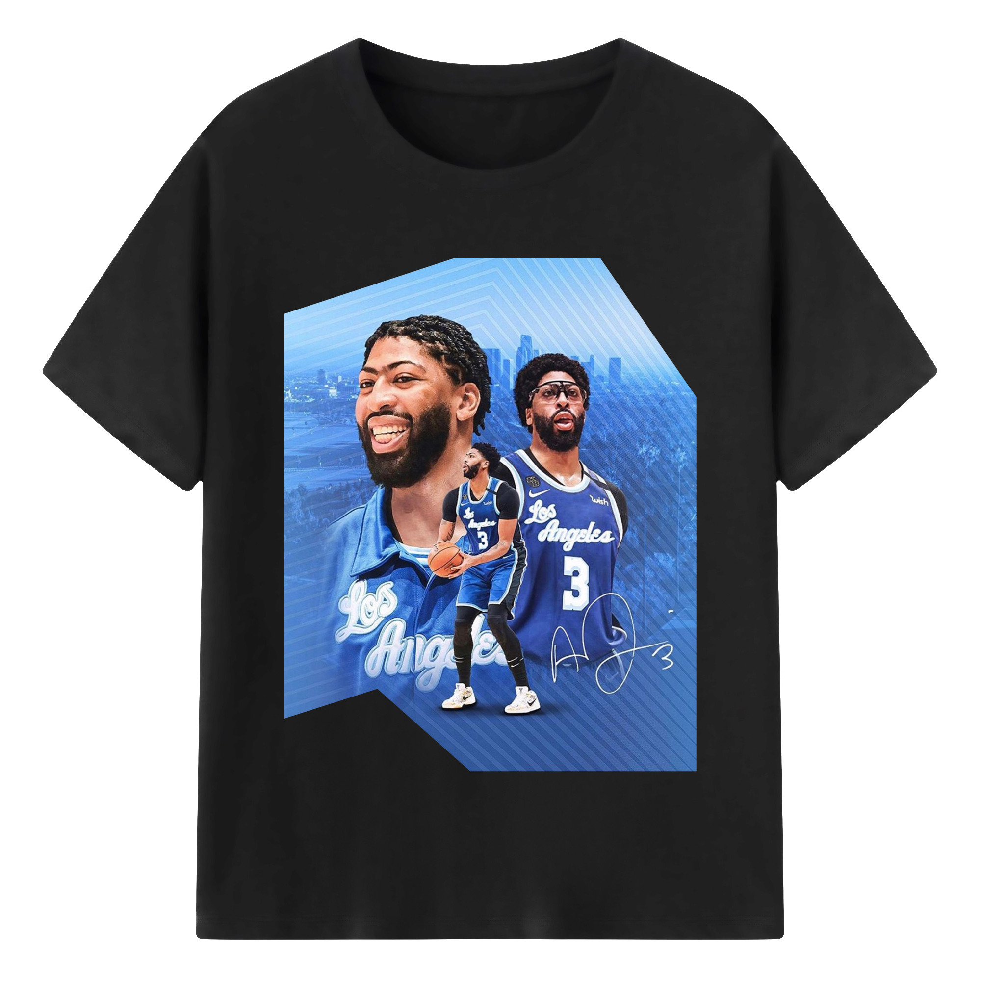 Anthony Davis Los Angeles Blue Design Basketball Shirt - 180g Cotton T-Shirt With Front Heat Transfer Print – Soft, Lightweight, Fitted Design – Comfortable Casual Wear For Sports & Everyday Use