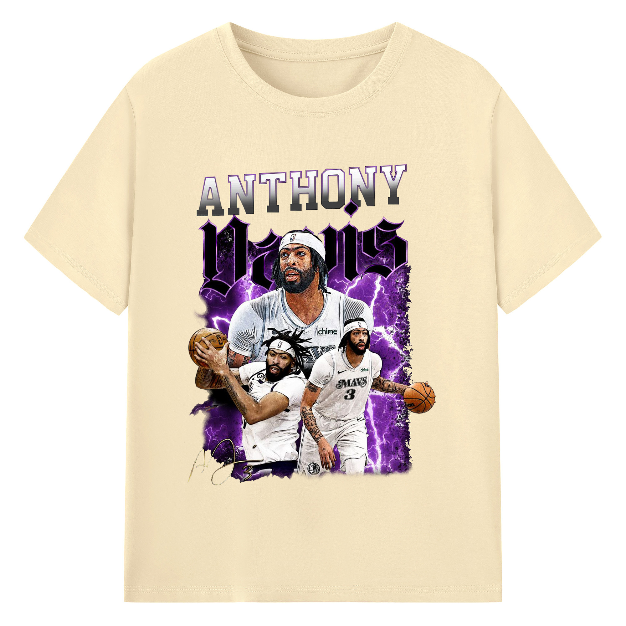 Anthony Davis Vintage Mavs Purple Flash Shirt - 180g Cotton T-Shirt With Front Heat Transfer Print – Soft, Lightweight, Fitted Design – Comfortable Casual Wear For Sports & Everyday Use