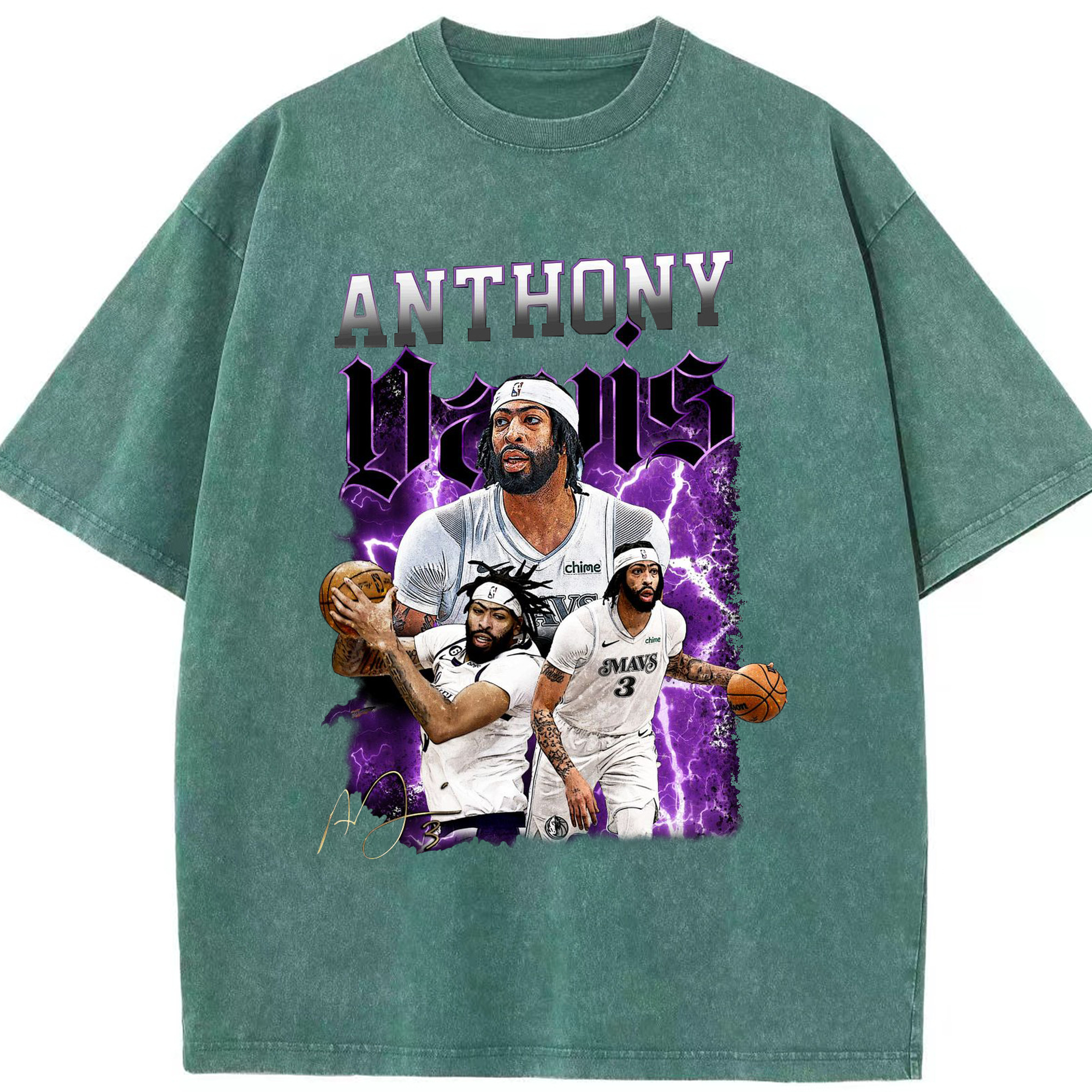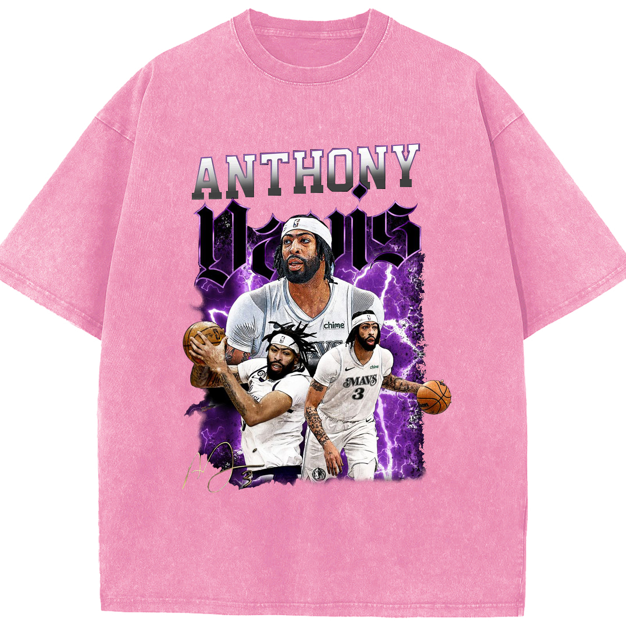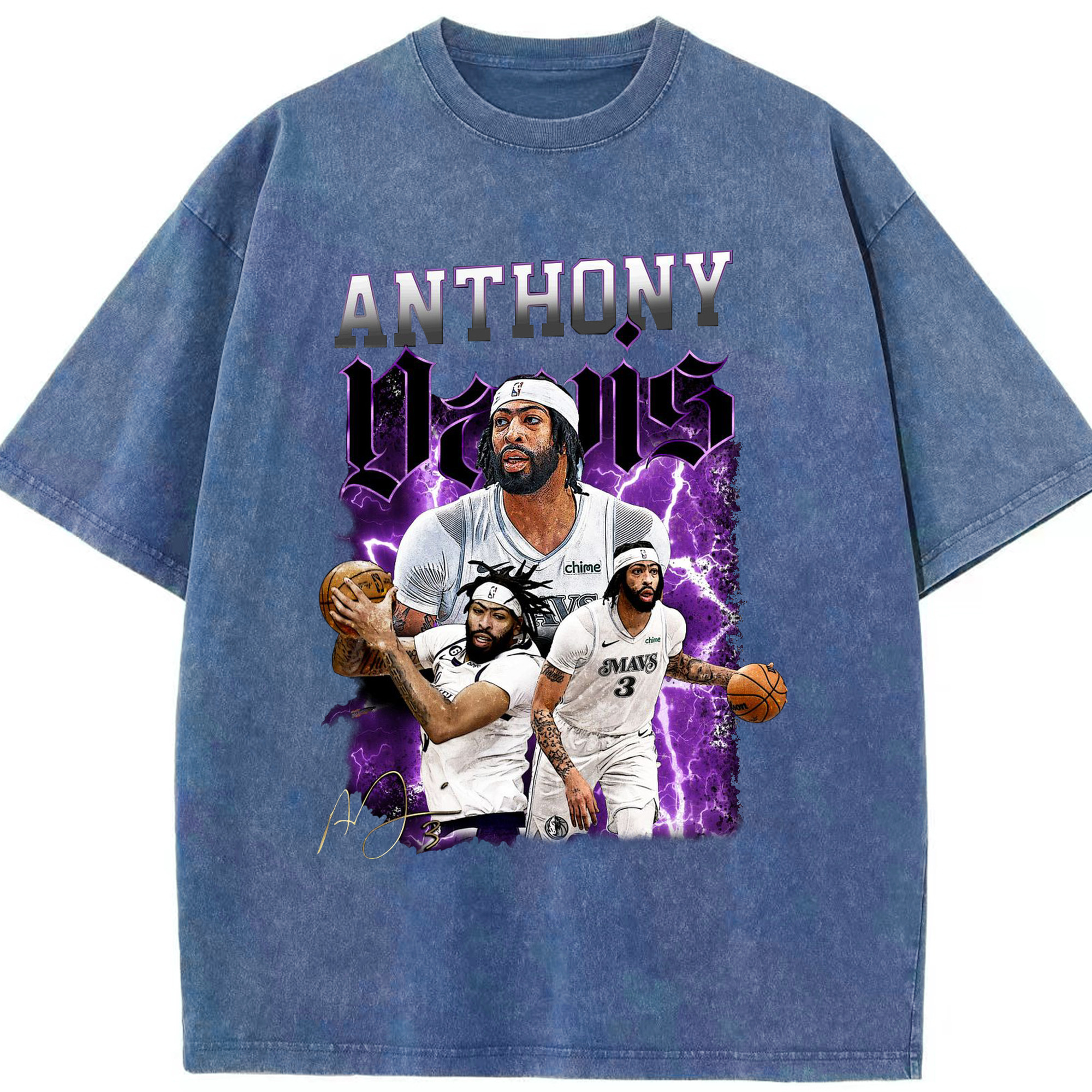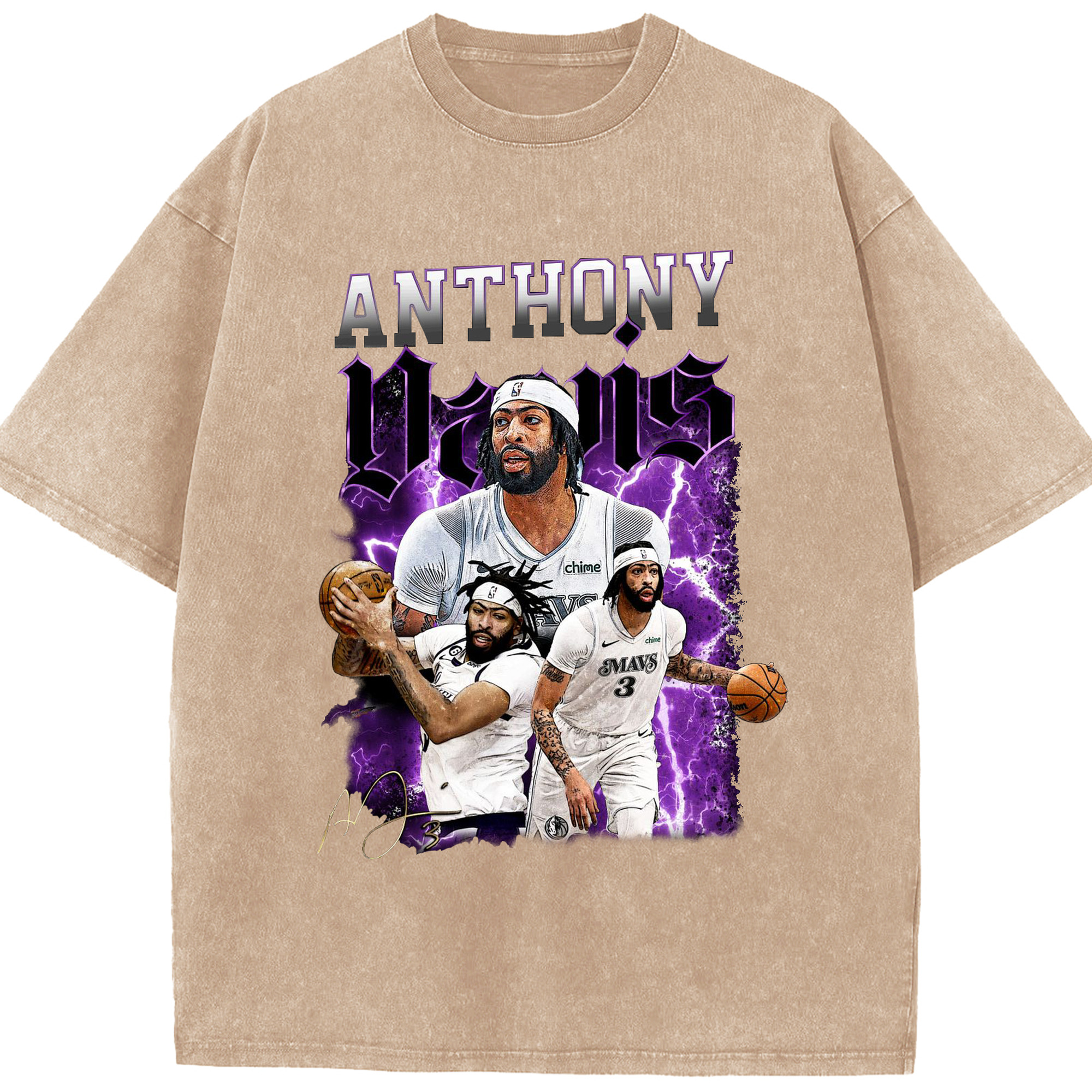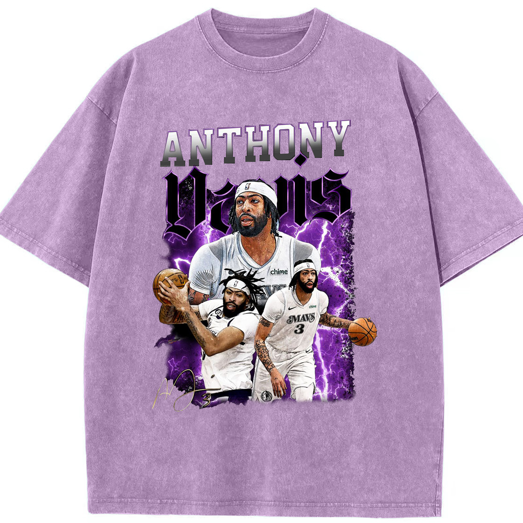 Anthony Davis Vintage Mavs Purple Flash Shirt - Washed Vintage Look 230g Cotton Oversized T-Shirt With Front Heat Transfer Print – Soft, Lightweight, Stylish Fit – Comfortable Casual Wear For Sports & Everyday Use