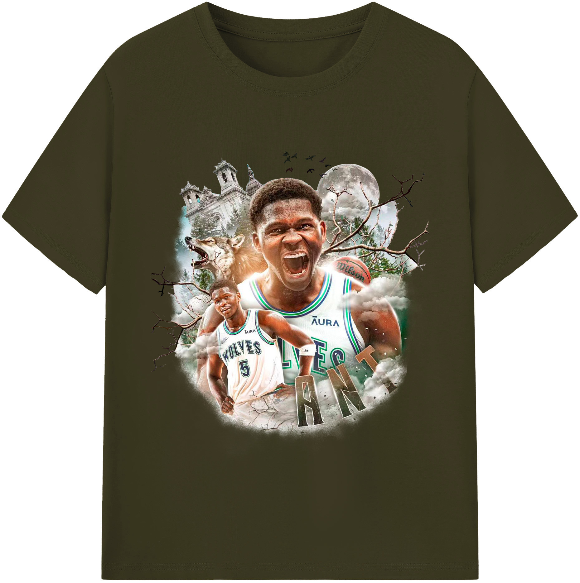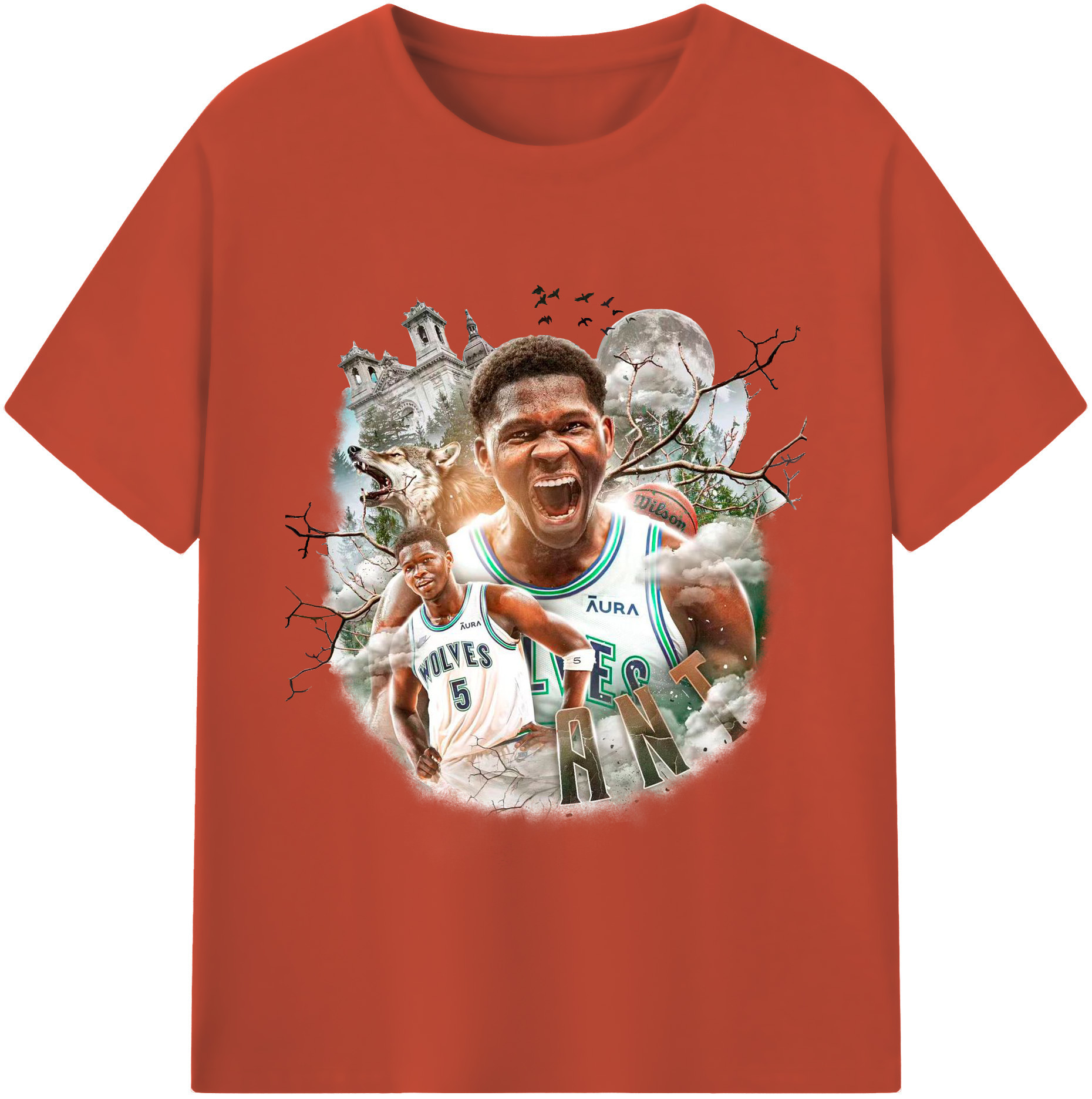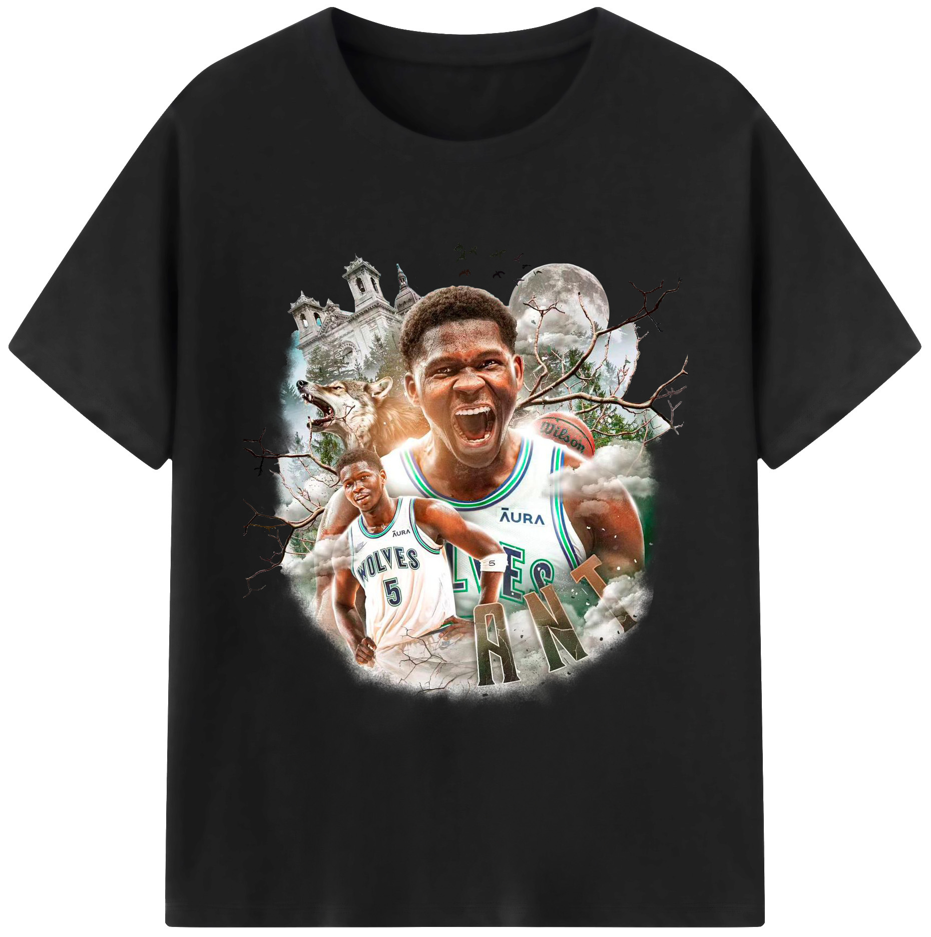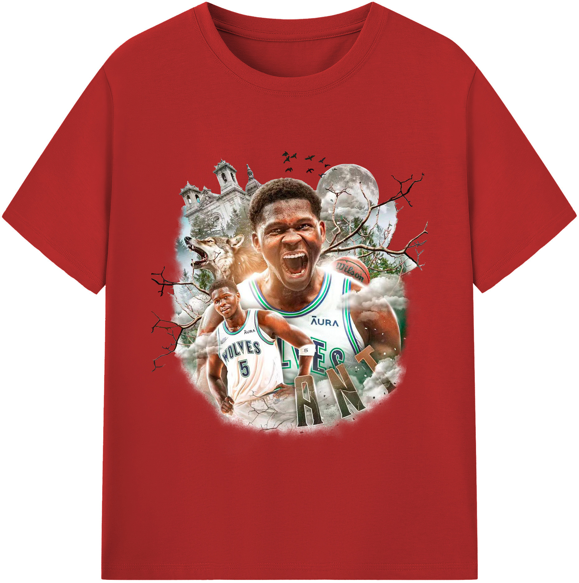 Anthony Edwards ‘Ant-Man’ T-Shirt – Wolves Moon Howl Dark Aura Streetwear - 180g Cotton T-Shirt With Front Heat Transfer Print – Soft, Lightweight, Fitted Design – Comfortable Casual Wear For Sports & Everyday Use