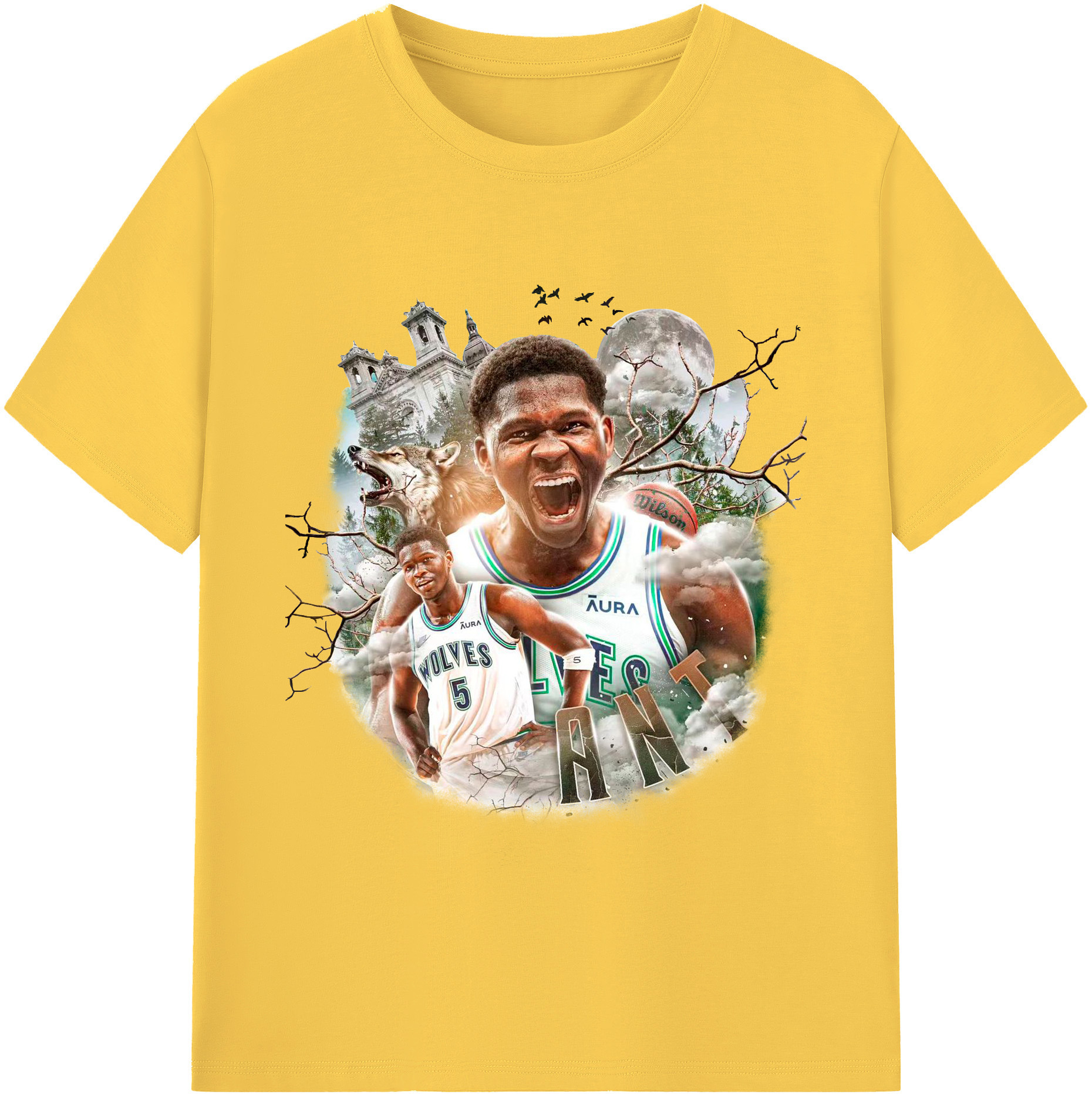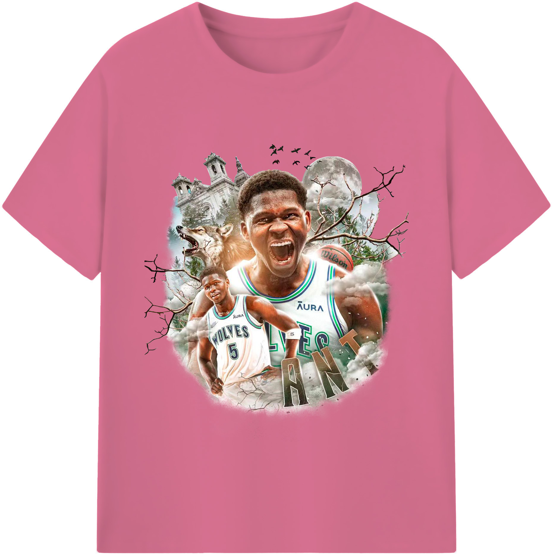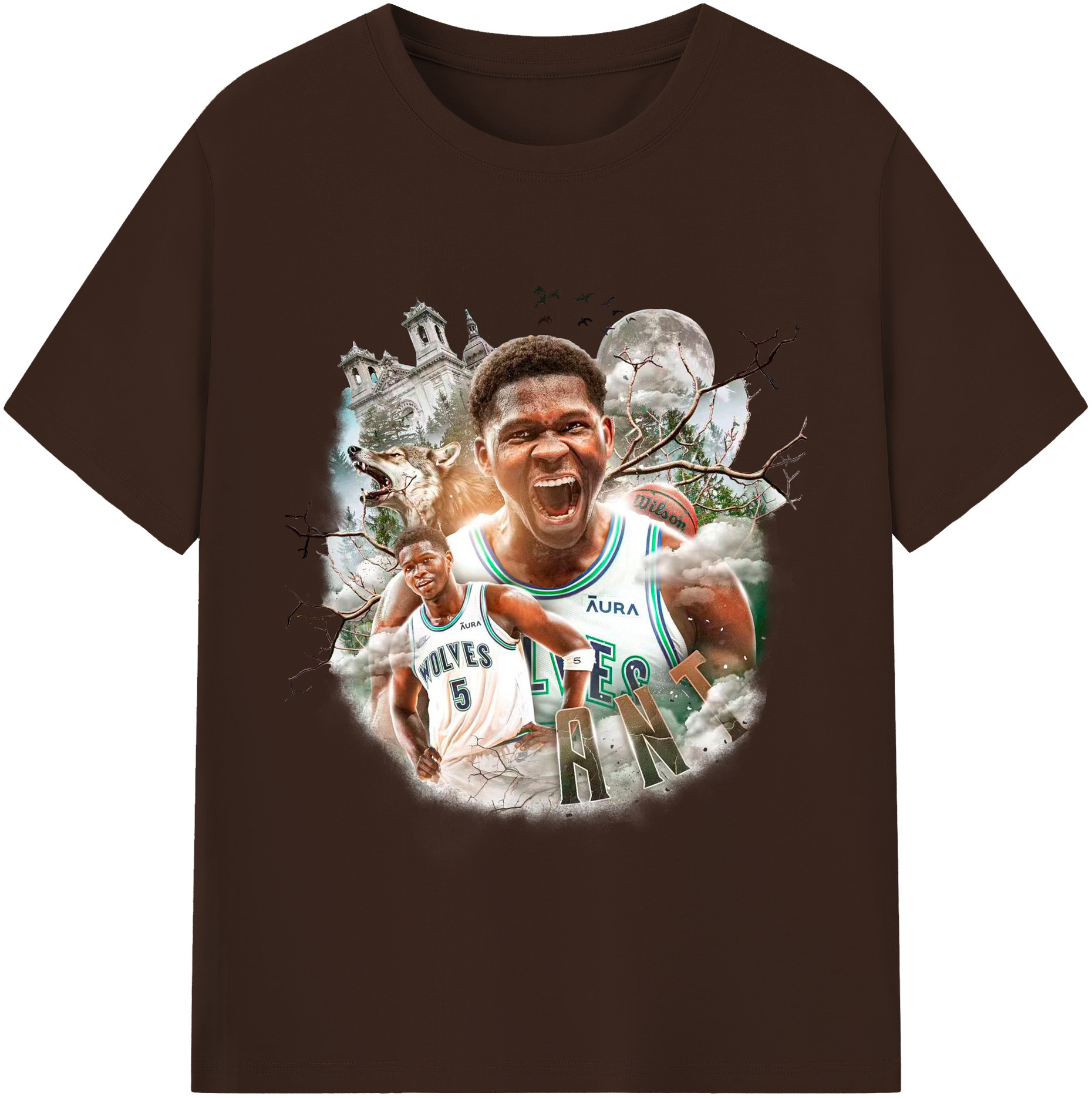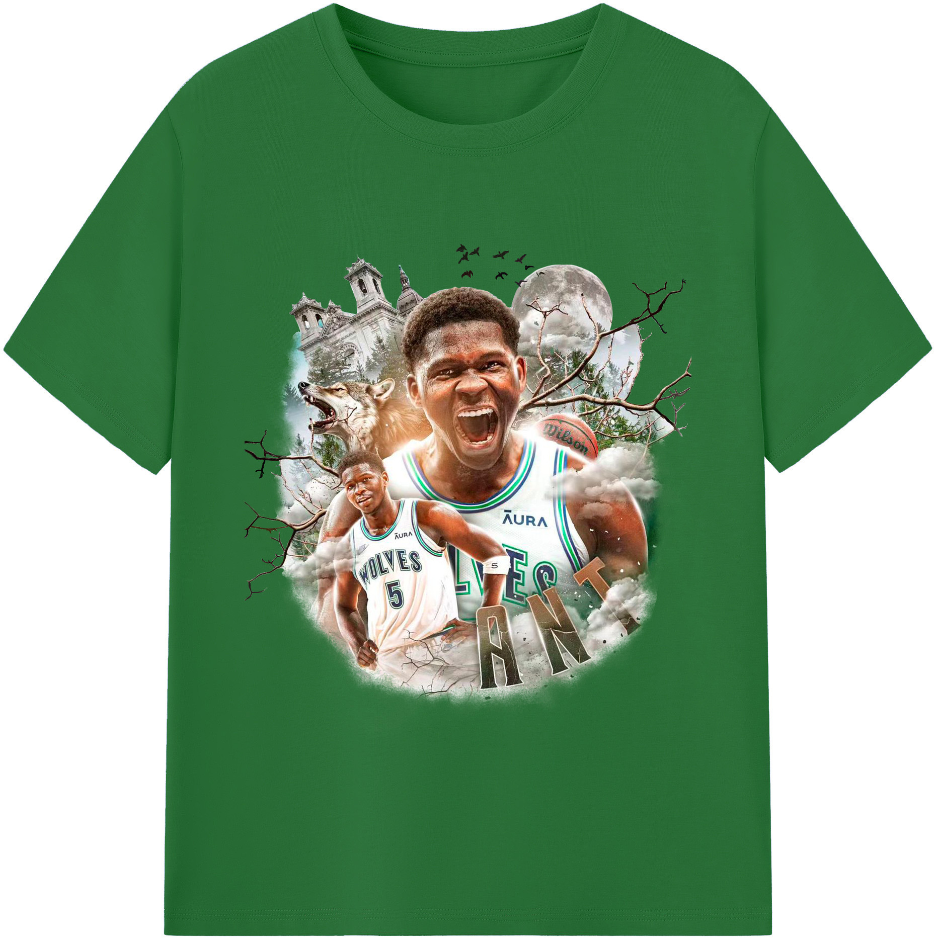 Anthony Edwards ‘Ant-Man’ T-Shirt – Wolves Moon Howl Dark Aura Streetwear - 180g Cotton T-Shirt With Front Heat Transfer Print – Soft, Lightweight, Fitted Design – Comfortable Casual Wear For Sports & Everyday Use