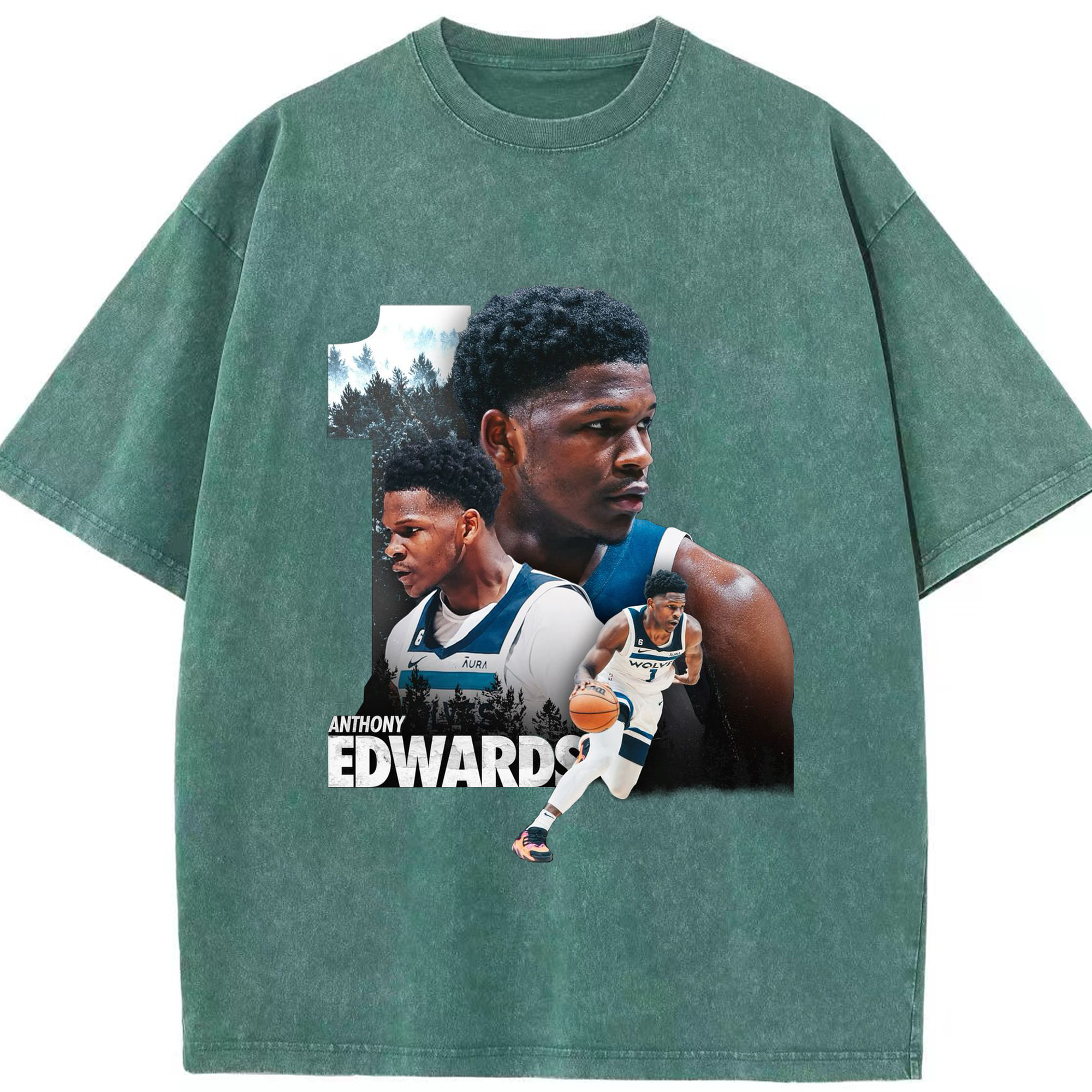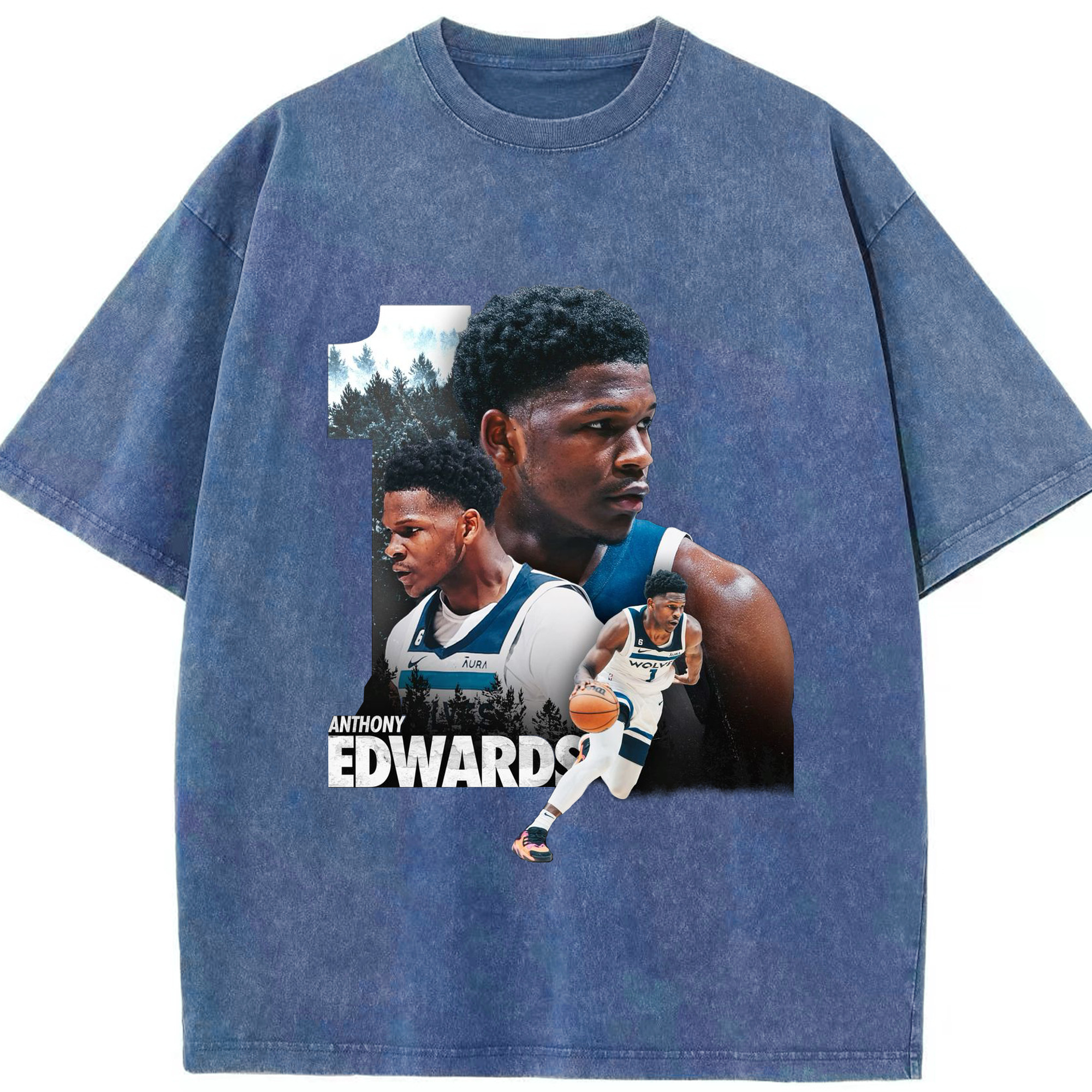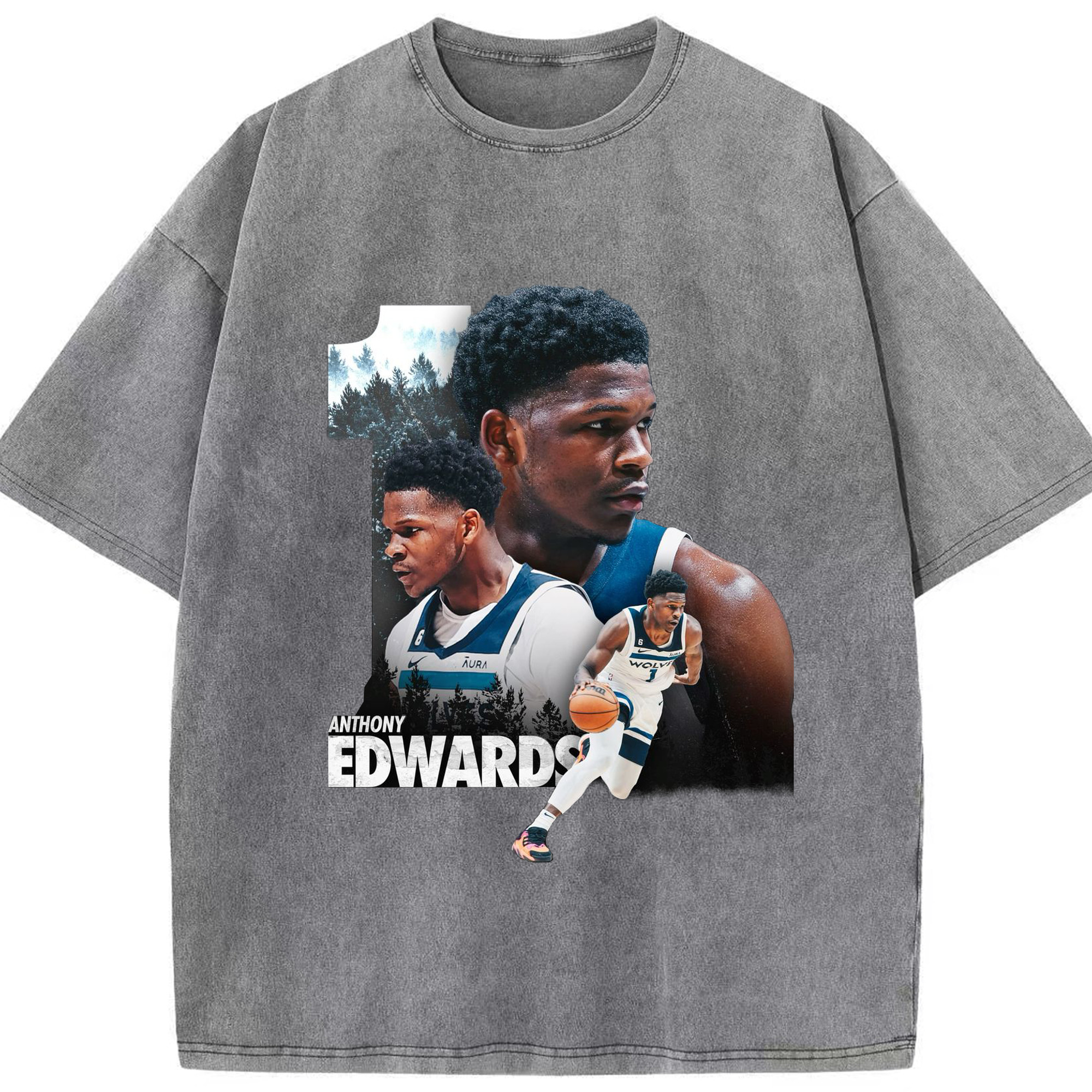 Anthony Edwards Minnesota Timberwolves #1 Art Shirt - Washed Vintage Look 230g Cotton Oversized T-Shirt With Front Heat Transfer Print – Soft, Lightweight, Stylish Fit – Comfortable Casual Wear For Sports & Everyday Use