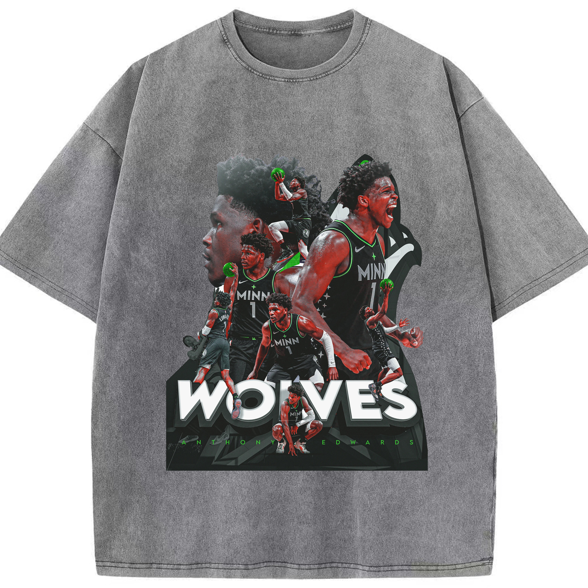 Anthony Edwards Minnesota Timberwolves Basketball Highlights Shirt - Washed Vintage Look 230g Cotton Oversized T-Shirt With Front Heat Transfer Print – Soft, Lightweight, Stylish Fit – Comfortable Casual Wear For Sports & Everyday Use