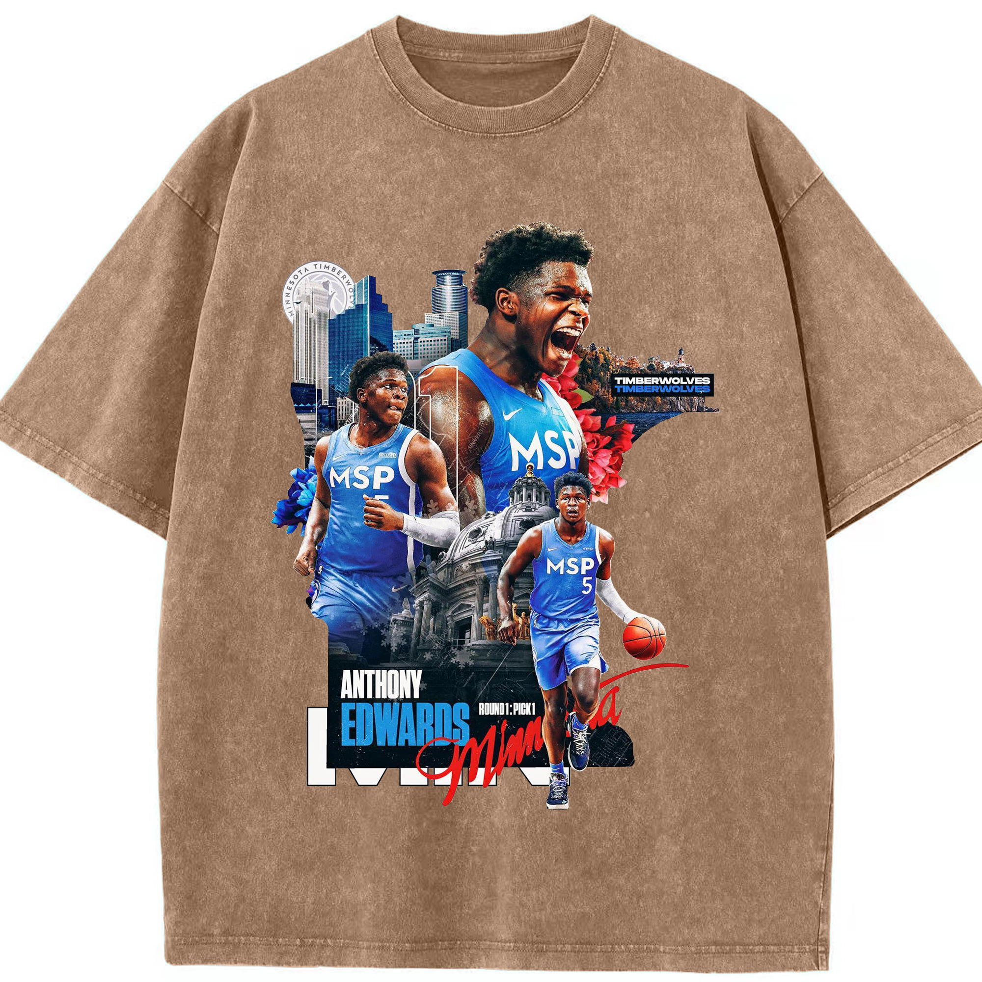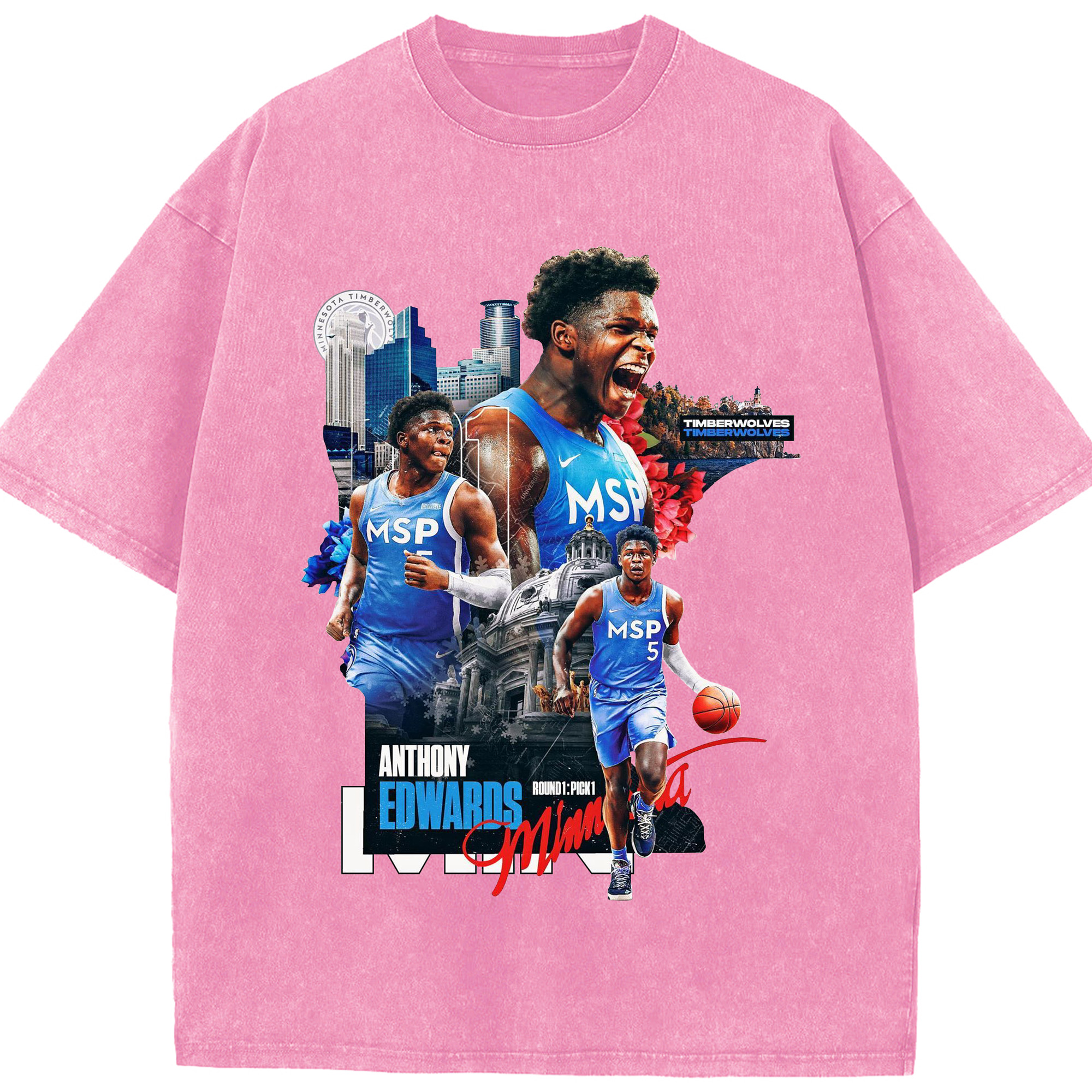 Anthony Edwards Minnesota Timberwolves City Tribute Shirt - Washed Vintage Look 230g Cotton Oversized T-Shirt With Front Heat Transfer Print – Soft, Lightweight, Stylish Fit – Comfortable Casual Wear For Sports & Everyday Use