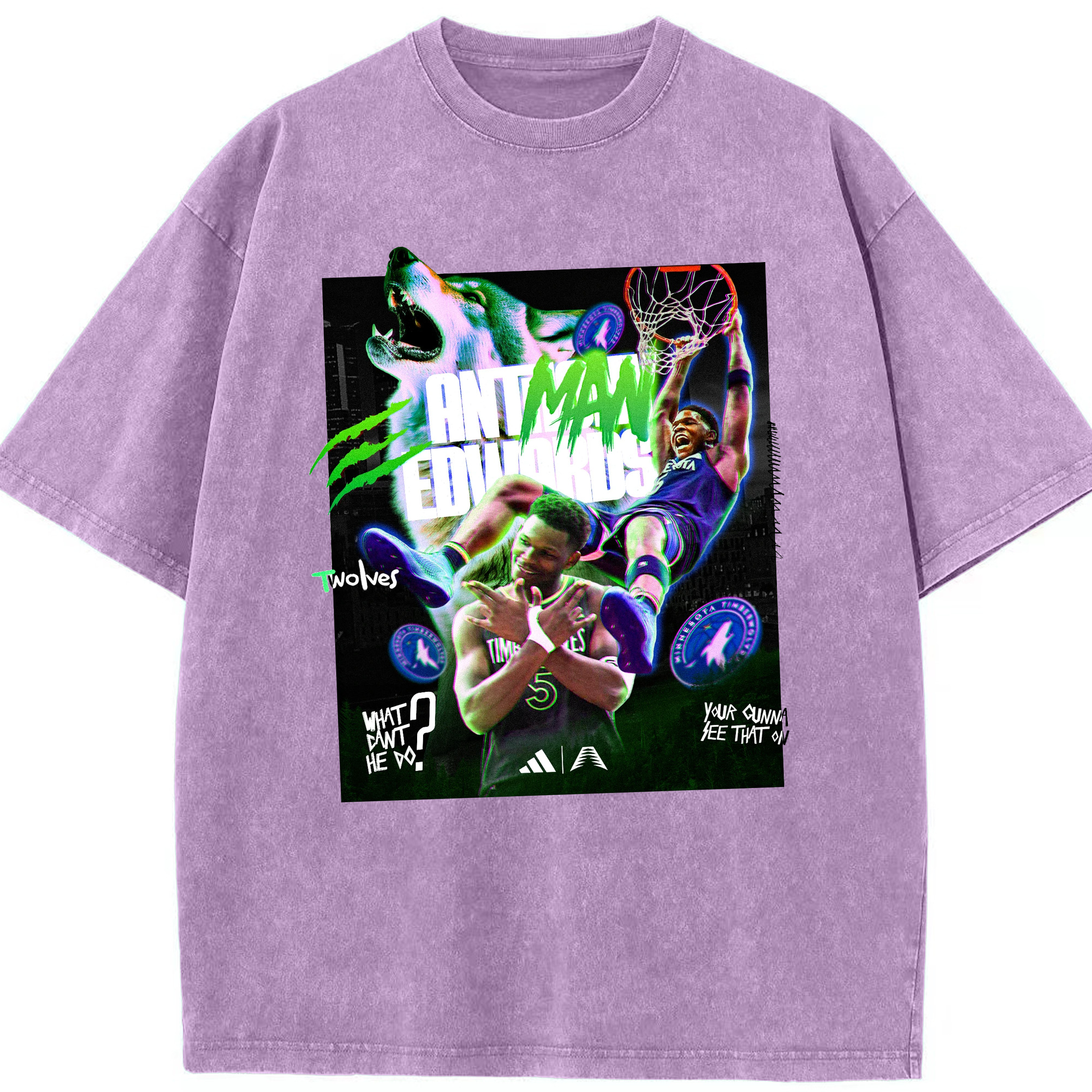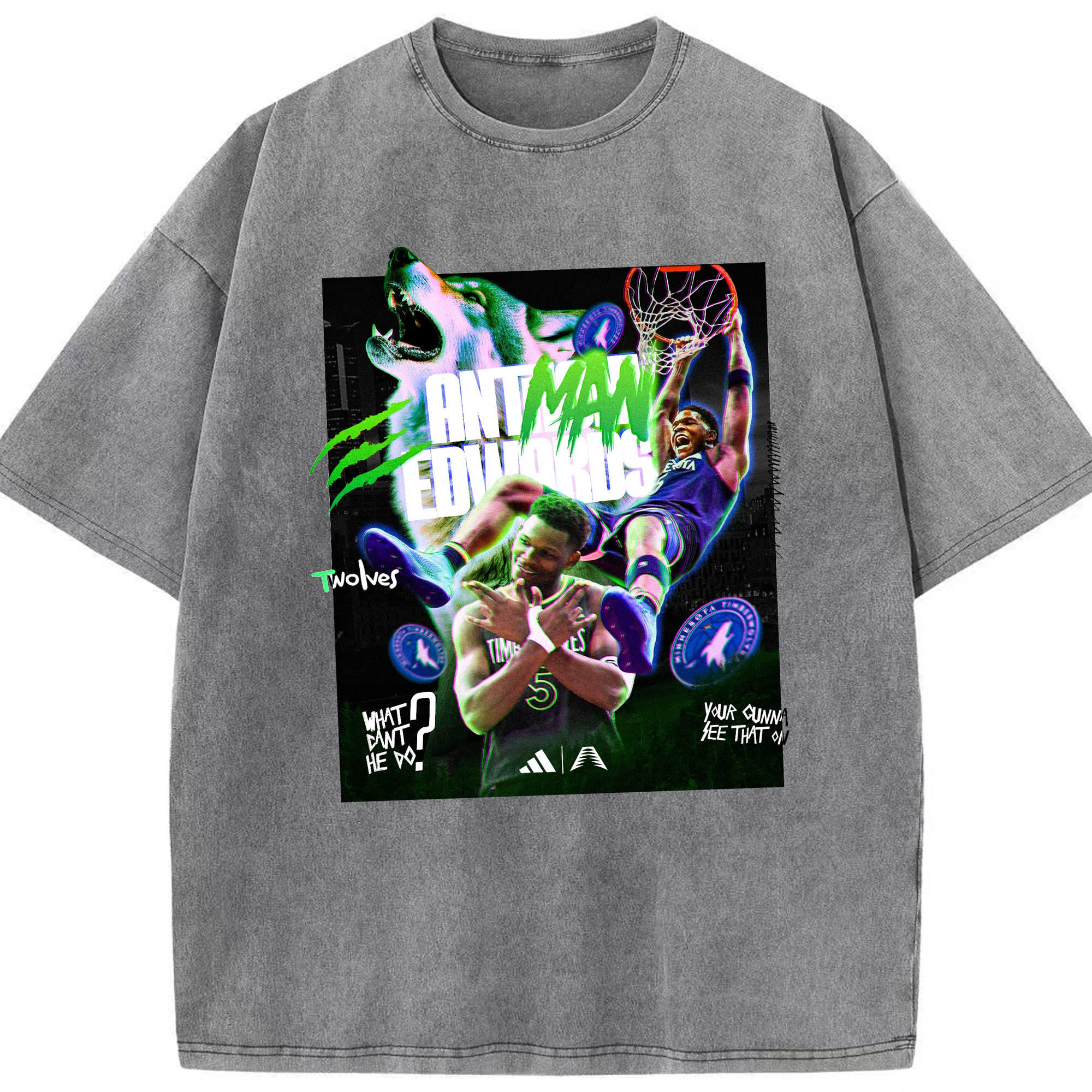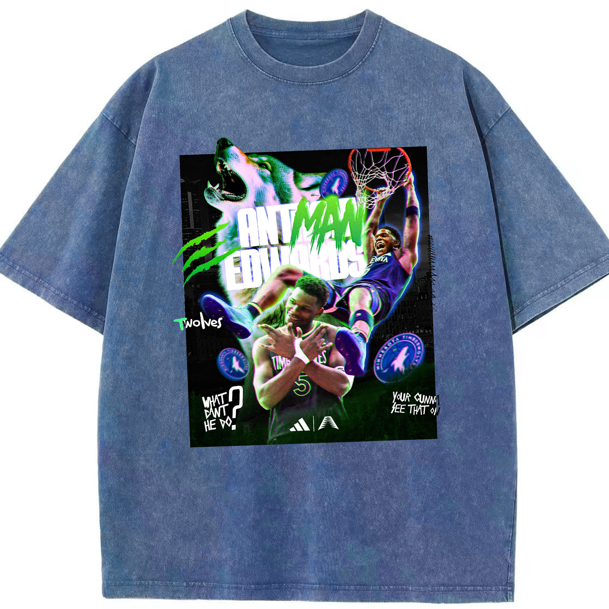 Anthony Edwards Timberwolves holographic style Shirt - Washed Vintage Look 230g Cotton Oversized T-Shirt With Front Heat Transfer Print – Soft, Lightweight, Stylish Fit – Comfortable Casual Wear For Sports & Everyday Use