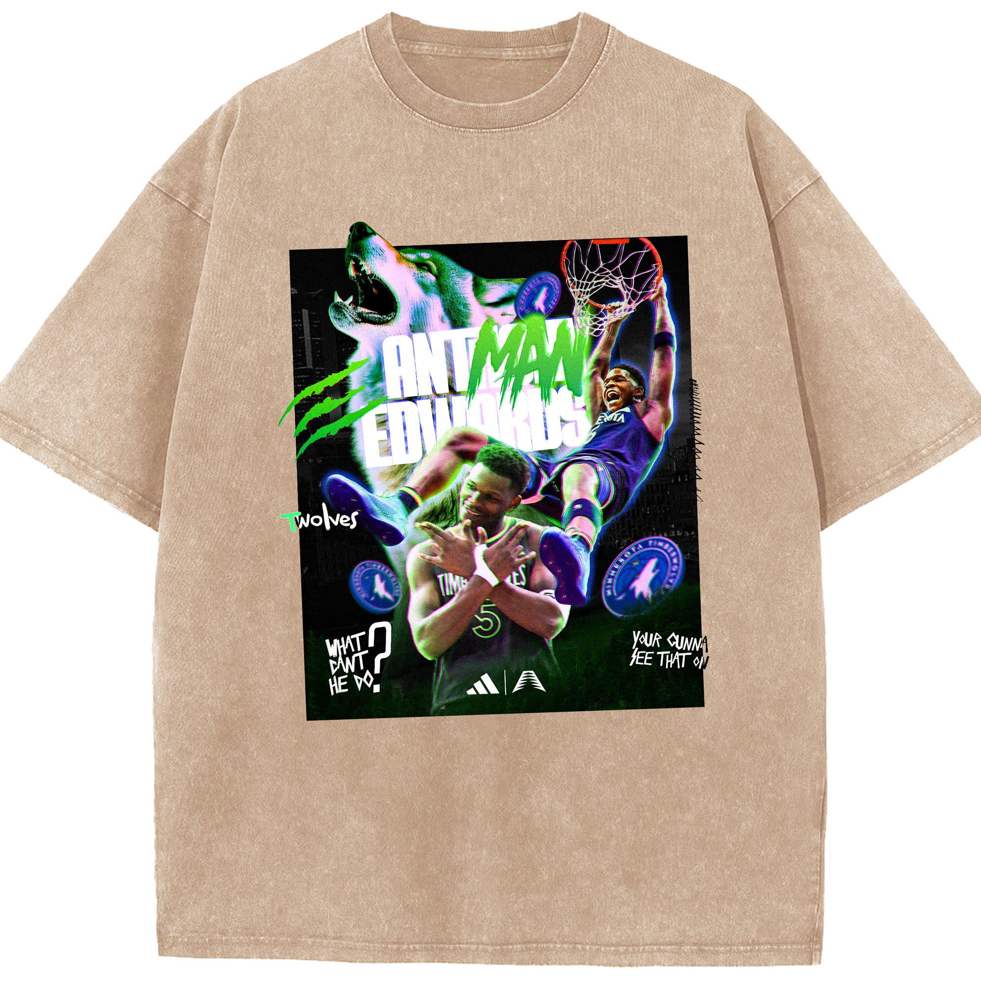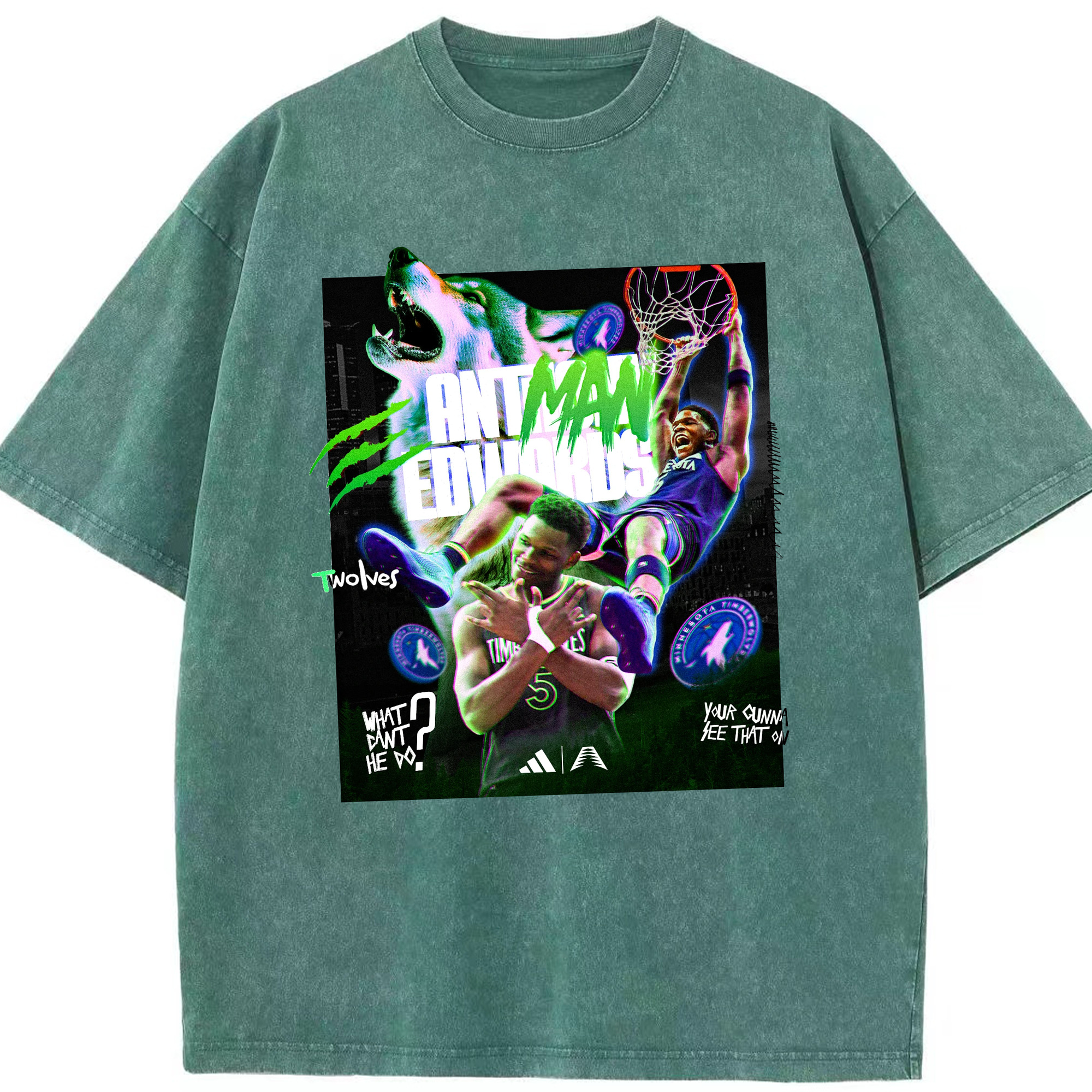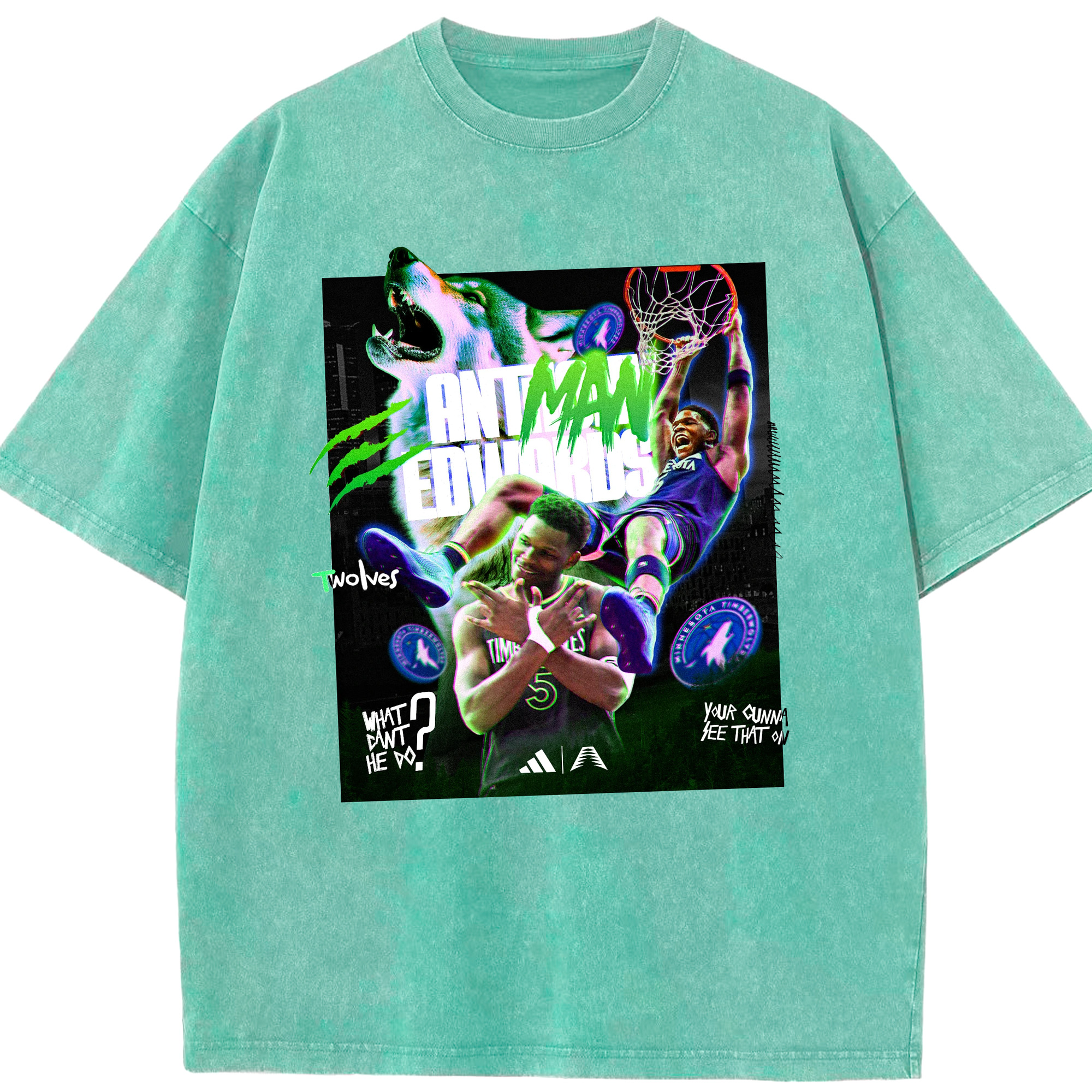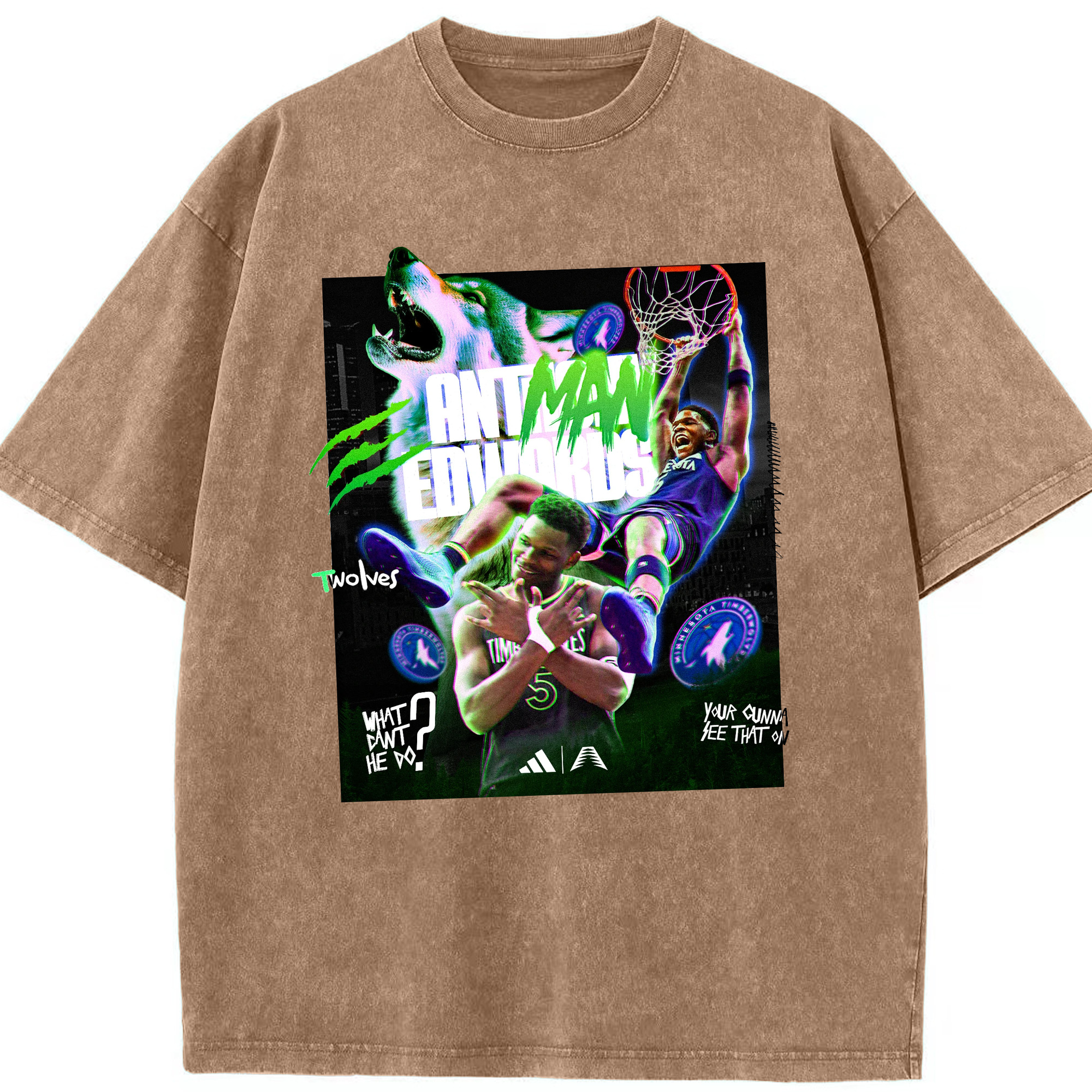 Anthony Edwards Timberwolves holographic style Shirt - Washed Vintage Look 230g Cotton Oversized T-Shirt With Front Heat Transfer Print – Soft, Lightweight, Stylish Fit – Comfortable Casual Wear For Sports & Everyday Use