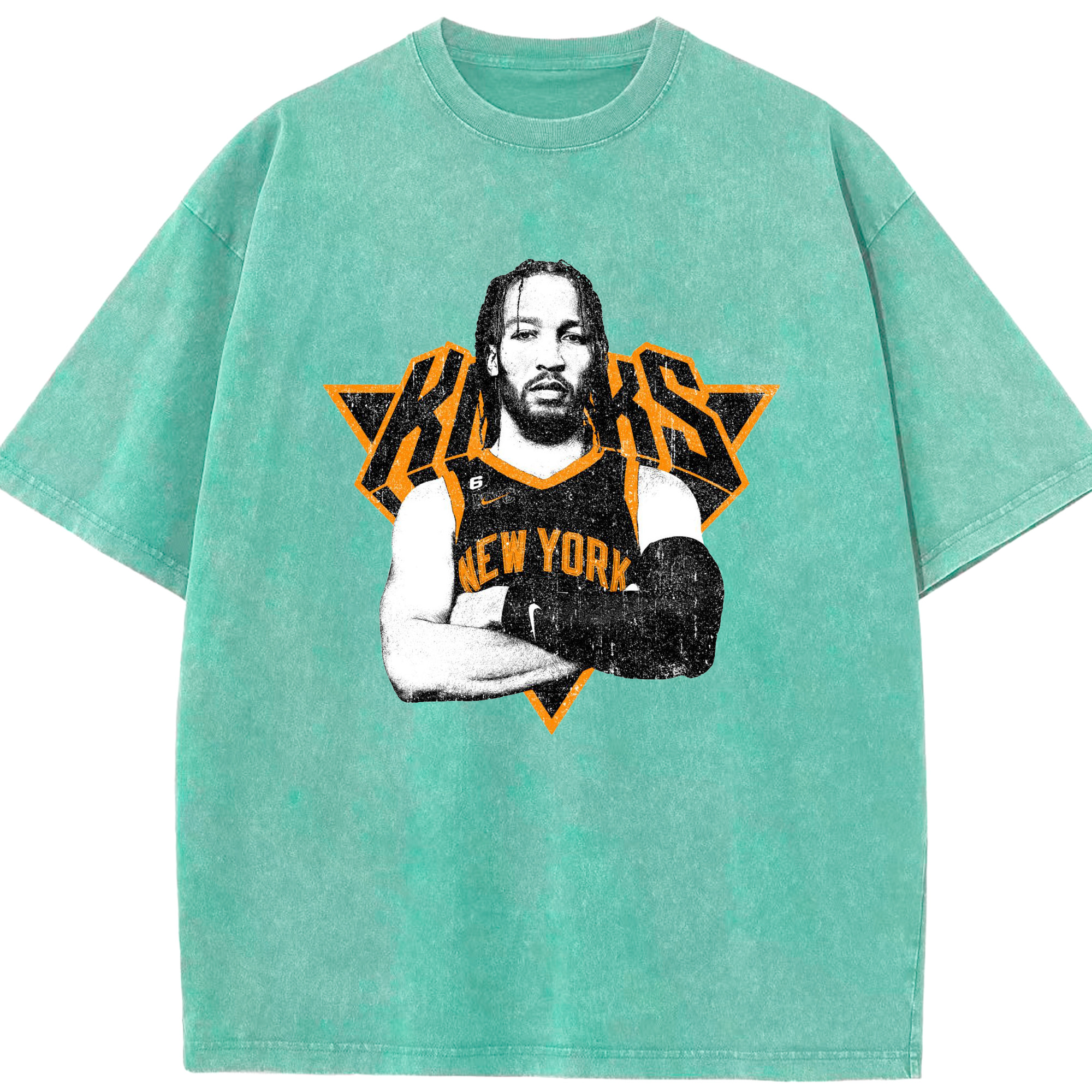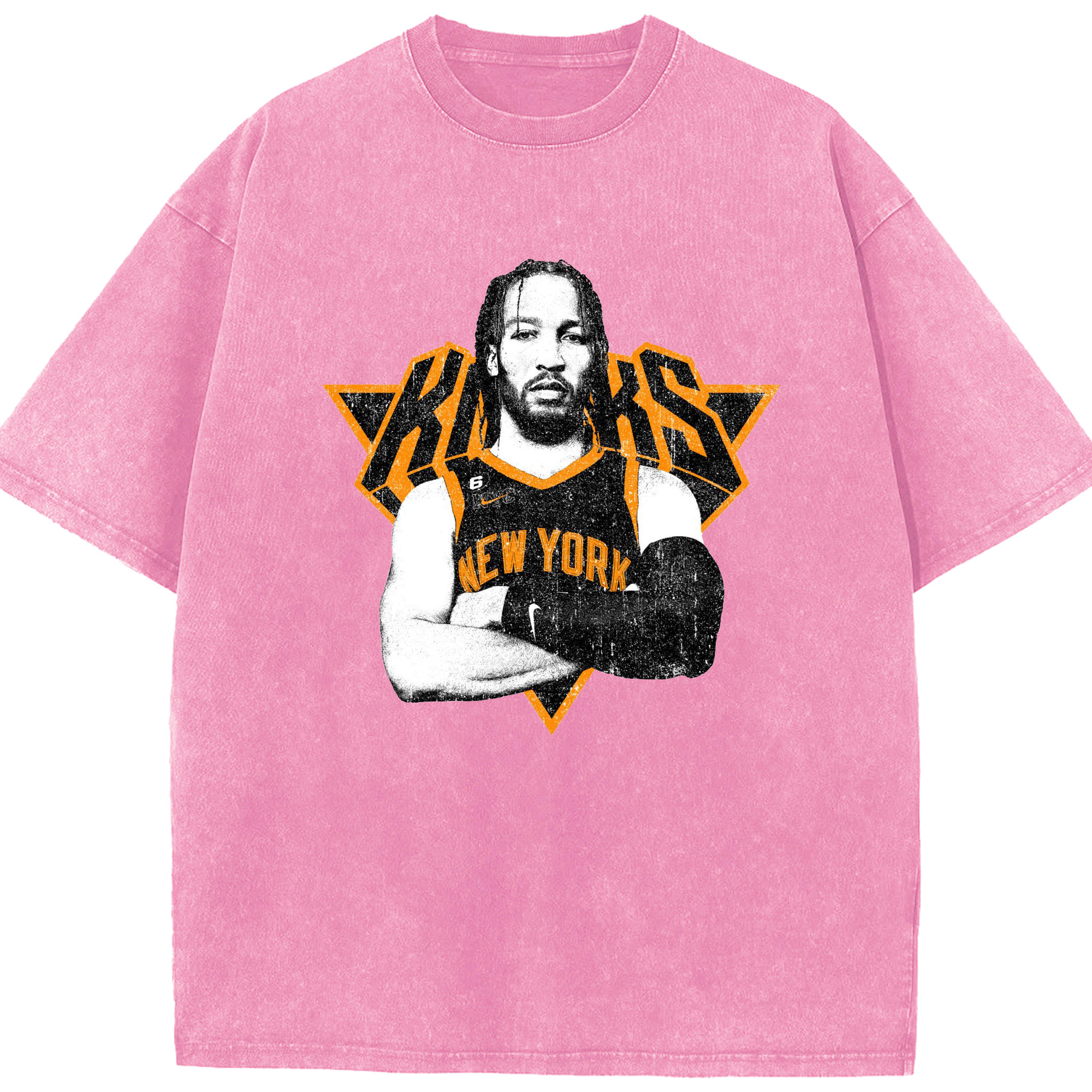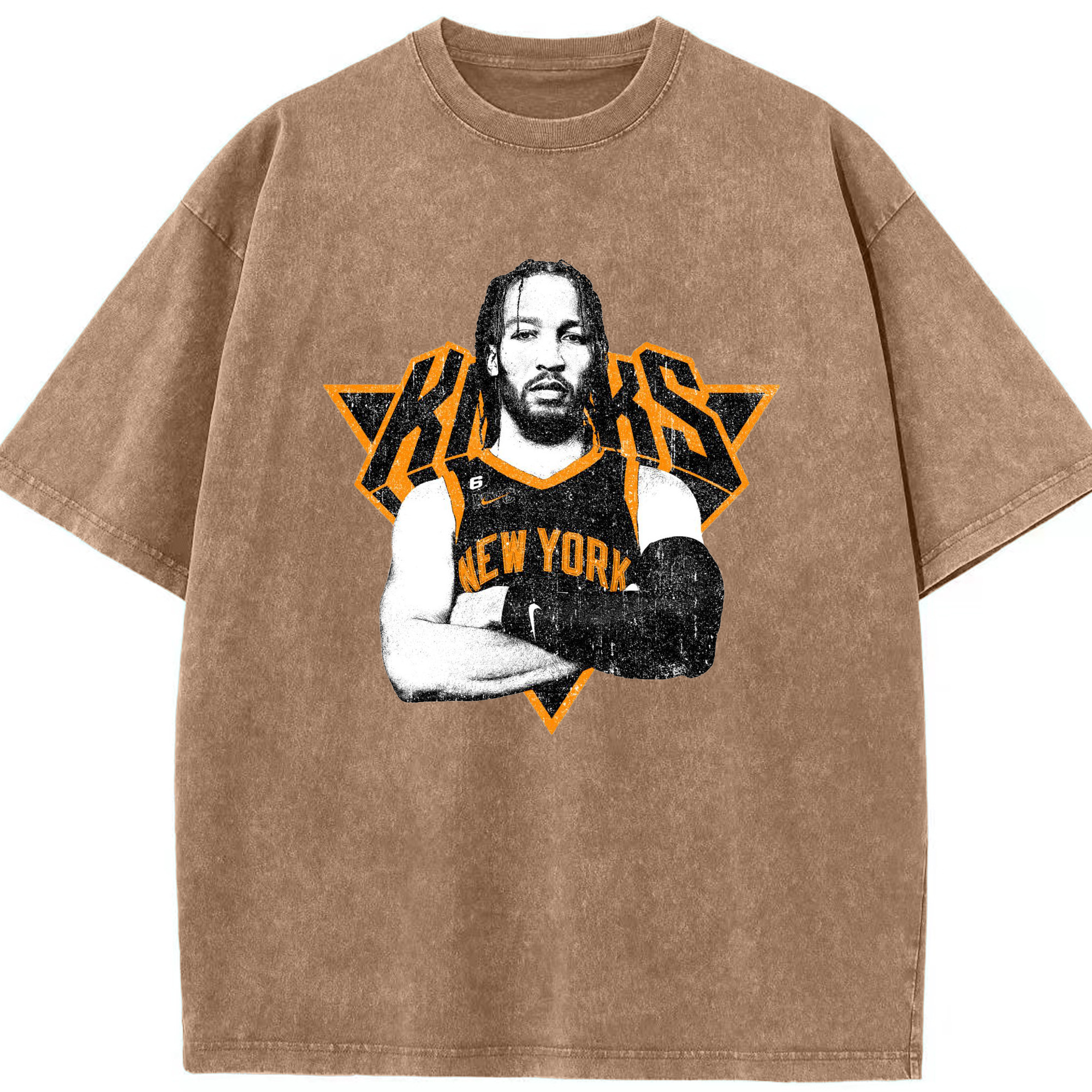 Brunson x NYC Hardcore Streetball Graphic Shirt - Washed Vintage Look 230g Cotton Oversized T-Shirt With Front Heat Transfer Print – Soft, Lightweight, Stylish Fit – Comfortable Casual Wear For Sports & Everyday Use