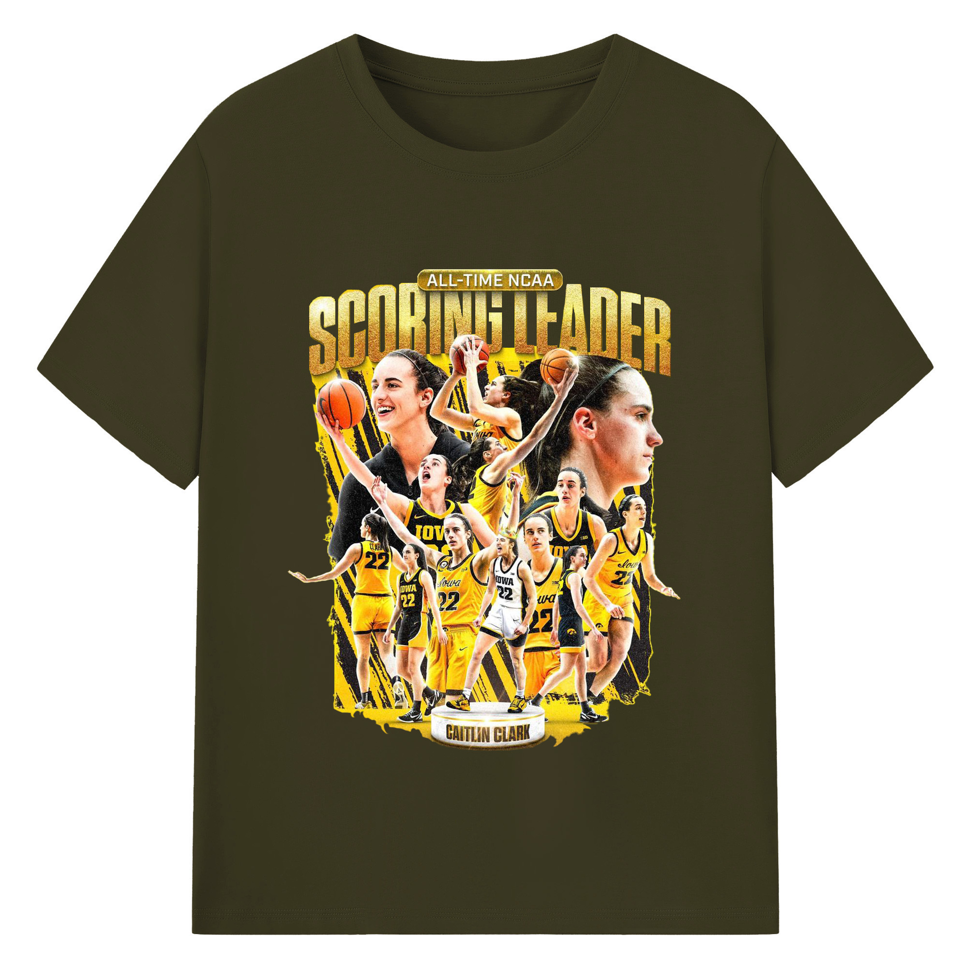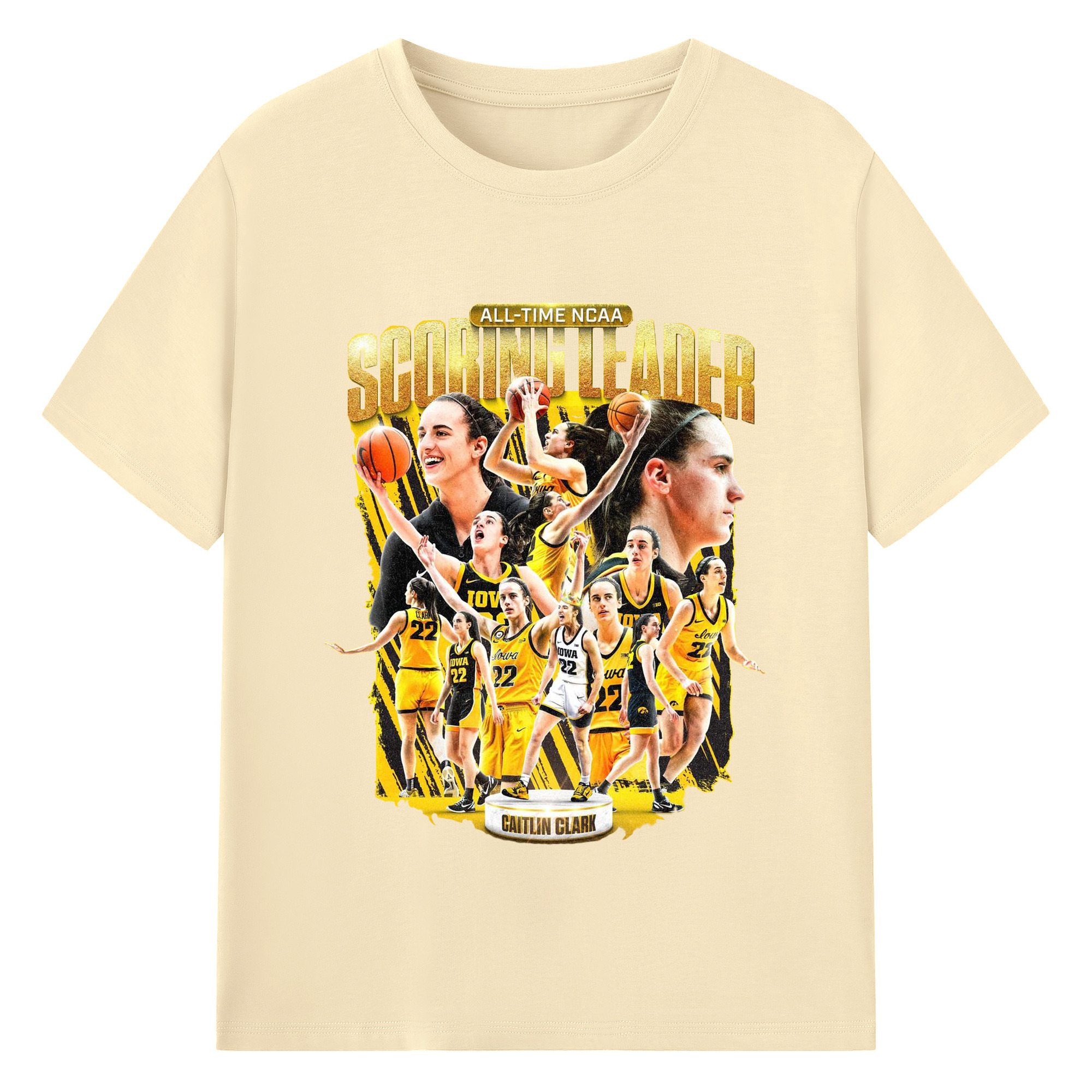 Caitlin Clark all-time ncaa - 180g Cotton T-Shirt With Front Heat Transfer Print – Soft, Lightweight, Fitted Design – Comfortable Casual Wear For Sports & Everyday Use