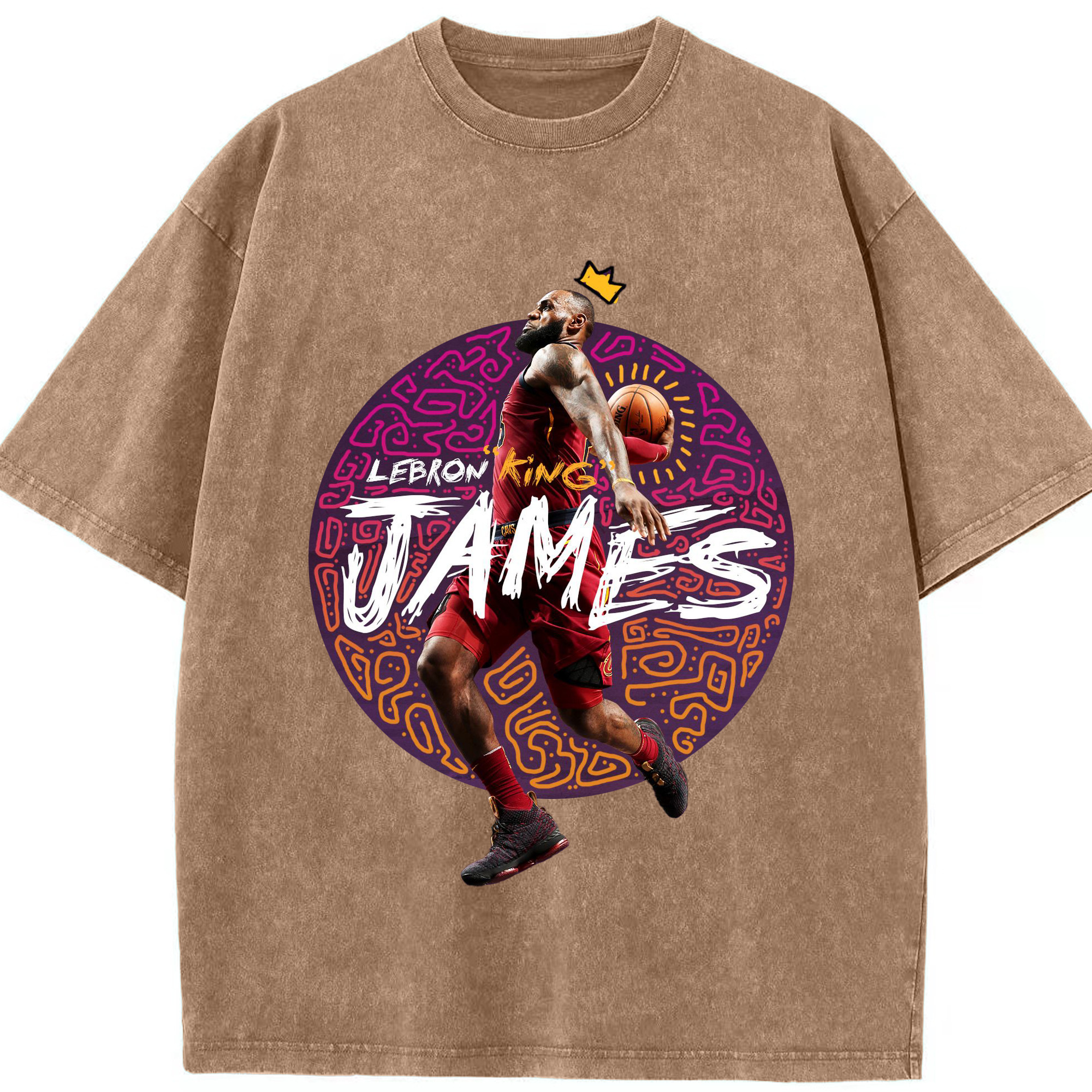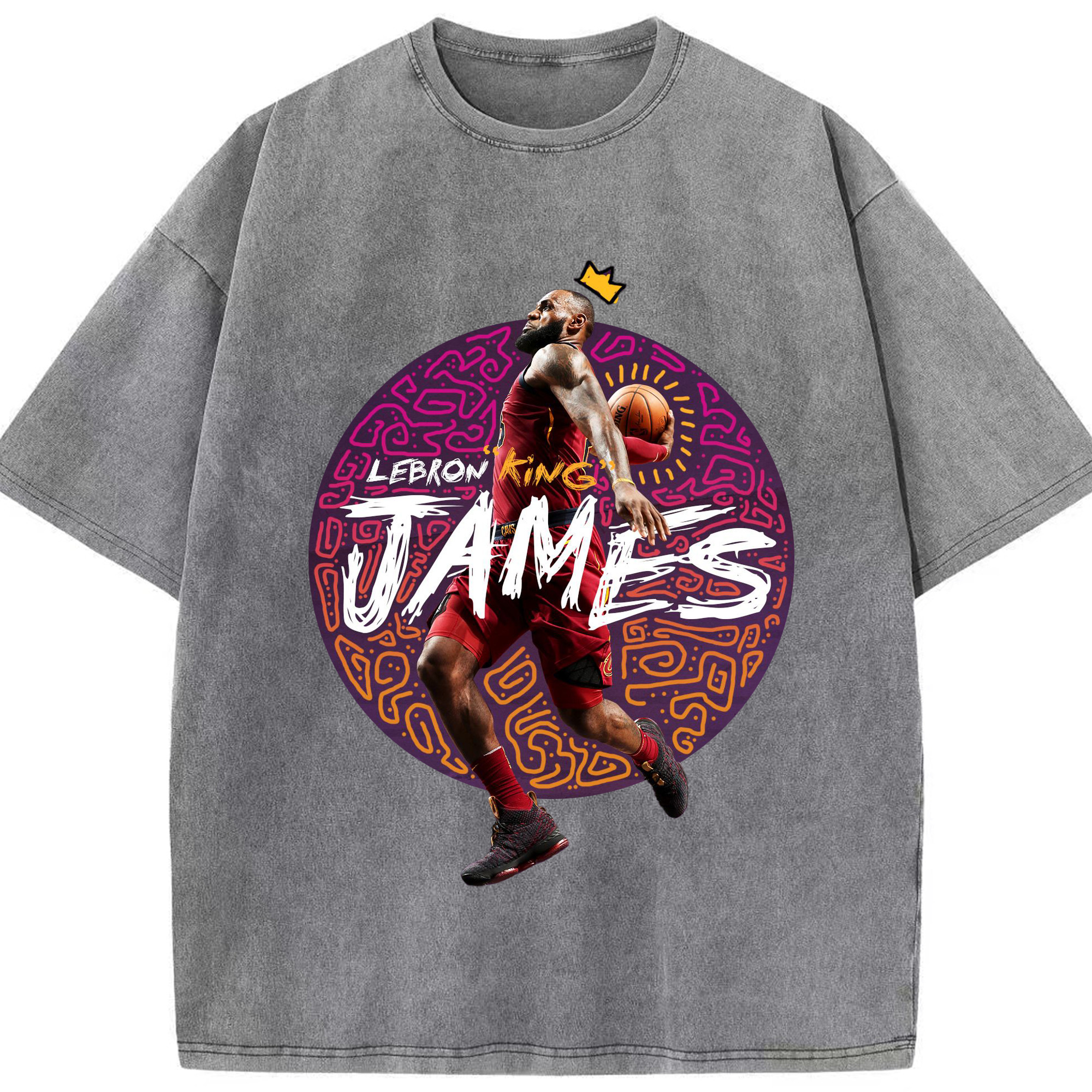 Cleveland King LeBron Dunk Shirt - Washed Vintage Look 230g Cotton Oversized T-Shirt With Front Heat Transfer Print – Soft, Lightweight, Stylish Fit – Comfortable Casual Wear For Sports & Everyday Use