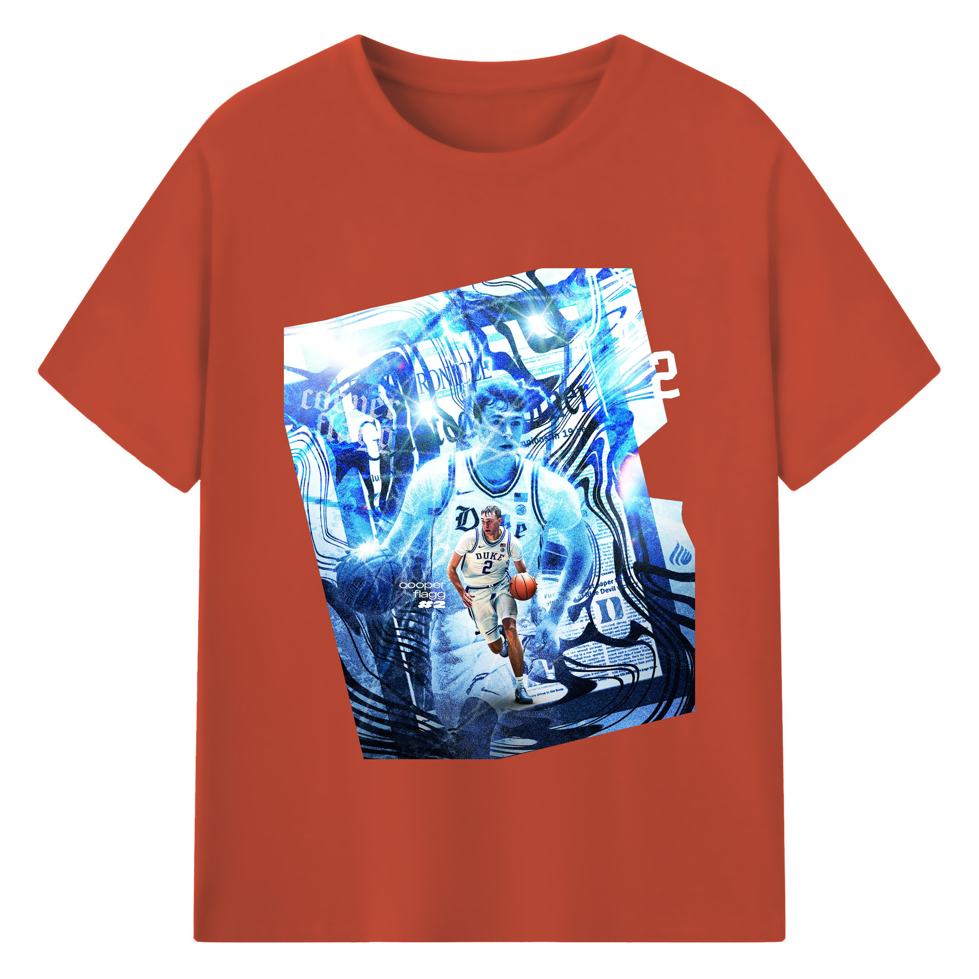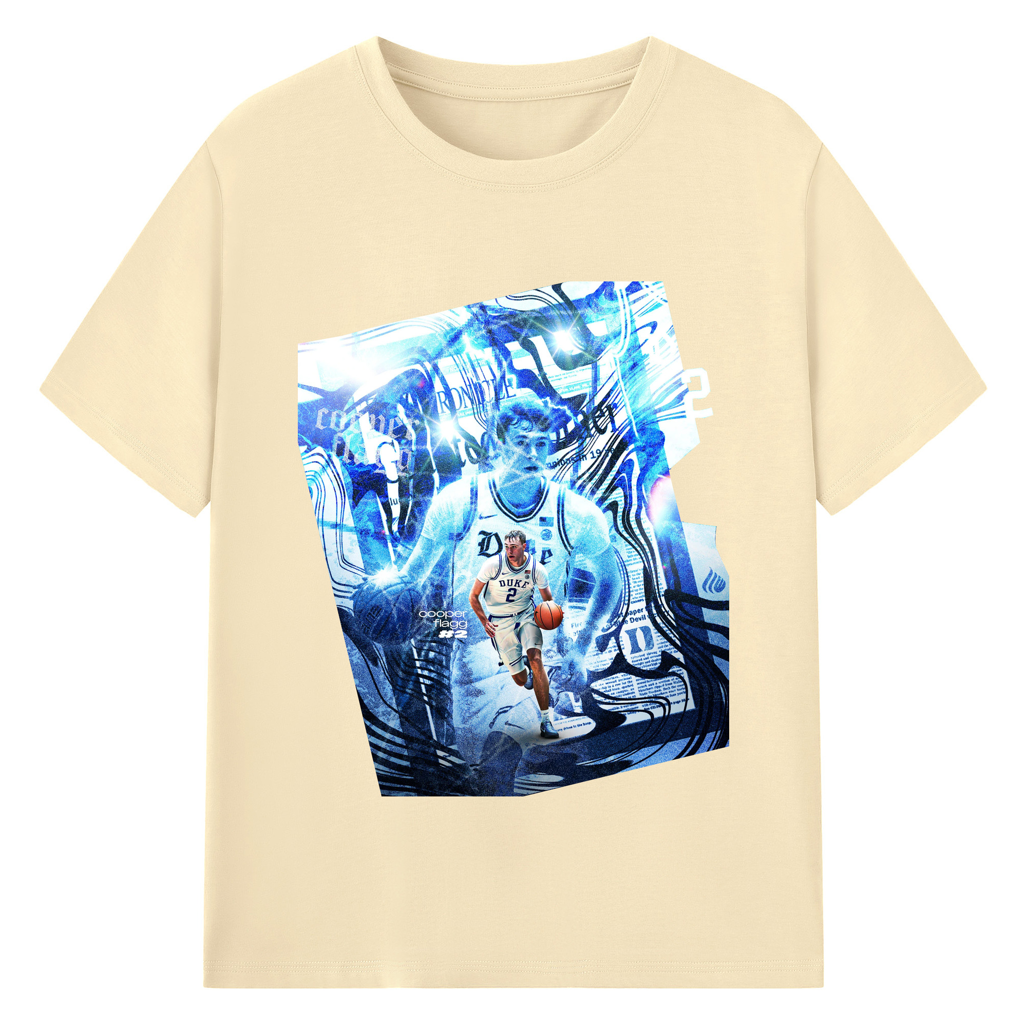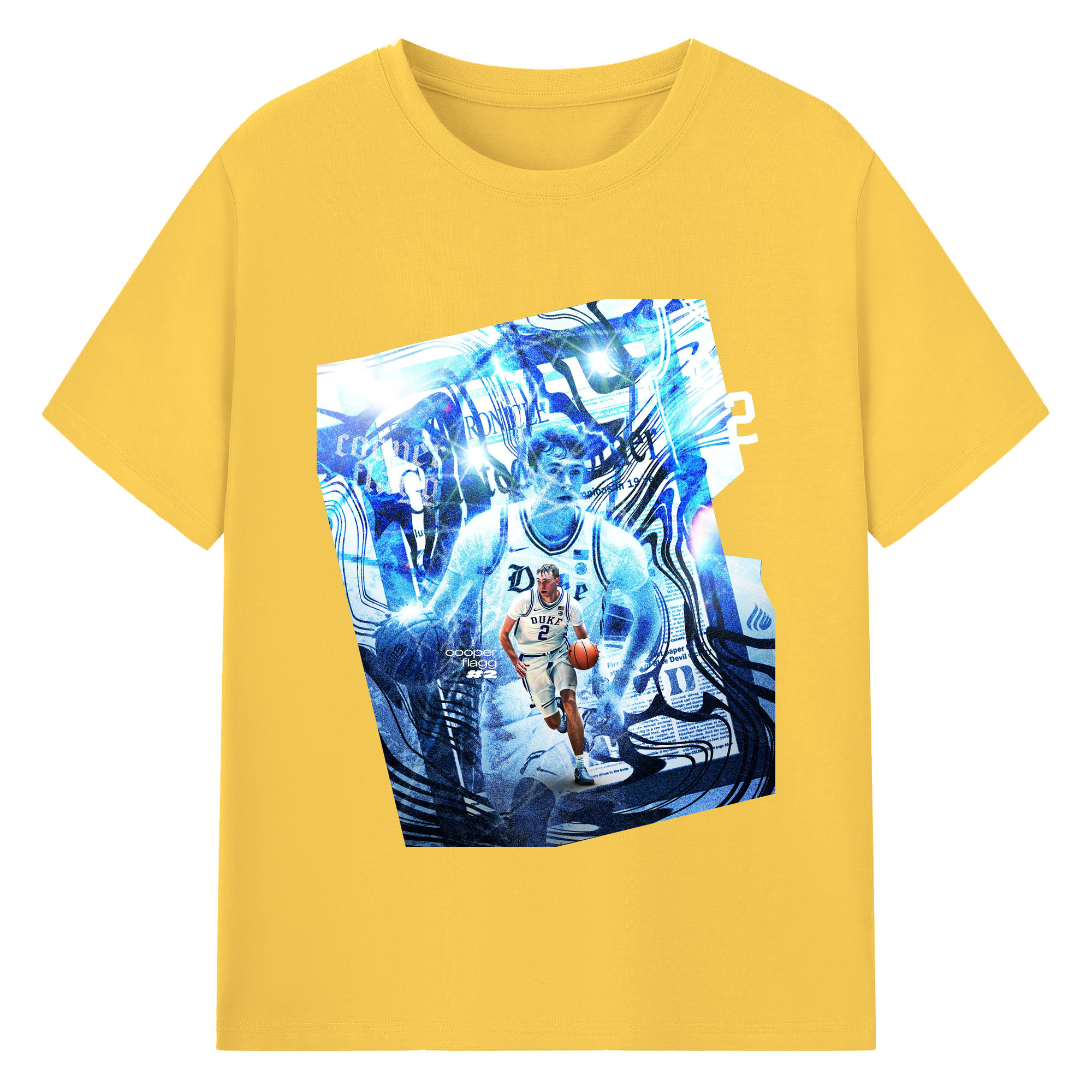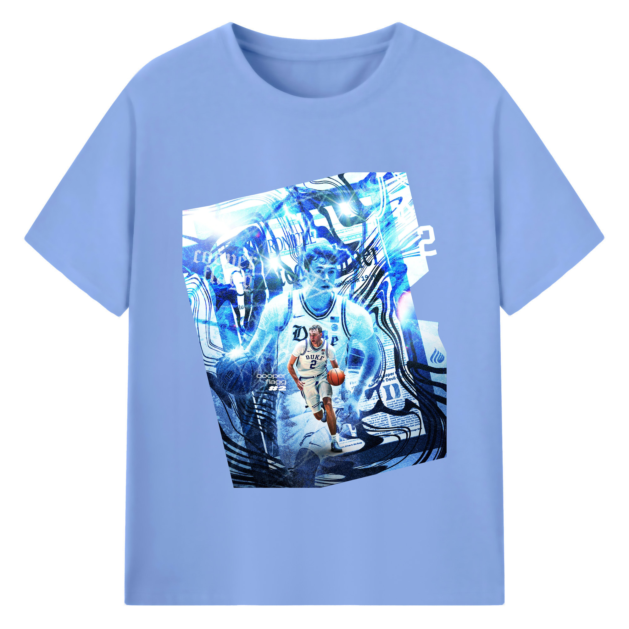 Cooper Flagg NCAA Duke Cyber Collage - 180g Cotton T-Shirt With Front Heat Transfer Print – Soft, Lightweight, Fitted Design – Comfortable Casual Wear For Sports & Everyday Use