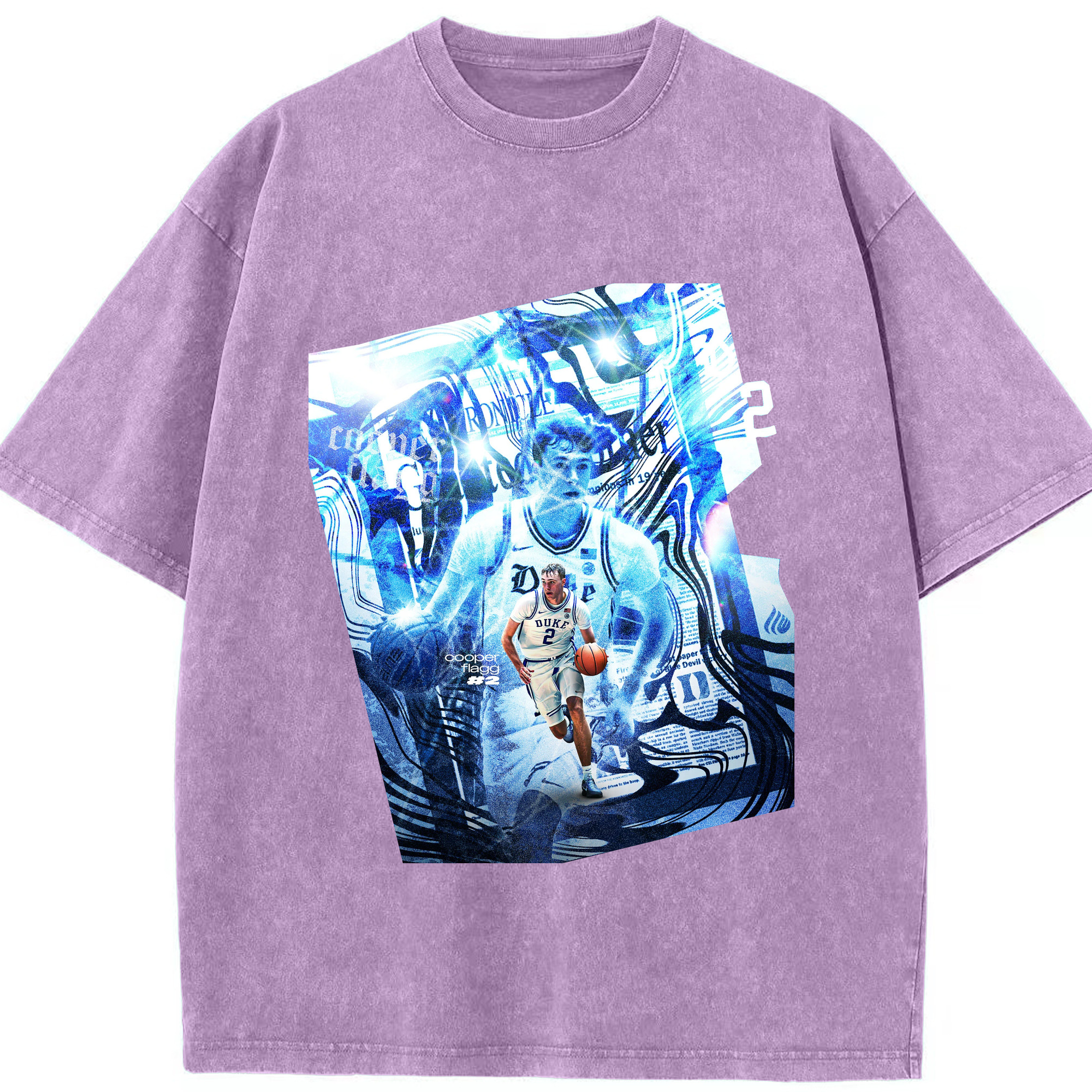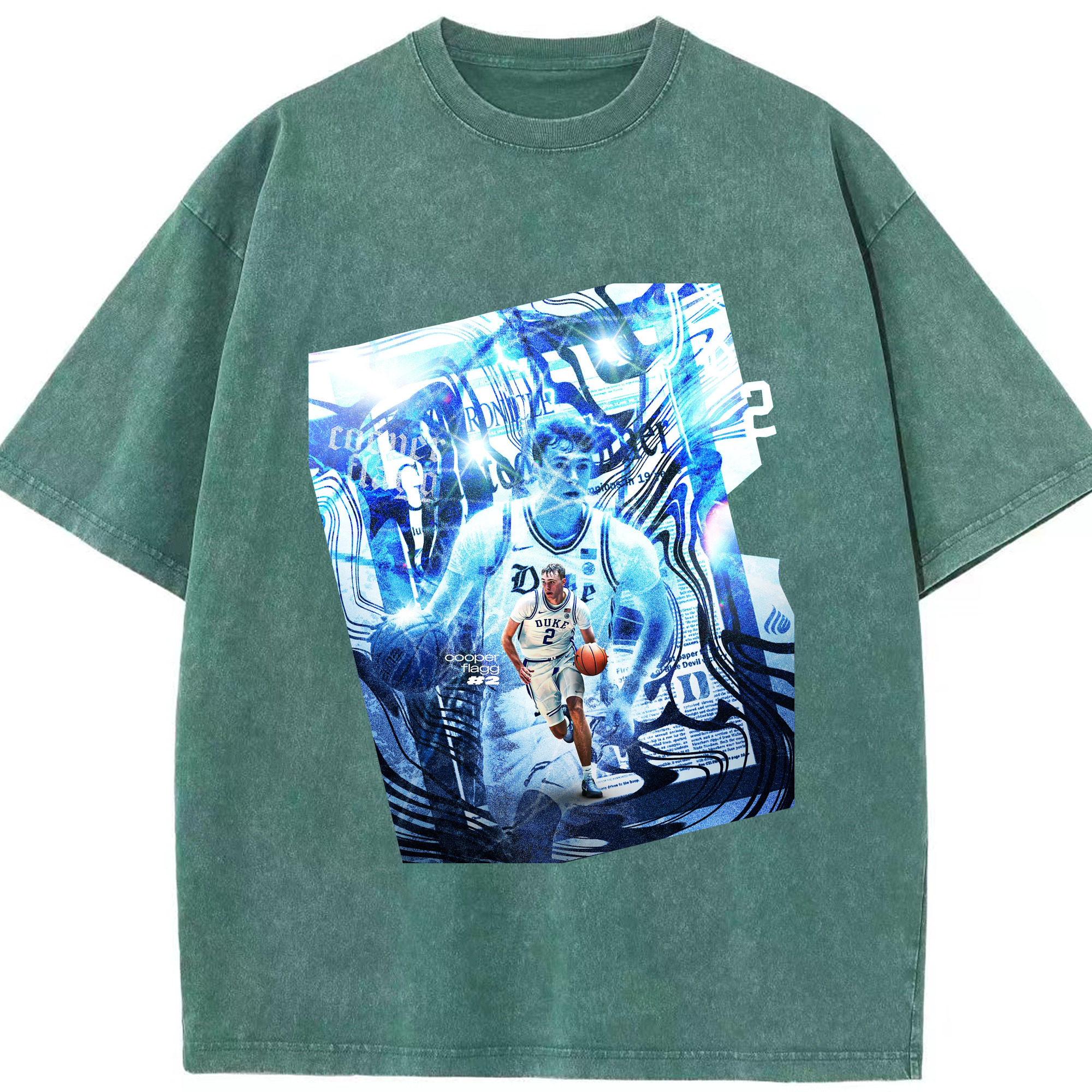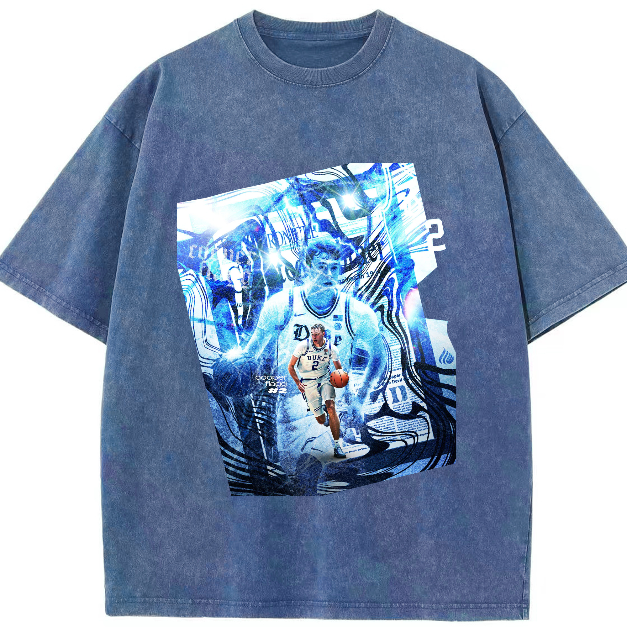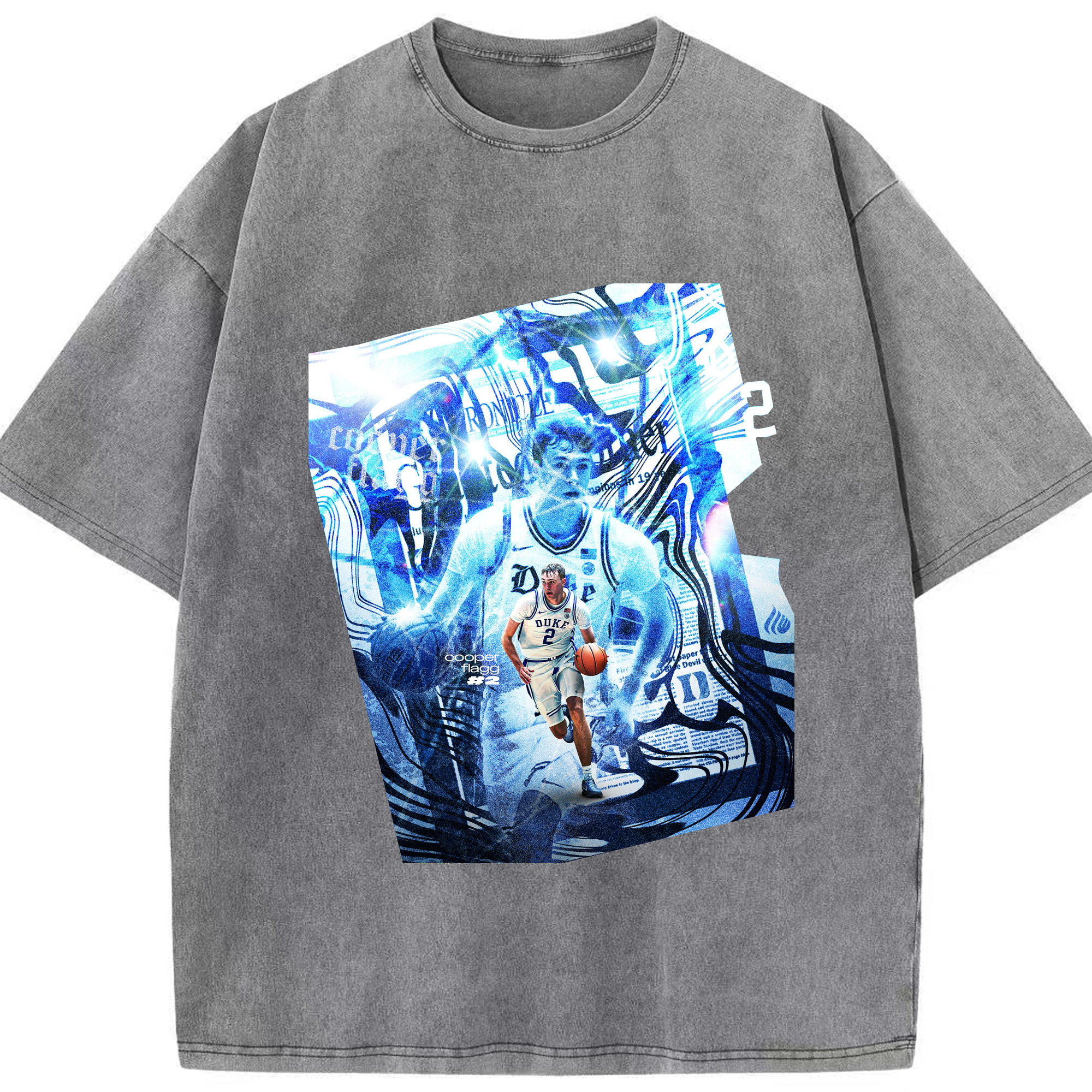 Cooper Flagg NCAA Duke Cyber Collage - Washed Vintage Look 230g Cotton Oversized T-Shirt With Front Heat Transfer Print – Soft, Lightweight, Stylish Fit – Comfortable Casual Wear For Sports & Everyday Use