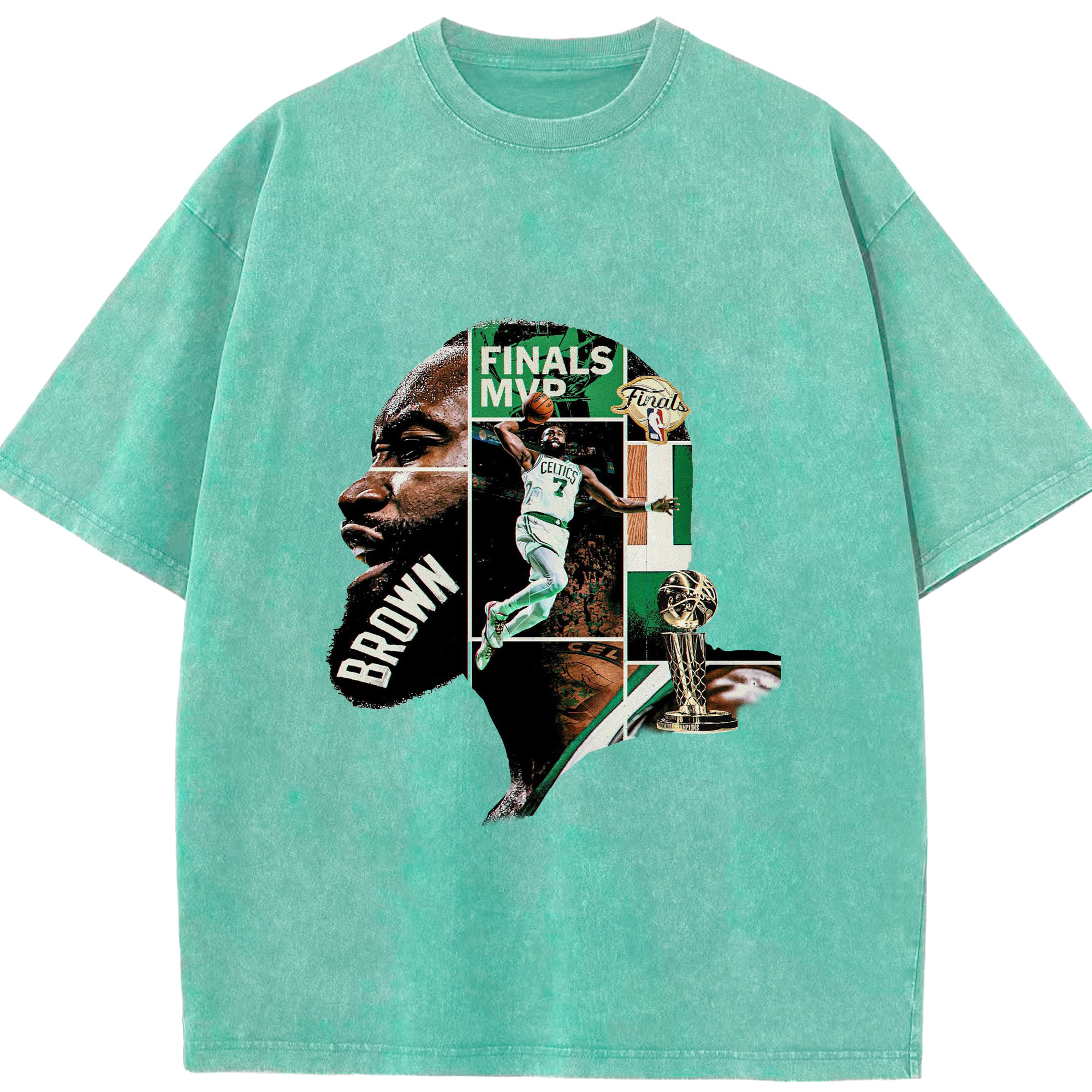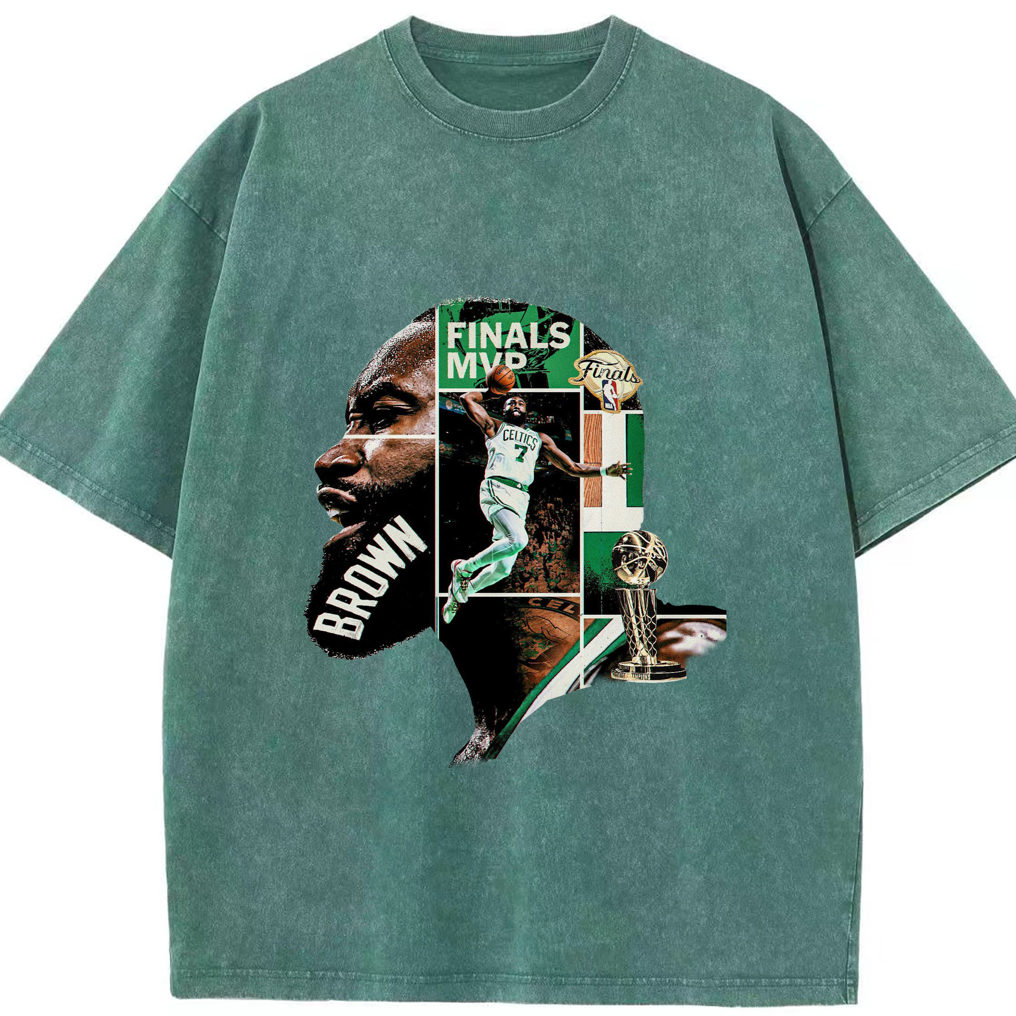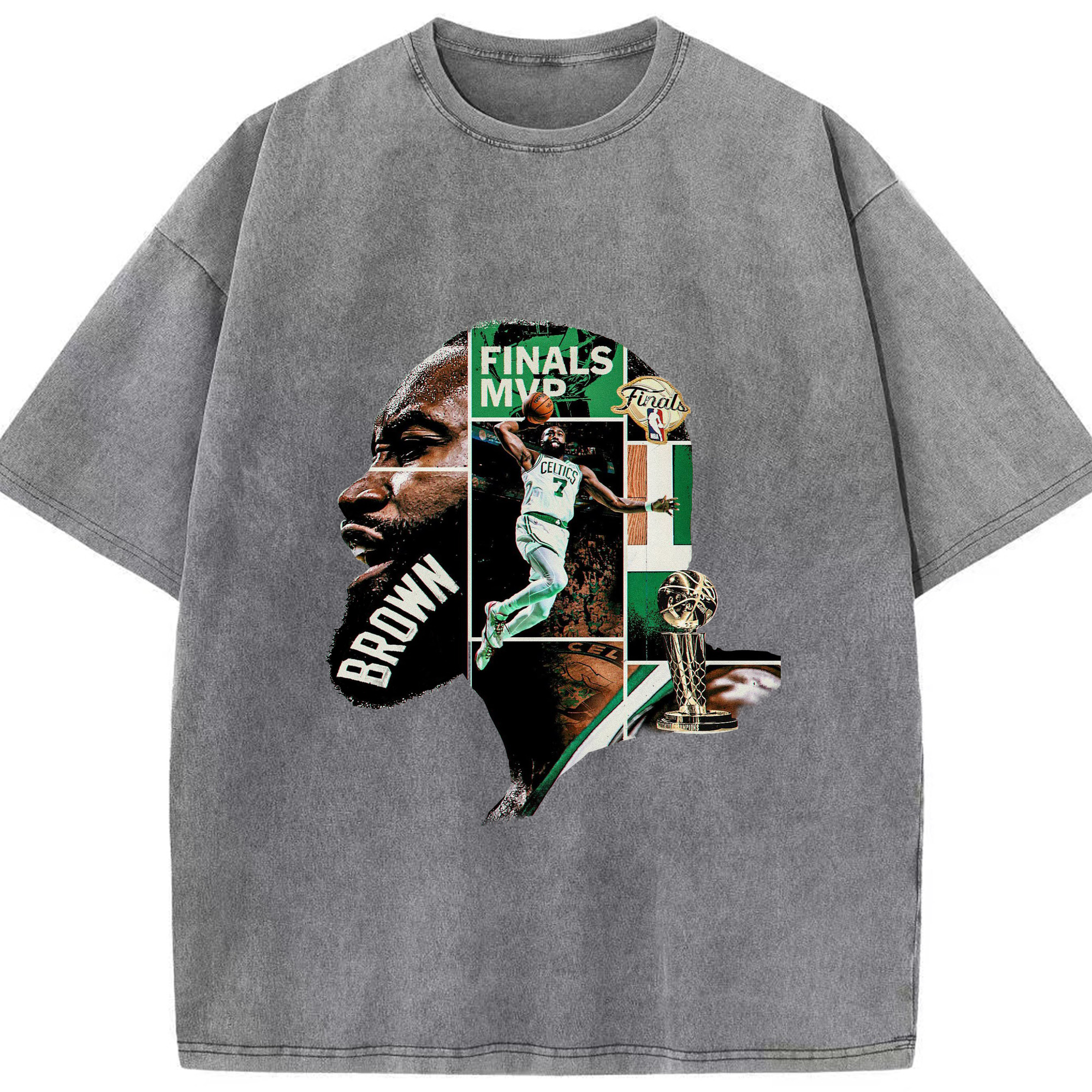 “Crowned in Silence” Jaylen Brown Silhouette FMVP Shirt - Washed Vintage Look 230g Cotton Oversized T-Shirt With Front Heat Transfer Print – Soft, Lightweight, Stylish Fit – Comfortable Casual Wear For Sports & Everyday Use