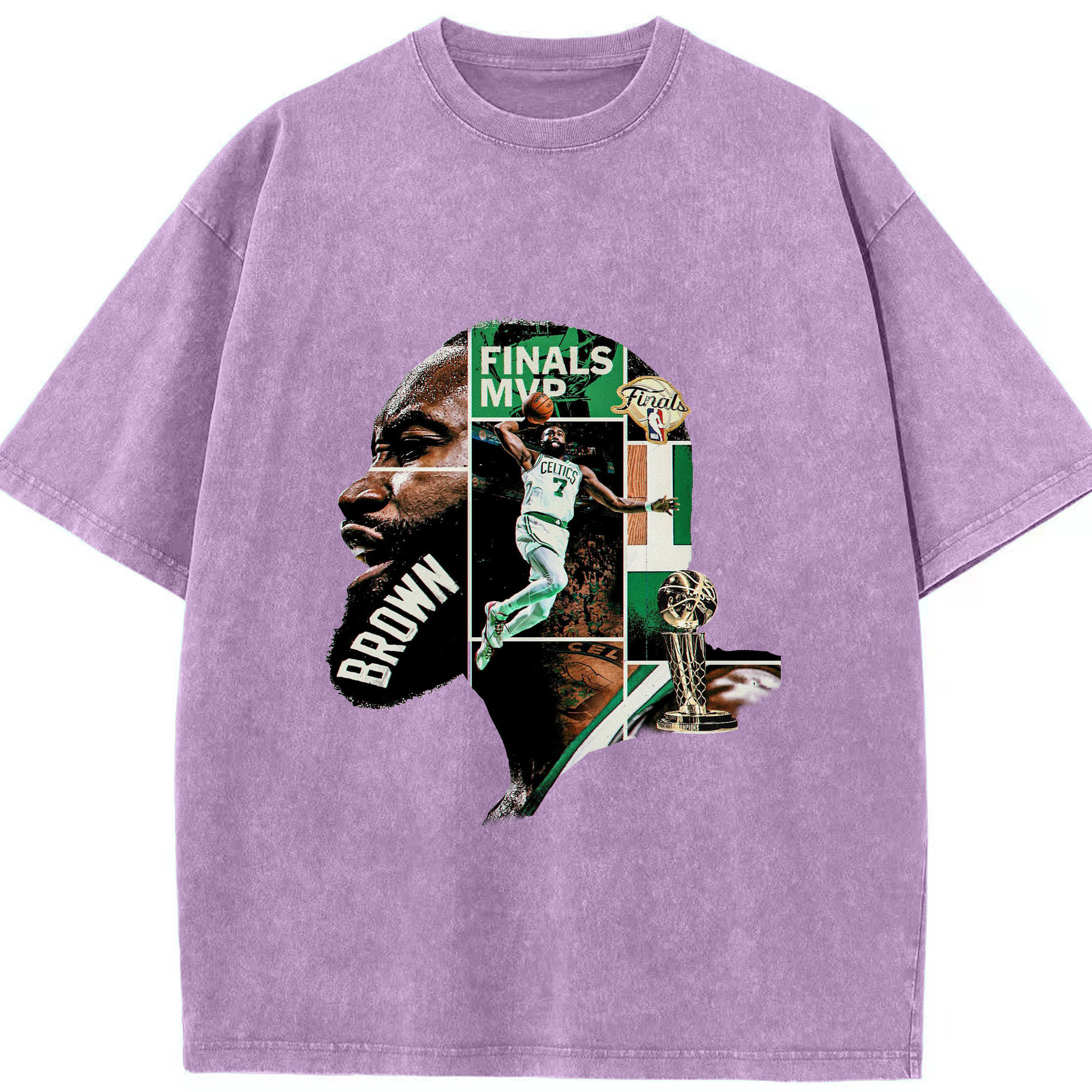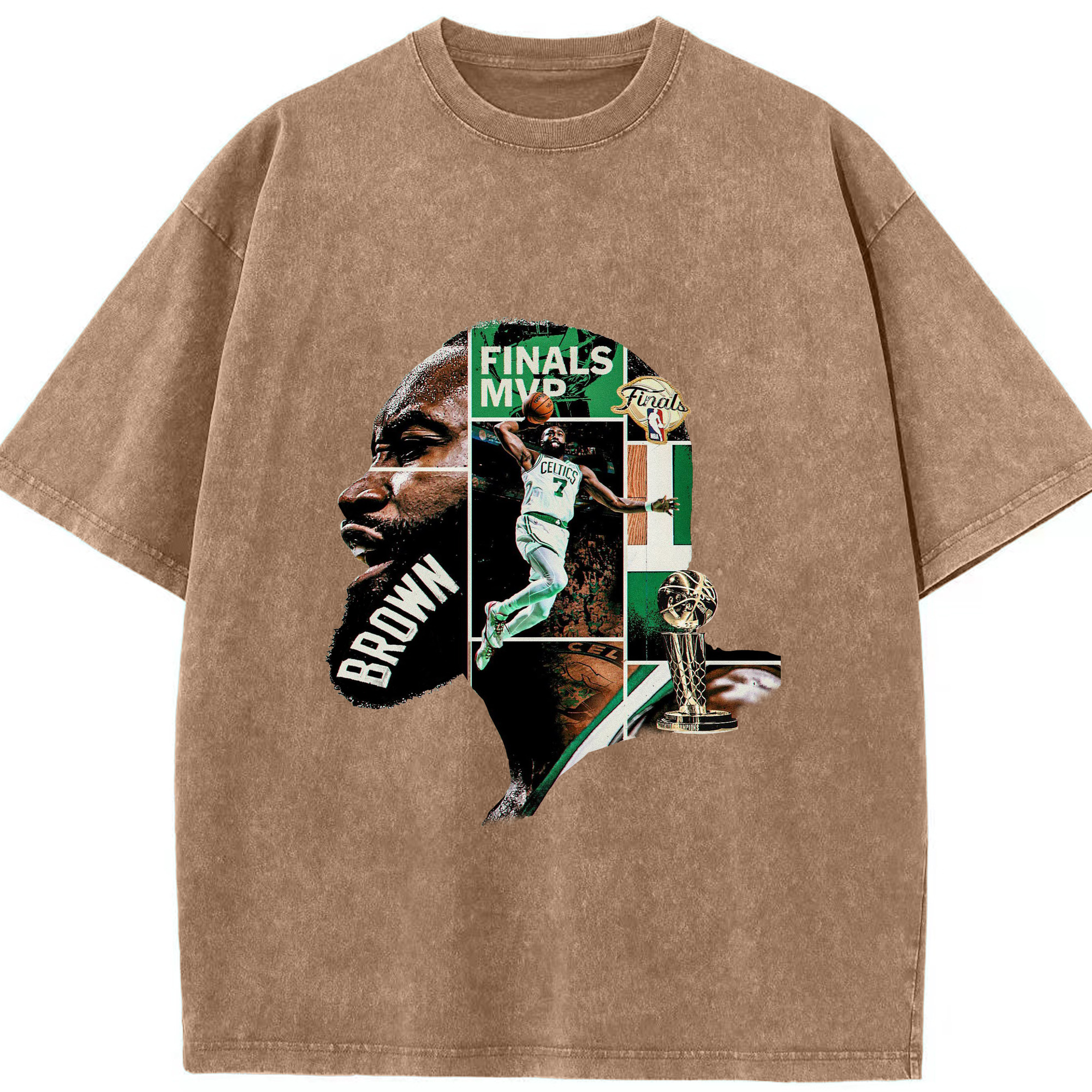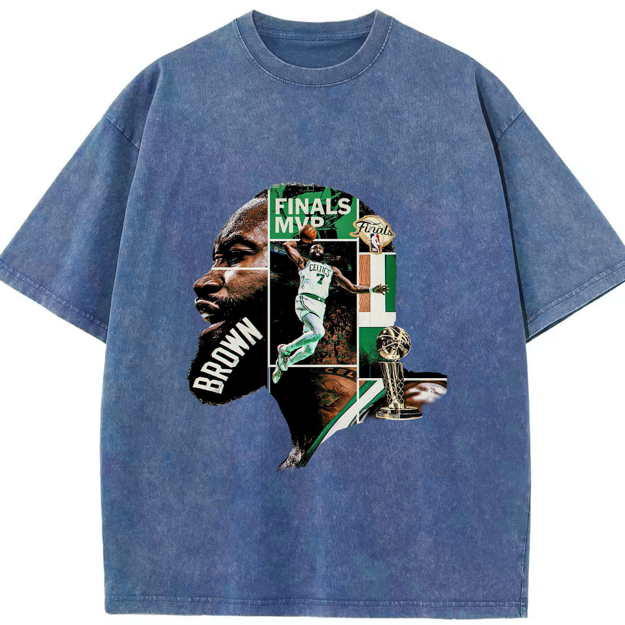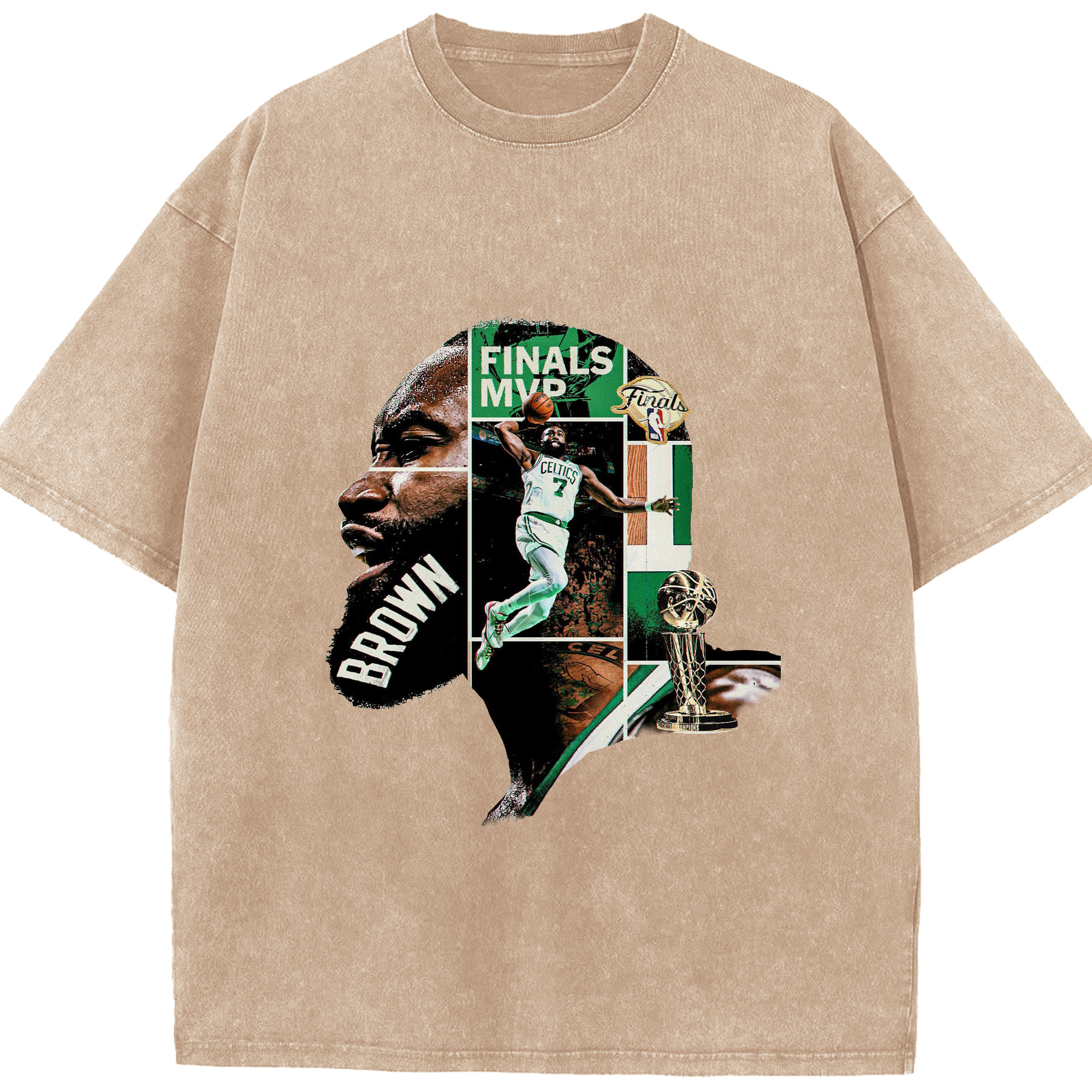 “Crowned in Silence” Jaylen Brown Silhouette FMVP Shirt - Washed Vintage Look 230g Cotton Oversized T-Shirt With Front Heat Transfer Print – Soft, Lightweight, Stylish Fit – Comfortable Casual Wear For Sports & Everyday Use