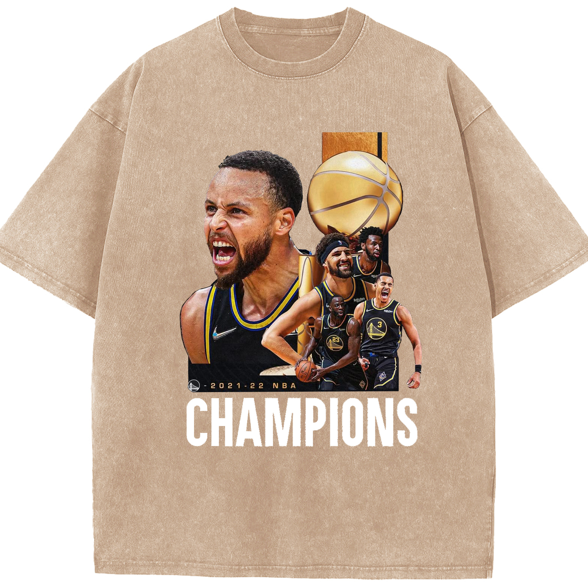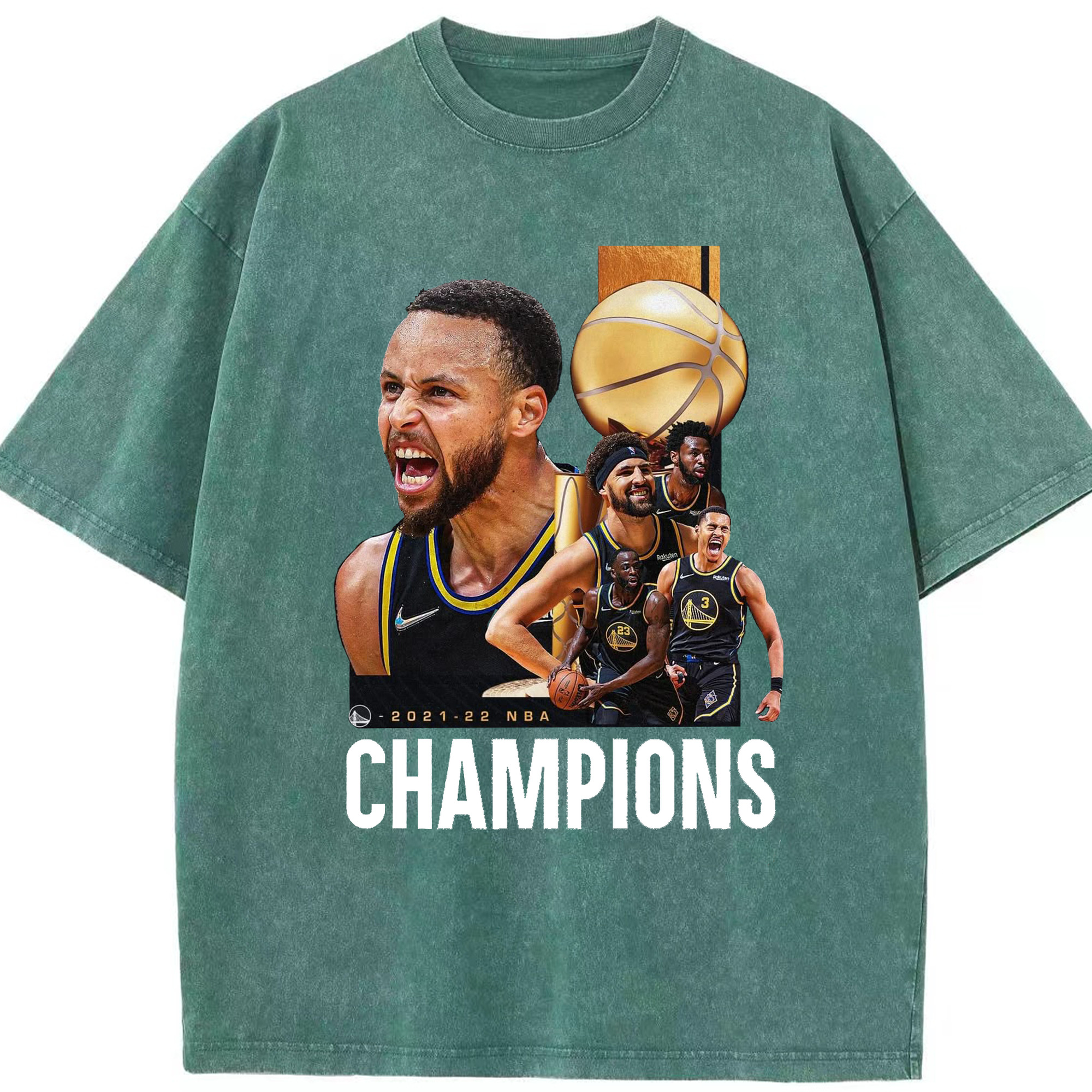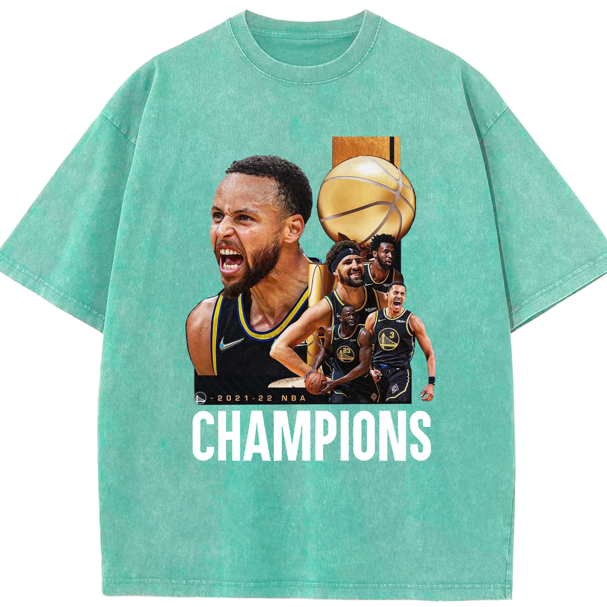 Curry & Warriors Dynasty 2022 Championship Shirt - Washed Vintage Look 230g Cotton Oversized T-Shirt With Front Heat Transfer Print – Soft, Lightweight, Stylish Fit – Comfortable Casual Wear For Sports & Everyday Use