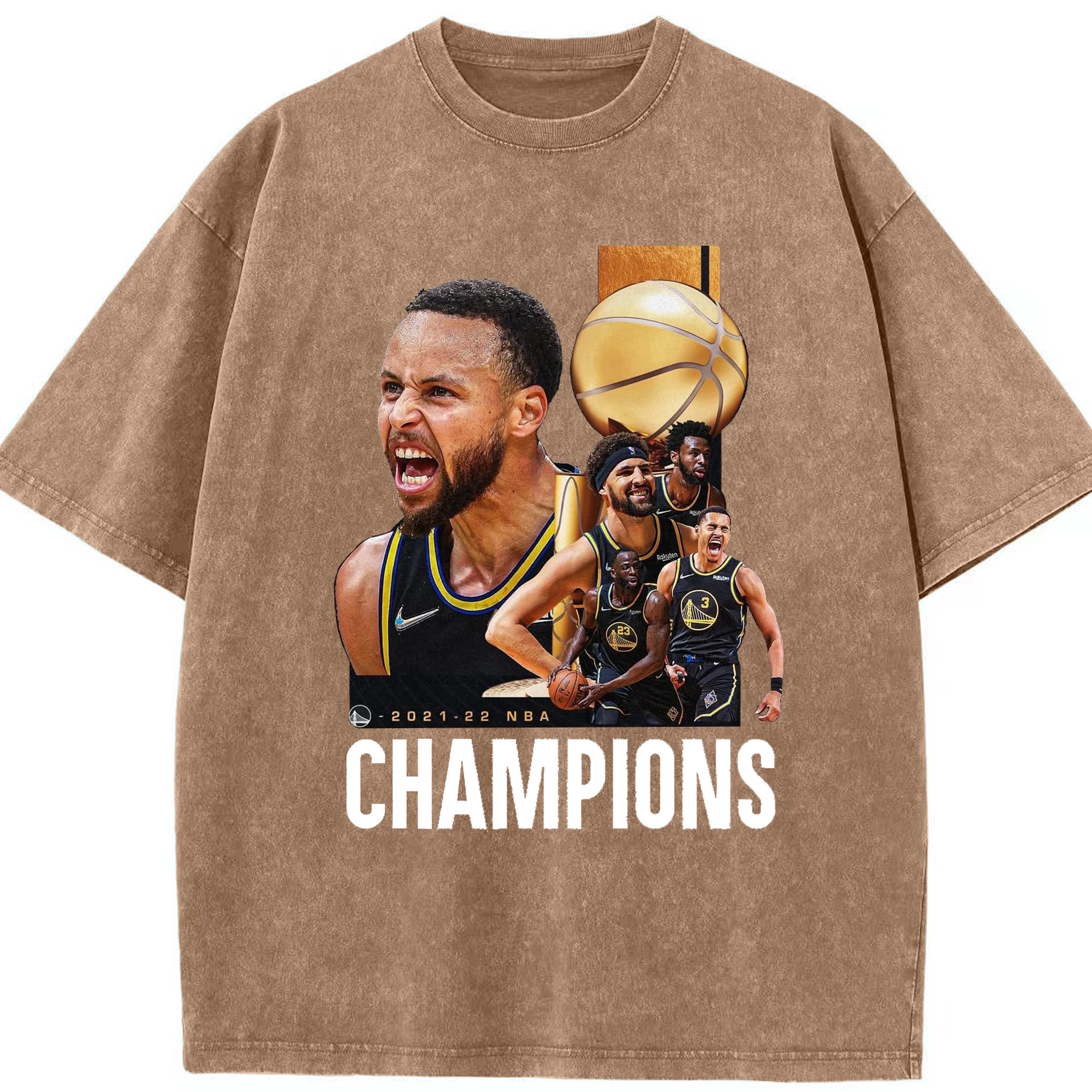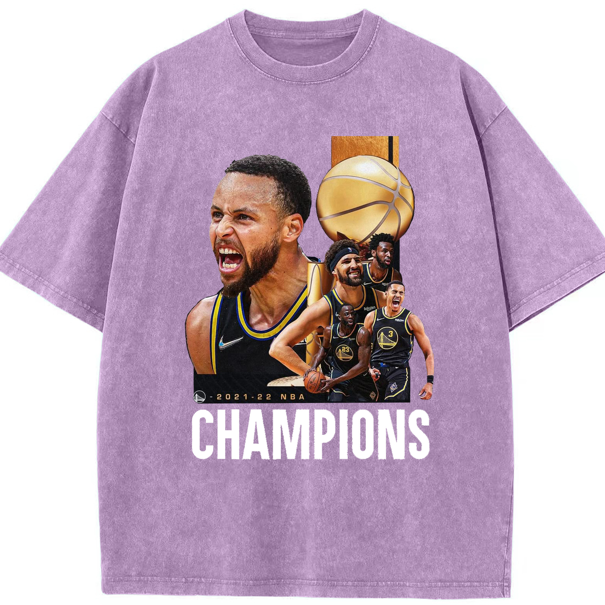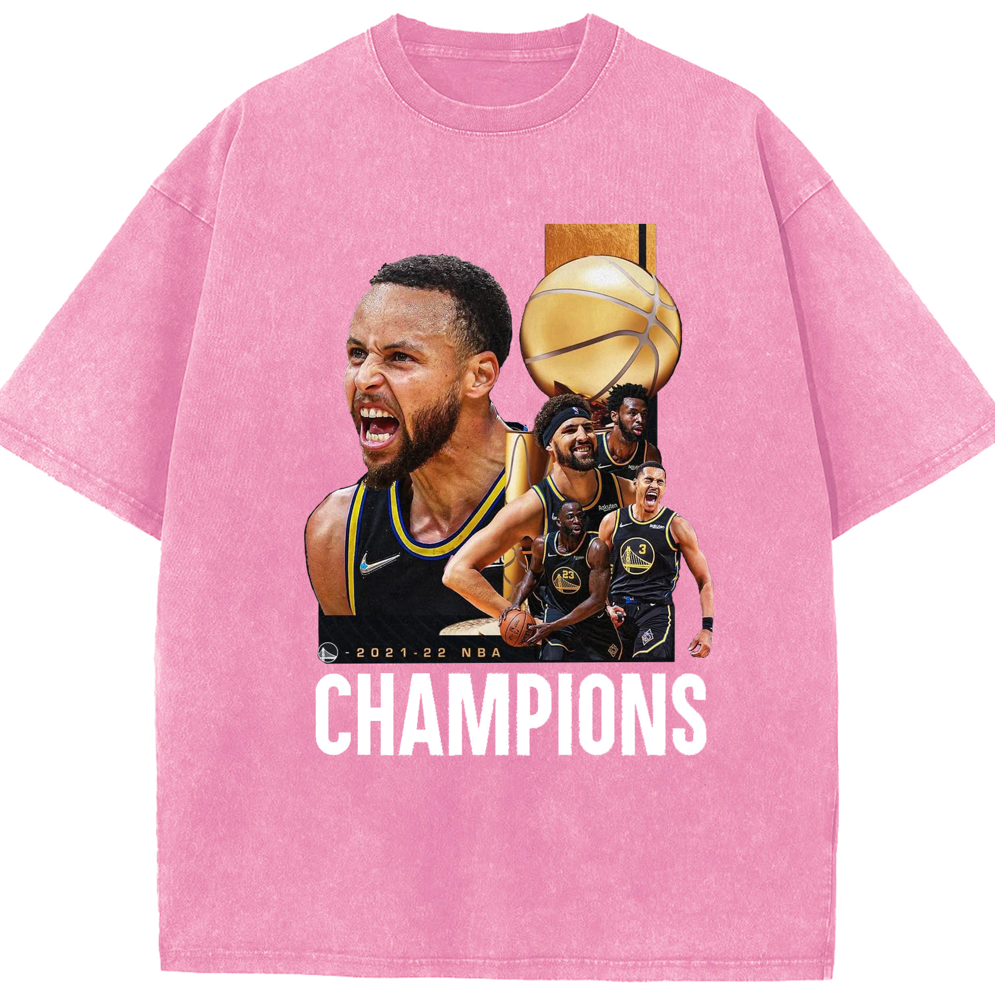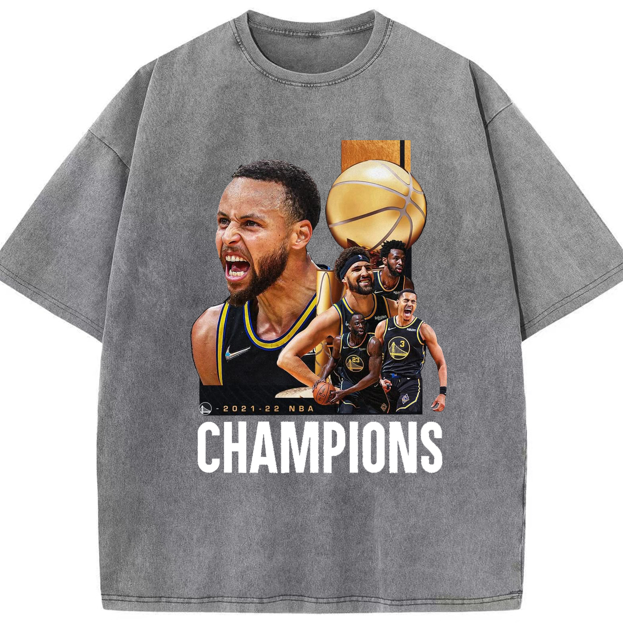 Curry & Warriors Dynasty 2022 Championship Shirt - Washed Vintage Look 230g Cotton Oversized T-Shirt With Front Heat Transfer Print – Soft, Lightweight, Stylish Fit – Comfortable Casual Wear For Sports & Everyday Use