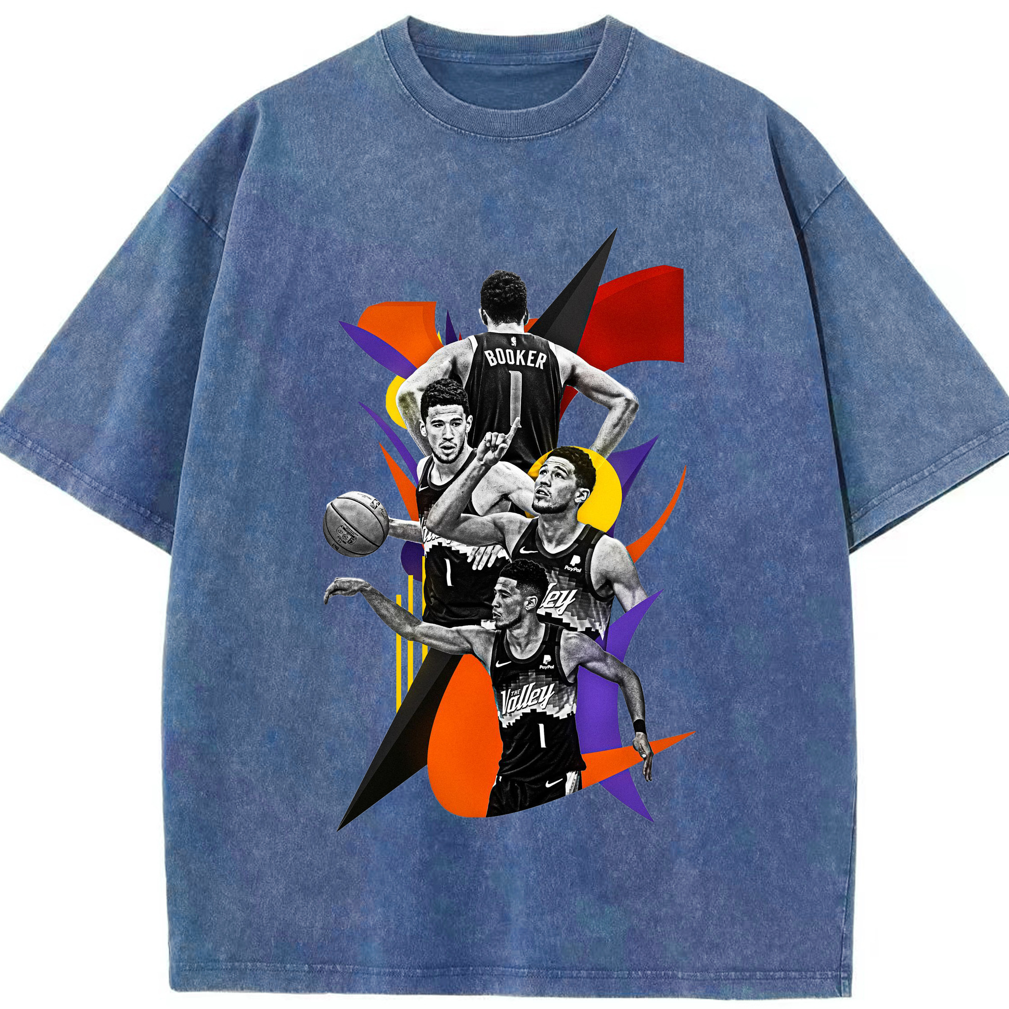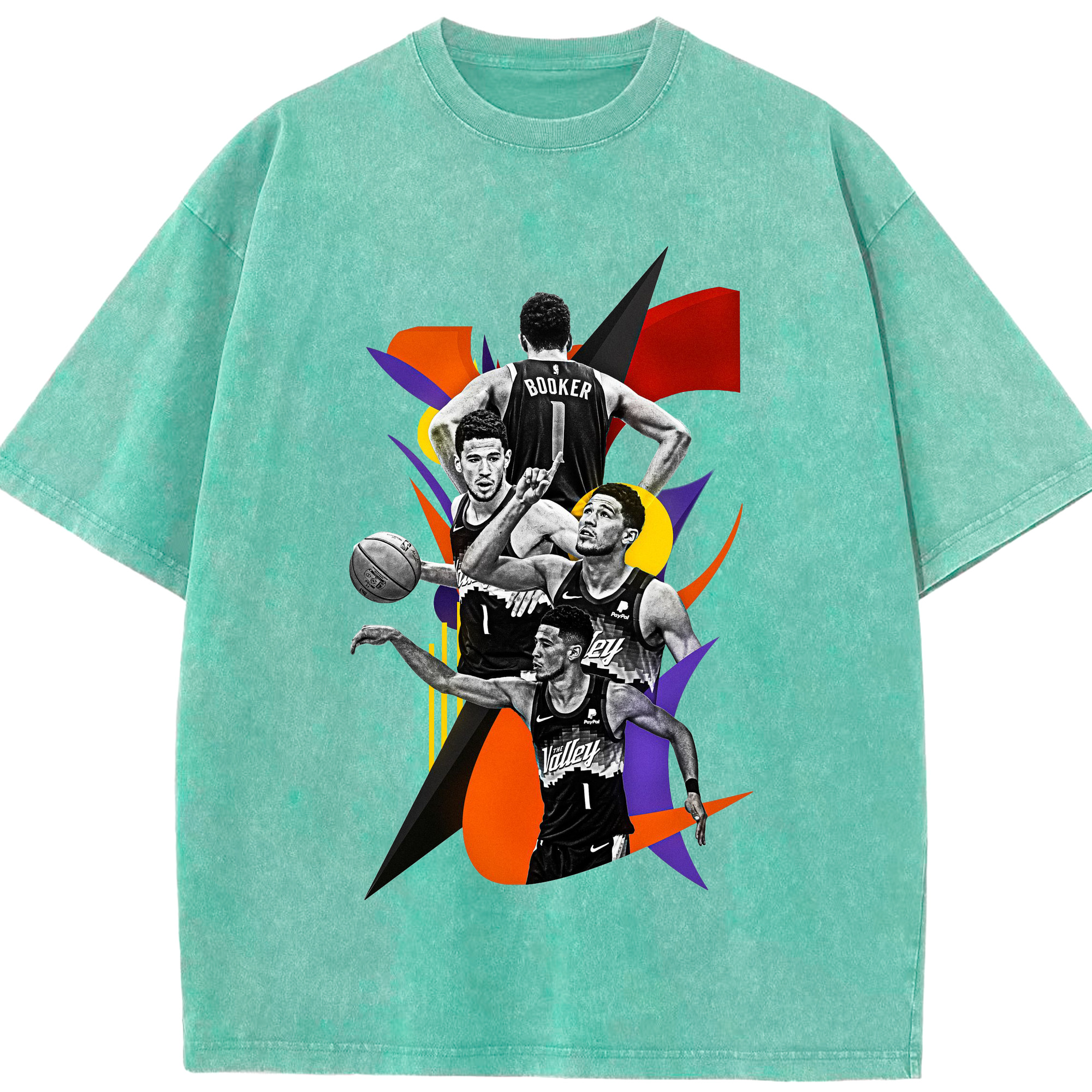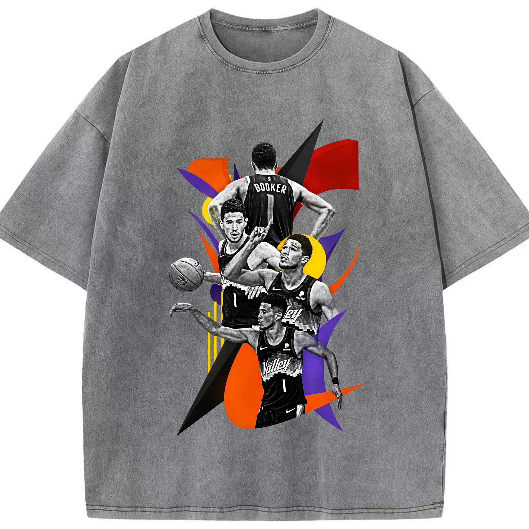 Devin Booker Collage Art Shirt - Washed Vintage Look 230g Cotton Oversized T-Shirt With Front Heat Transfer Print – Soft, Lightweight, Stylish Fit – Comfortable Casual Wear For Sports & Everyday Use