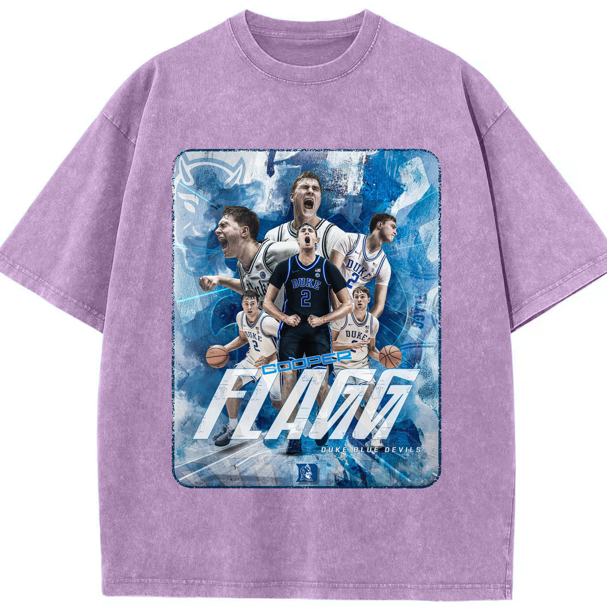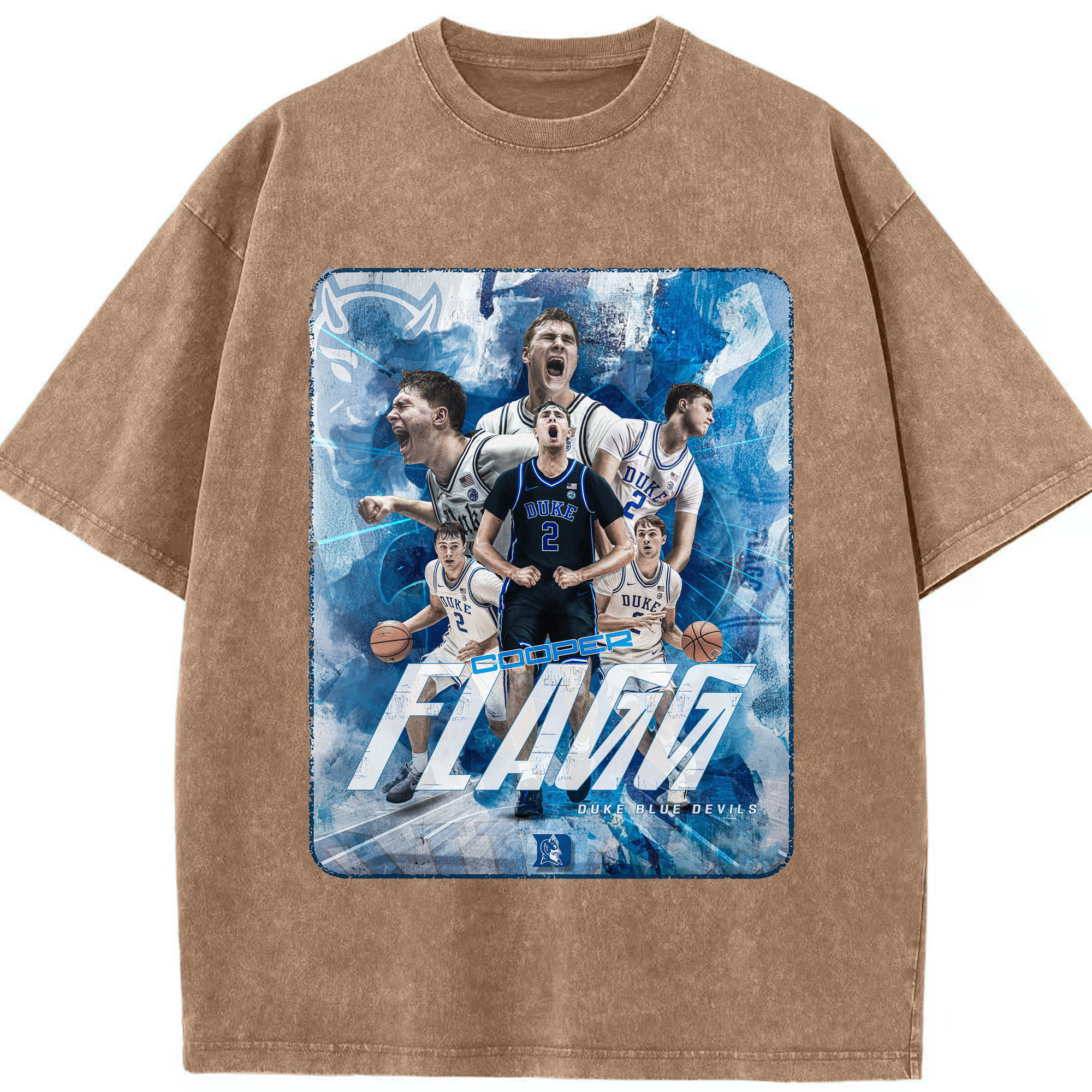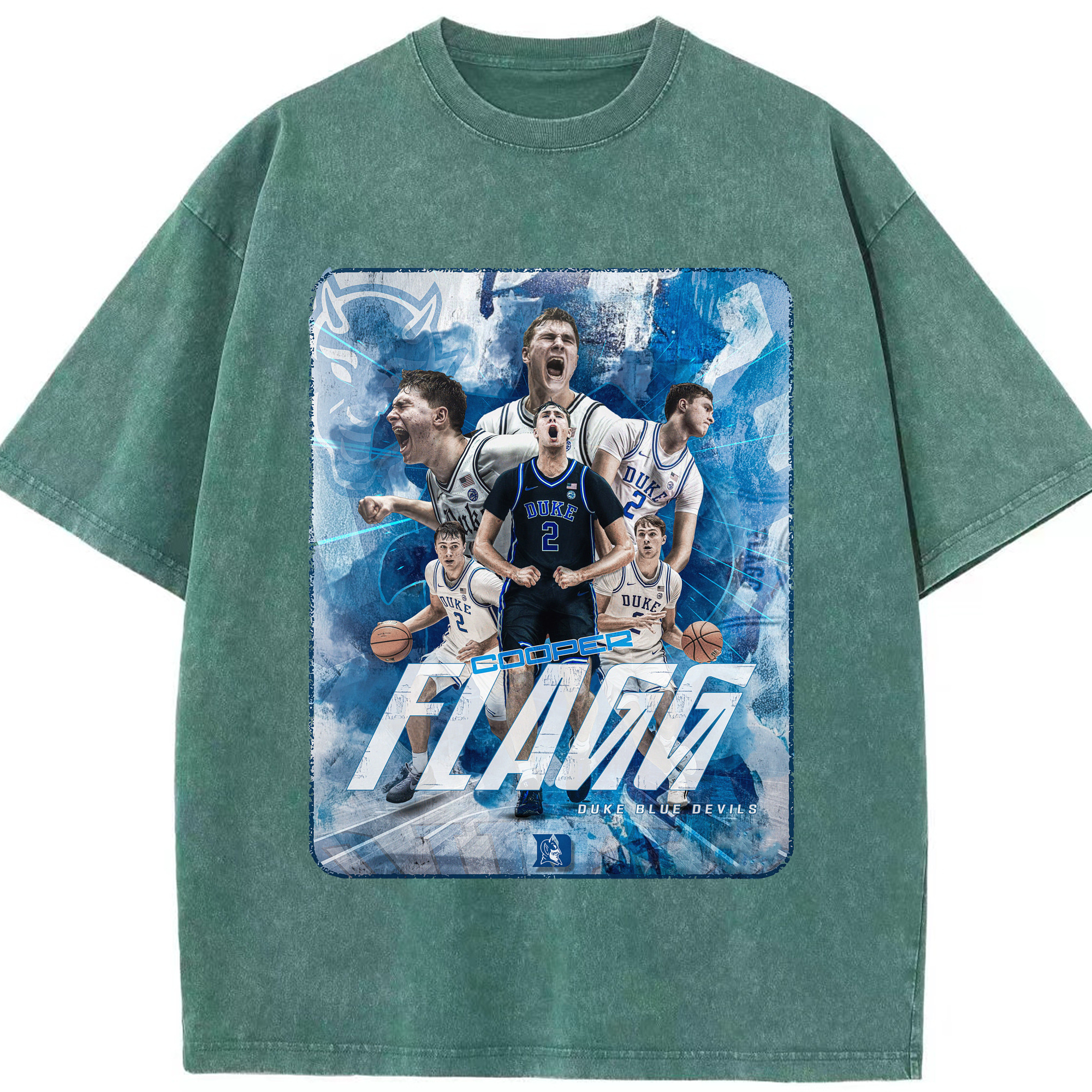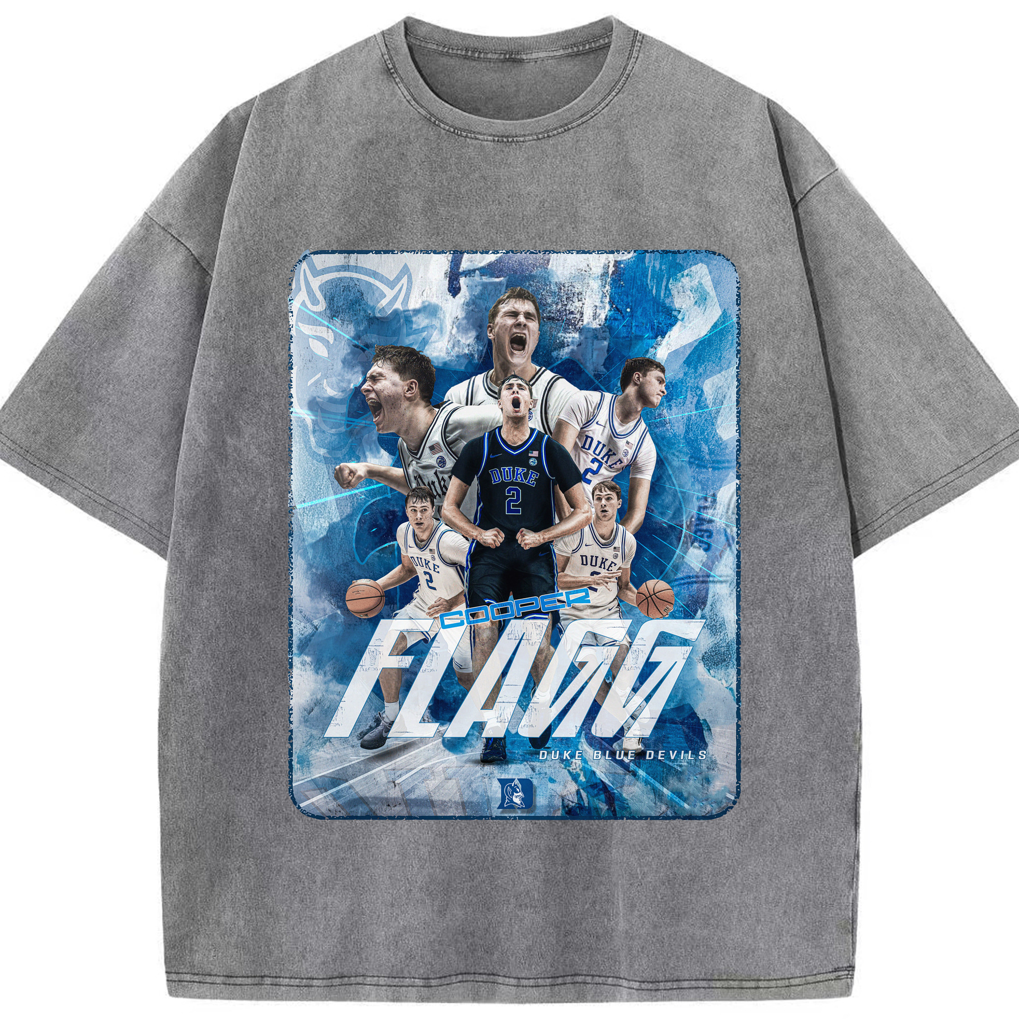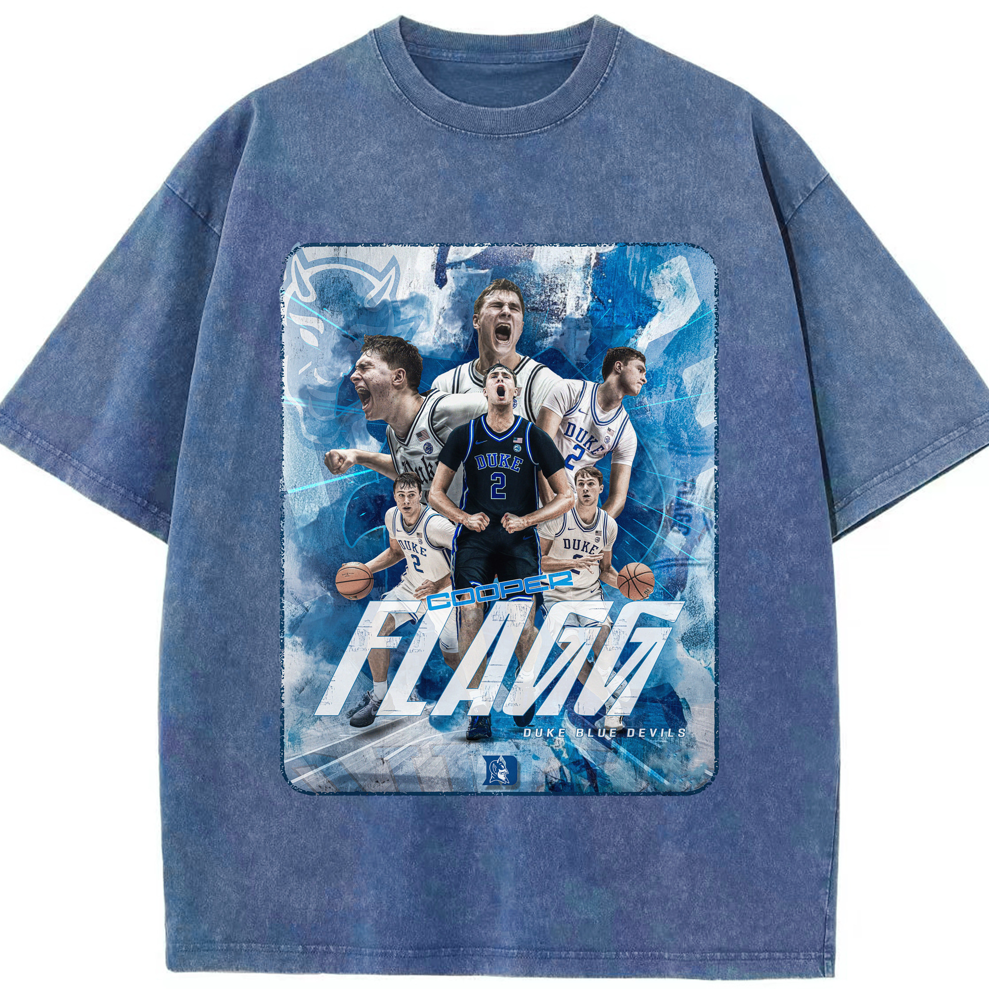 Duke Blue Devils Cooper Flagg Hoops Collage Shirt - Washed Vintage Look 230g Cotton Oversized T-Shirt With Front Heat Transfer Print – Soft, Lightweight, Stylish Fit – Comfortable Casual Wear For Sports & Everyday Use