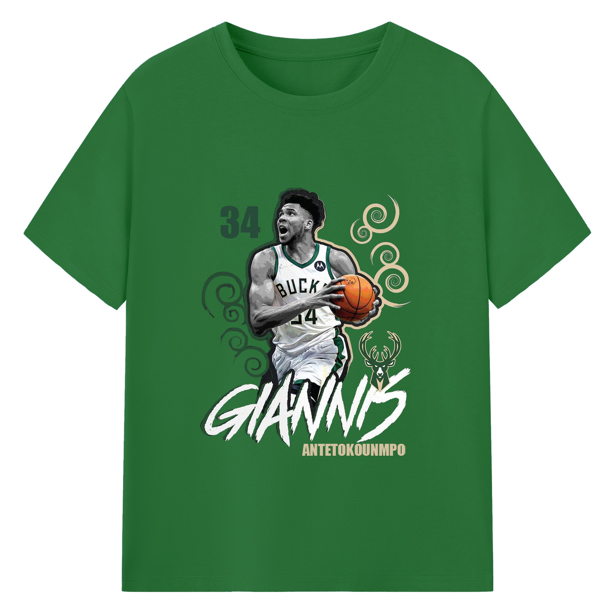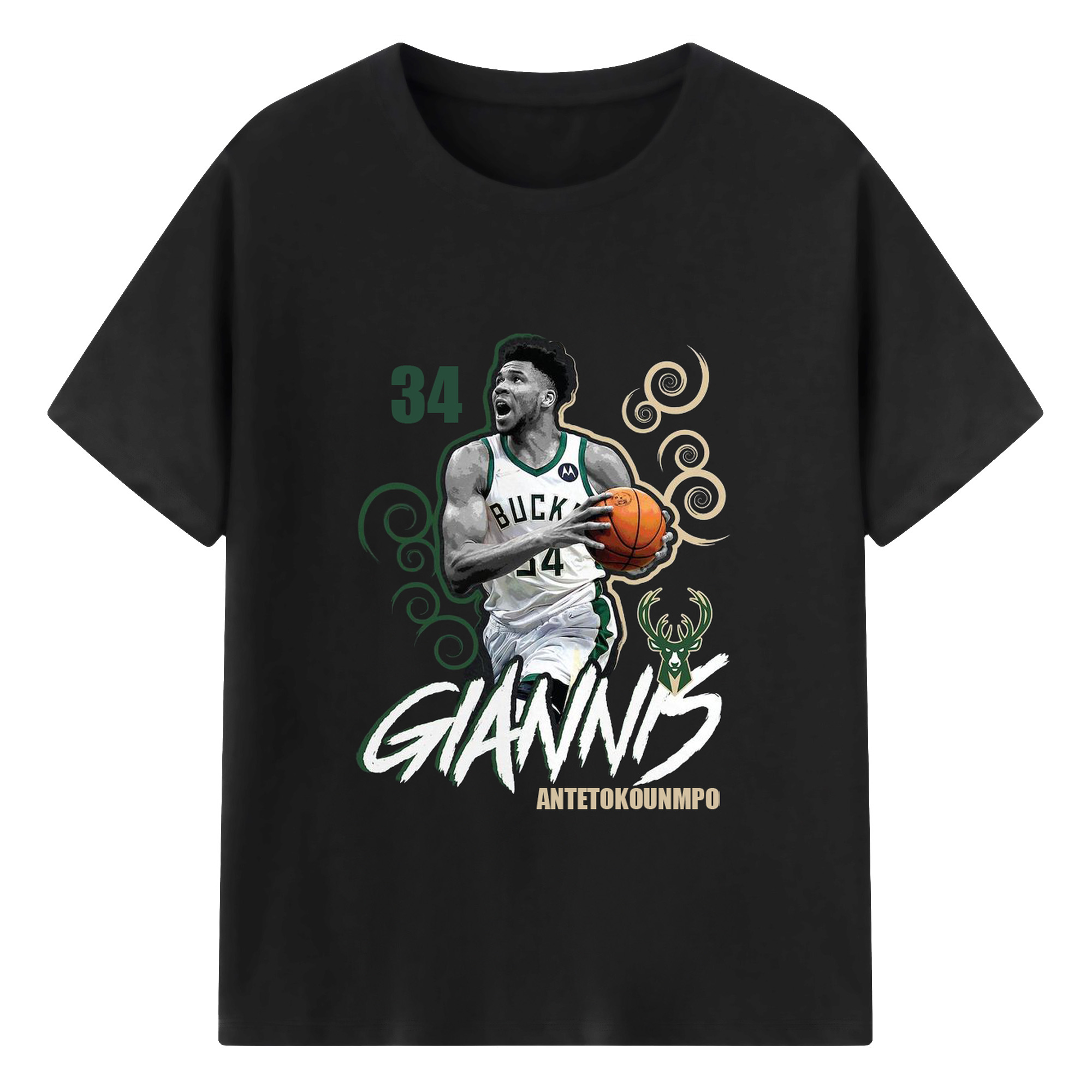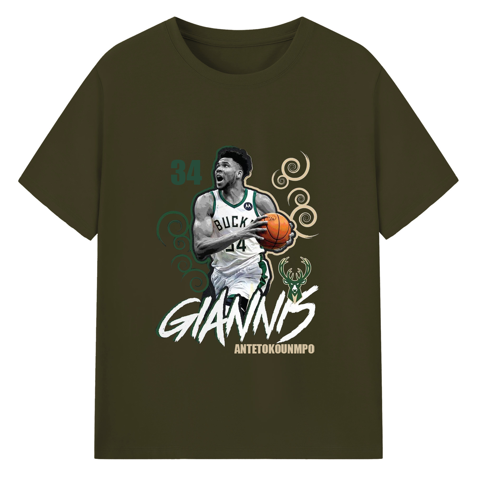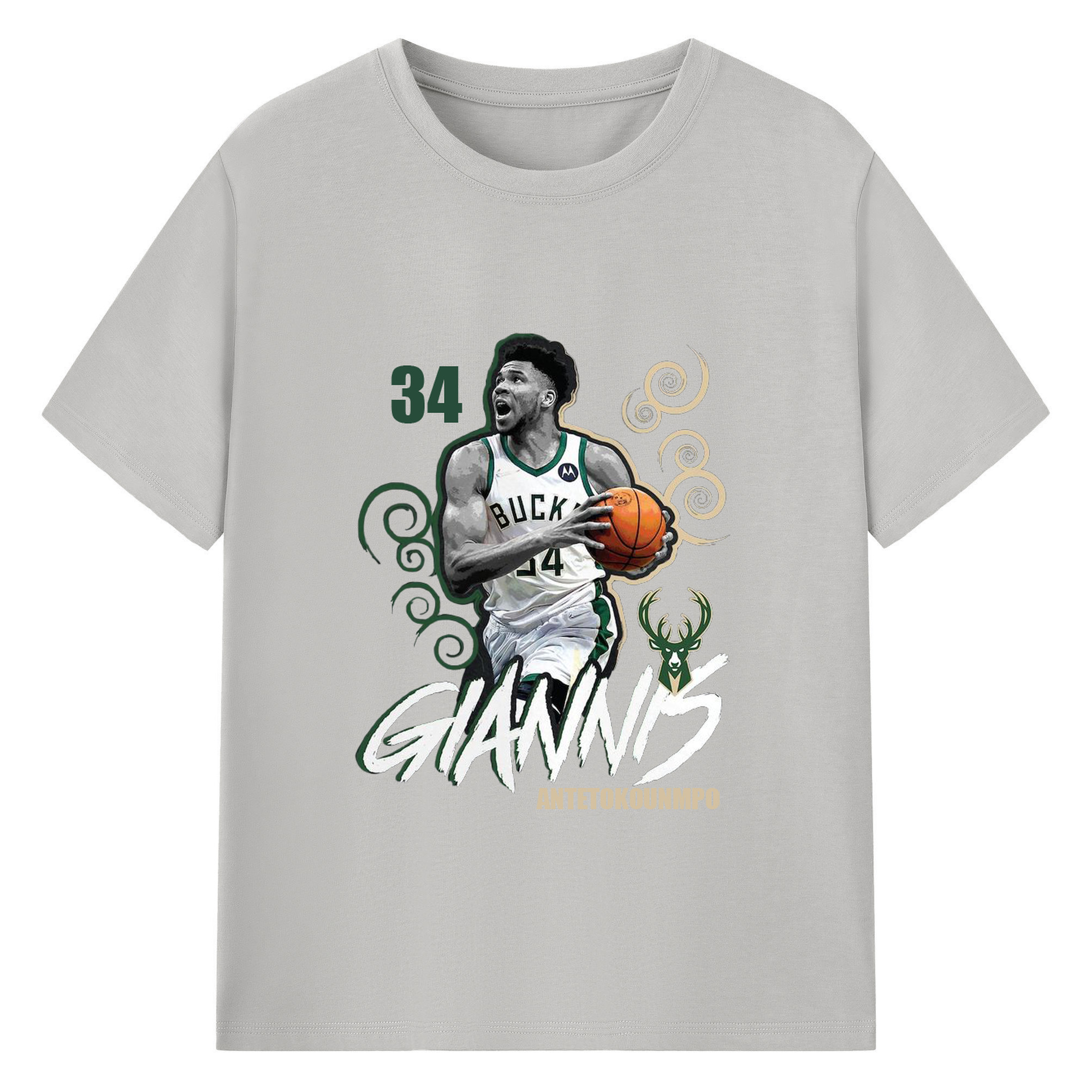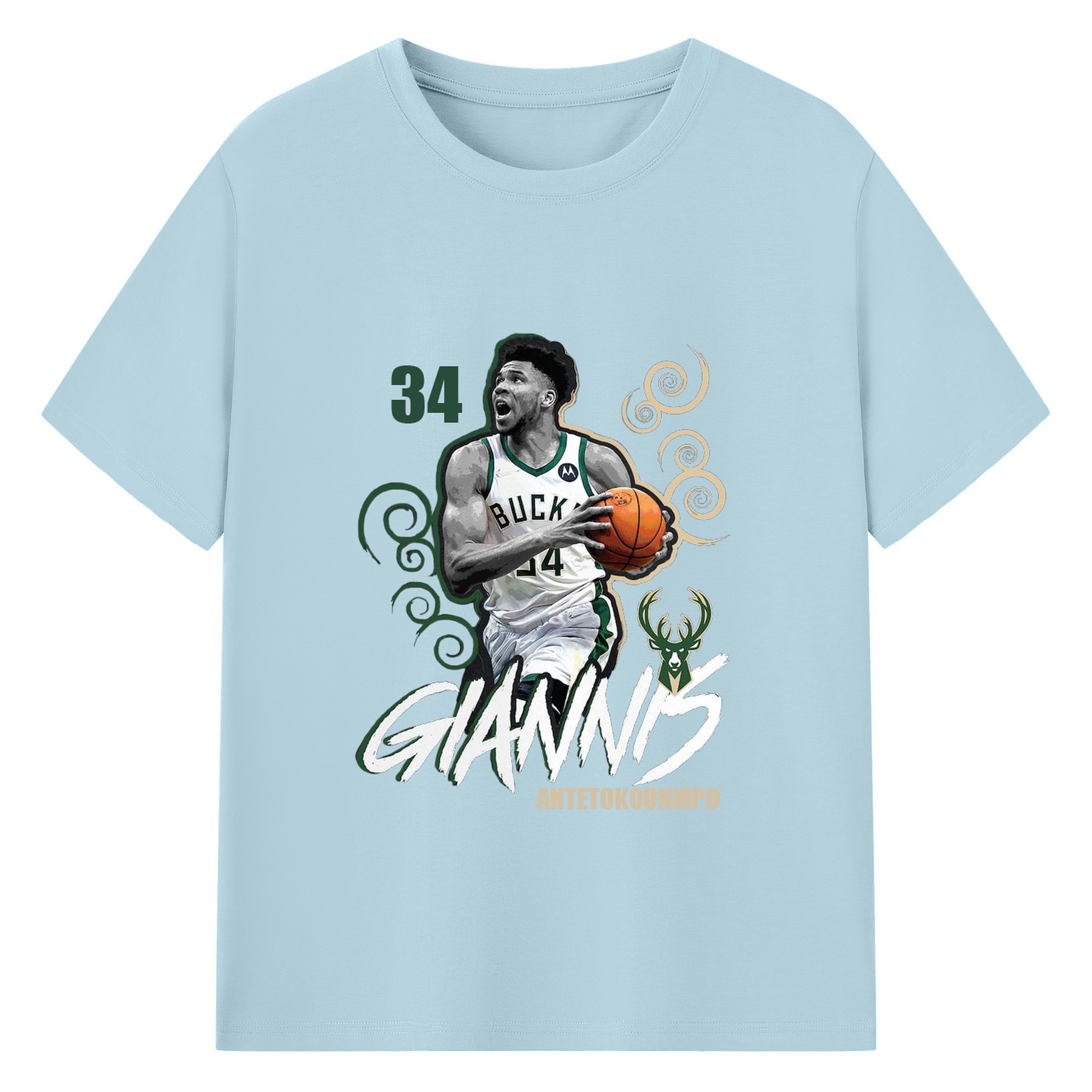 Giannis Antetokounmpo Bucks #34 artistic design Shirt - DIY NBA Heat Transfer T-Shirt – 180g Combed Cotton, Soft & Fitted for Basketball Fans – Customizable Graphic Tee for Game Day & Streetwear