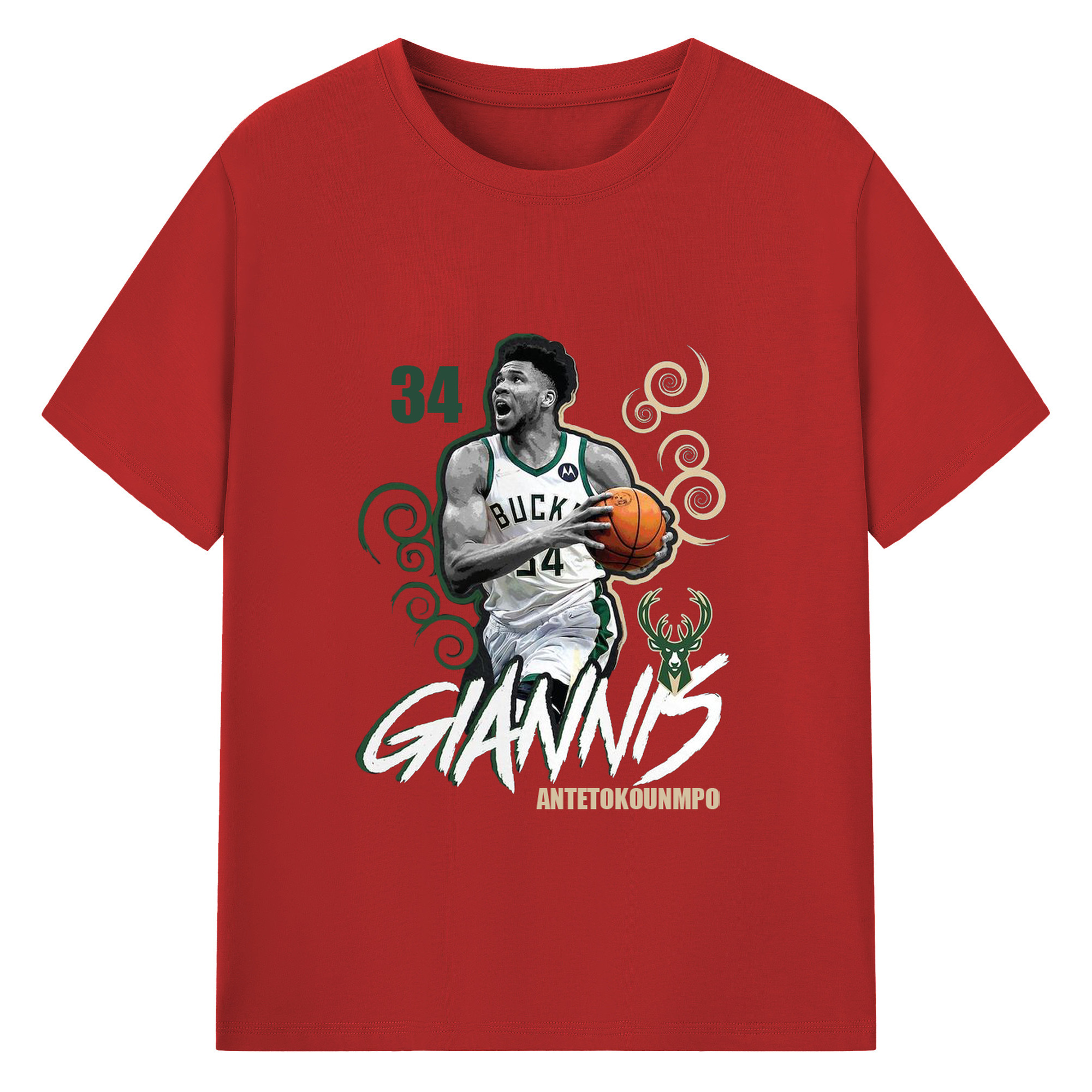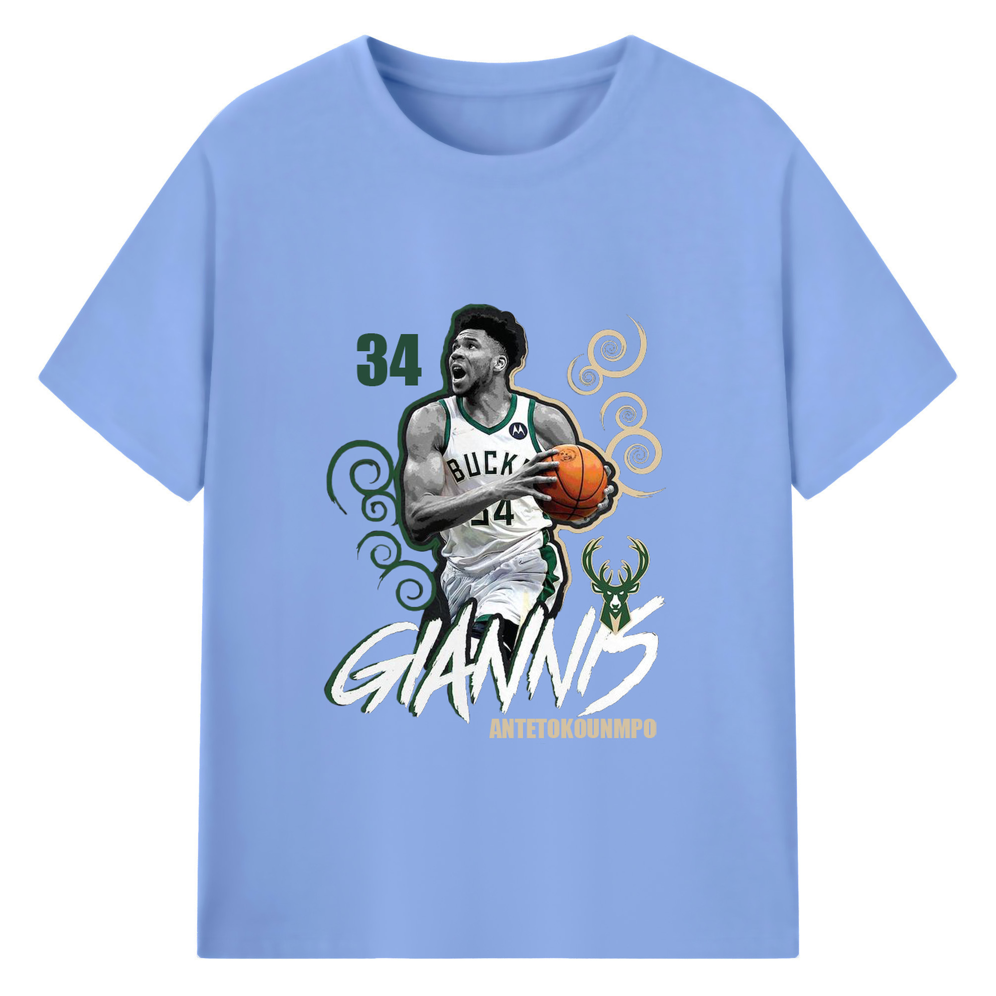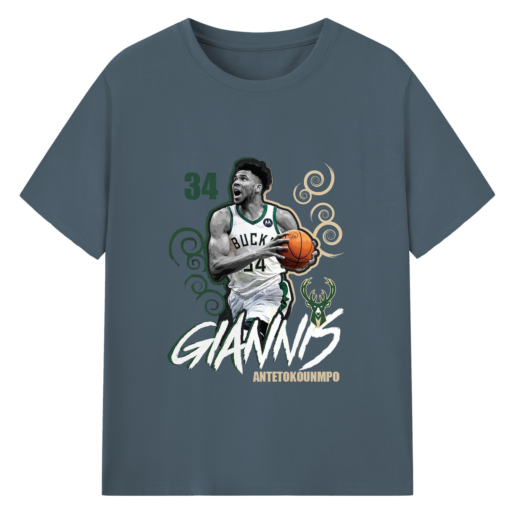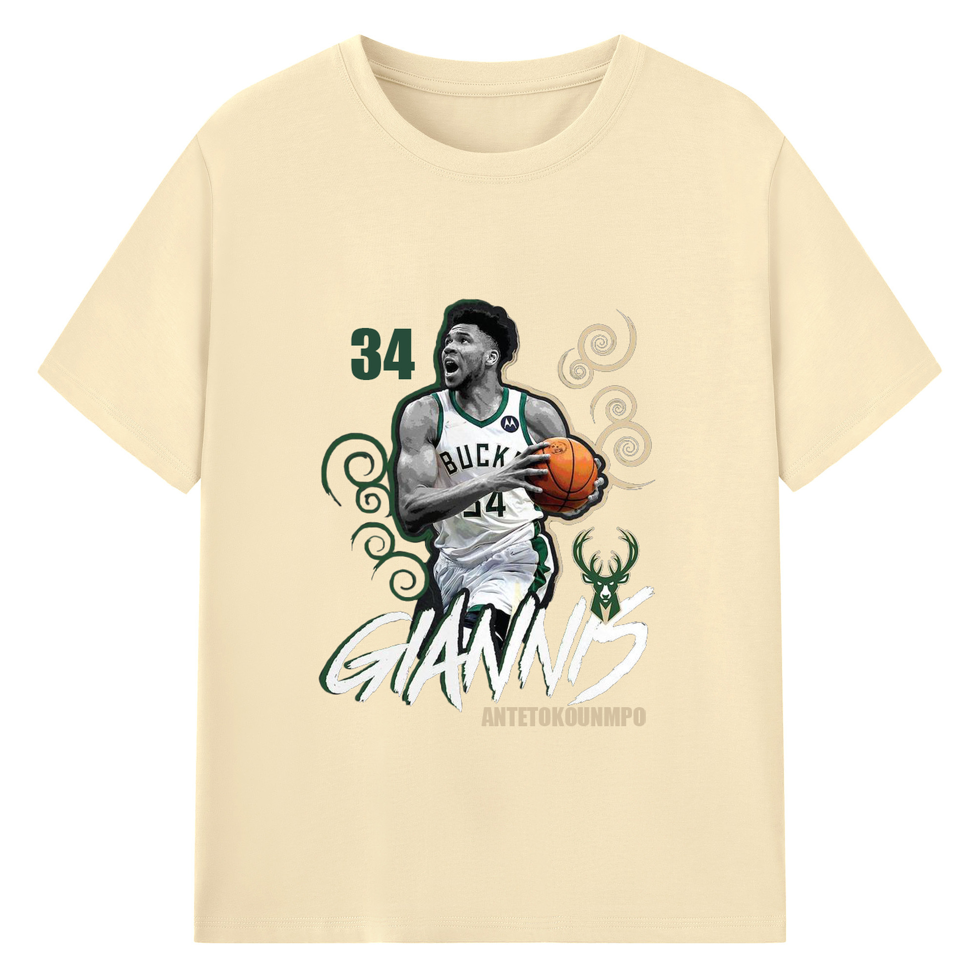 Giannis Antetokounmpo Bucks #34 artistic design Shirt - DIY NBA Heat Transfer T-Shirt – 180g Combed Cotton, Soft & Fitted for Basketball Fans – Customizable Graphic Tee for Game Day & Streetwear