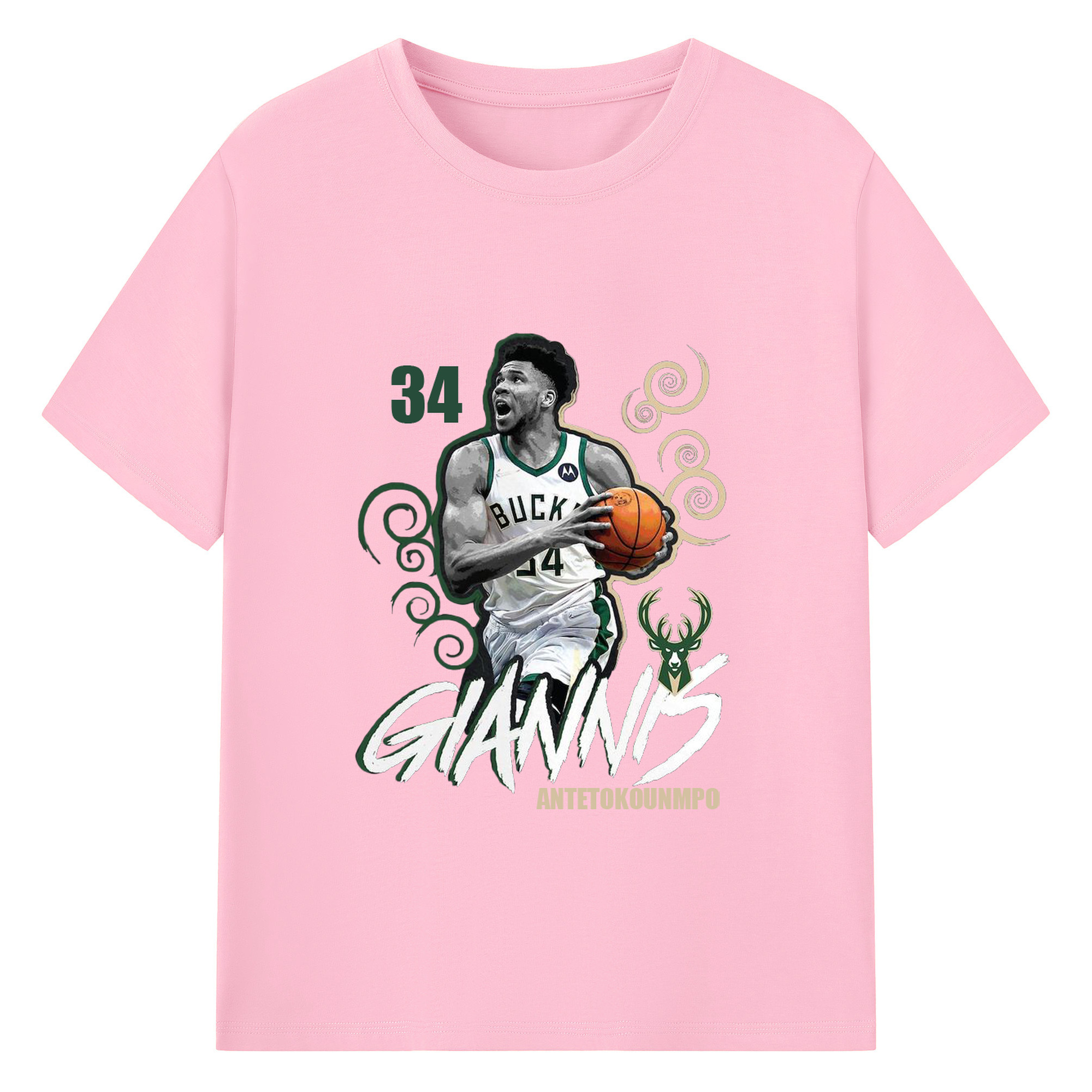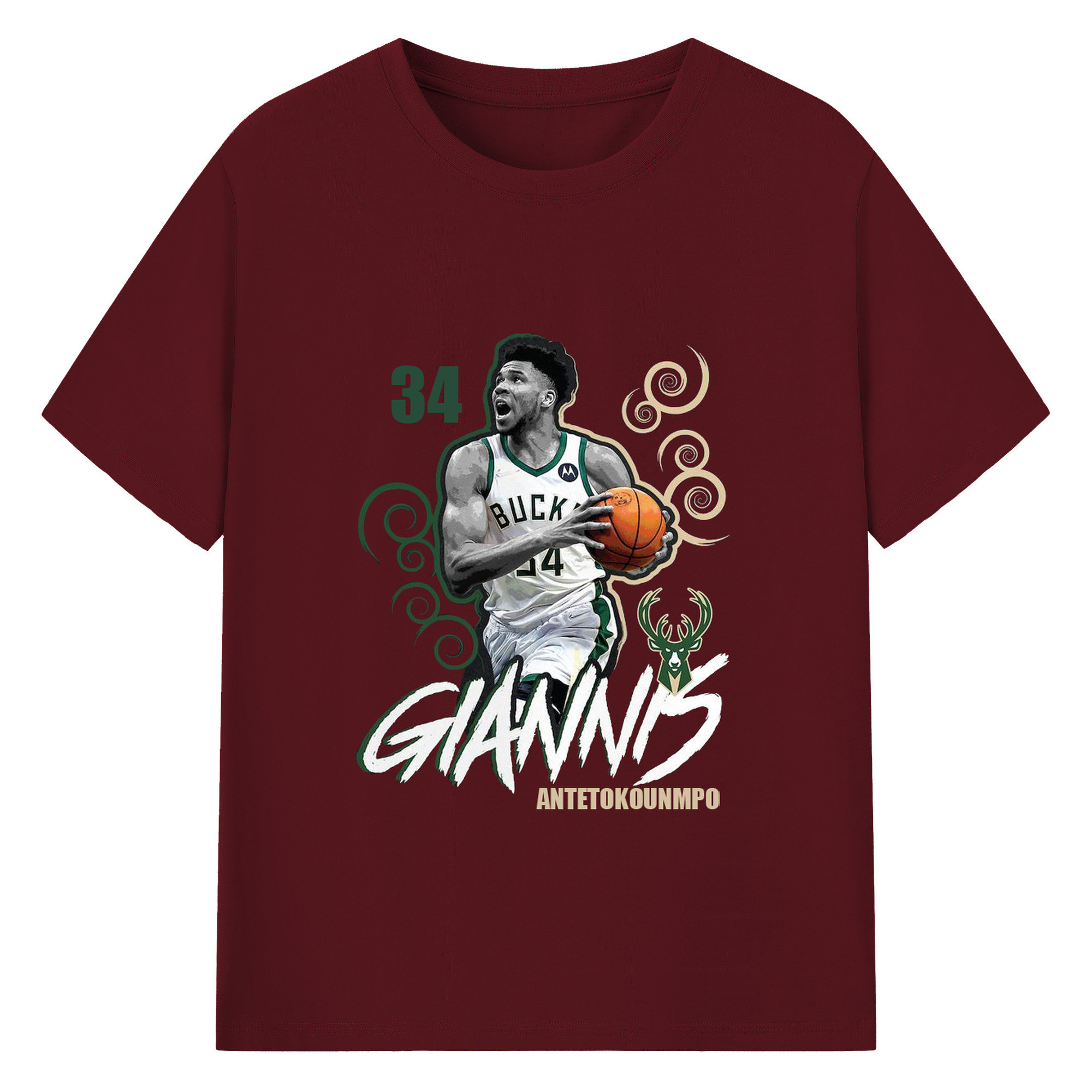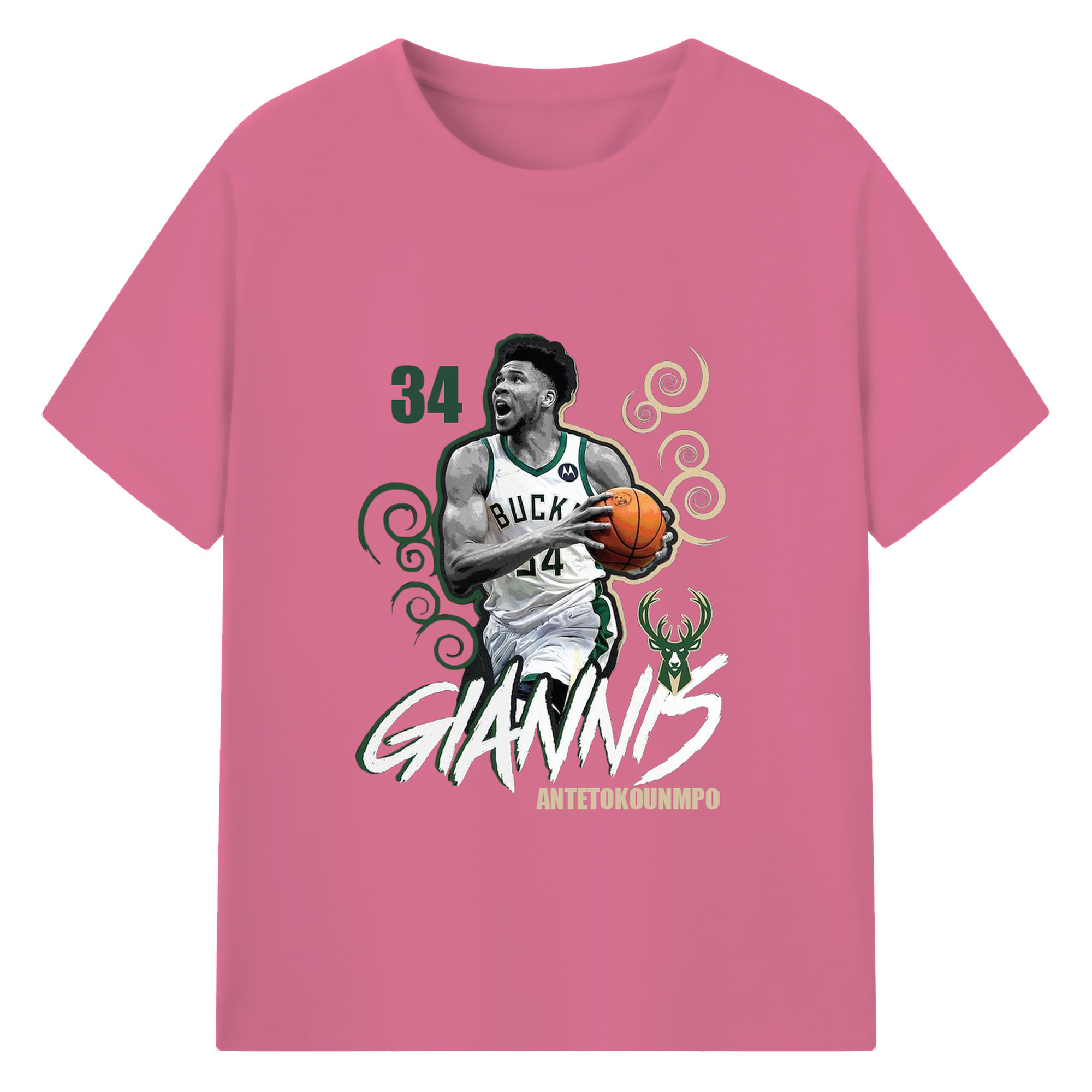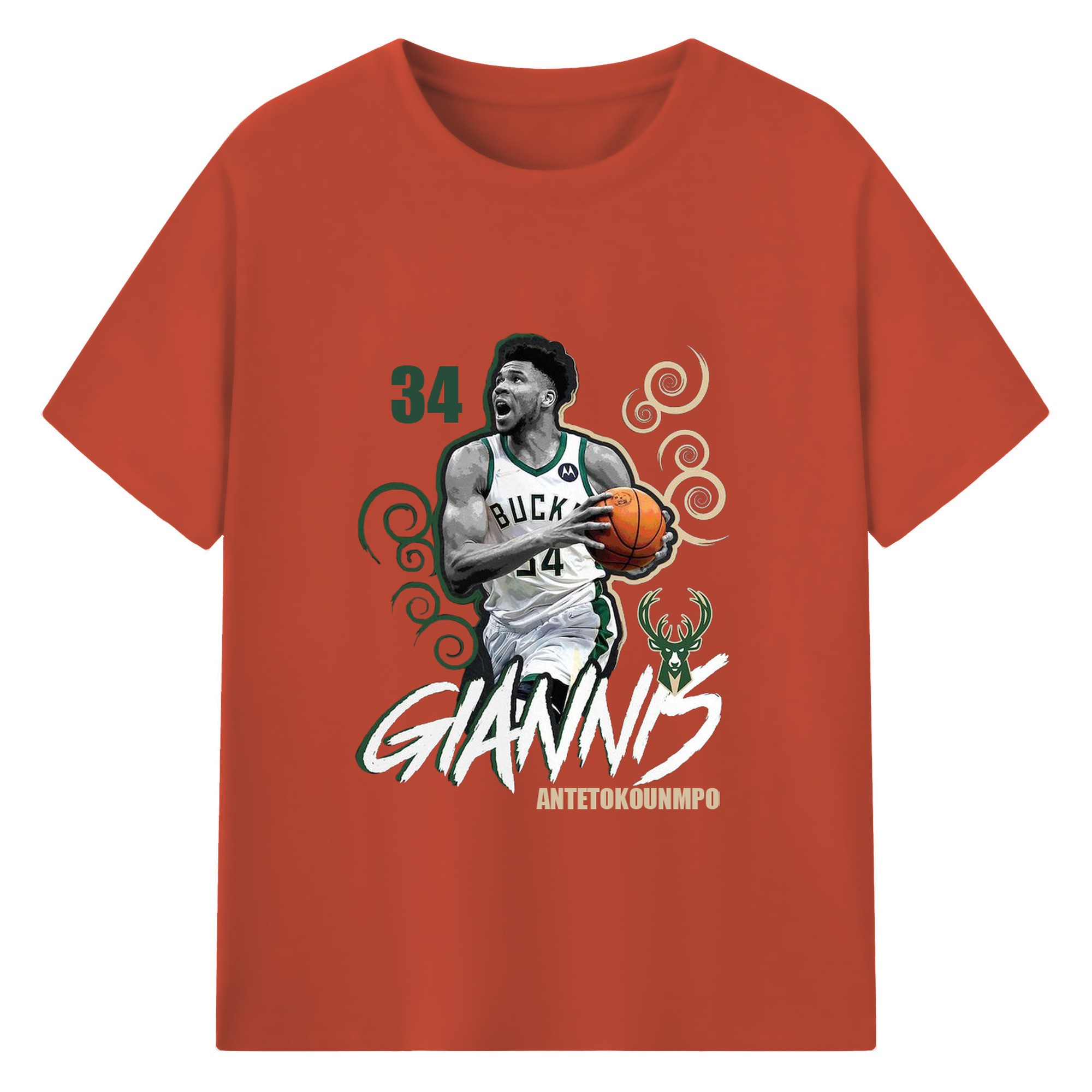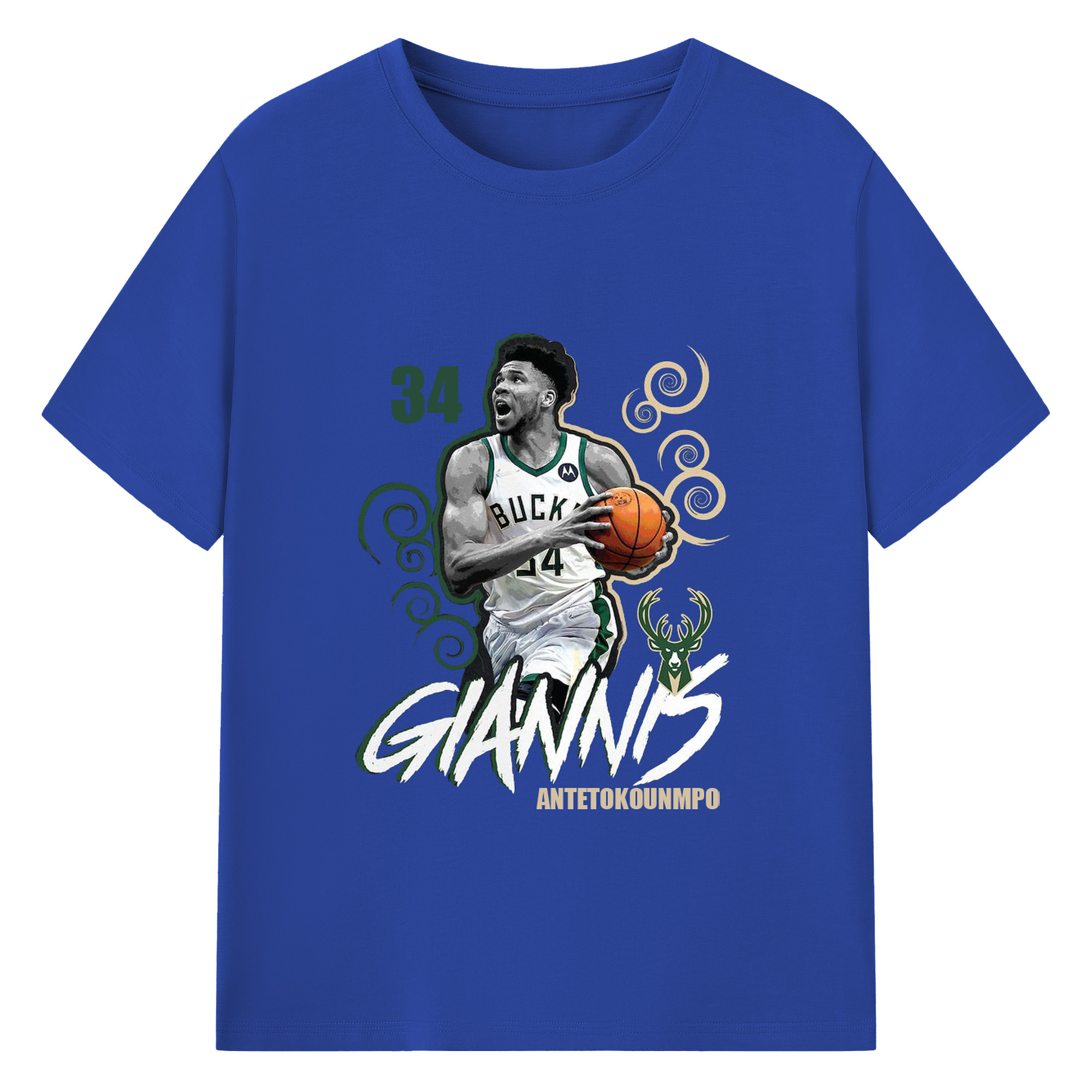 Giannis Antetokounmpo Bucks #34 artistic design Shirt - DIY NBA Heat Transfer T-Shirt – 180g Combed Cotton, Soft & Fitted for Basketball Fans – Customizable Graphic Tee for Game Day & Streetwear