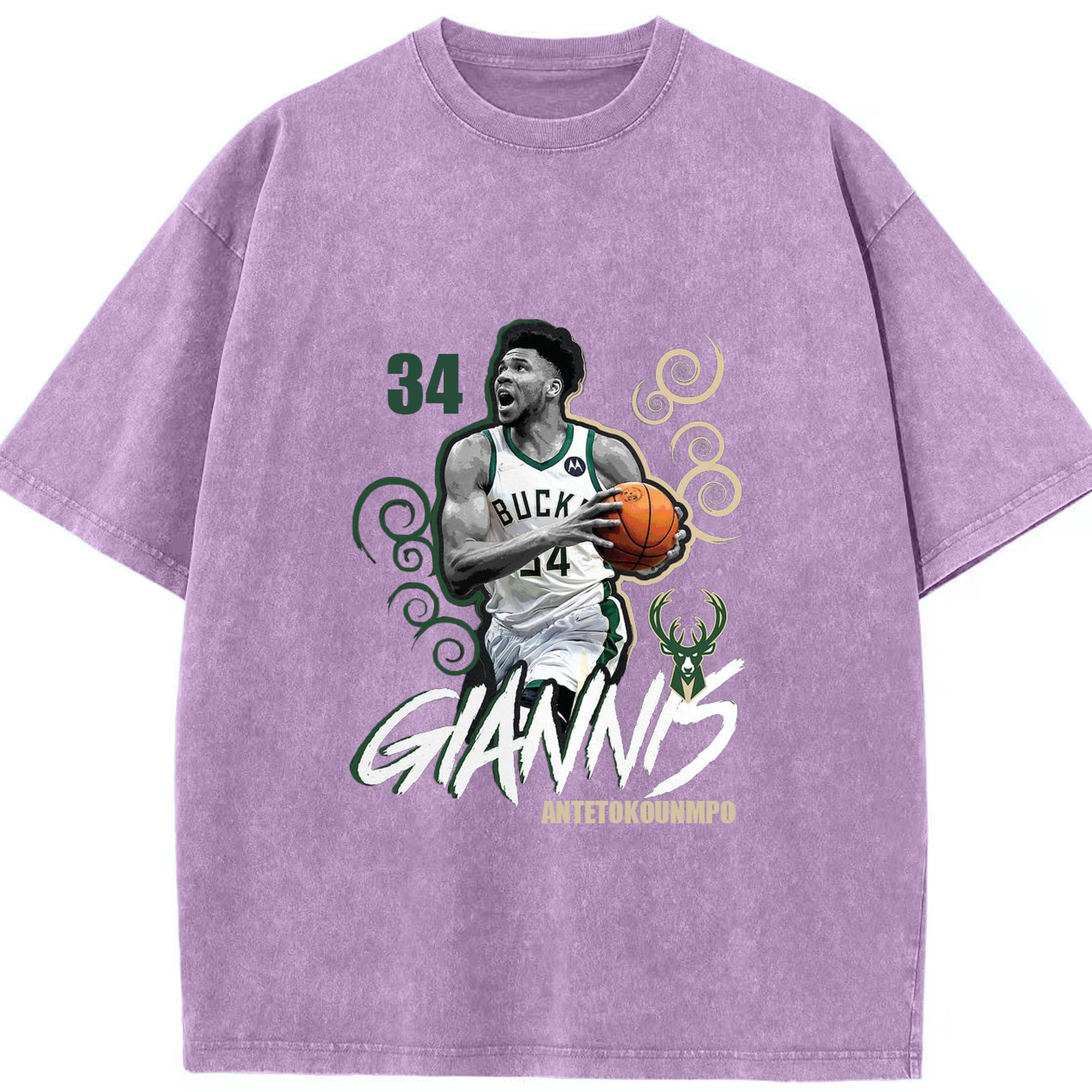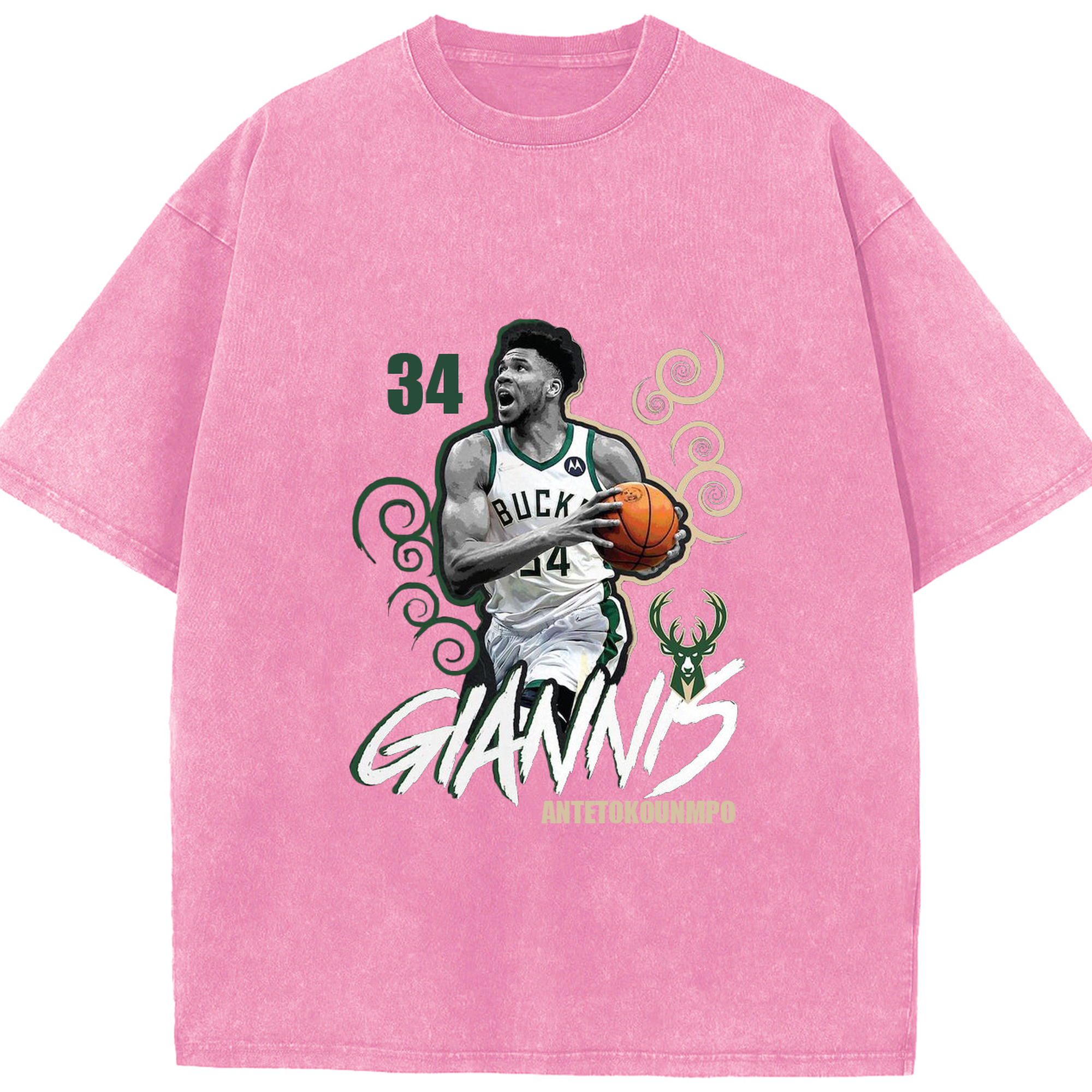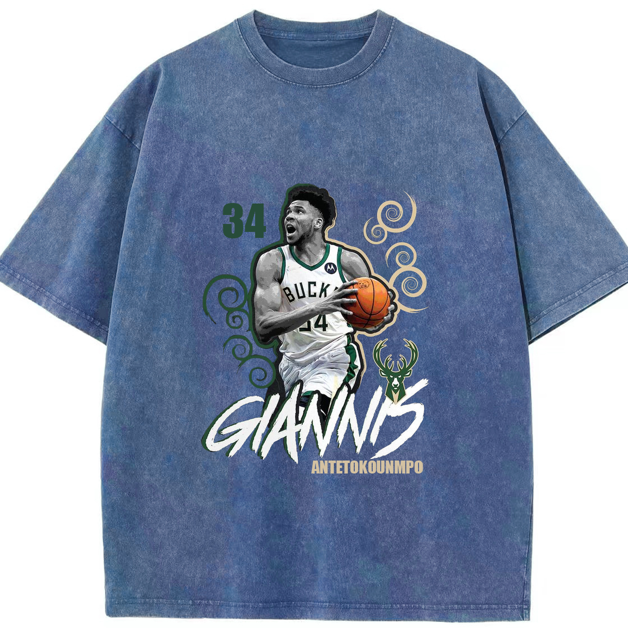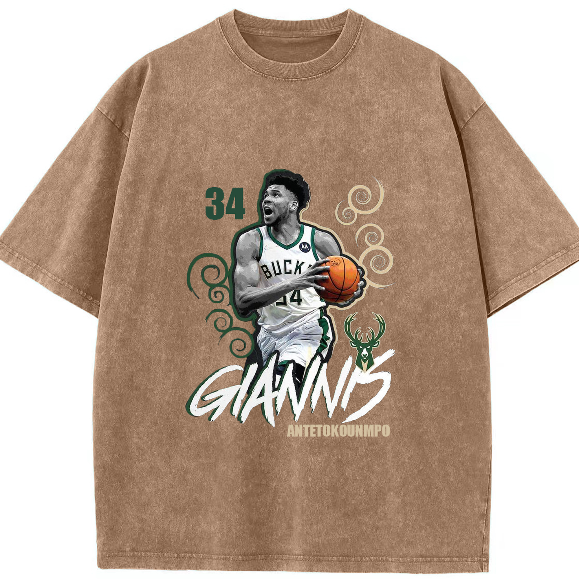Giannis Antetokounmpo Bucks #34 artistic design Shirt - Customizable NBA Oversized T-Shirt – 230g Combed Cotton, Soft & Vintage Wash – Heat Transfer Print for Basketball Fans – Stylish Casual Wear for Game Day & Everyday Comfort