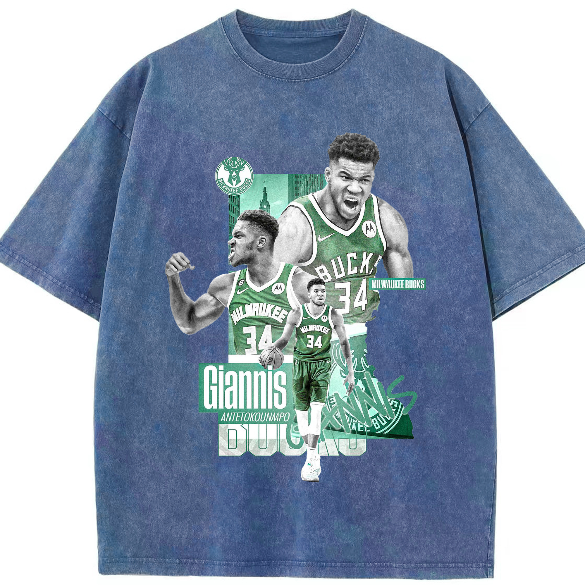 Giannis Antetokounmpo City of Bucks Hero Shirt - Washed Vintage Look 230g Cotton Oversized T-Shirt With Front Heat Transfer Print – Soft, Lightweight, Stylish Fit – Comfortable Casual Wear For Sports & Everyday Use