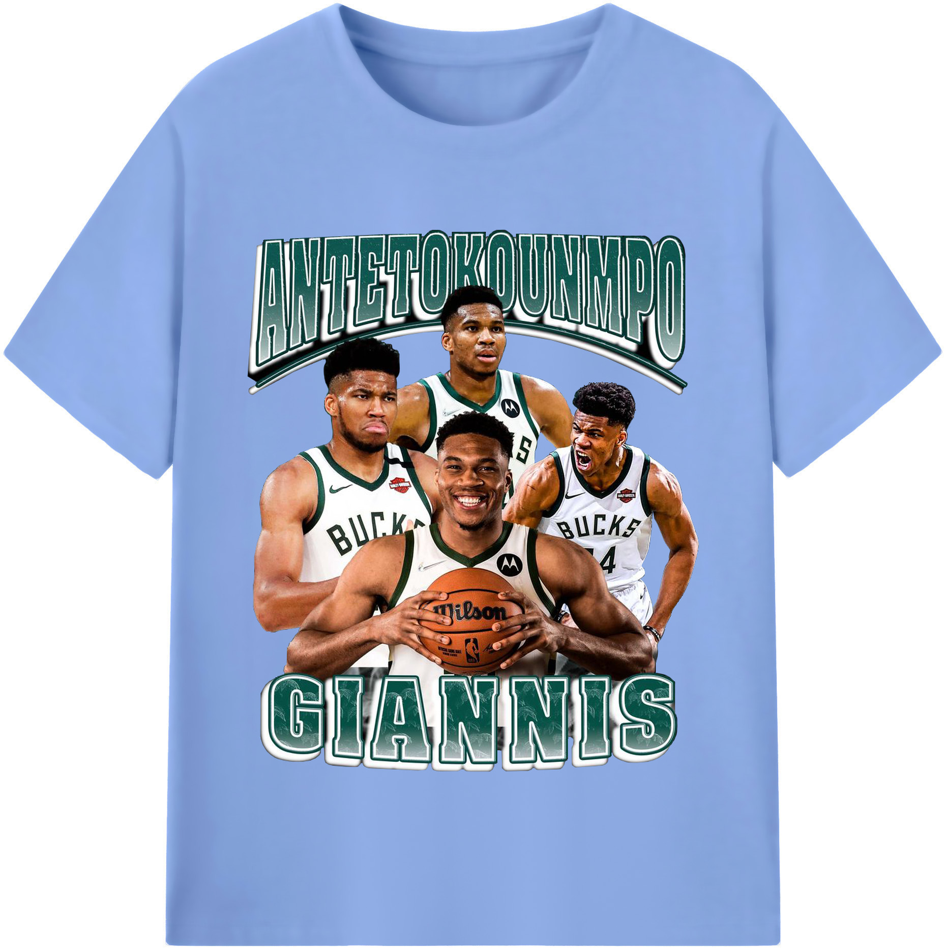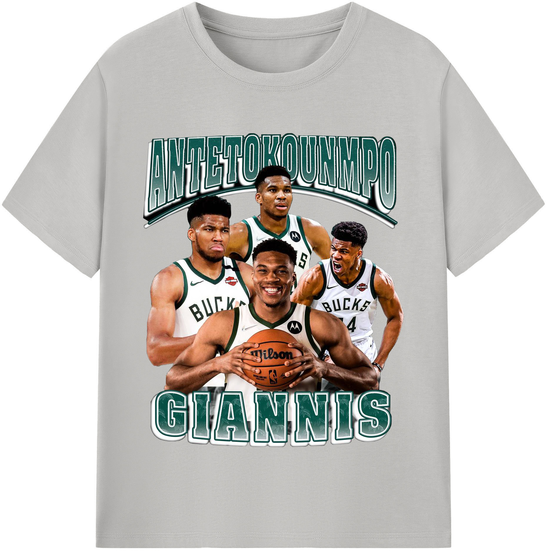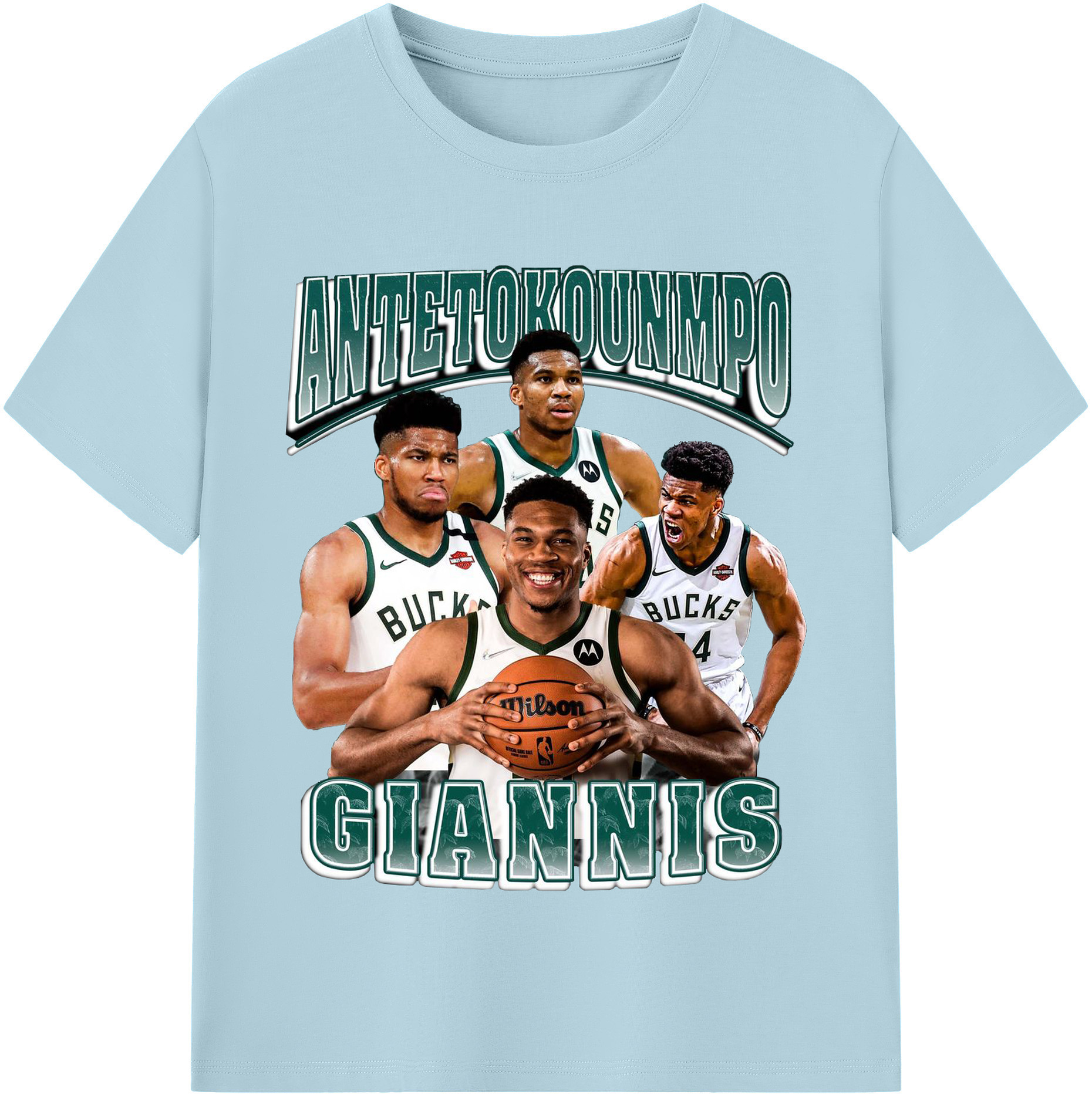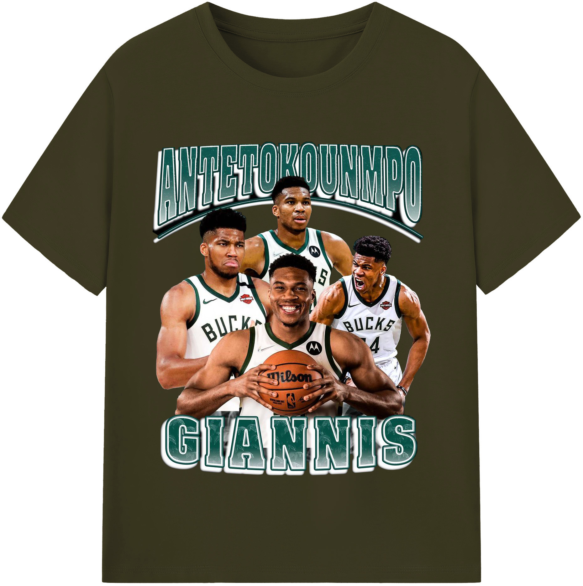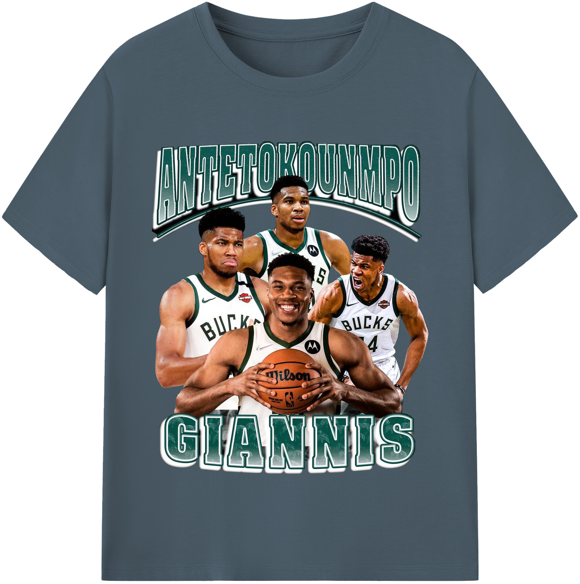 Giannis Antetokounmpo Multi-Pose Fan Shirt - 180g Cotton T-Shirt With Front Heat Transfer Print – Soft, Lightweight, Fitted Design – Comfortable Casual Wear For Sports & Everyday Use