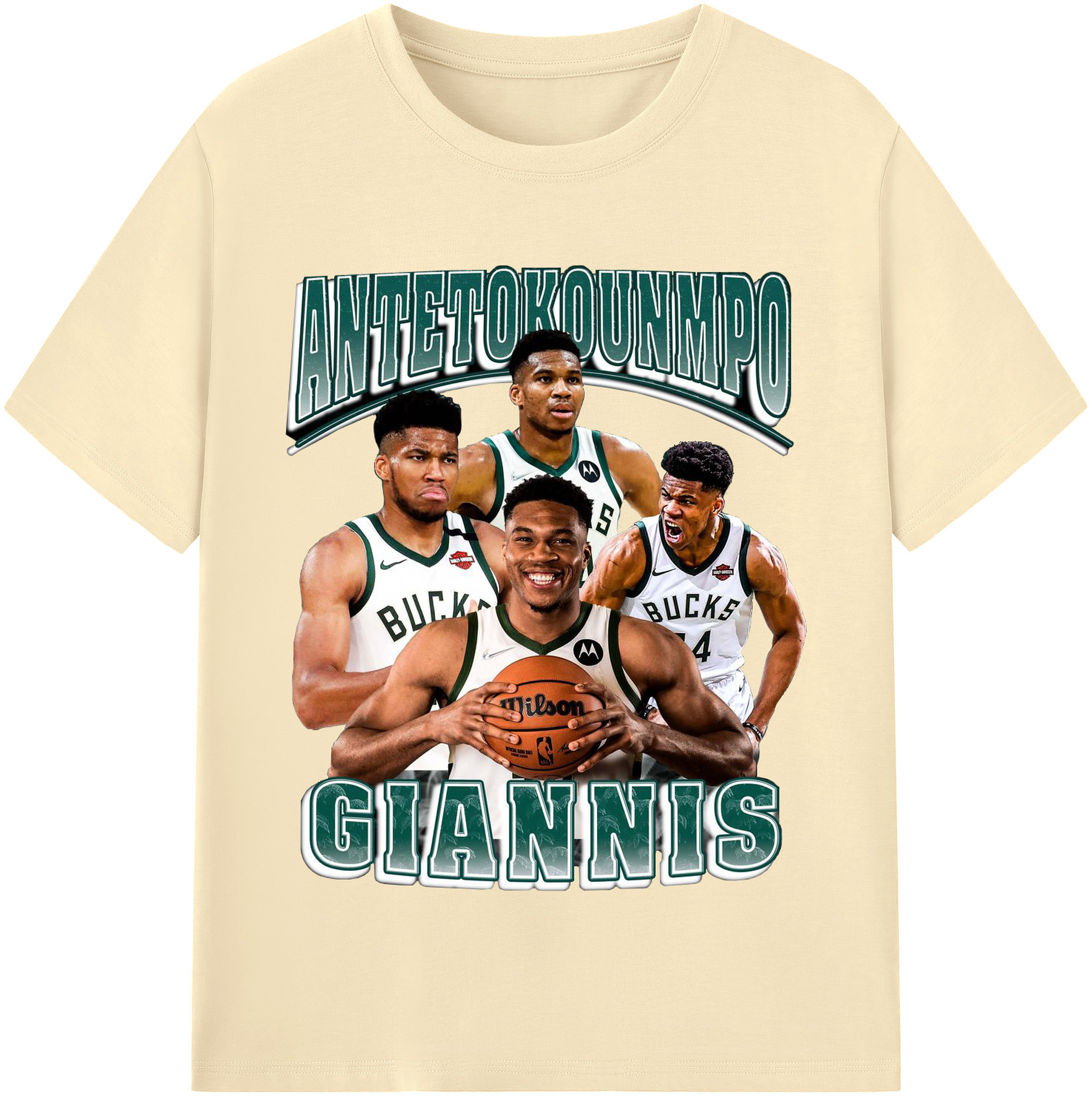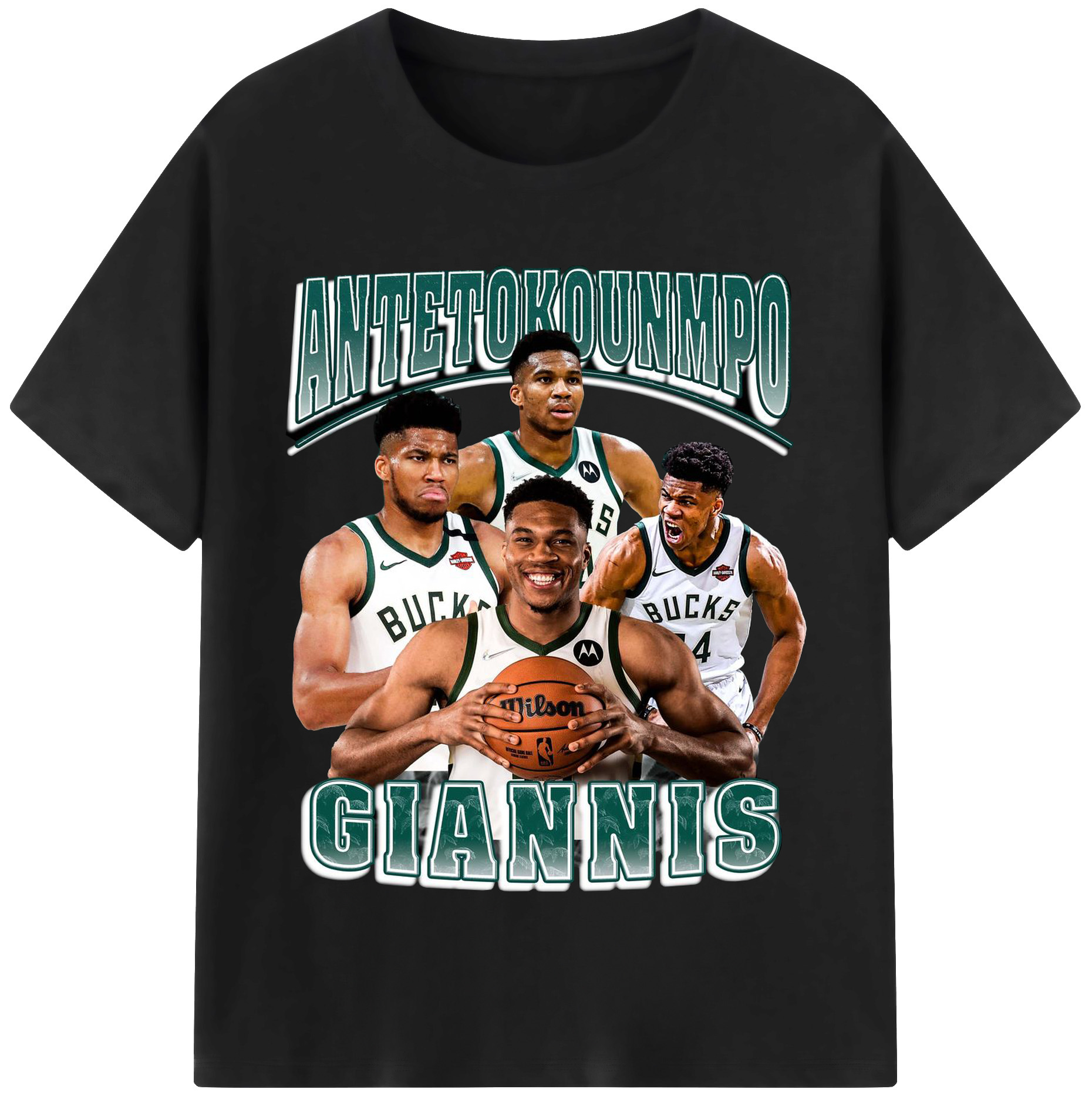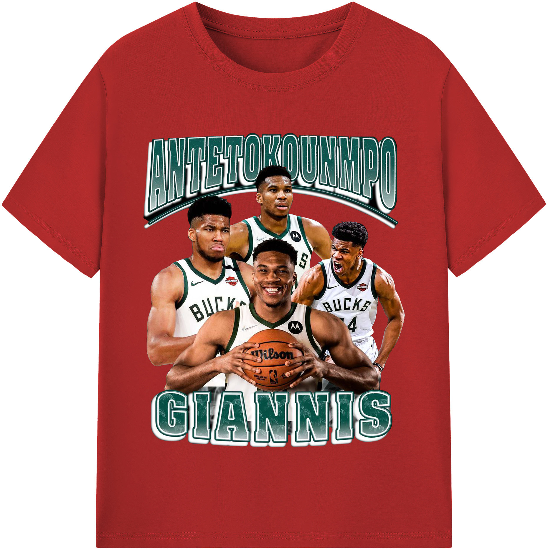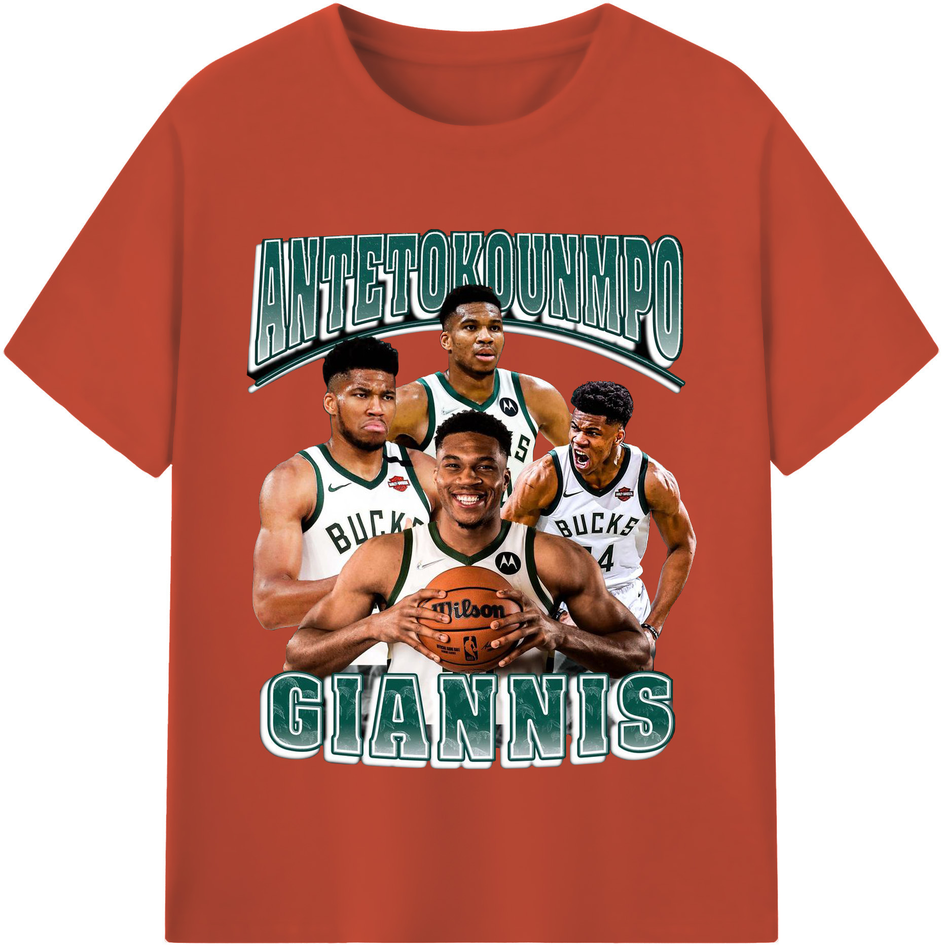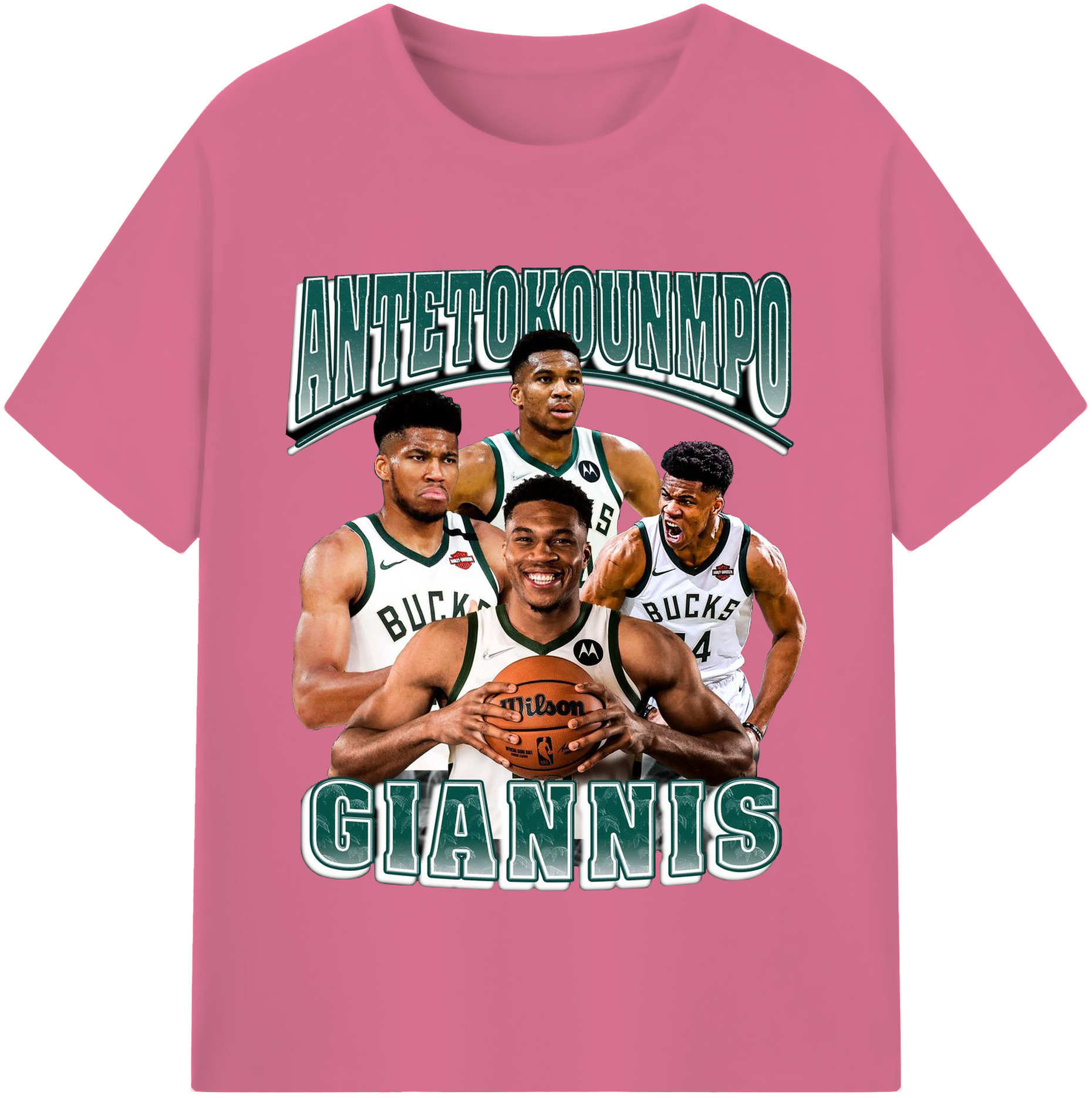 Giannis Antetokounmpo Multi-Pose Fan Shirt - 180g Cotton T-Shirt With Front Heat Transfer Print – Soft, Lightweight, Fitted Design – Comfortable Casual Wear For Sports & Everyday Use