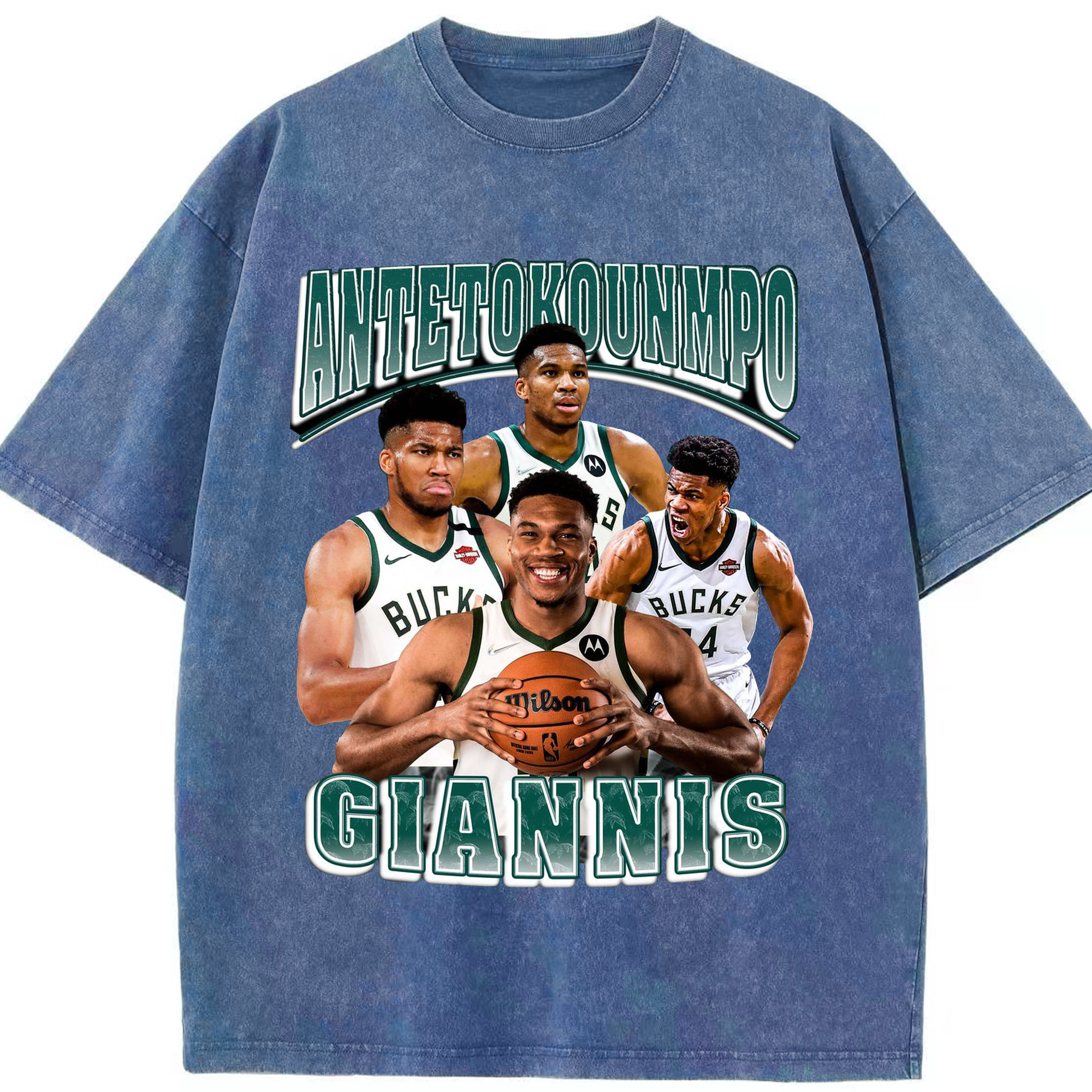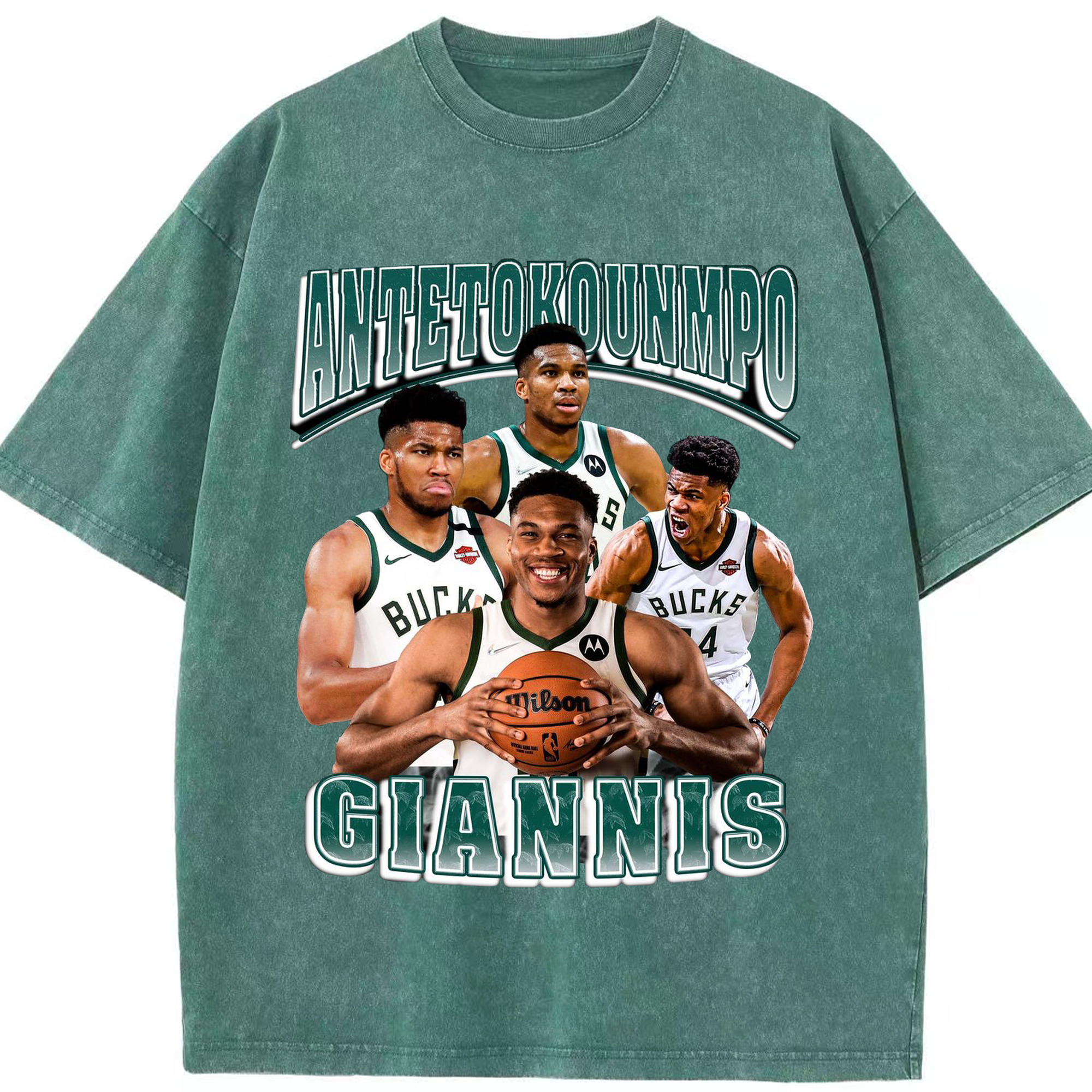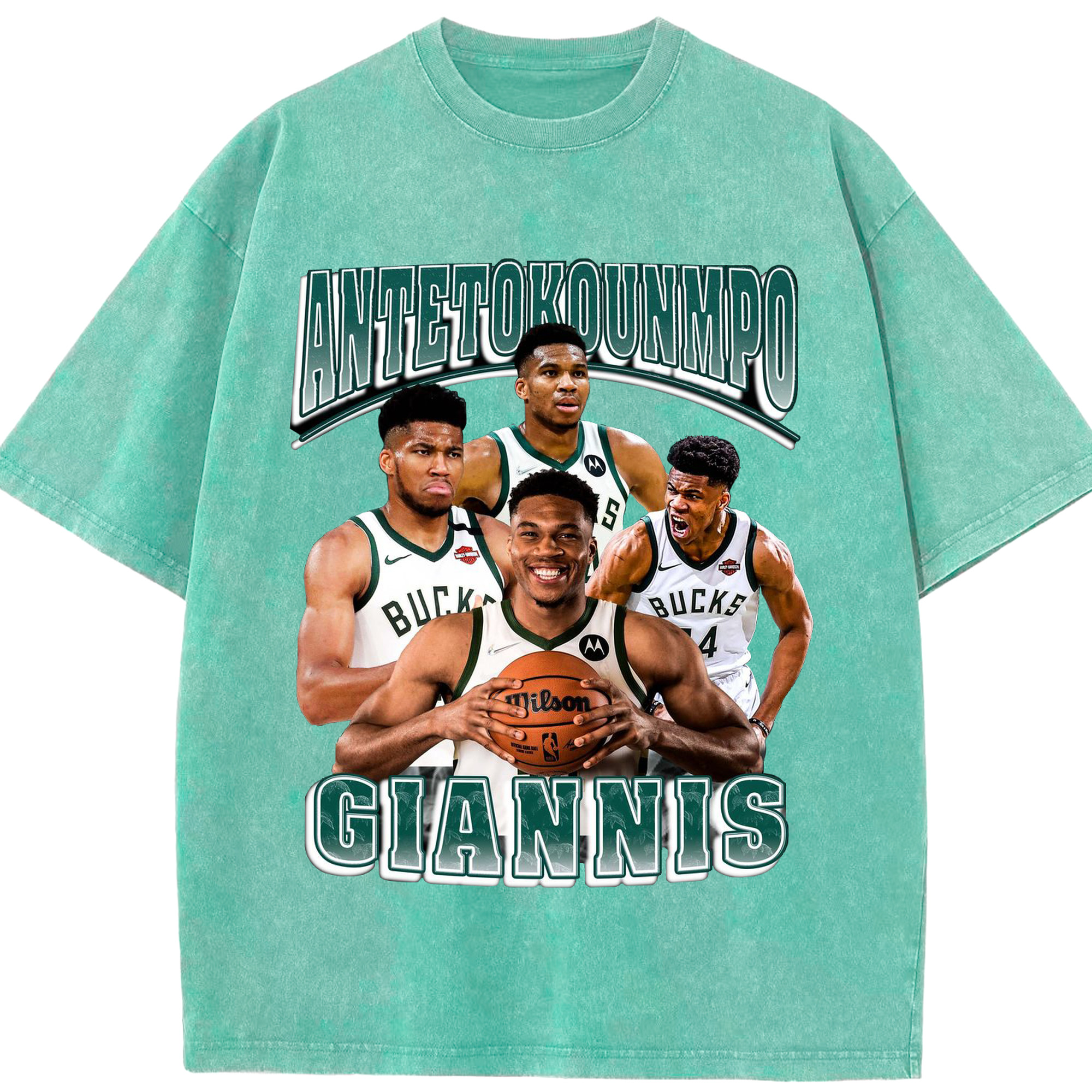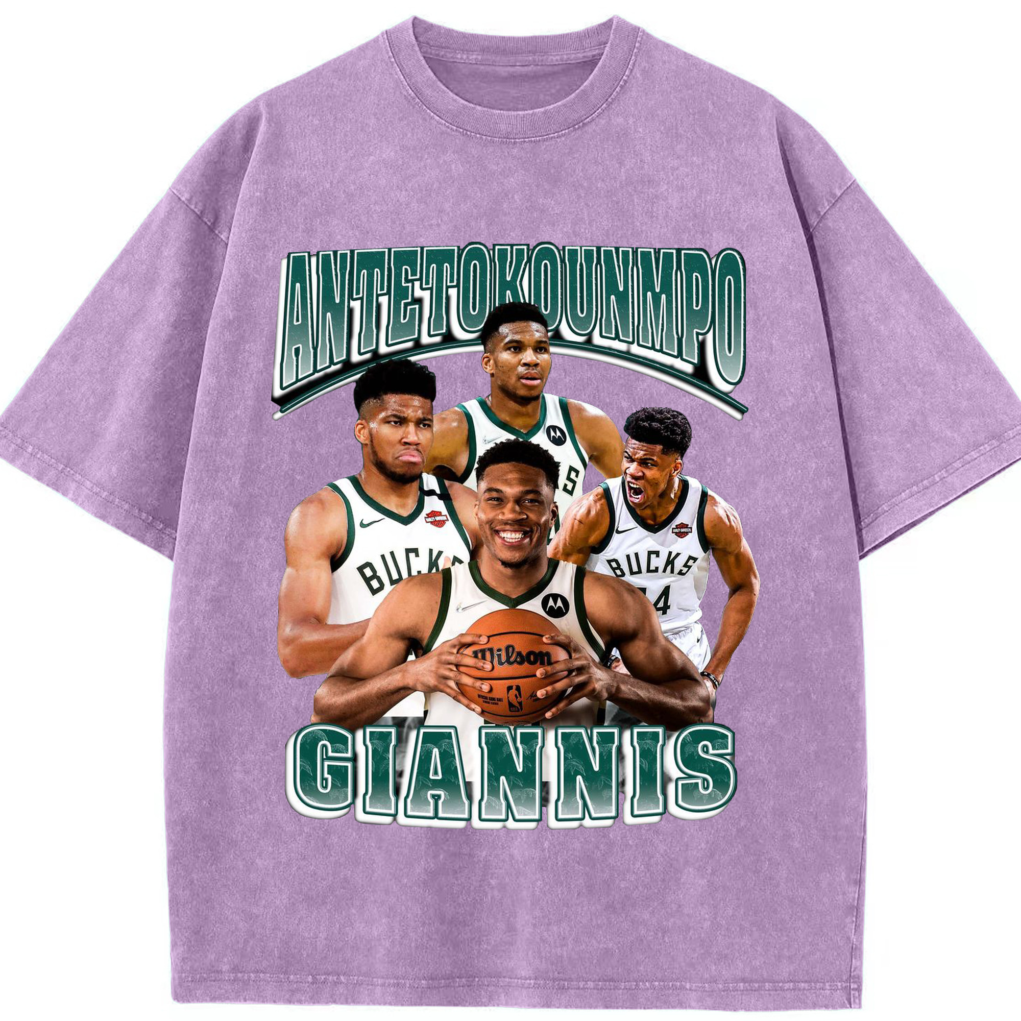 Giannis Antetokounmpo Multi-Pose Fan Shirt - Washed Vintage Look 230g Cotton Oversized T-Shirt With Front Heat Transfer Print – Soft, Lightweight, Stylish Fit – Comfortable Casual Wear For Sports & Everyday Use