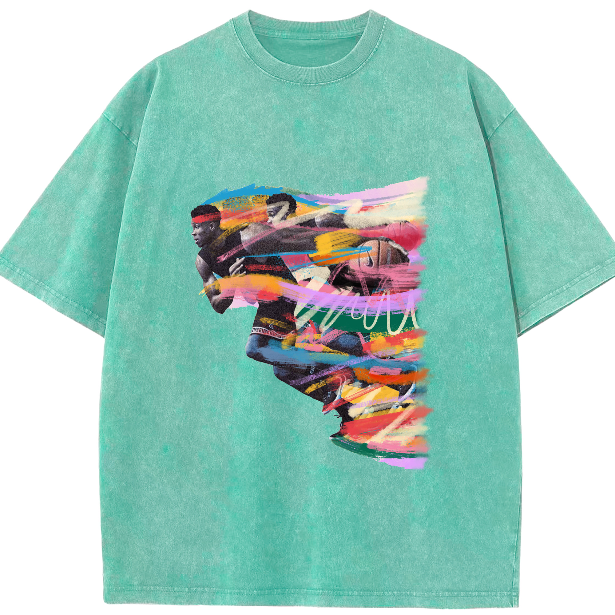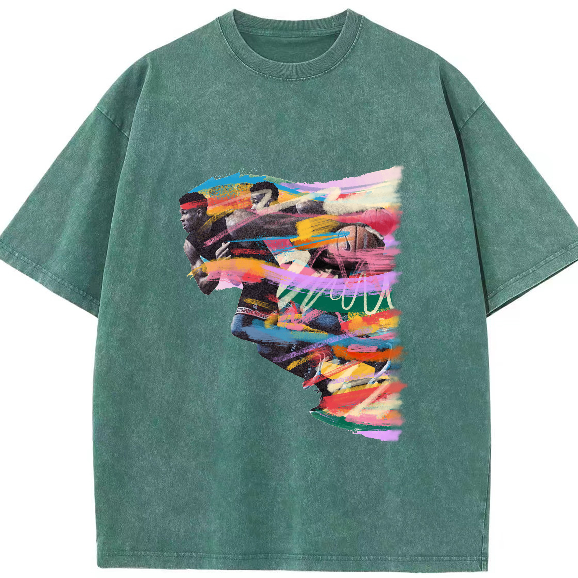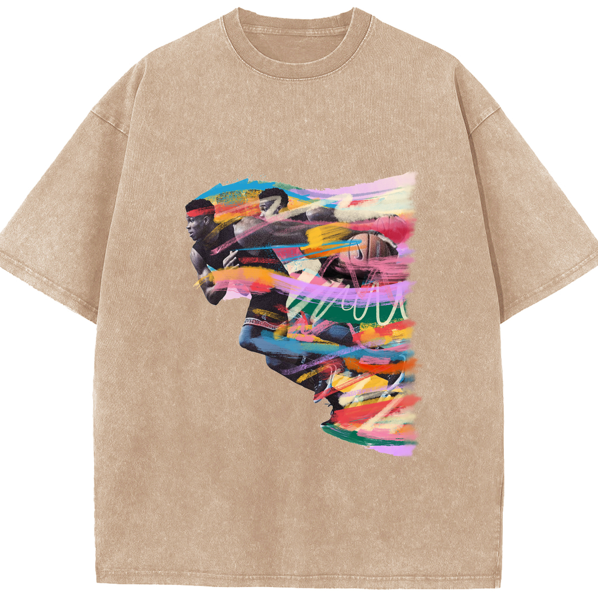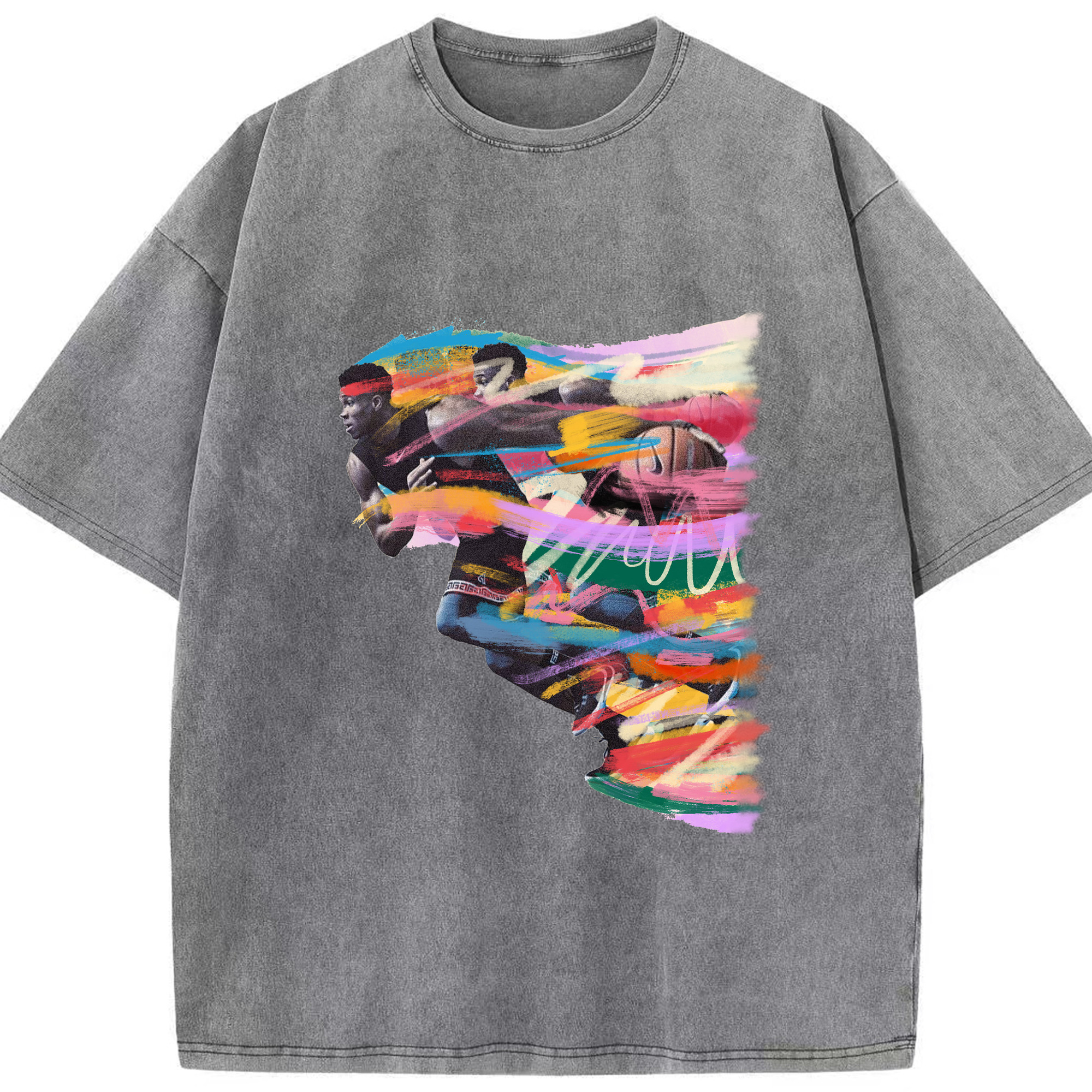 Giannis Antetokounmpo Run Colorful Brushstroke Basketball Art Shirt - Customizable NBA Oversized T-Shirt – 230g Combed Cotton, Soft & Vintage Wash – Heat Transfer Print for Basketball Fans – Stylish Casual Wear for Game Day & Everyday Comfort