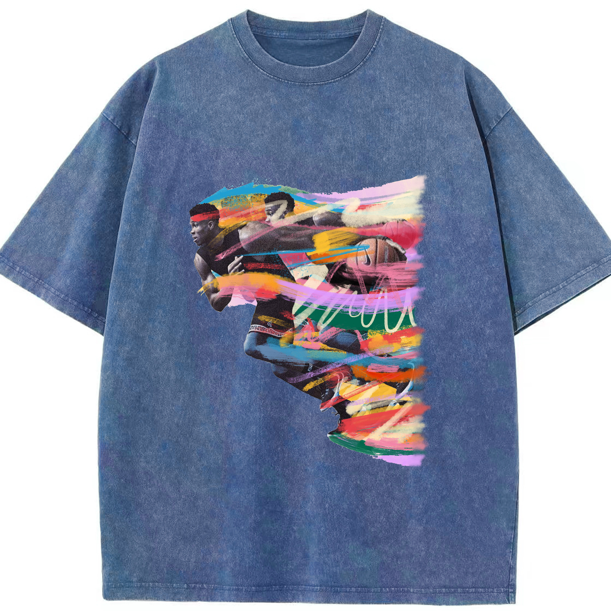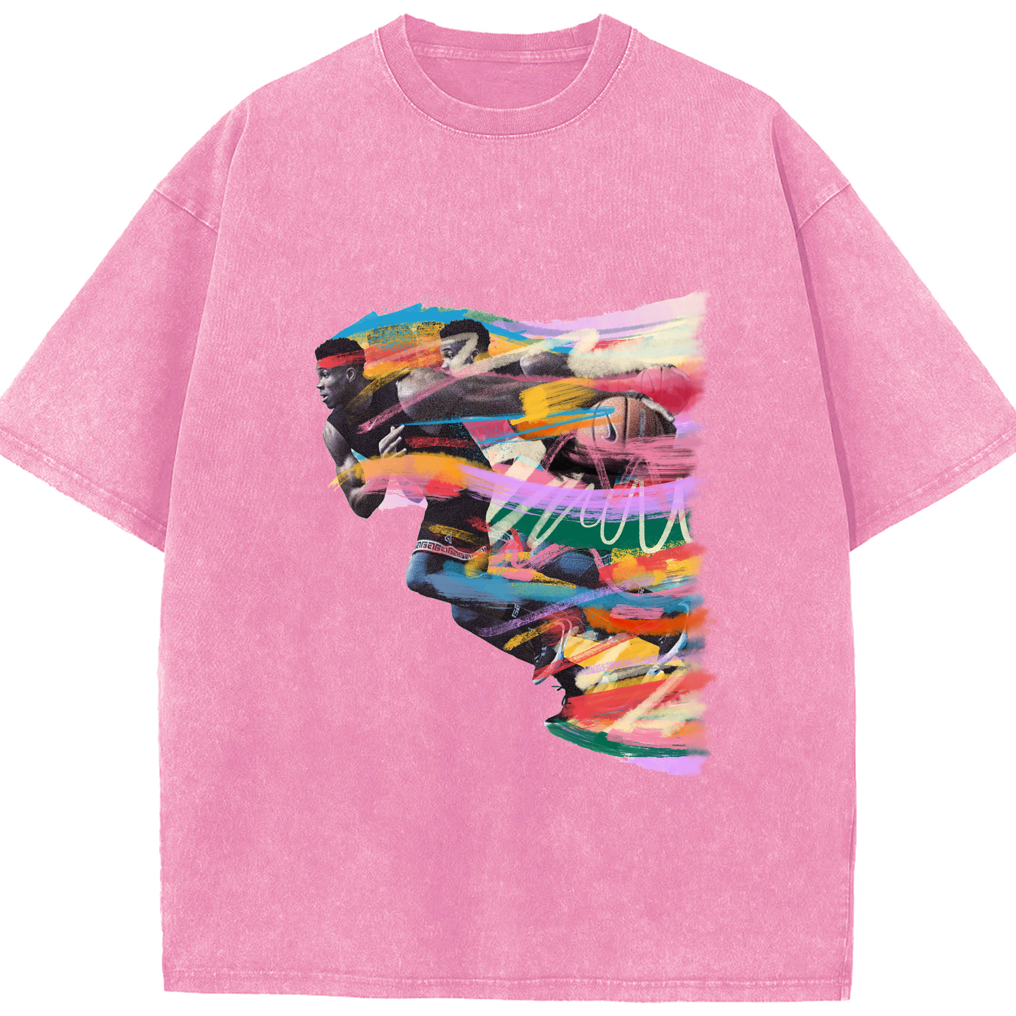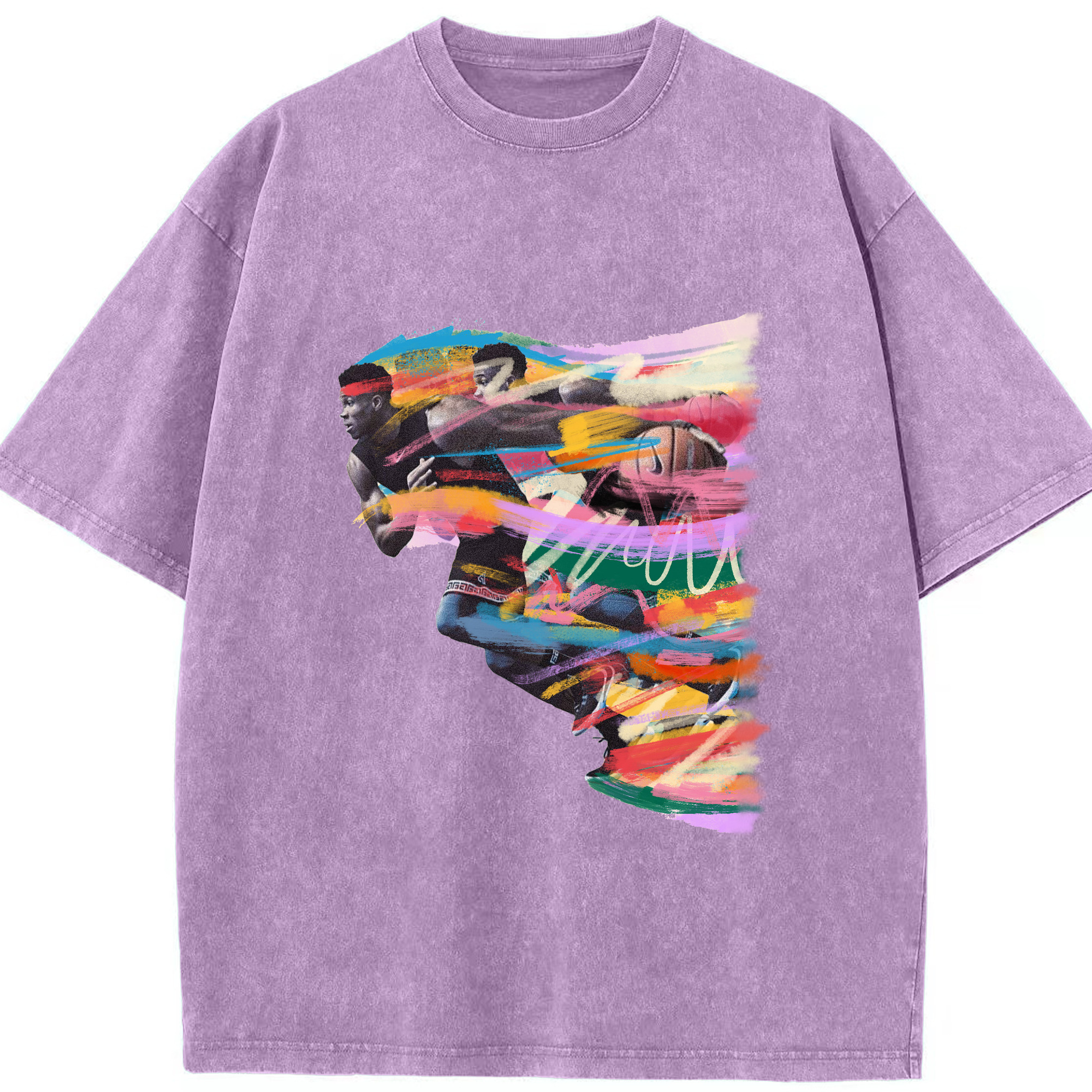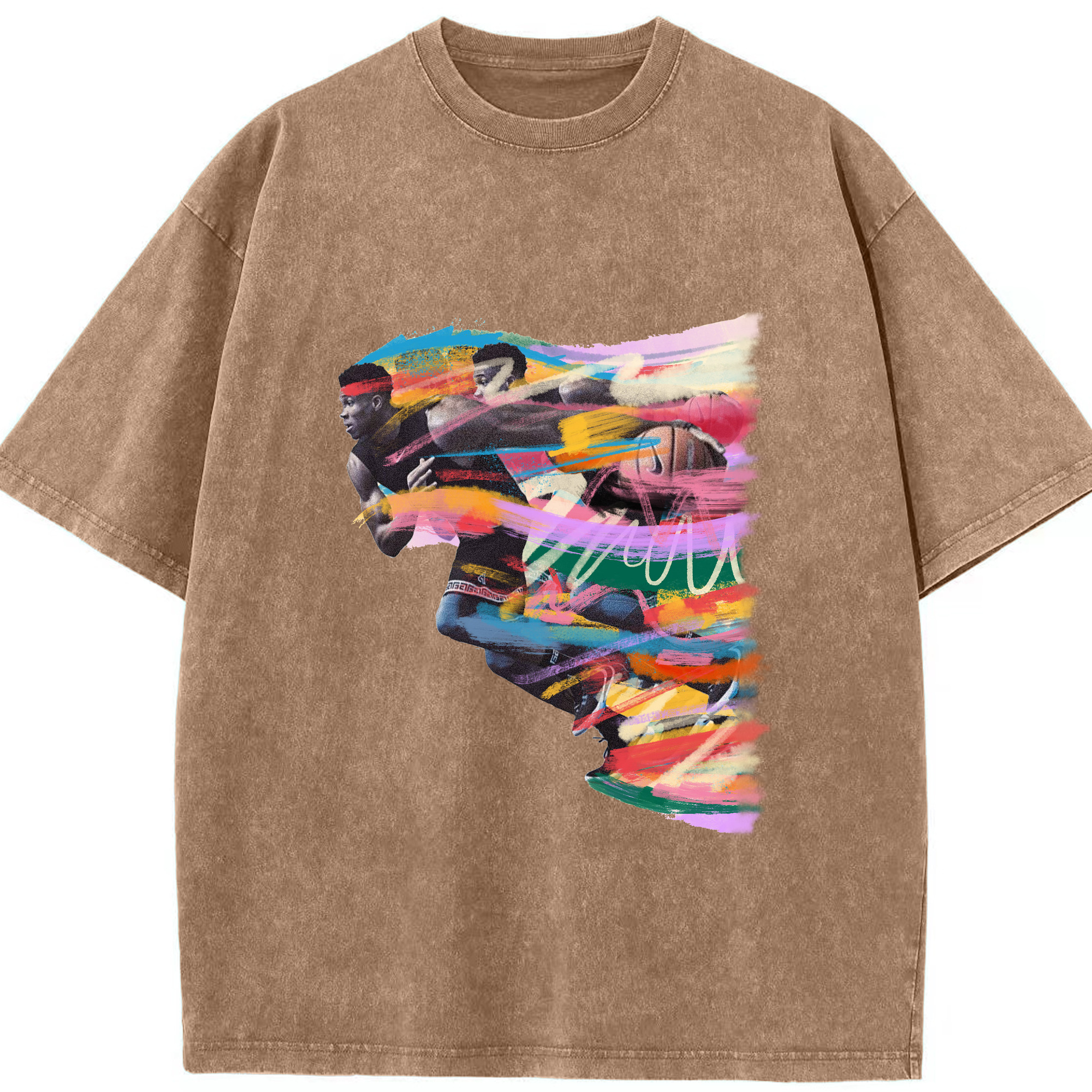 Giannis Antetokounmpo Run Colorful Brushstroke Basketball Art Shirt - Customizable NBA Oversized T-Shirt – 230g Combed Cotton, Soft & Vintage Wash – Heat Transfer Print for Basketball Fans – Stylish Casual Wear for Game Day & Everyday Comfort