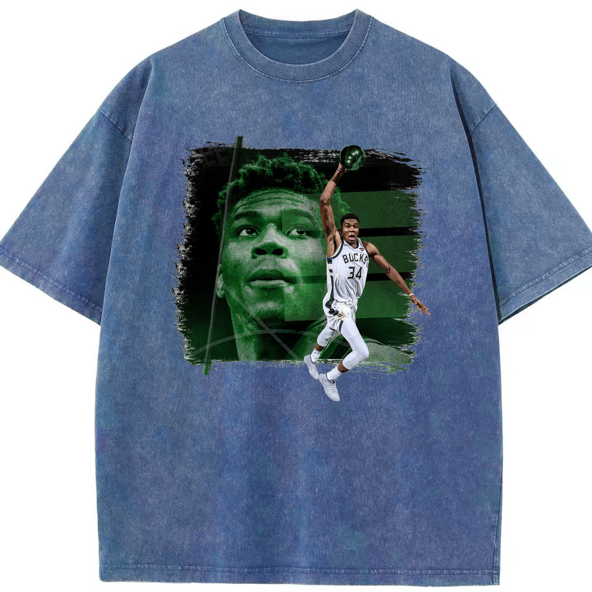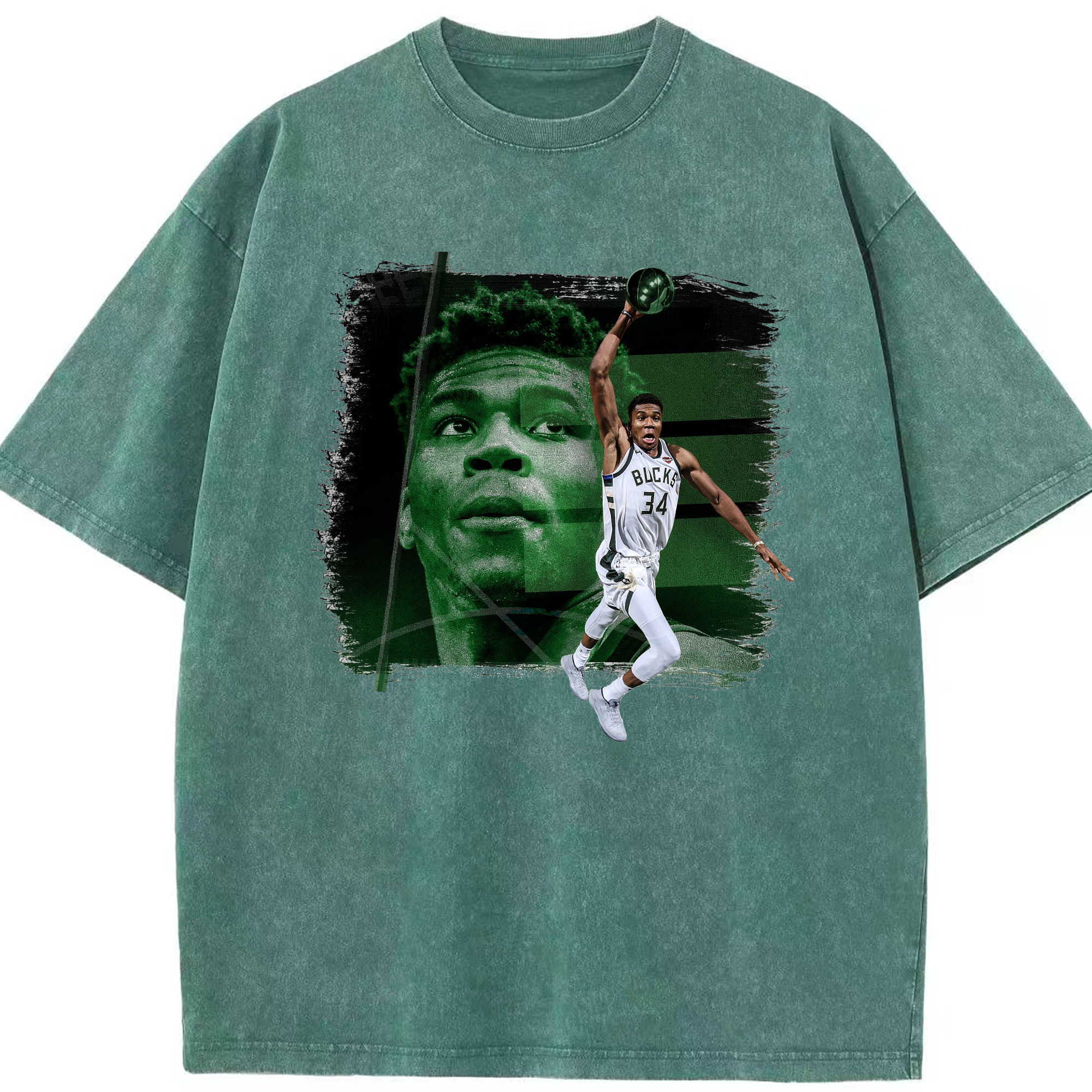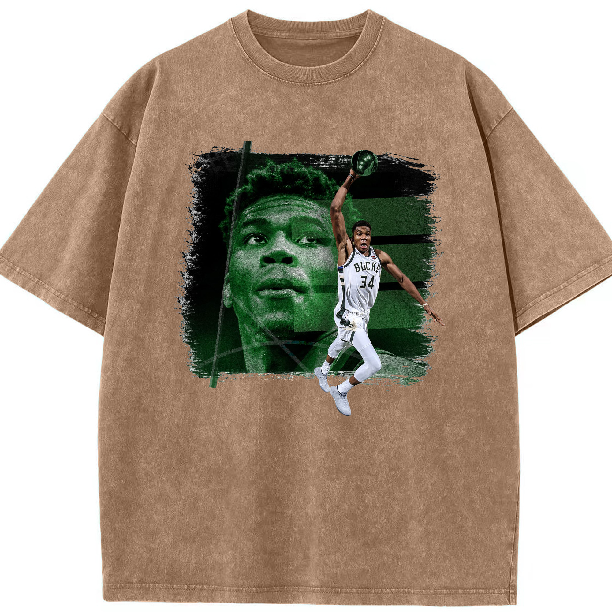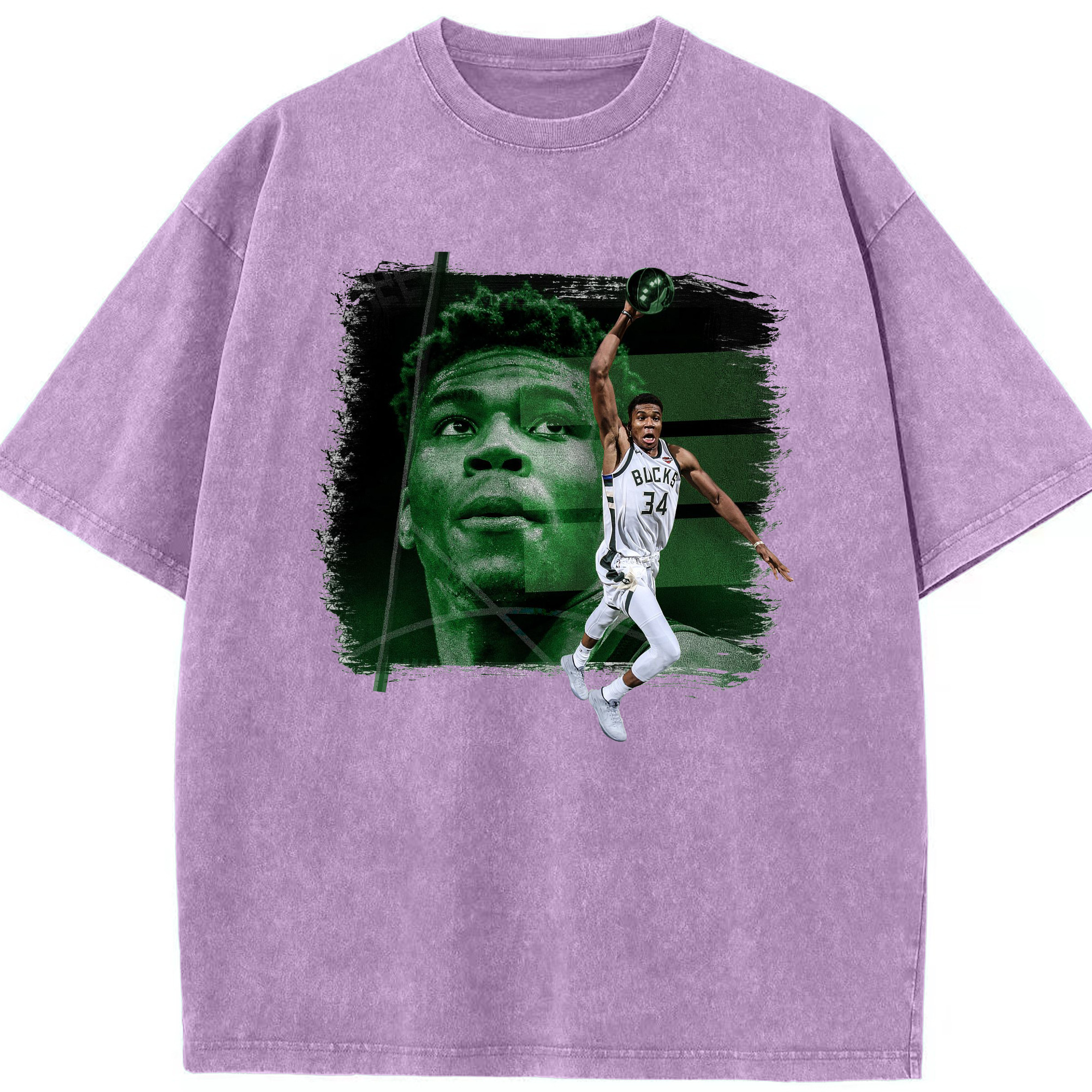 Giannis Antetokounmpo's slam dunk - Washed Vintage Look 230g Cotton Oversized T-Shirt With Front Heat Transfer Print – Soft, Lightweight, Stylish Fit – Comfortable Casual Wear For Sports & Everyday Use