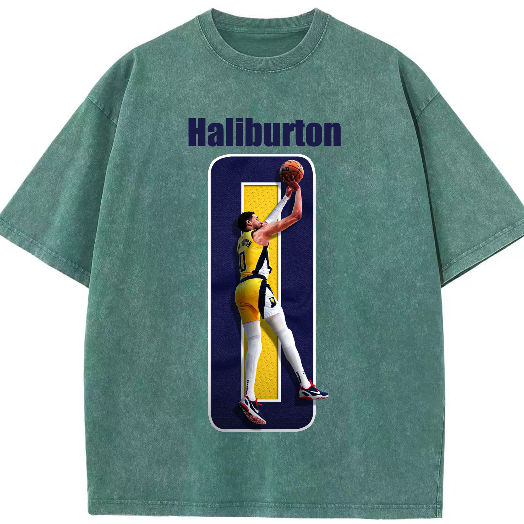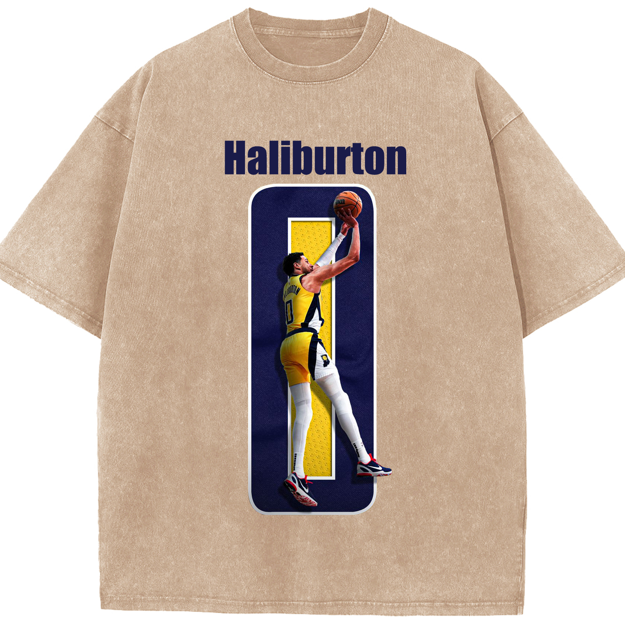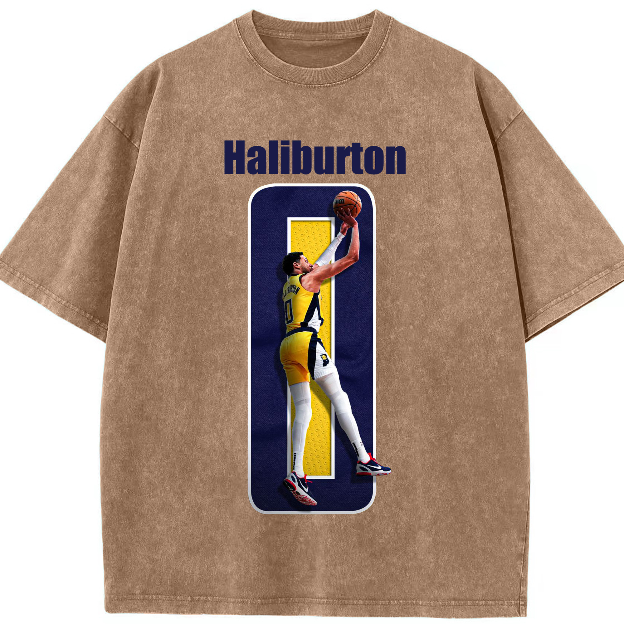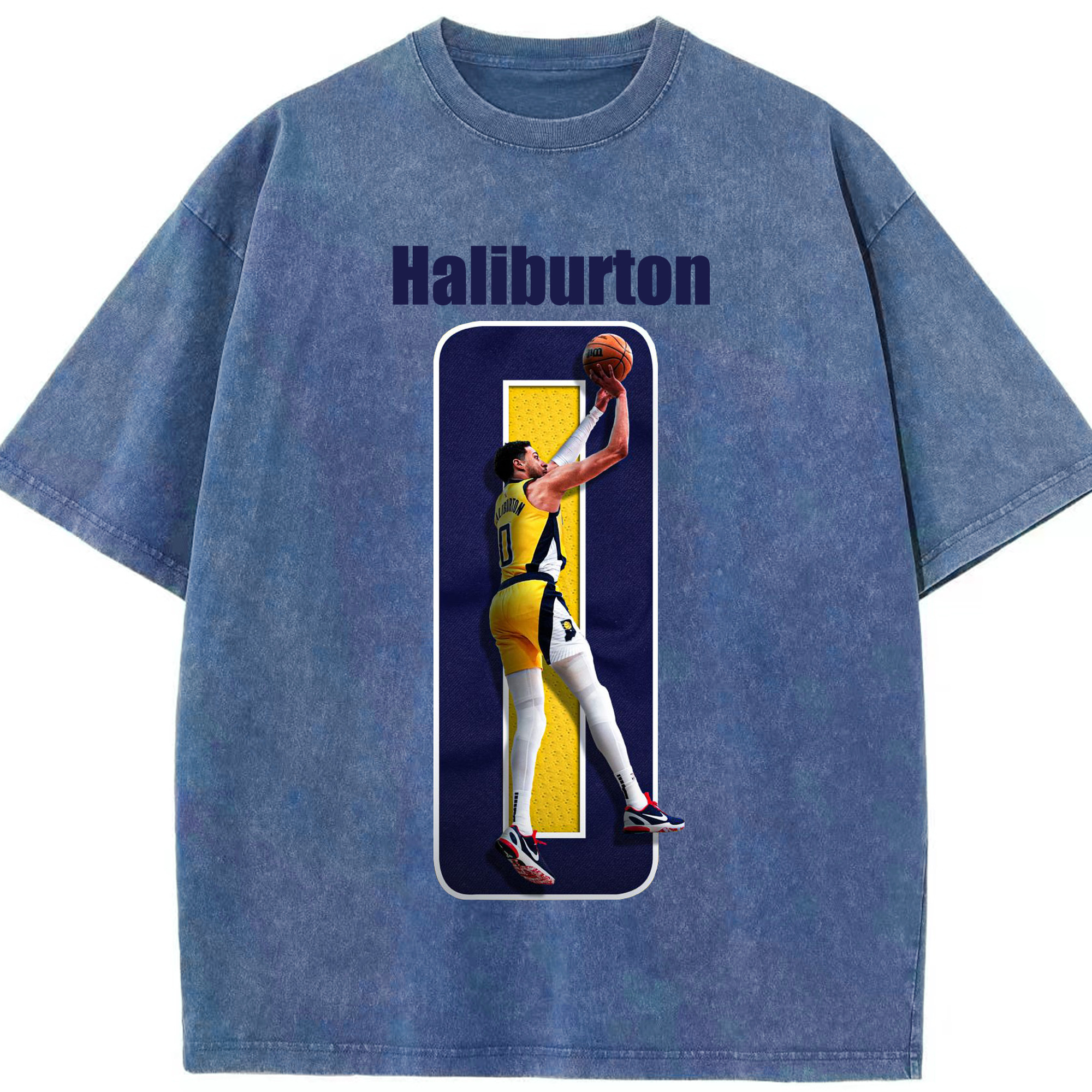 Haliburton #0 Custom Graphic Shirt - Washed Vintage Look 230g Cotton Oversized T-Shirt With Front Heat Transfer Print – Soft, Lightweight, Stylish Fit – Comfortable Casual Wear For Sports & Everyday Use