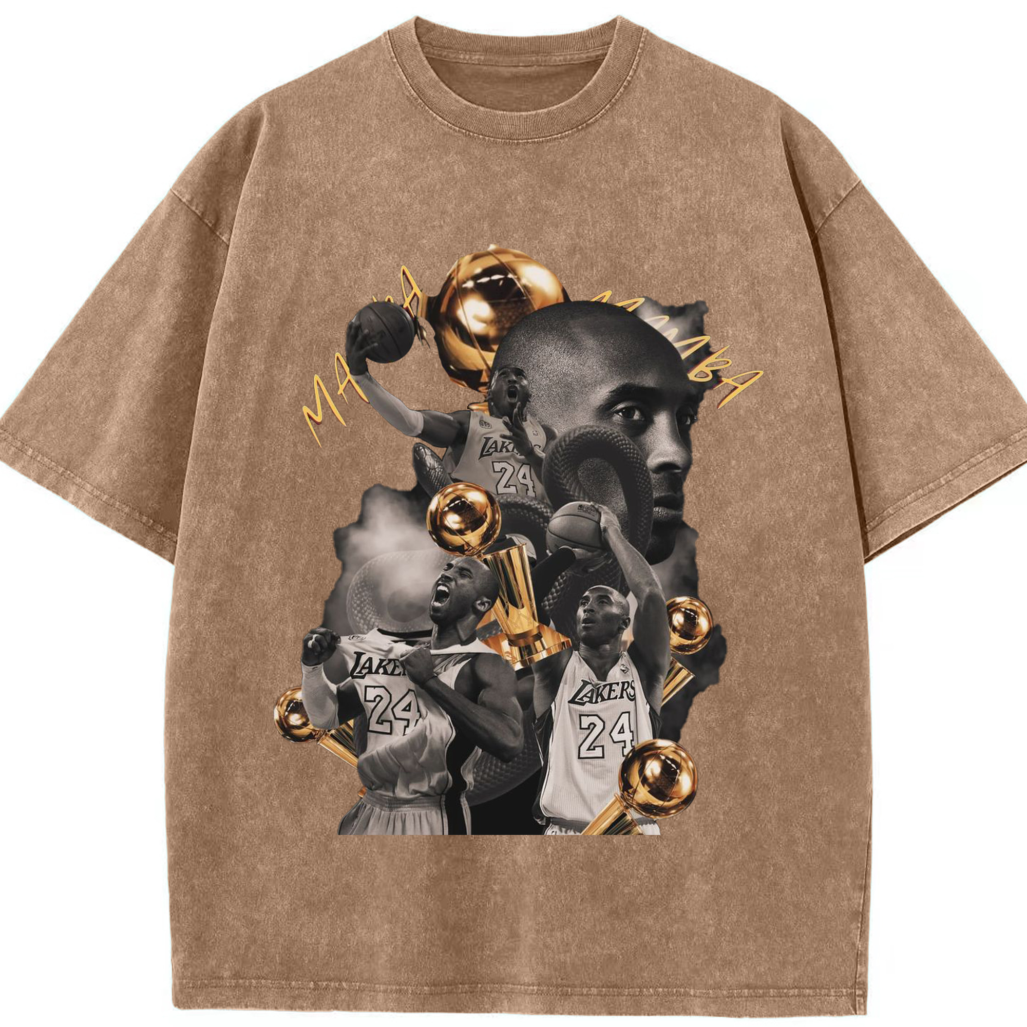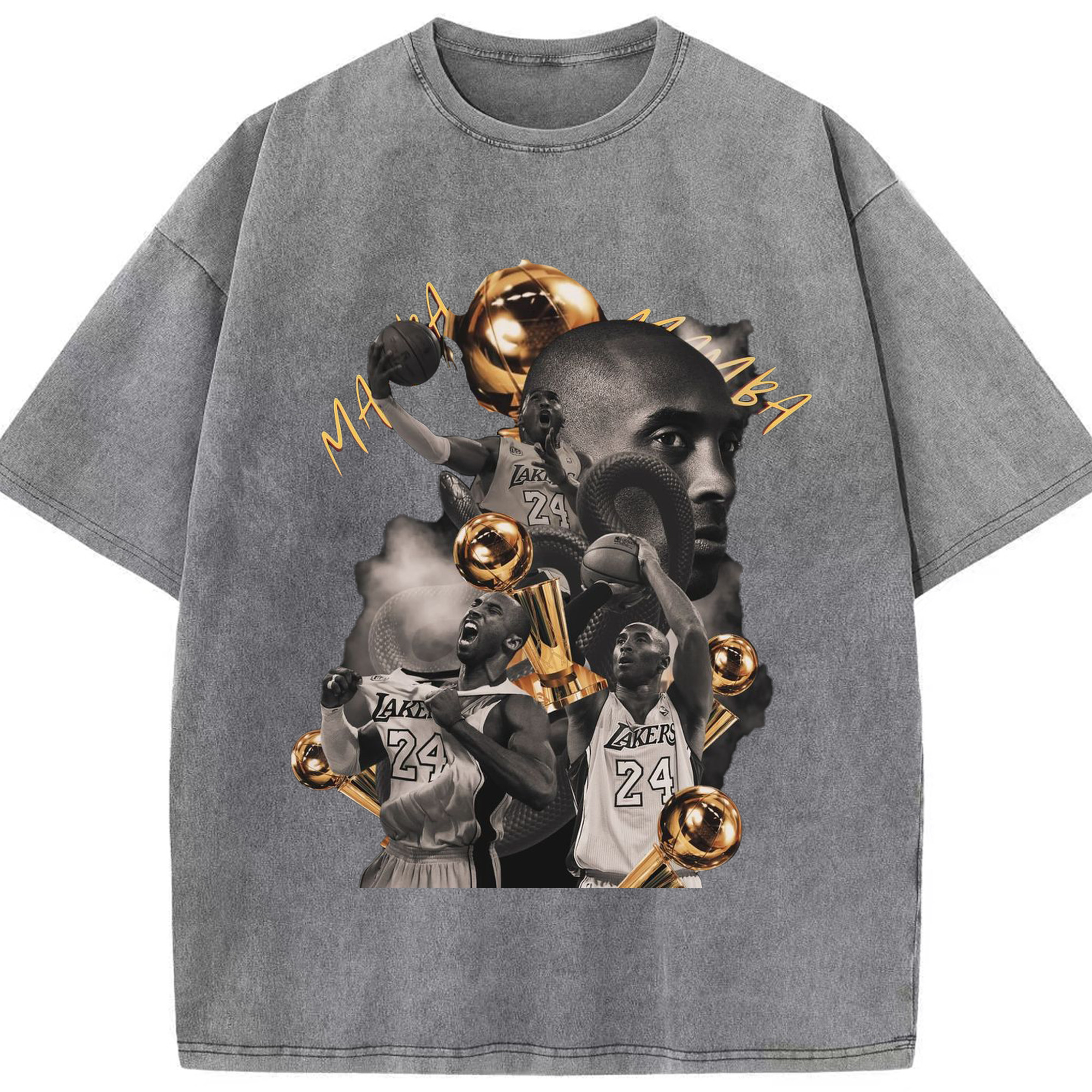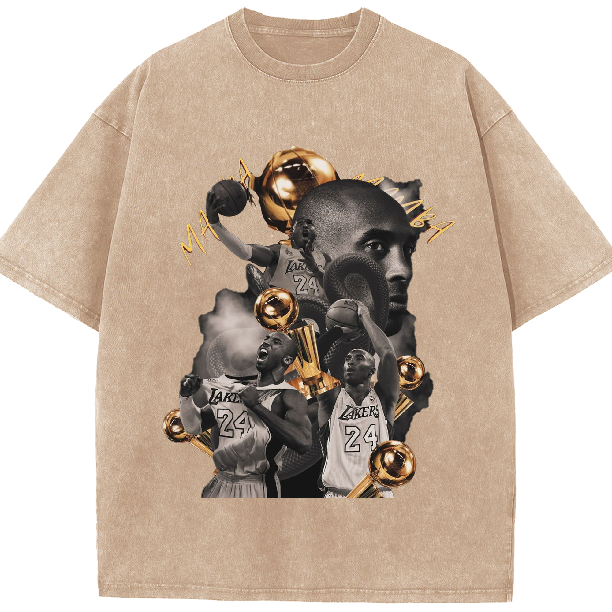 Honor Kobe Bryant with this "Mamba" Championship Shirt - Washed Vintage Look 230g Cotton Oversized T-Shirt With Front Heat Transfer Print – Soft, Lightweight, Stylish Fit – Comfortable Casual Wear For Sports & Everyday Use