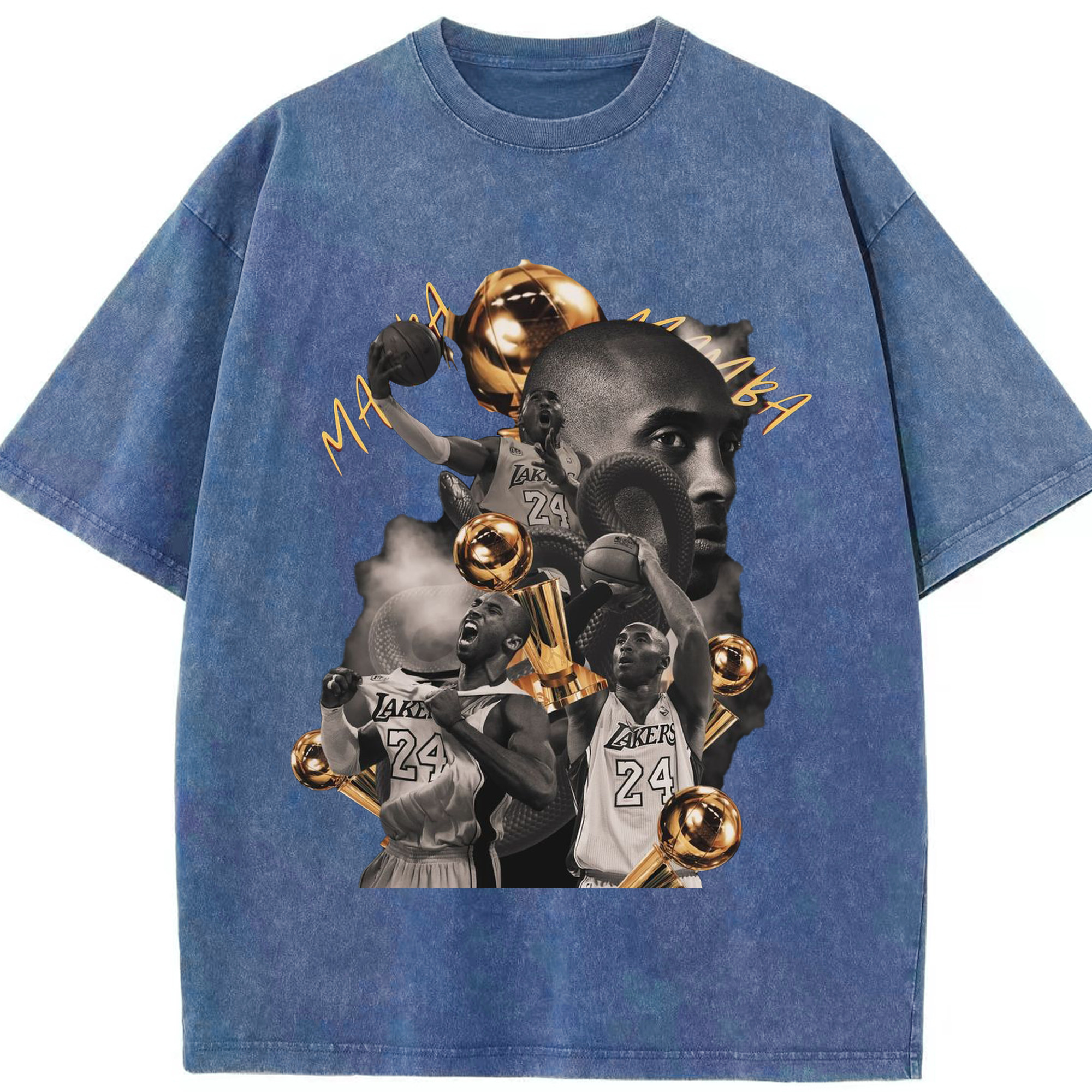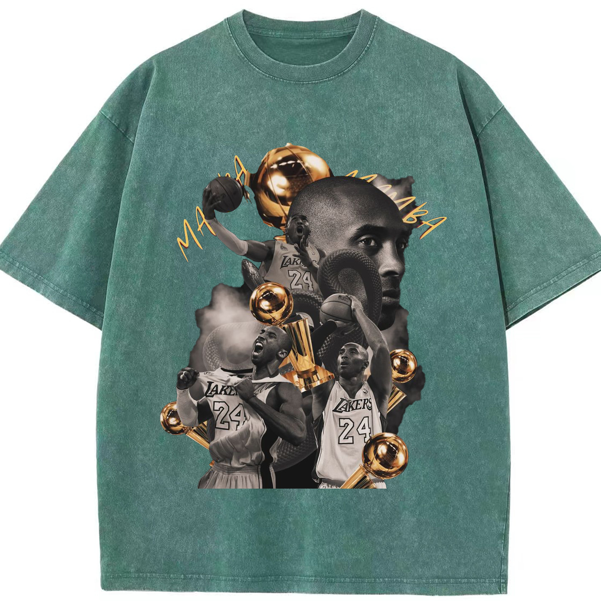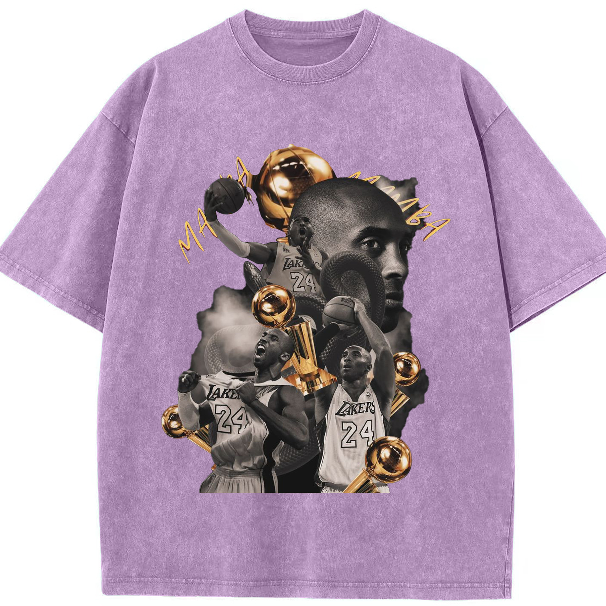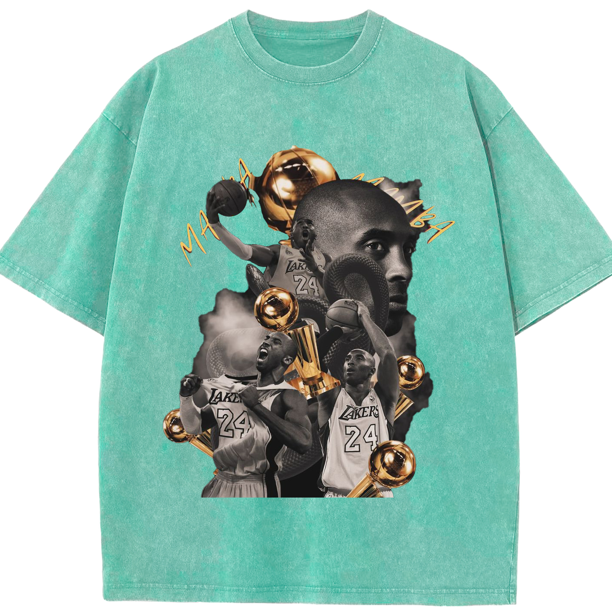 Honor Kobe Bryant with this "Mamba" Championship Shirt - Washed Vintage Look 230g Cotton Oversized T-Shirt With Front Heat Transfer Print – Soft, Lightweight, Stylish Fit – Comfortable Casual Wear For Sports & Everyday Use