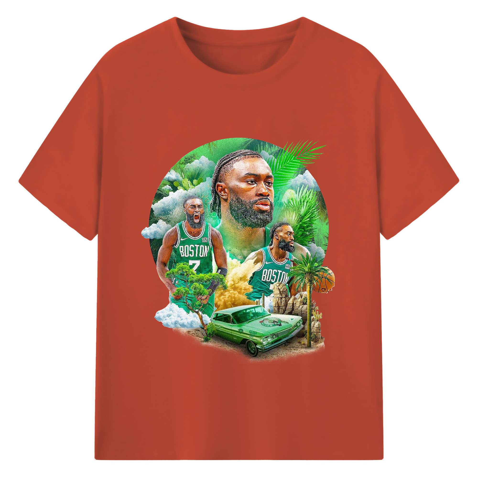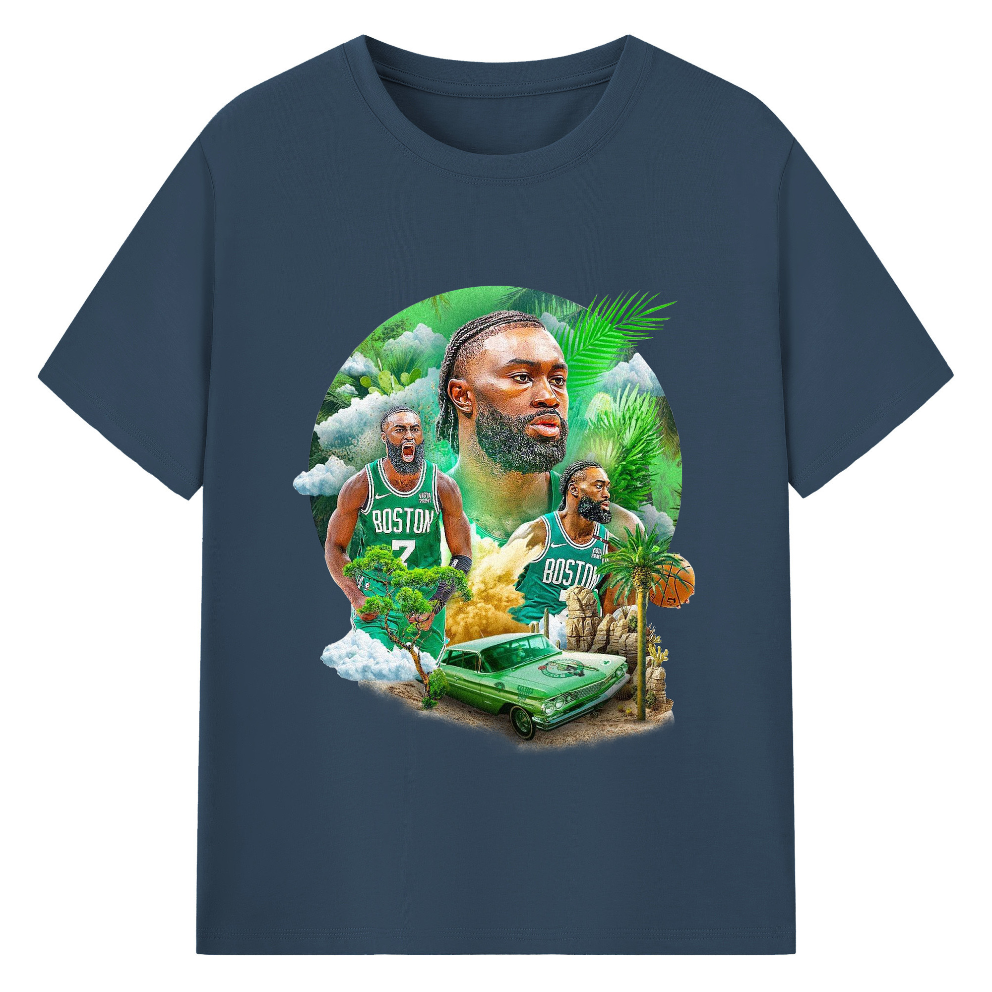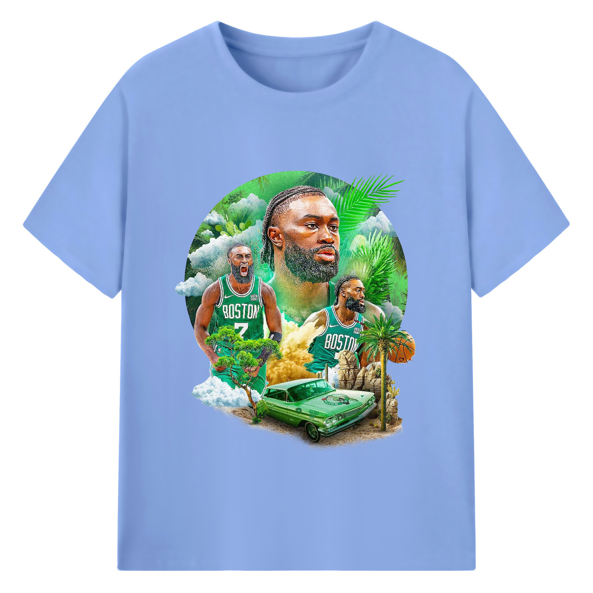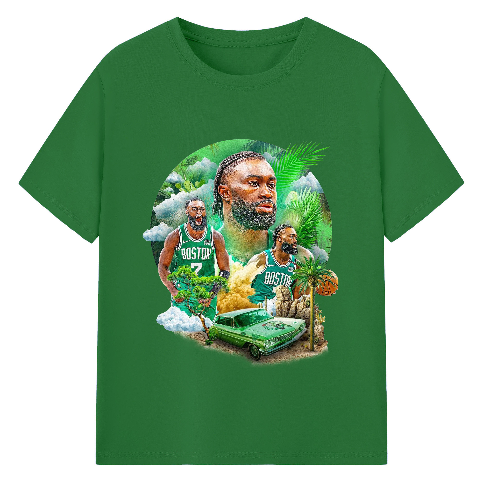 “Island of Green” Jaylen Brown Fantasy Shirt - 180g Cotton T-Shirt With Front Heat Transfer Print – Soft, Lightweight, Fitted Design – Comfortable Casual Wear For Sports & Everyday Use