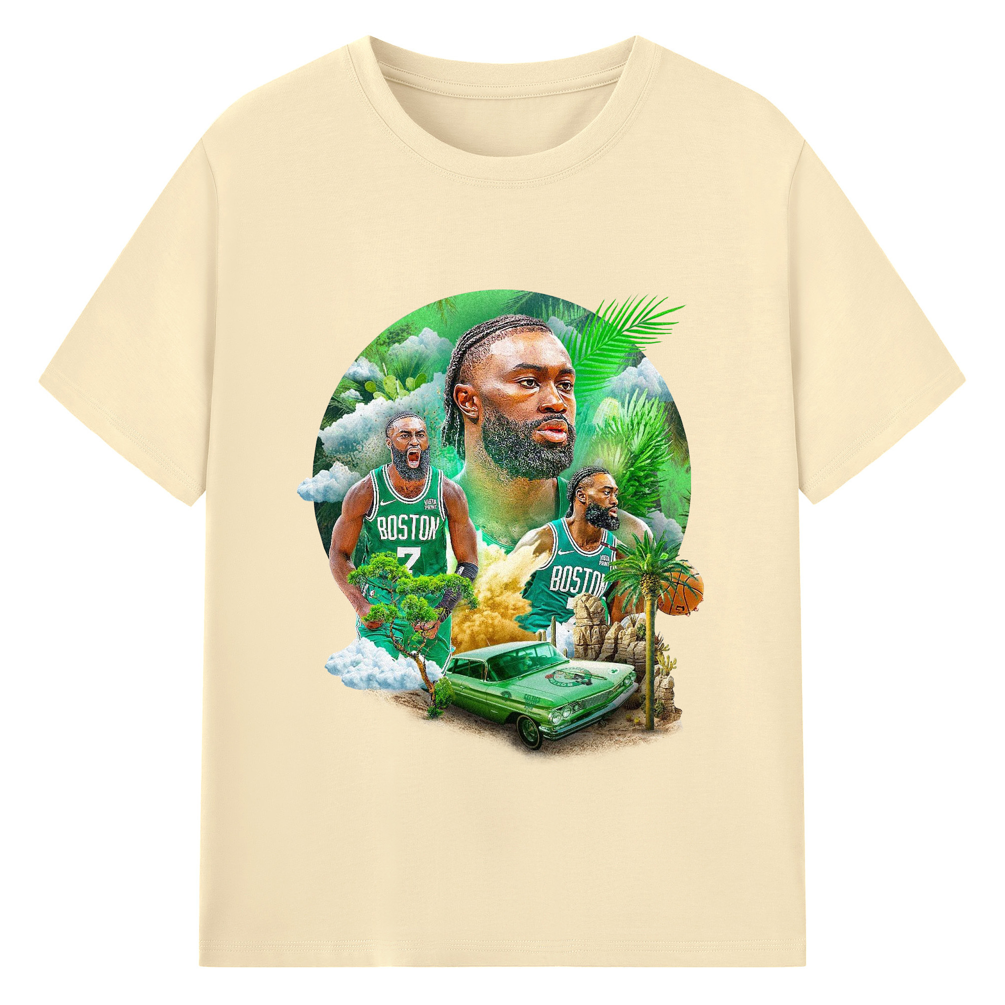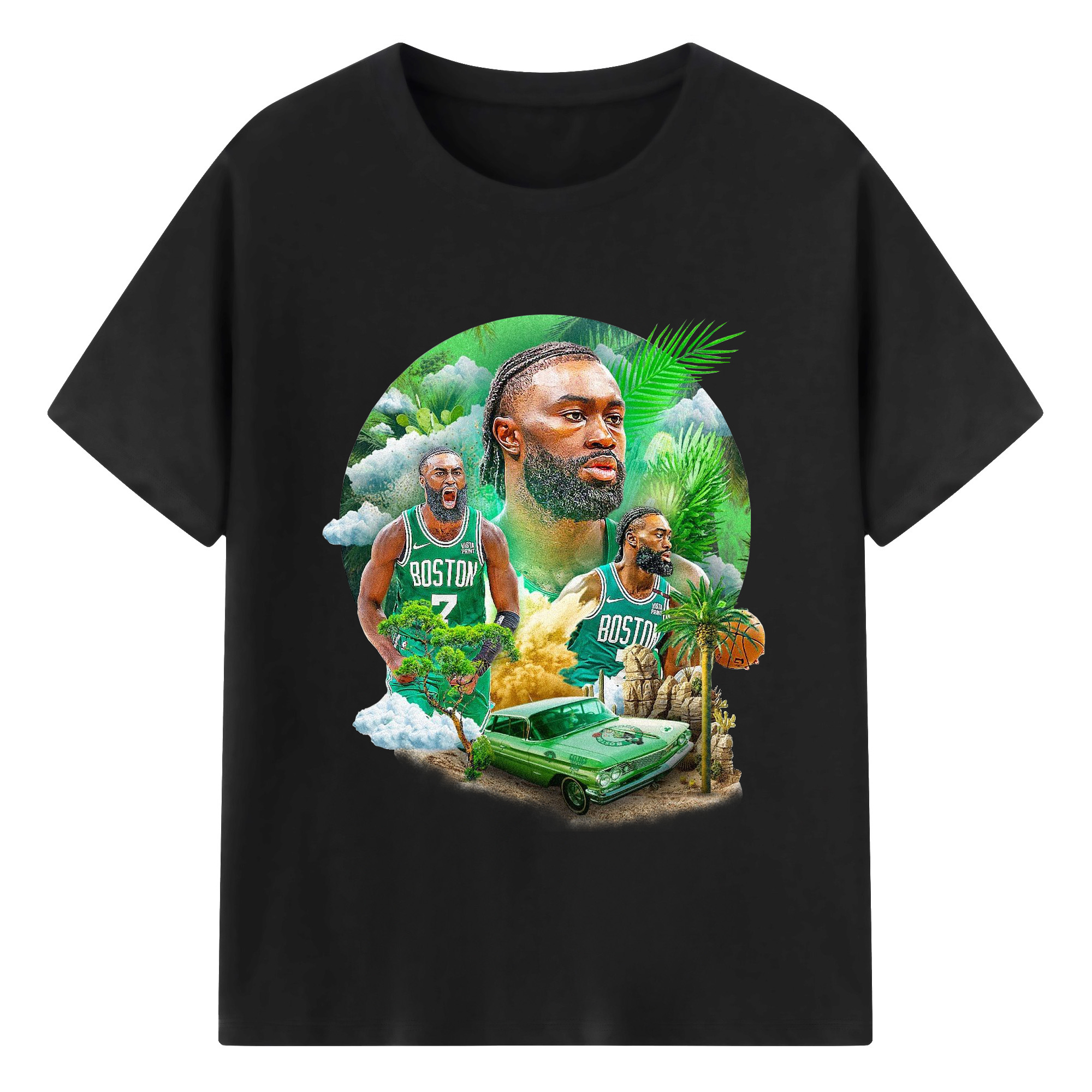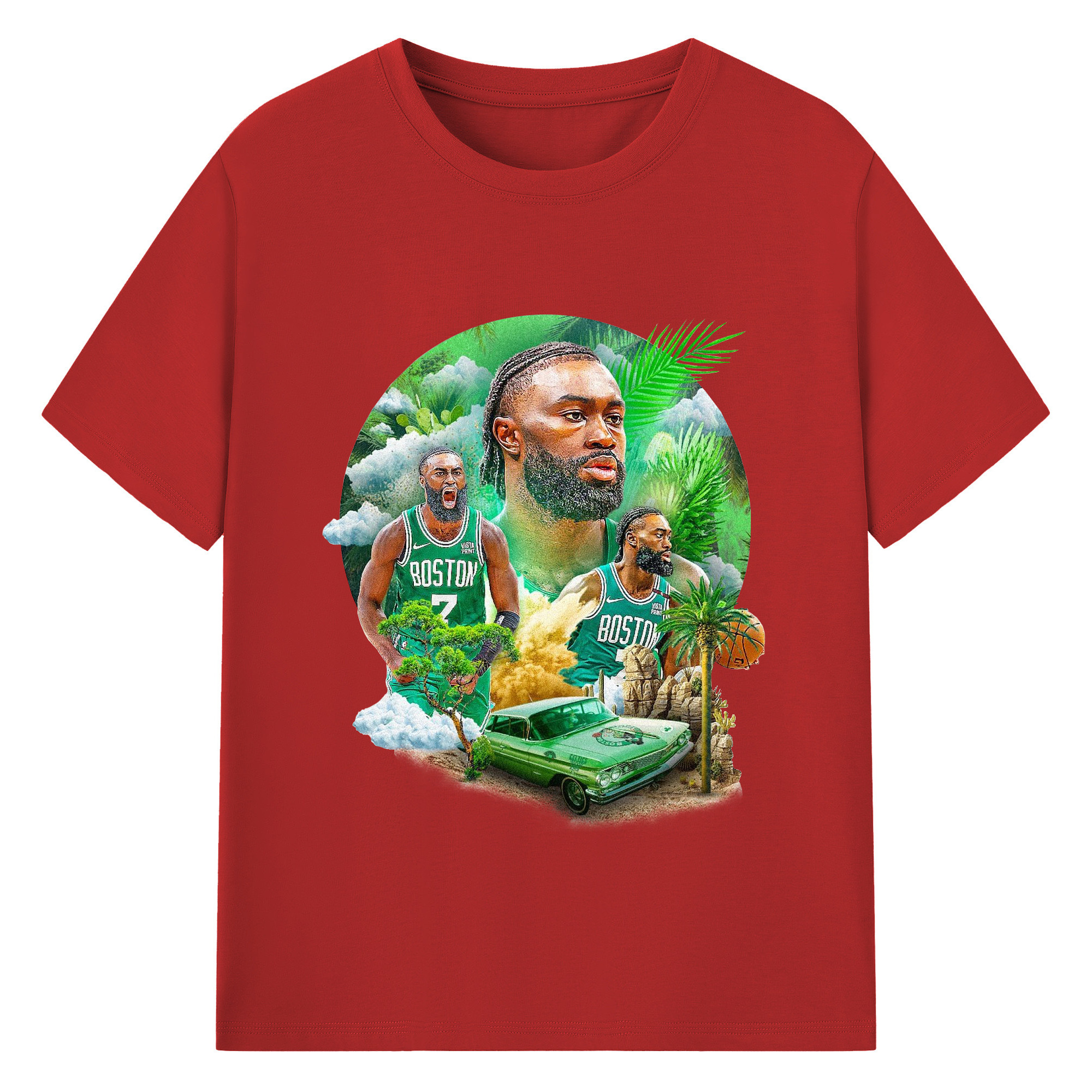 “Island of Green” Jaylen Brown Fantasy Shirt - 180g Cotton T-Shirt With Front Heat Transfer Print – Soft, Lightweight, Fitted Design – Comfortable Casual Wear For Sports & Everyday Use