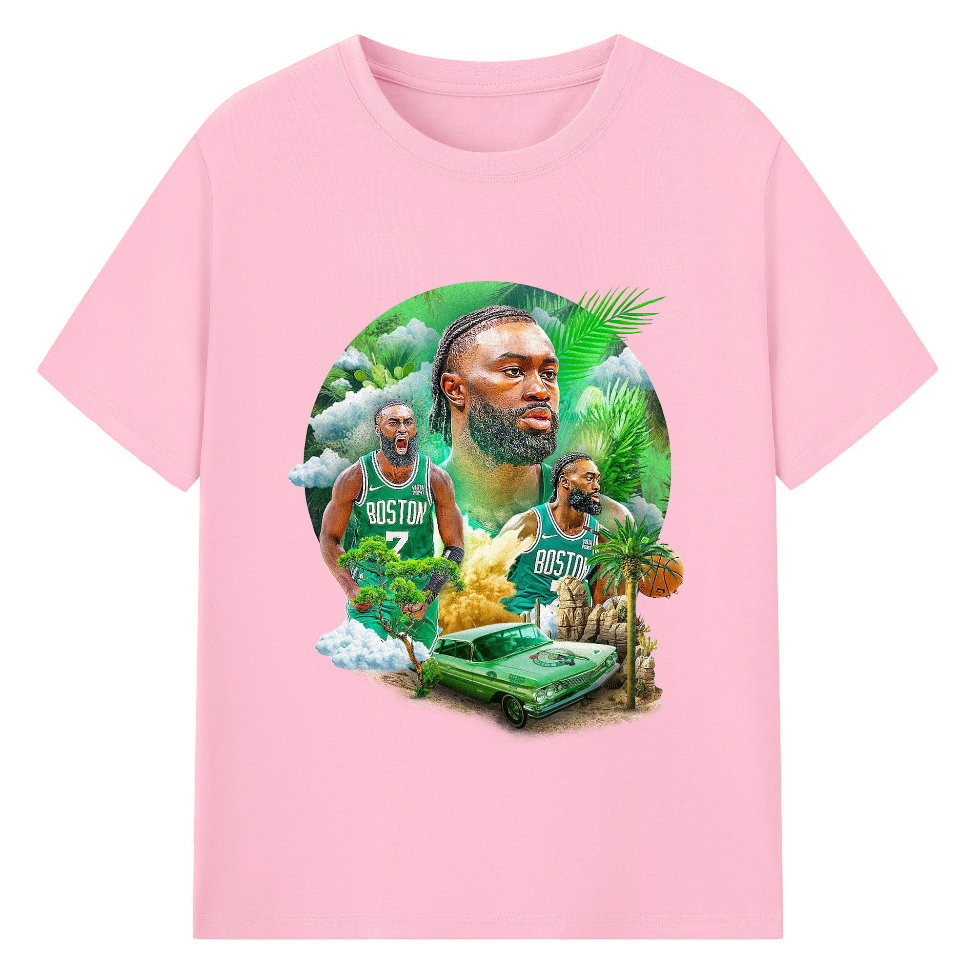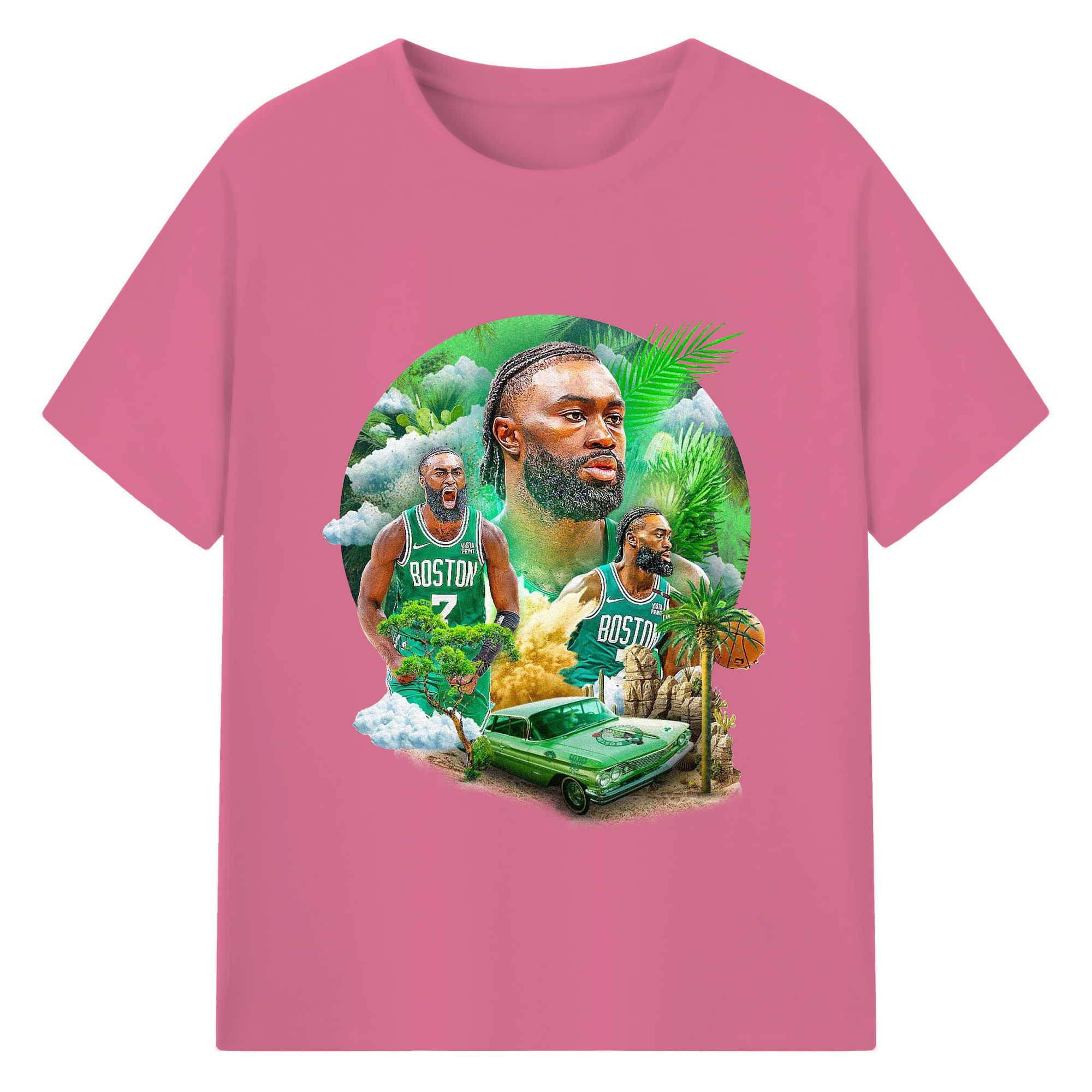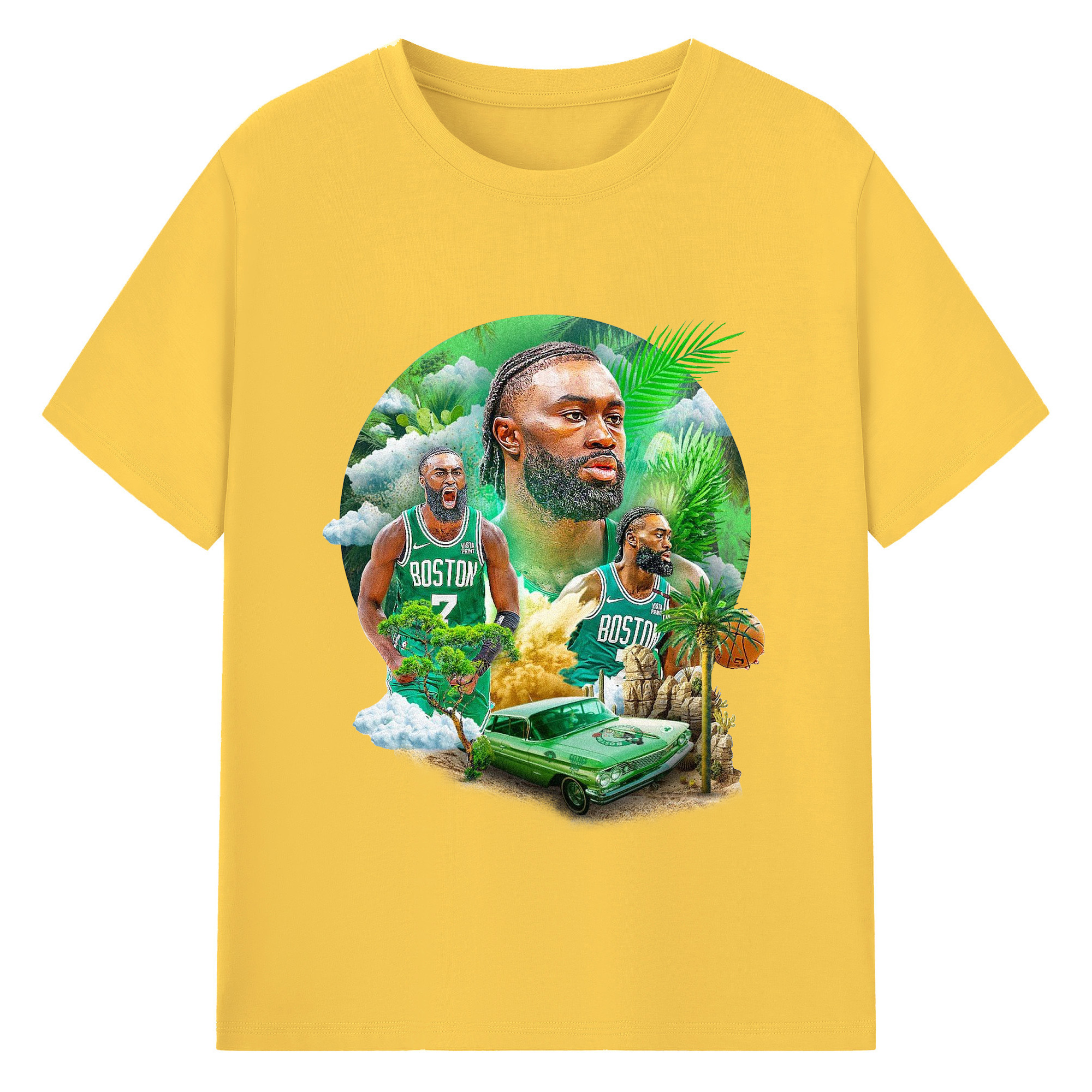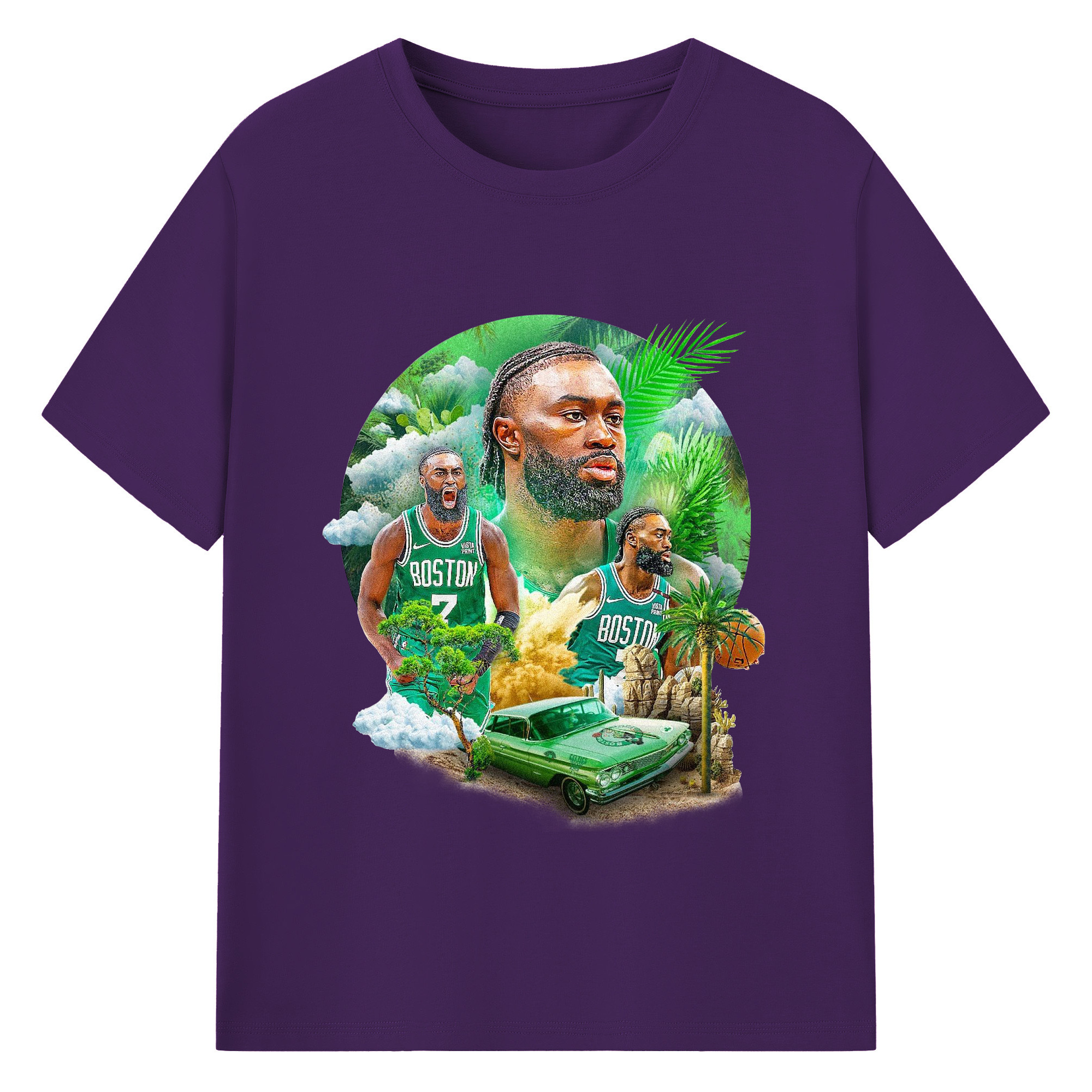 “Island of Green” Jaylen Brown Fantasy Shirt - 180g Cotton T-Shirt With Front Heat Transfer Print – Soft, Lightweight, Fitted Design – Comfortable Casual Wear For Sports & Everyday Use