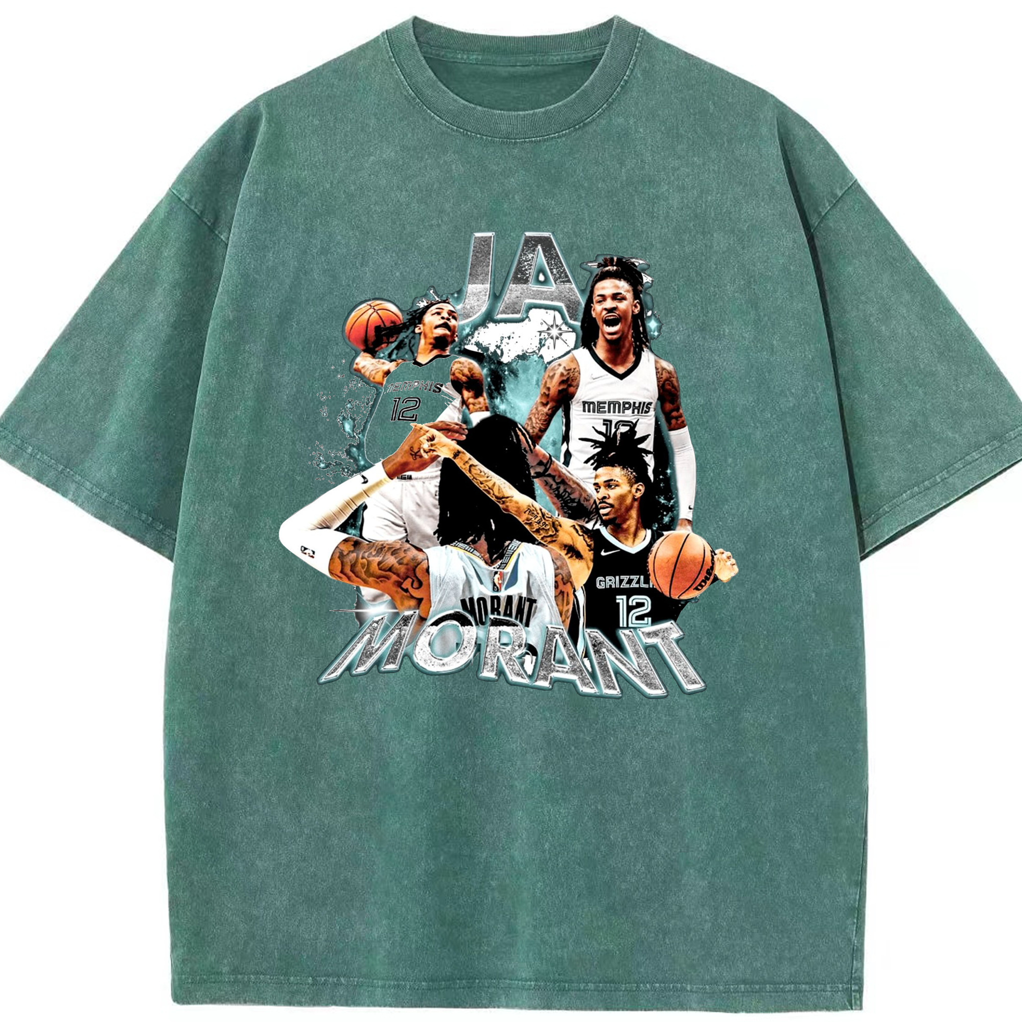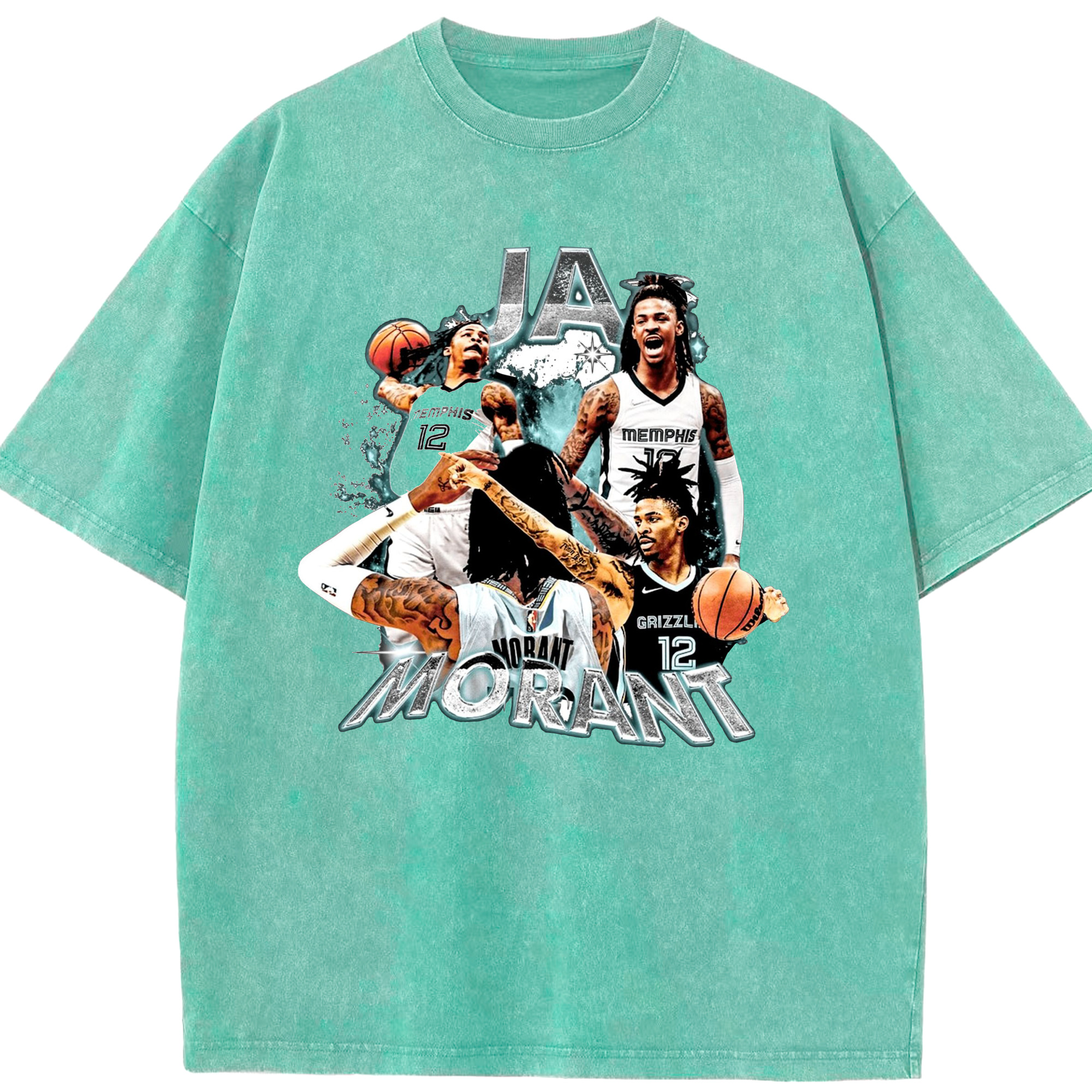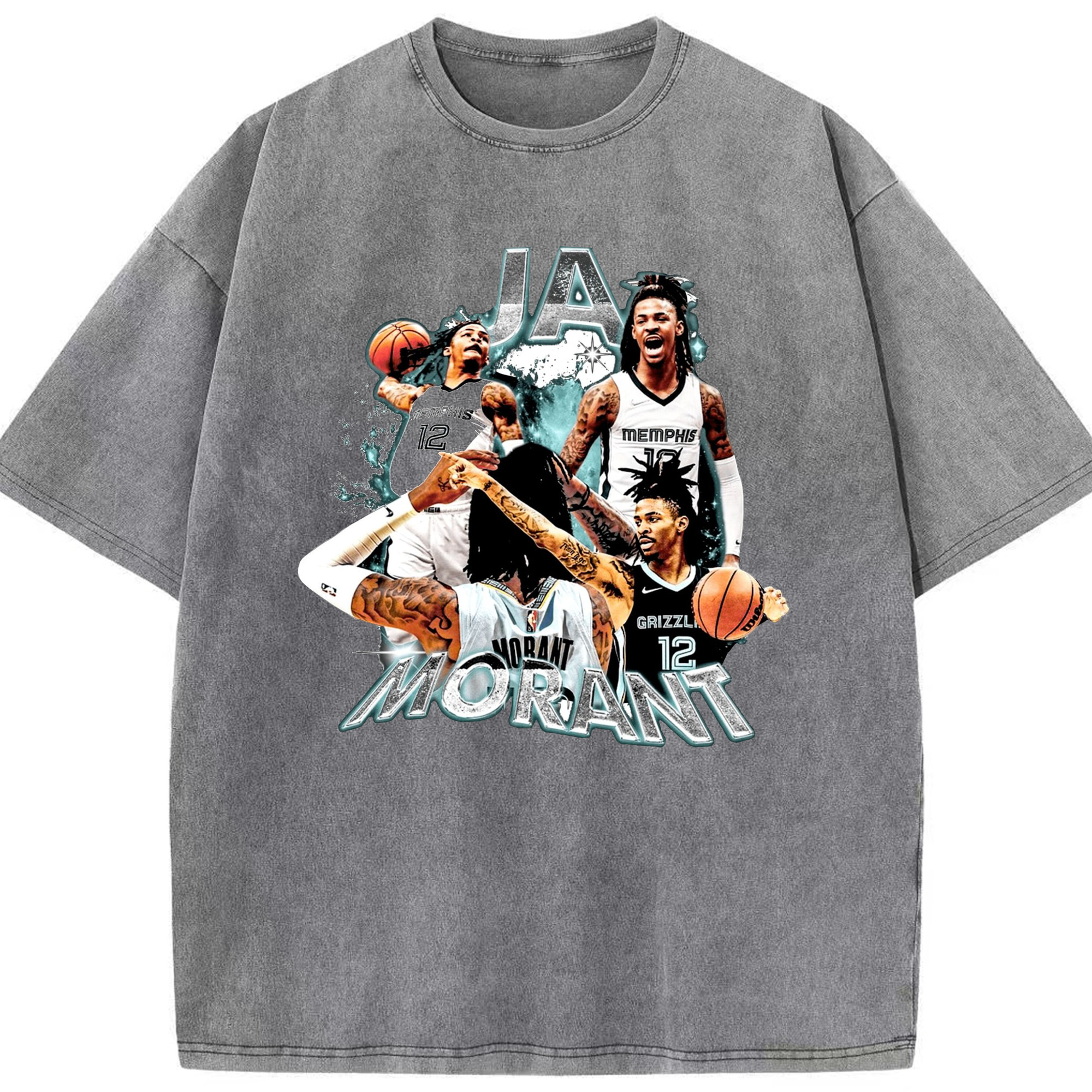 Ja Morant Memphis Grizzlies Vintage Shirt - Washed Vintage Look 230g Cotton Oversized T-Shirt With Front Heat Transfer Print – Soft, Lightweight, Stylish Fit – Comfortable Casual Wear For Sports & Everyday Use