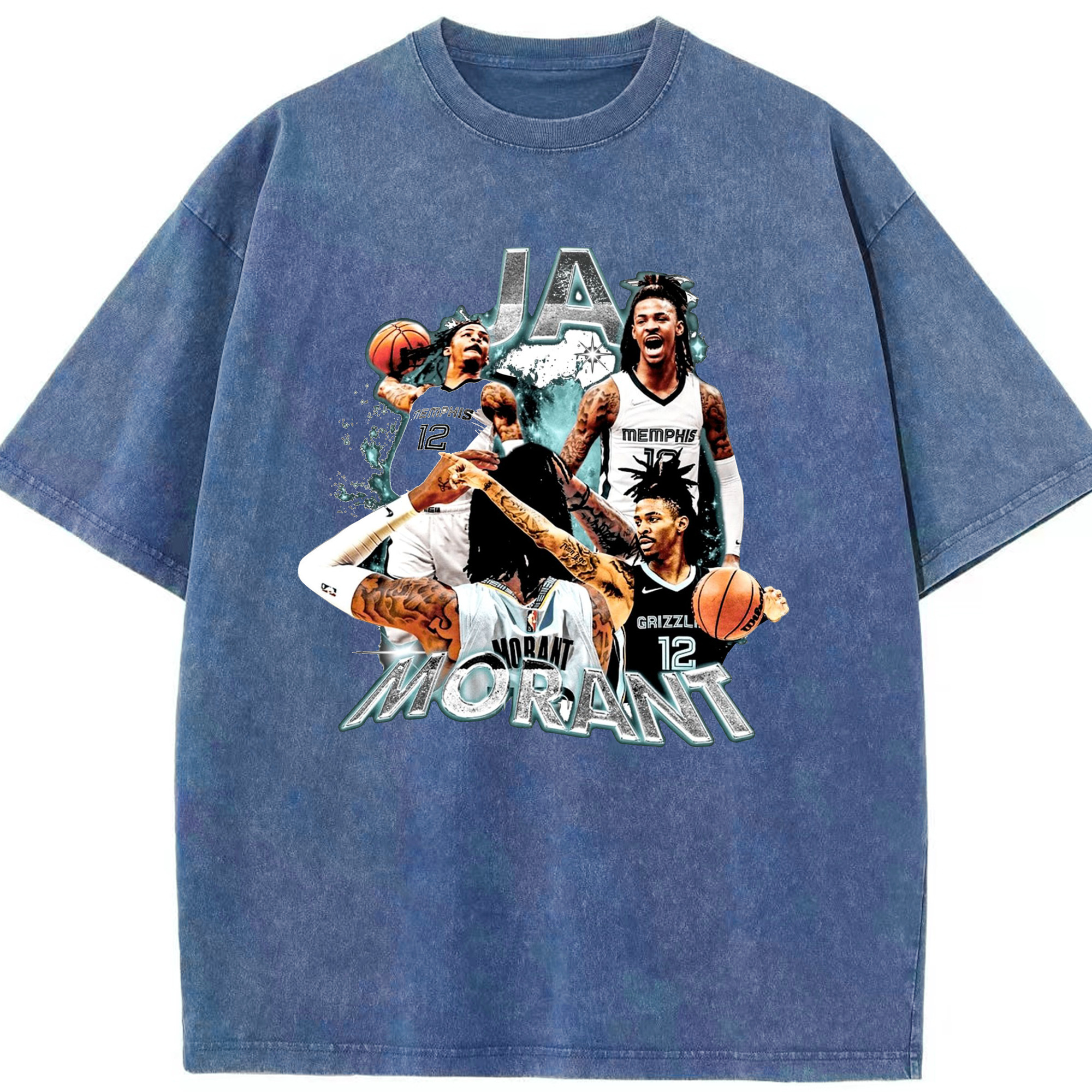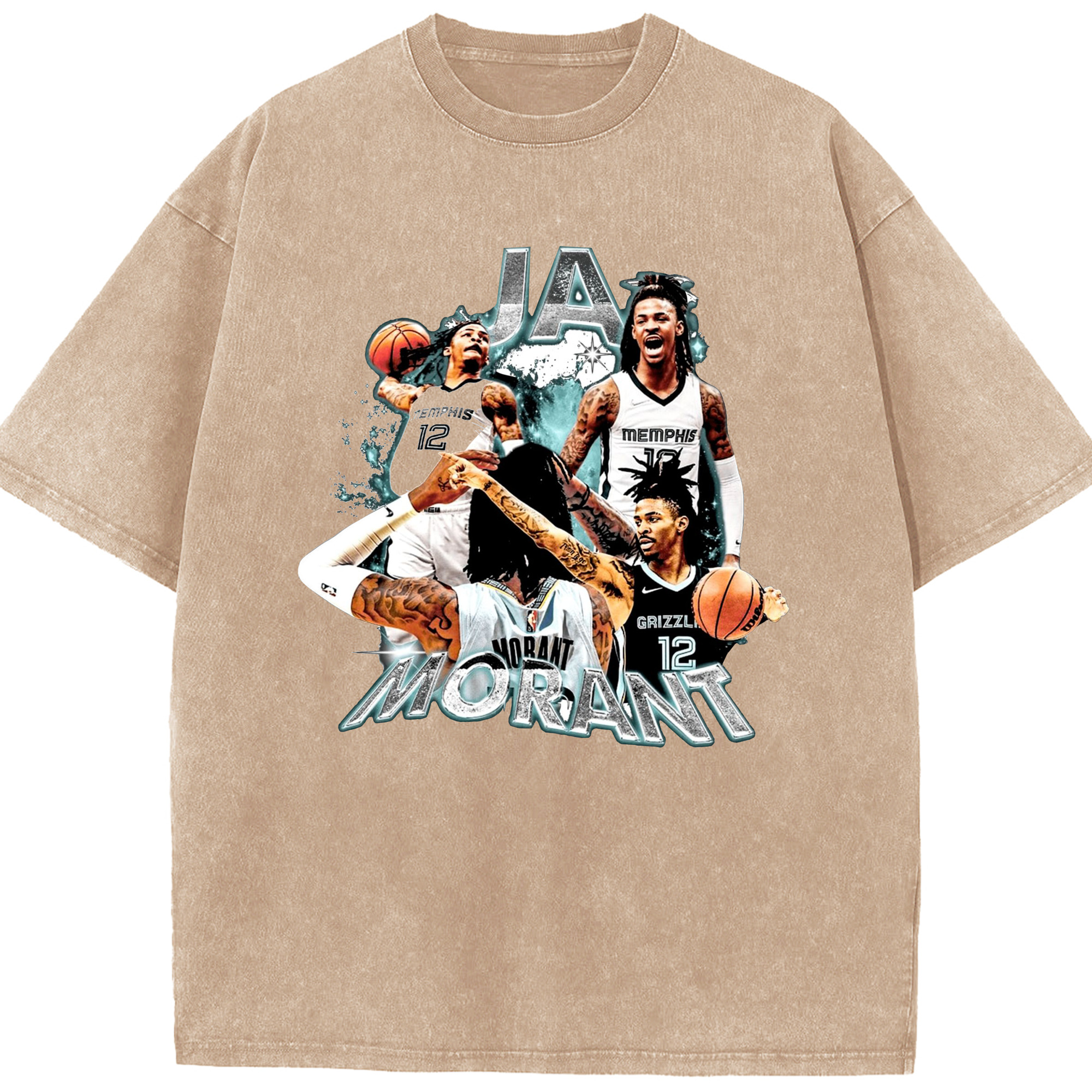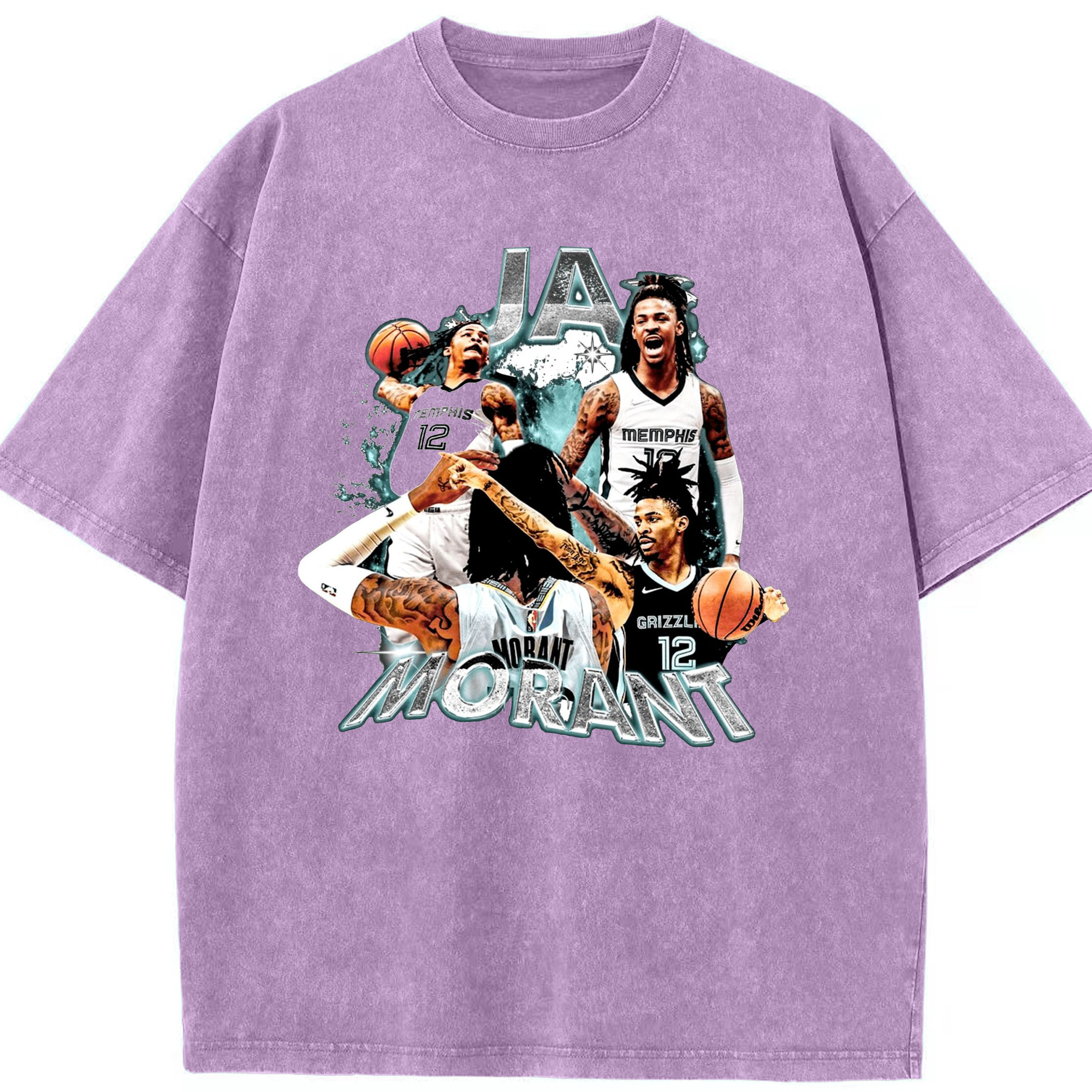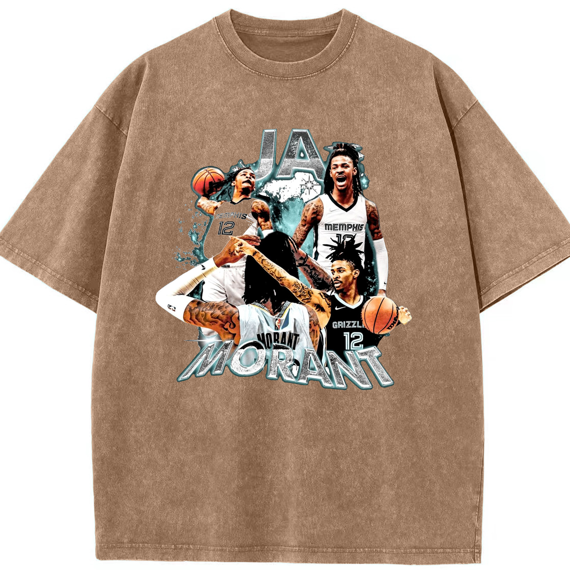 Ja Morant Memphis Grizzlies Vintage Shirt - Washed Vintage Look 230g Cotton Oversized T-Shirt With Front Heat Transfer Print – Soft, Lightweight, Stylish Fit – Comfortable Casual Wear For Sports & Everyday Use