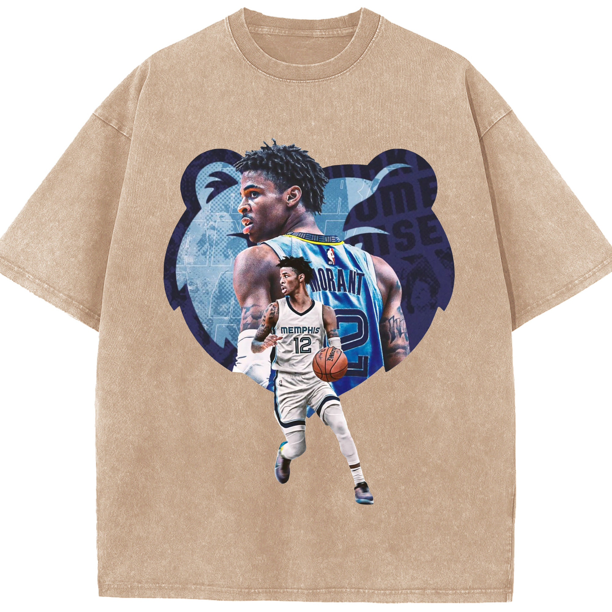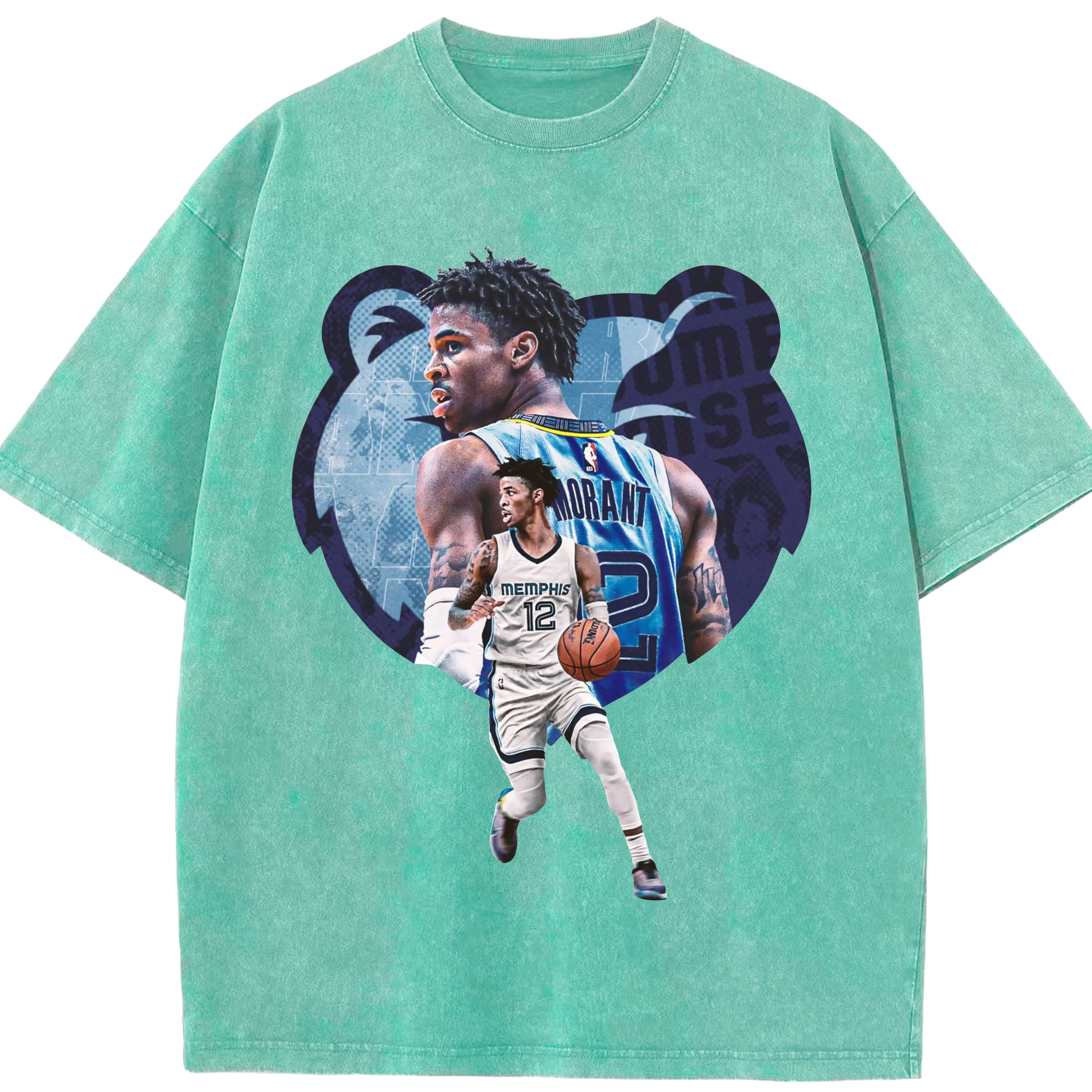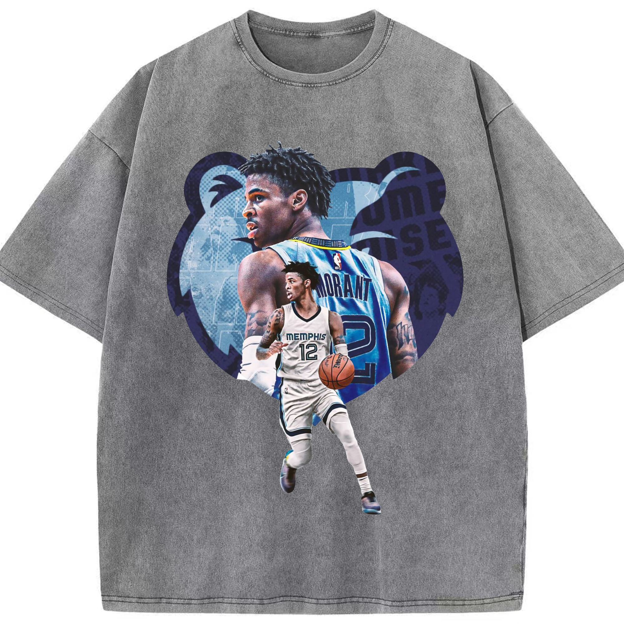 Ja Morant Motion Dribble Graphic Shirt - Washed Vintage Look 230g Cotton Oversized T-Shirt With Front Heat Transfer Print – Soft, Lightweight, Stylish Fit – Comfortable Casual Wear For Sports & Everyday Use