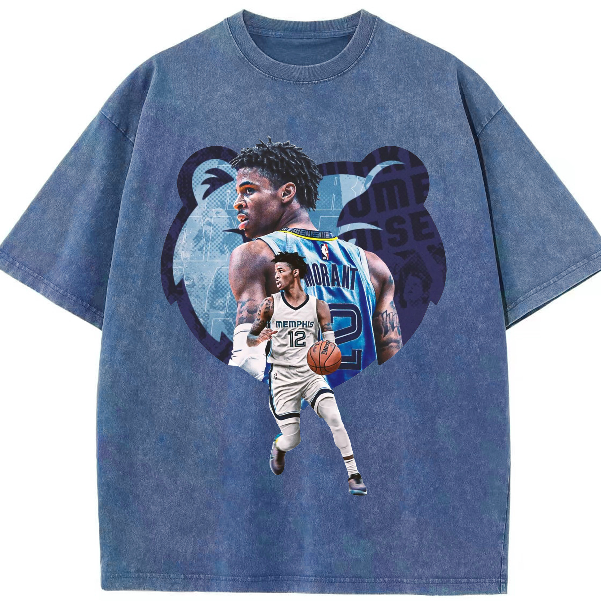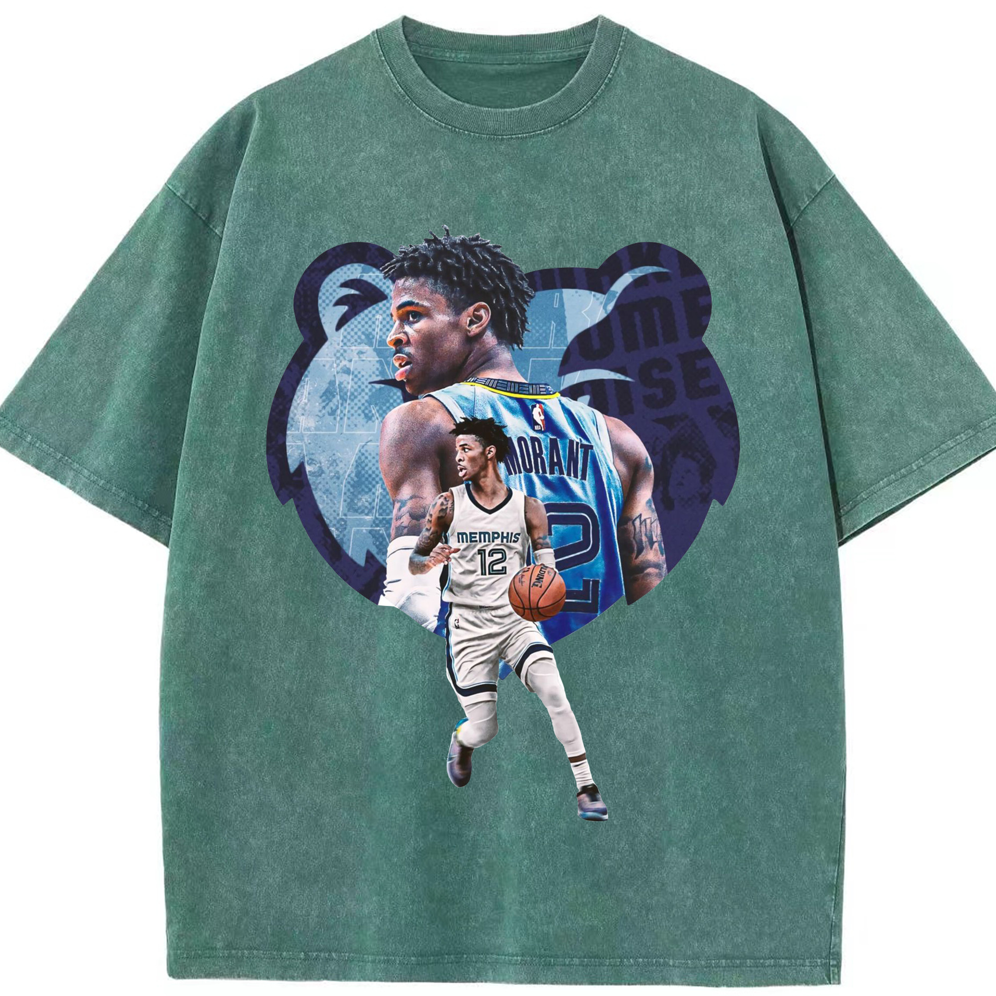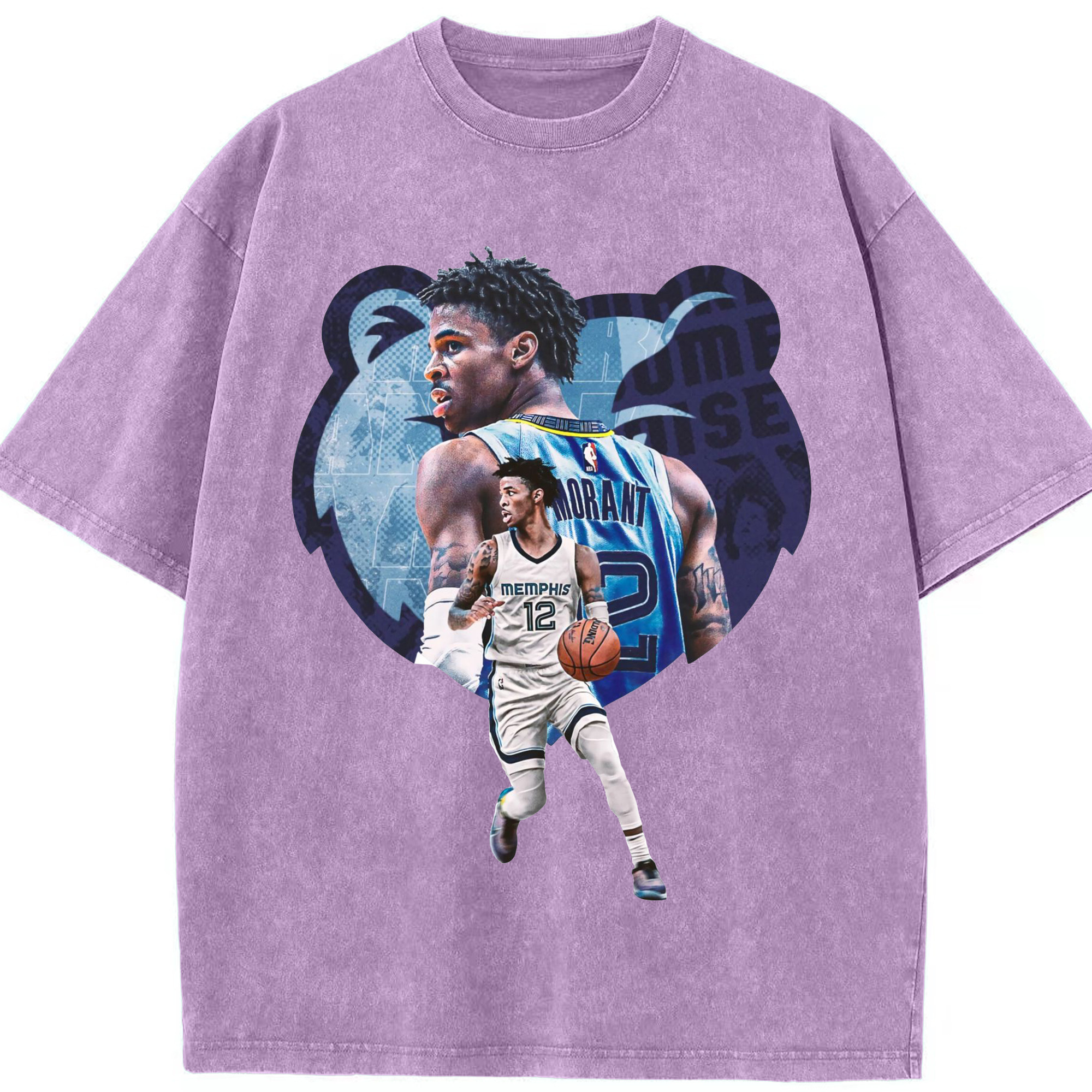 Ja Morant Motion Dribble Graphic Shirt - Washed Vintage Look 230g Cotton Oversized T-Shirt With Front Heat Transfer Print – Soft, Lightweight, Stylish Fit – Comfortable Casual Wear For Sports & Everyday Use
