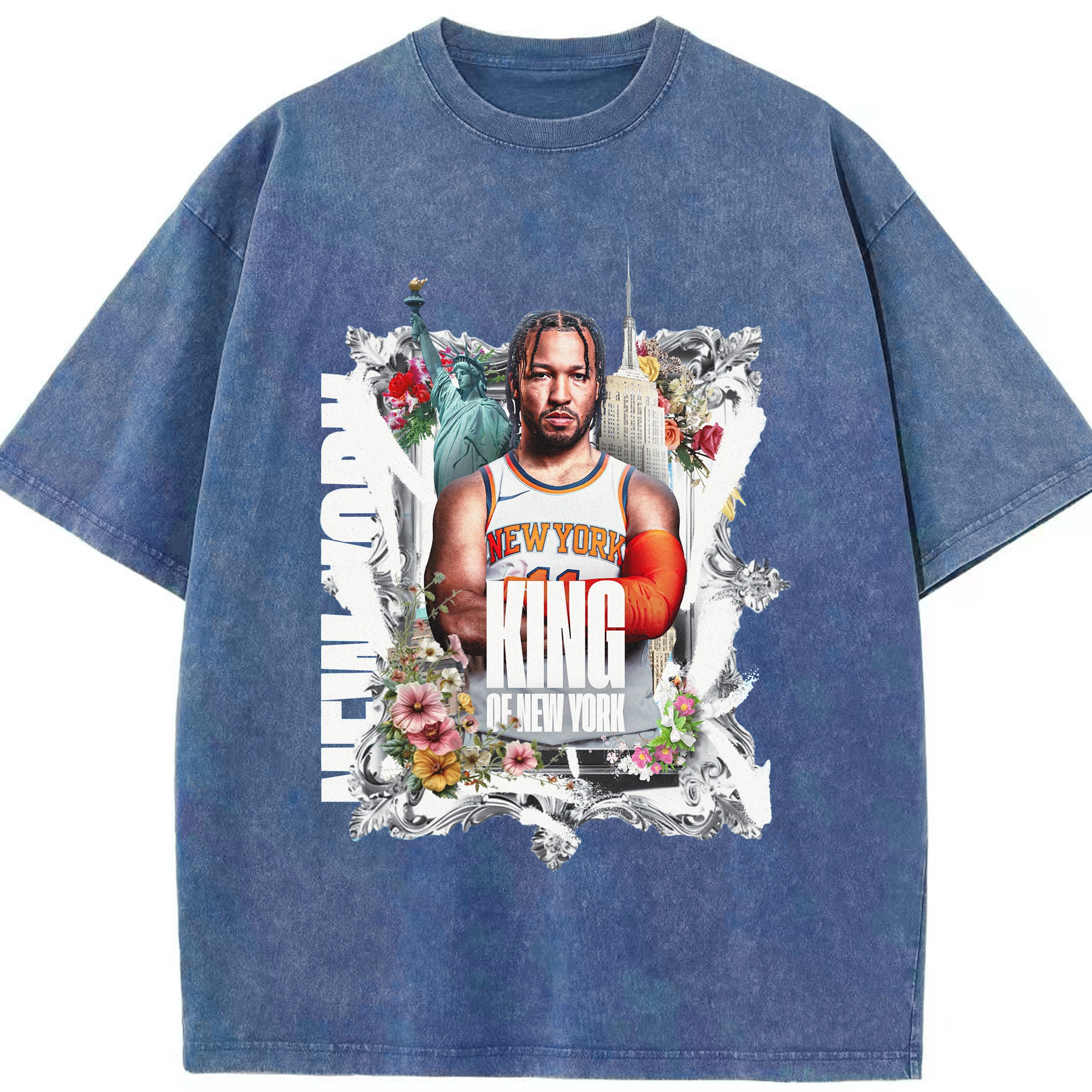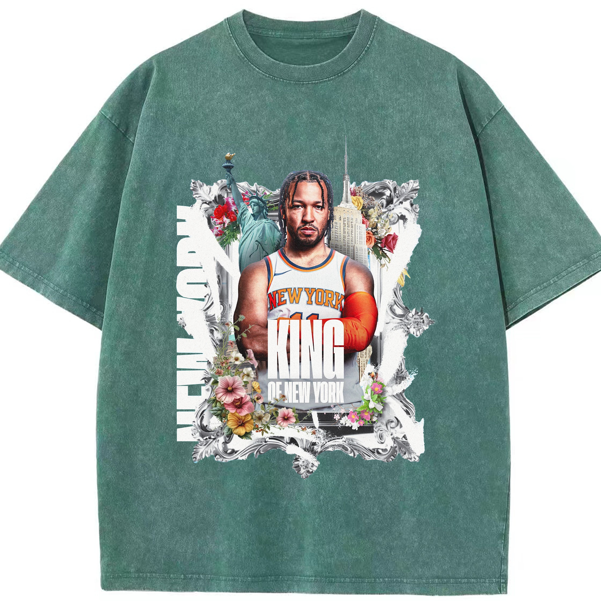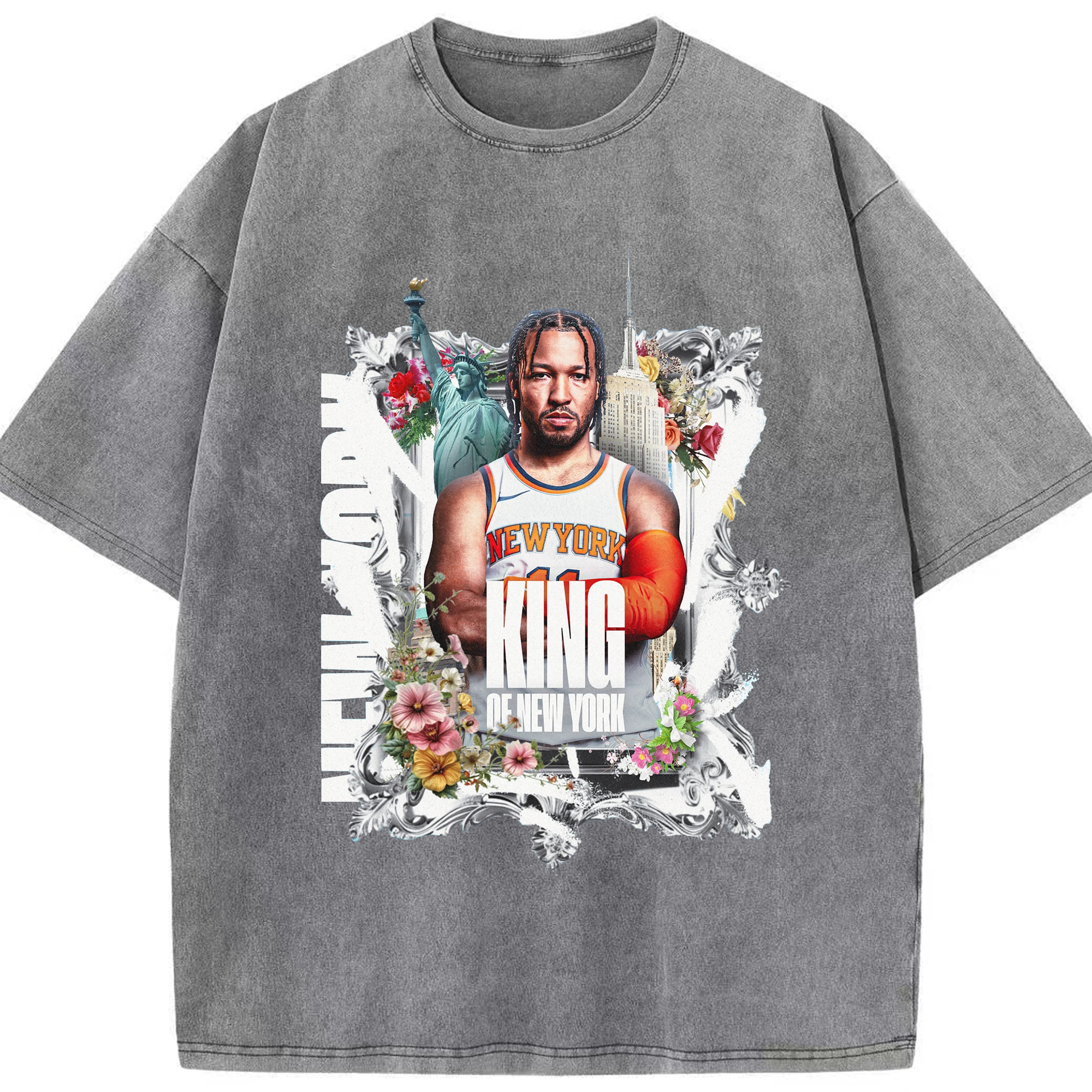 Jalen Brunson #11 King of the New York Knicks Fans Shirt - Washed Vintage Look 230g Cotton Oversized T-Shirt With Front Heat Transfer Print – Soft, Lightweight, Stylish Fit – Comfortable Casual Wear For Sports & Everyday Use
