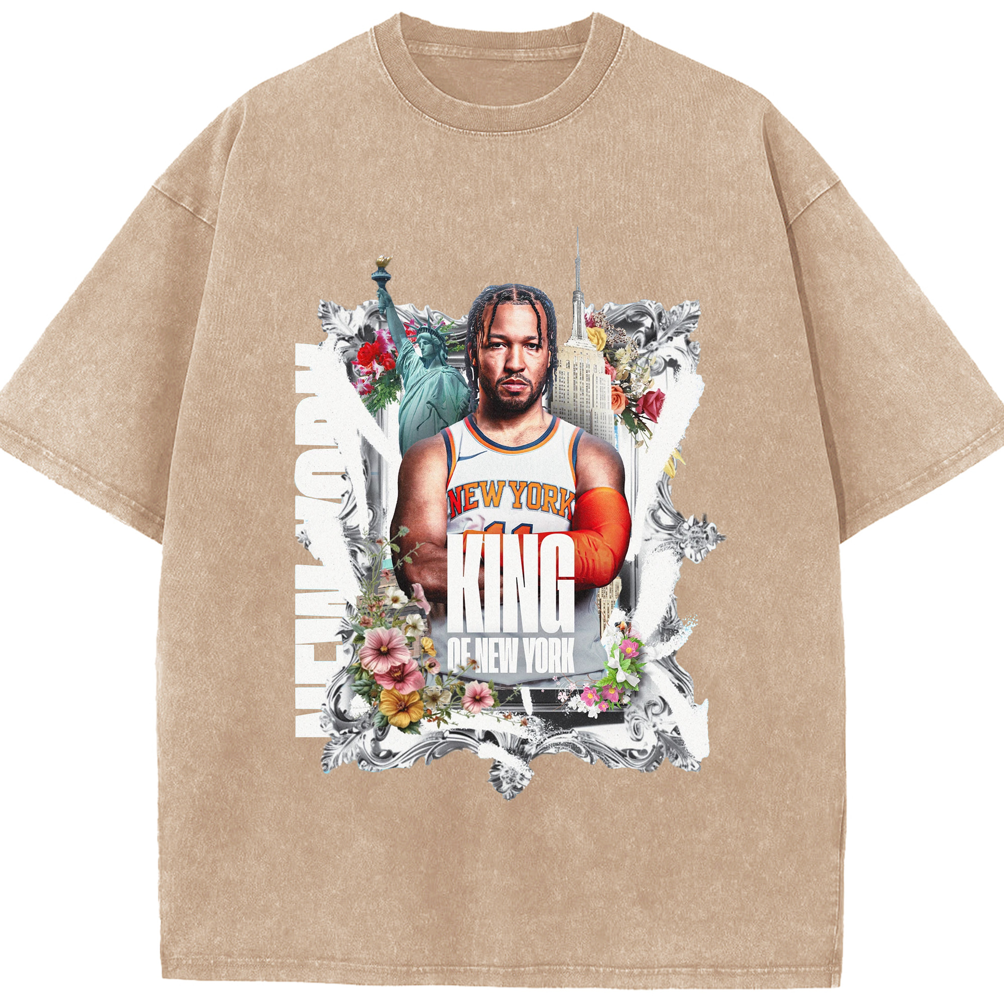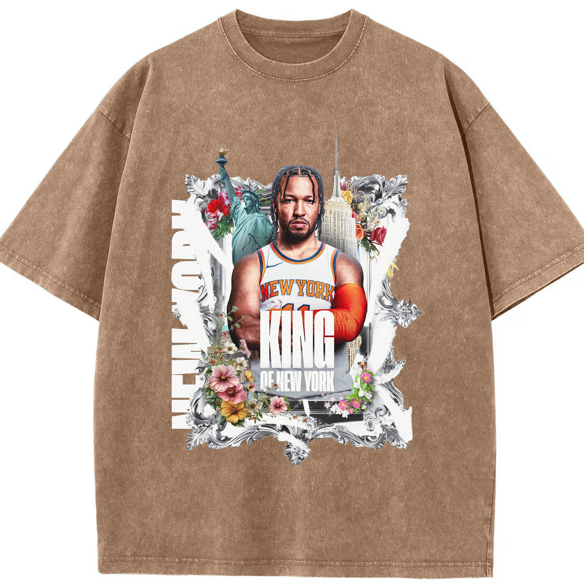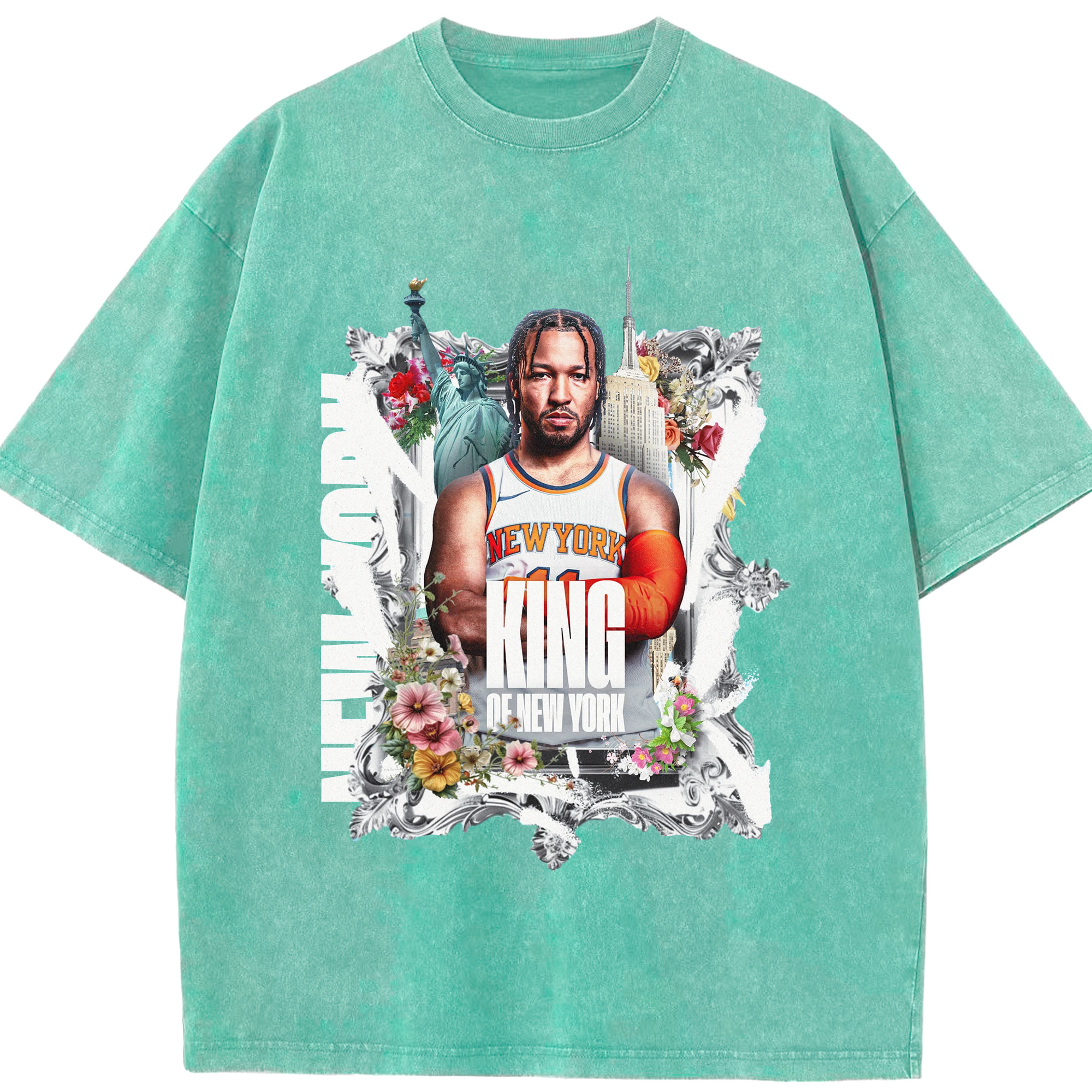 Jalen Brunson #11 King of the New York Knicks Fans Shirt - Washed Vintage Look 230g Cotton Oversized T-Shirt With Front Heat Transfer Print – Soft, Lightweight, Stylish Fit – Comfortable Casual Wear For Sports & Everyday Use