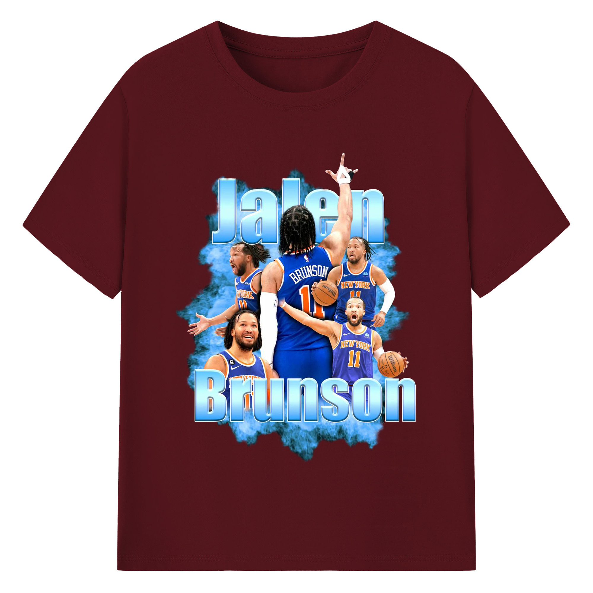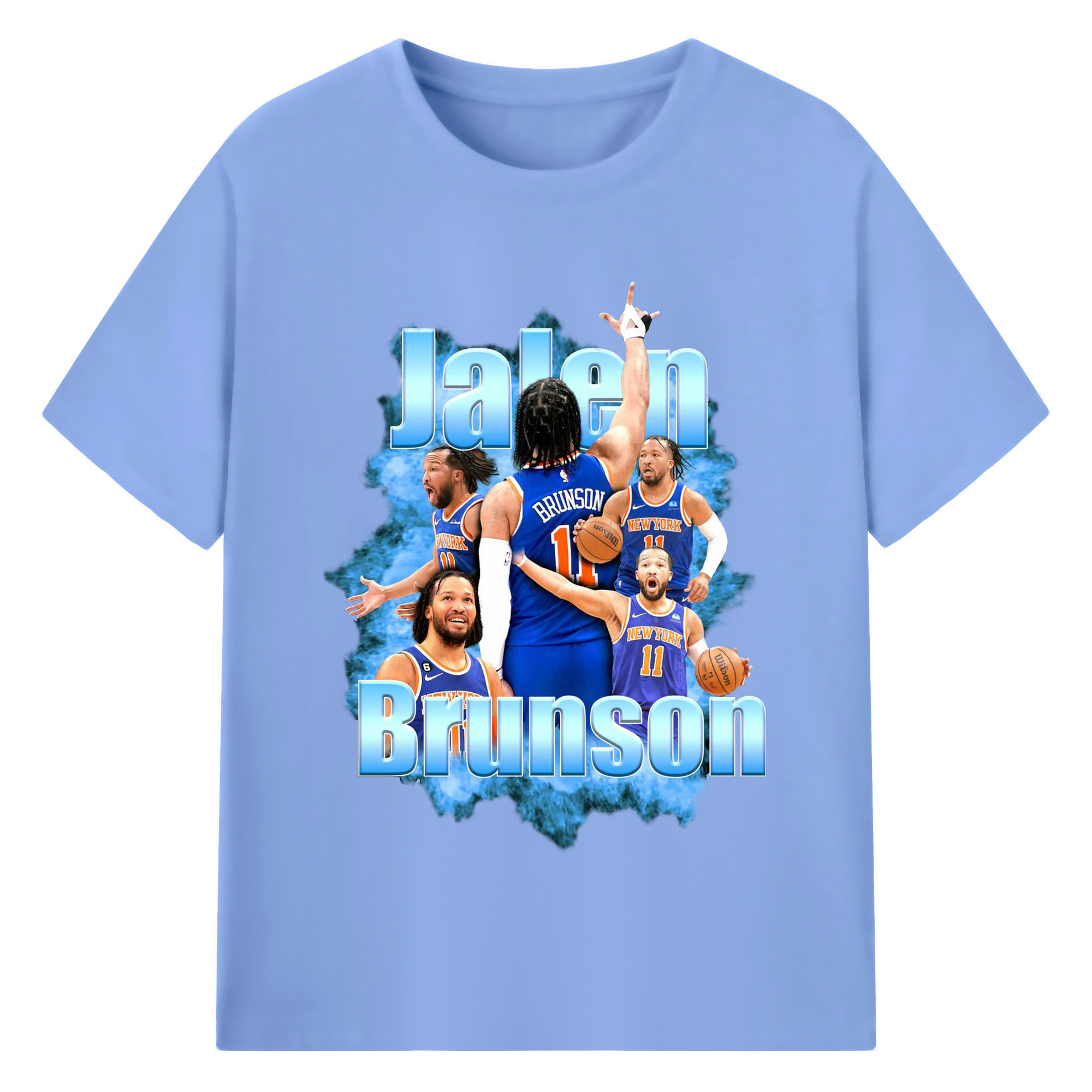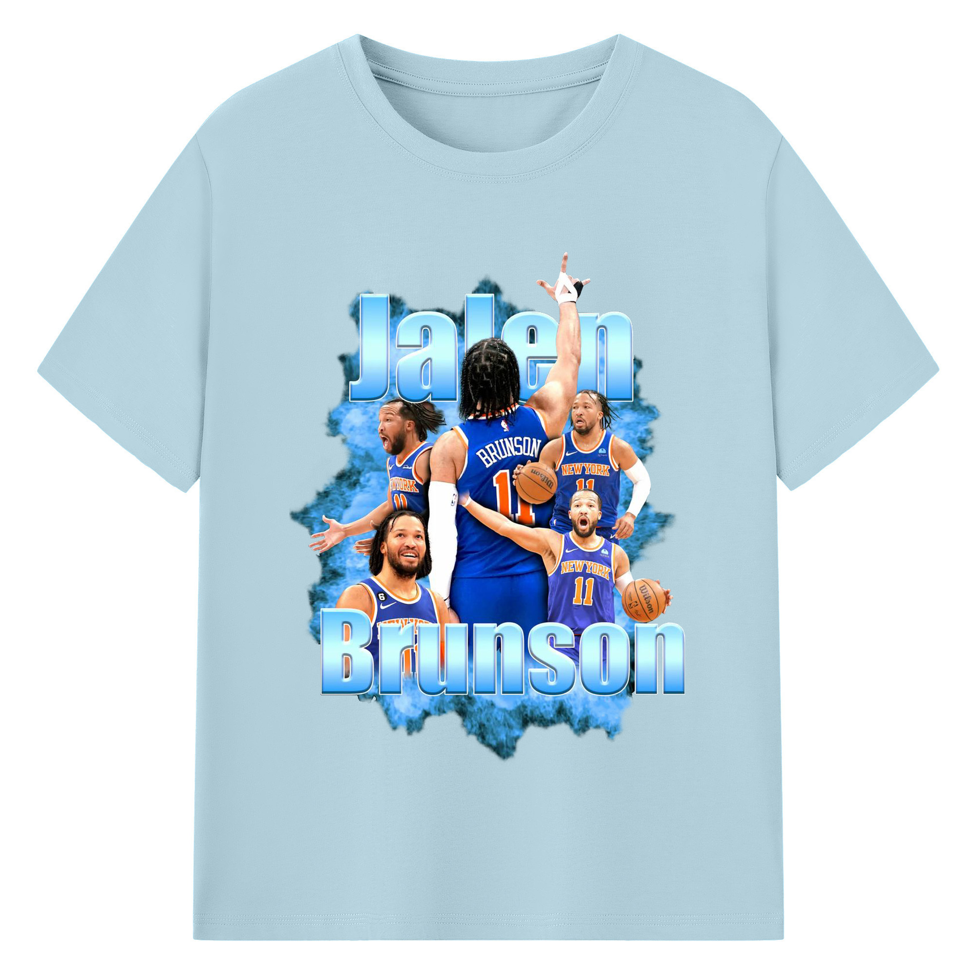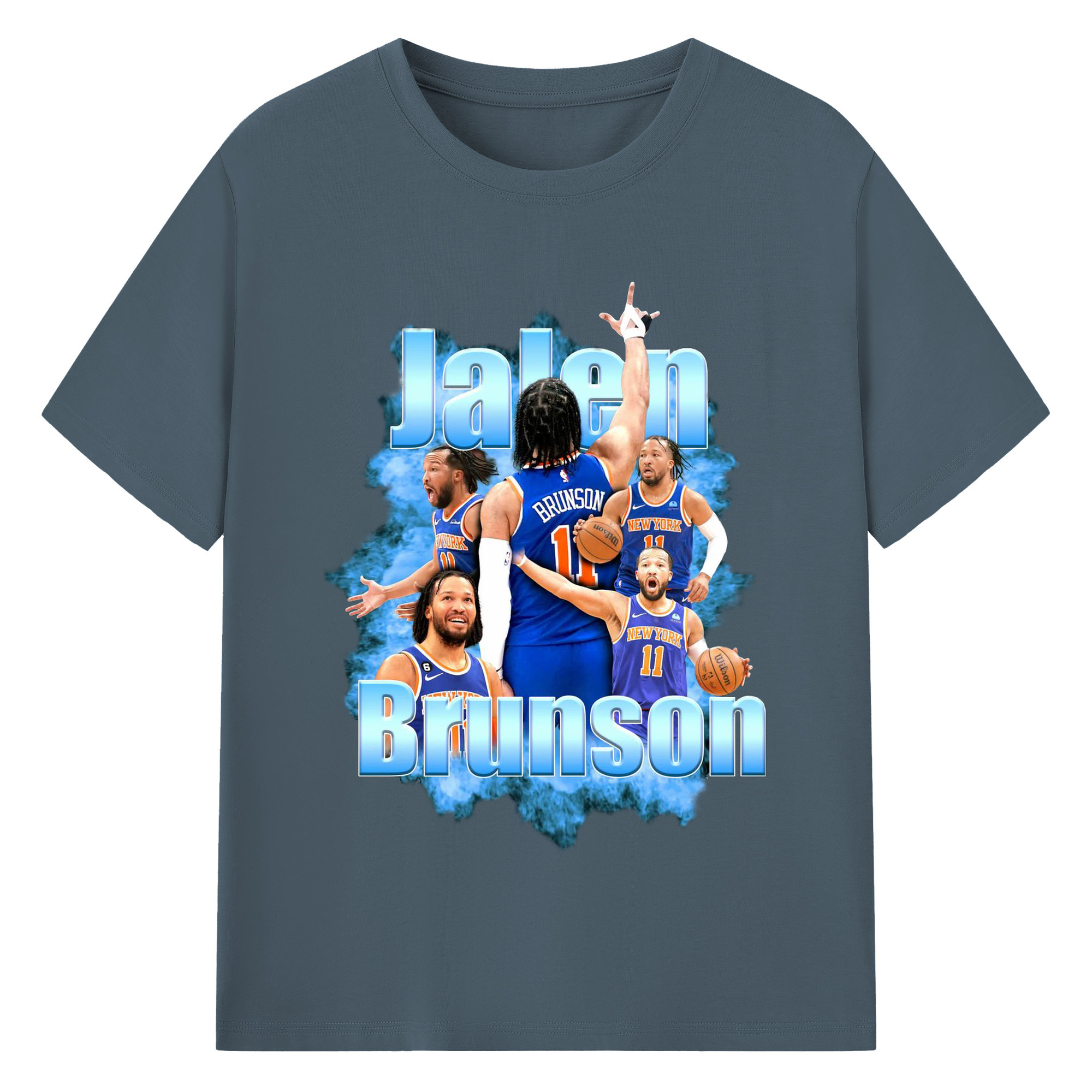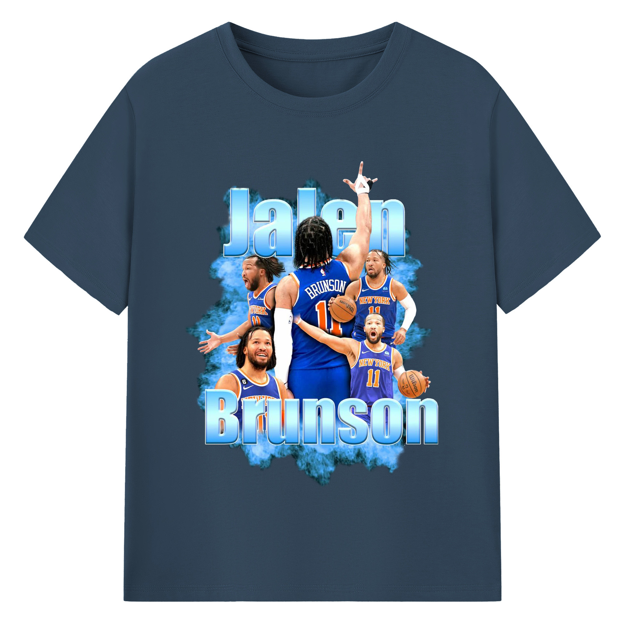 Jalen Brunson Blue Smoke Graphic Shirt - 180g Cotton T-Shirt With Front Heat Transfer Print – Soft, Lightweight, Fitted Design – Comfortable Casual Wear For Sports & Everyday Use