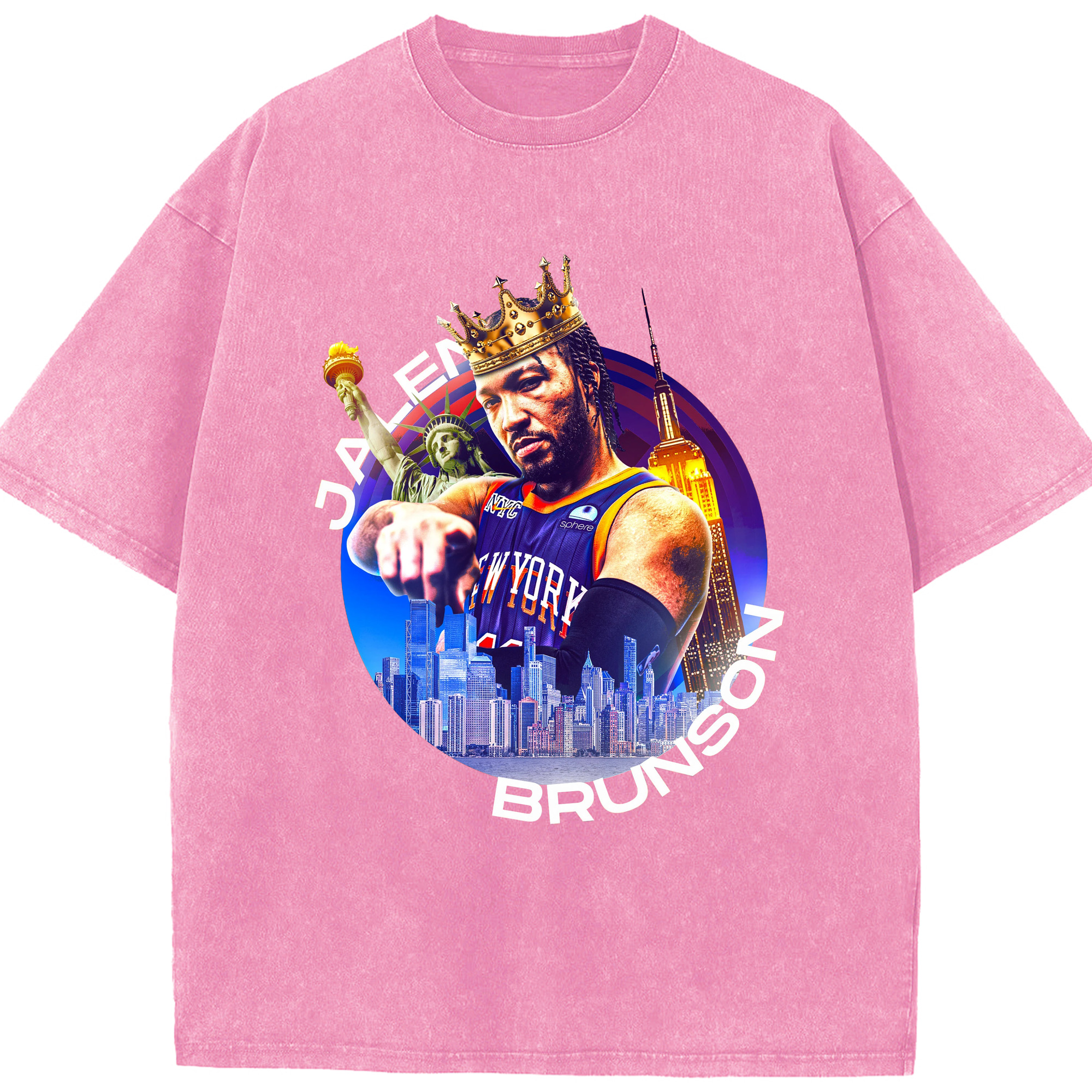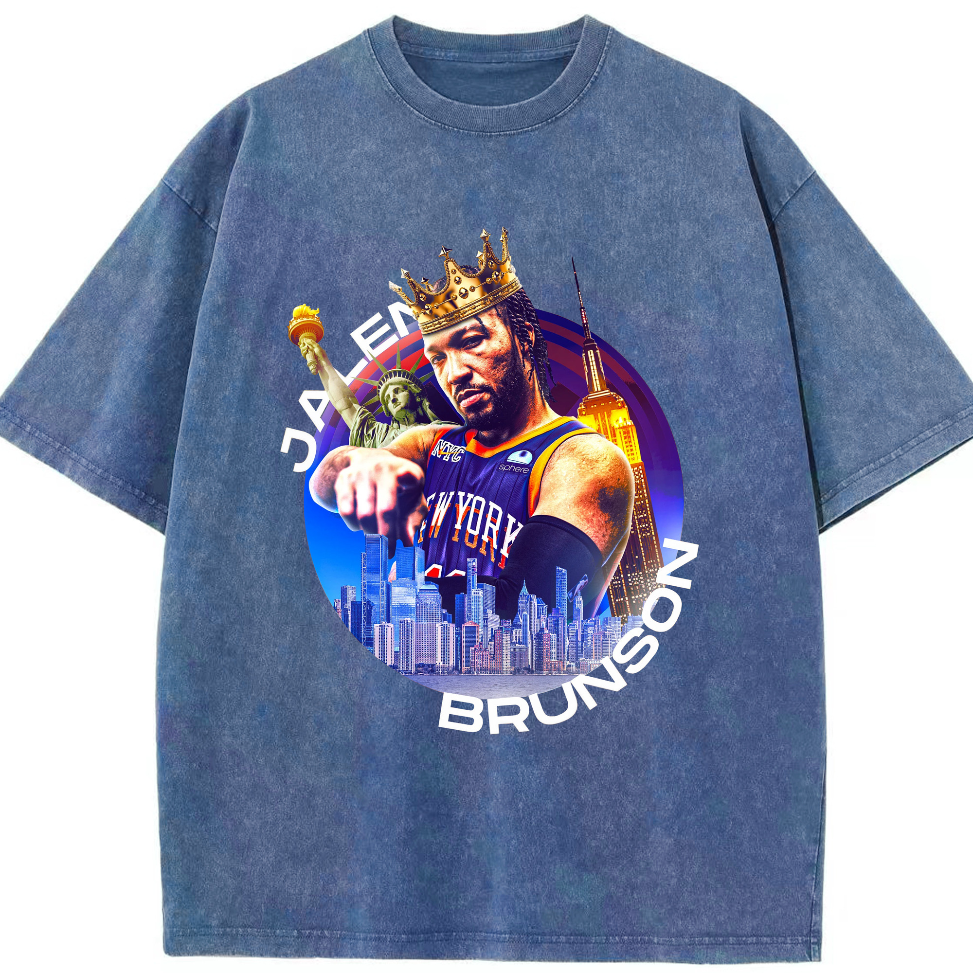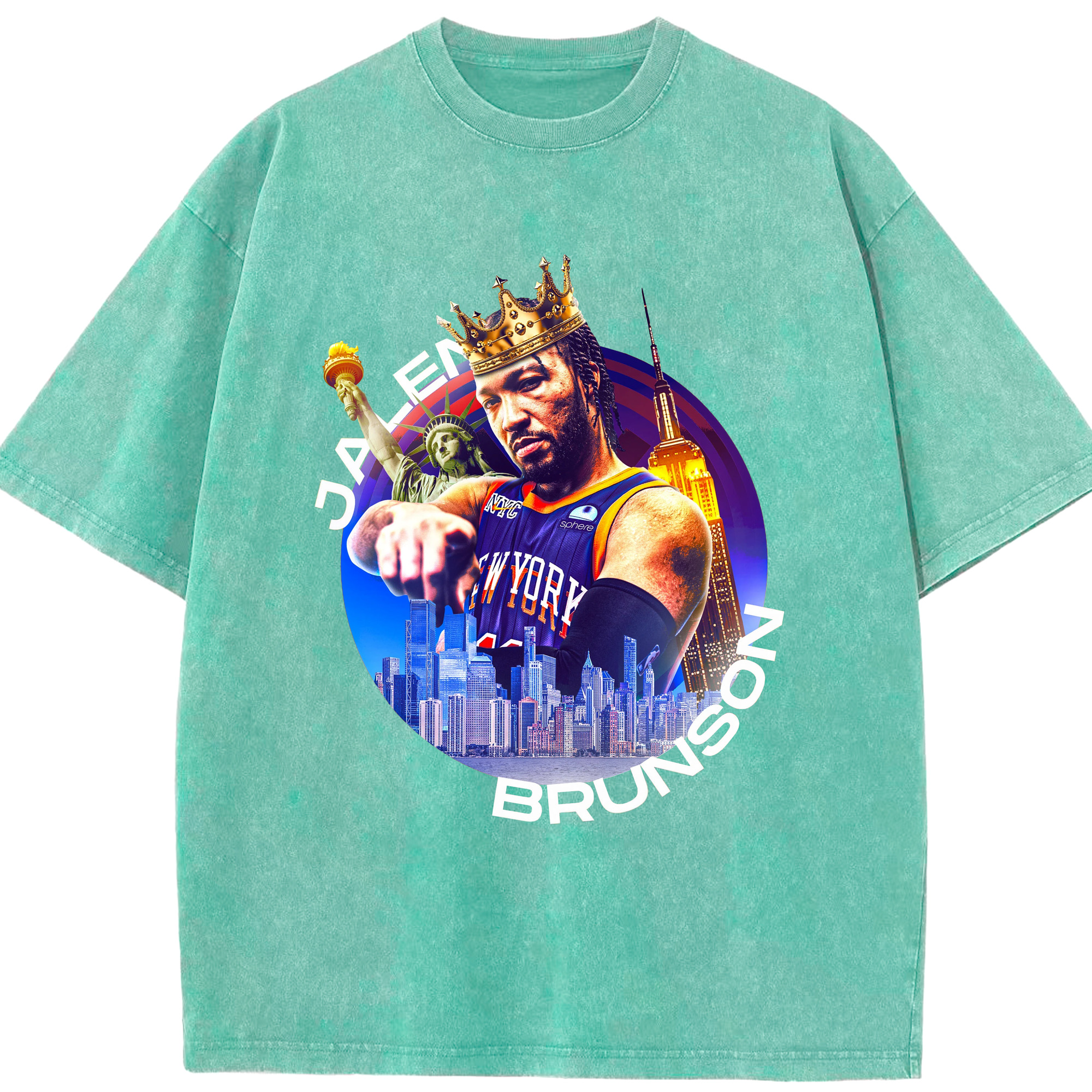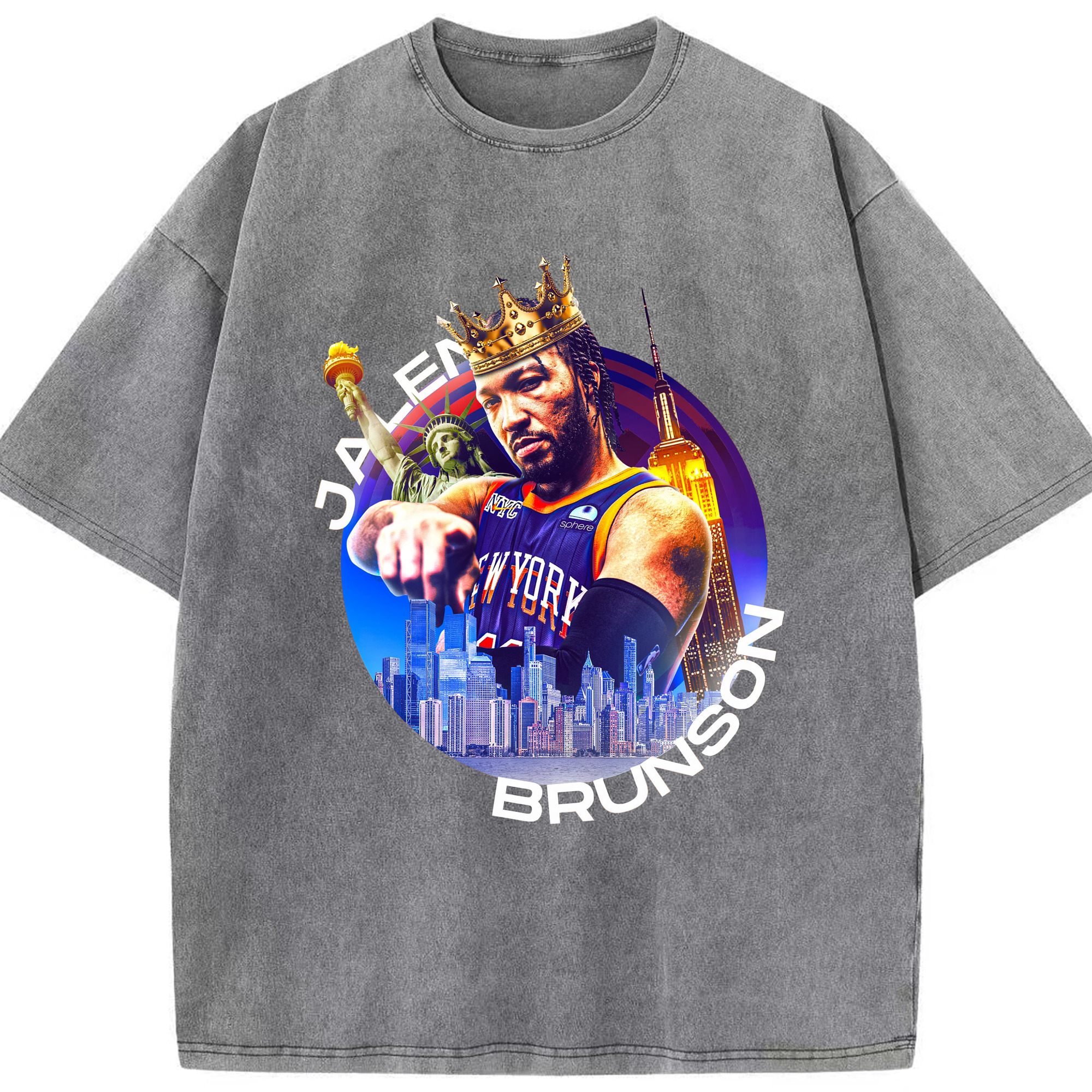 Jalen Brunson King of the New York Knicks Image Shirt - Washed Vintage Look 230g Cotton Oversized T-Shirt With Front Heat Transfer Print – Soft, Lightweight, Stylish Fit – Comfortable Casual Wear For Sports & Everyday Use