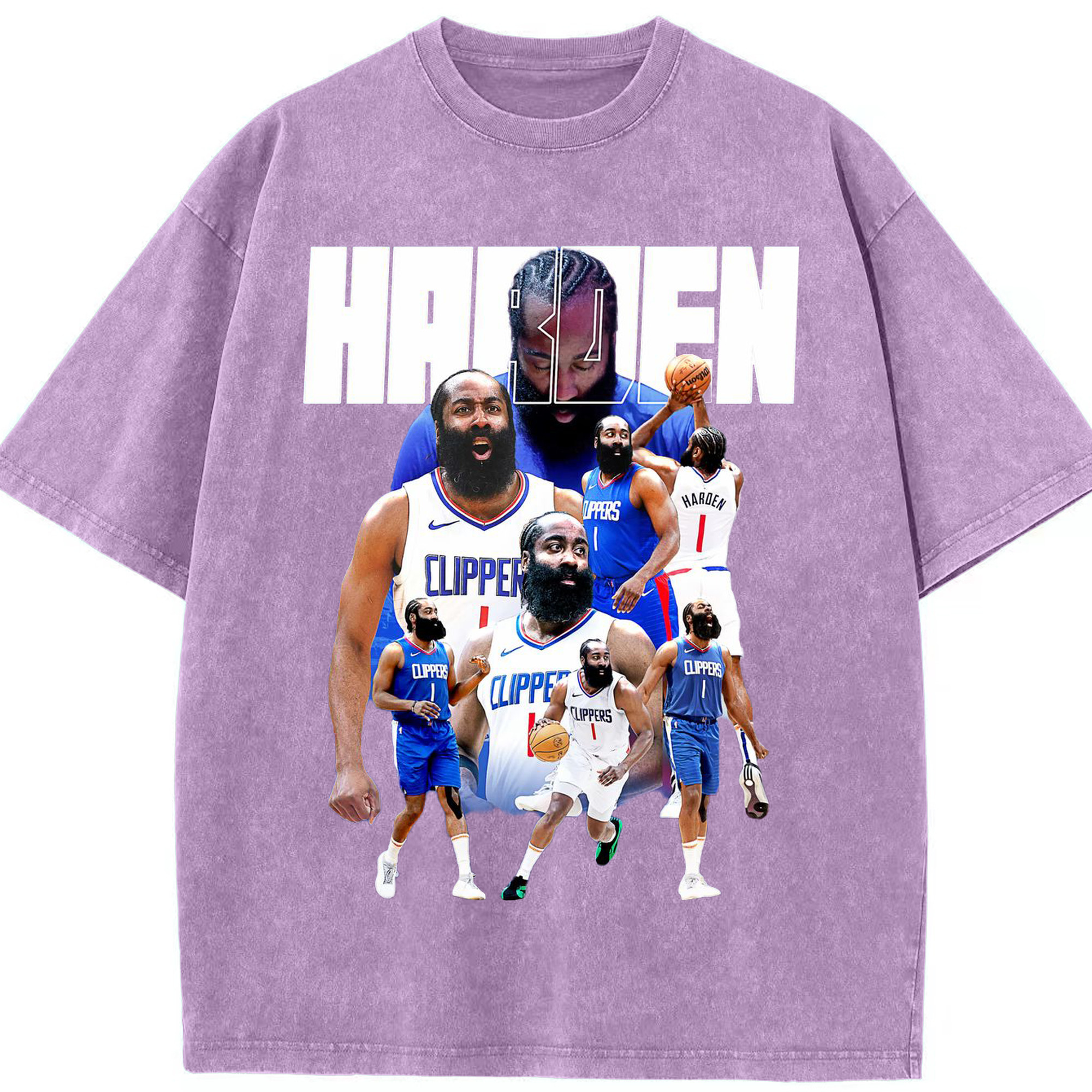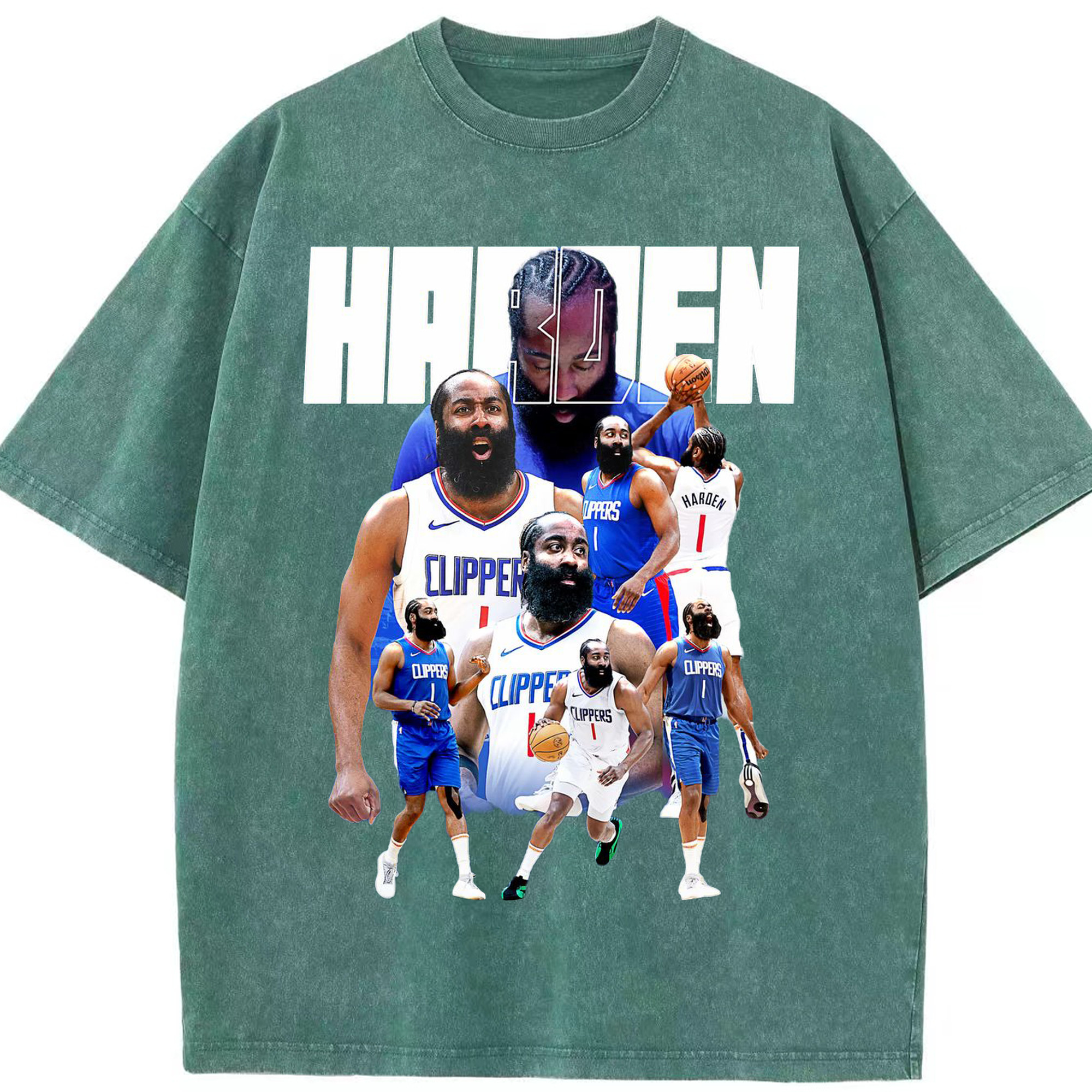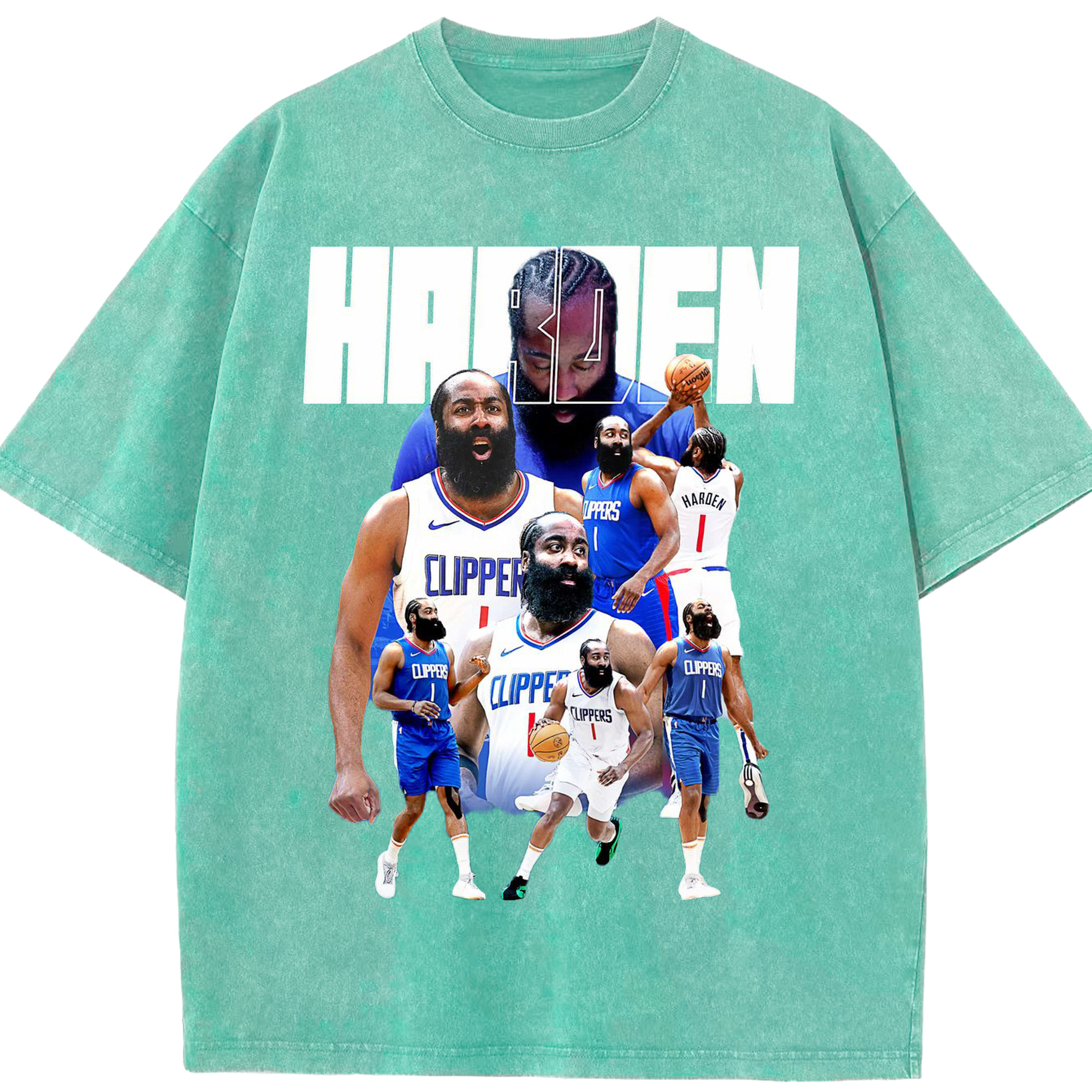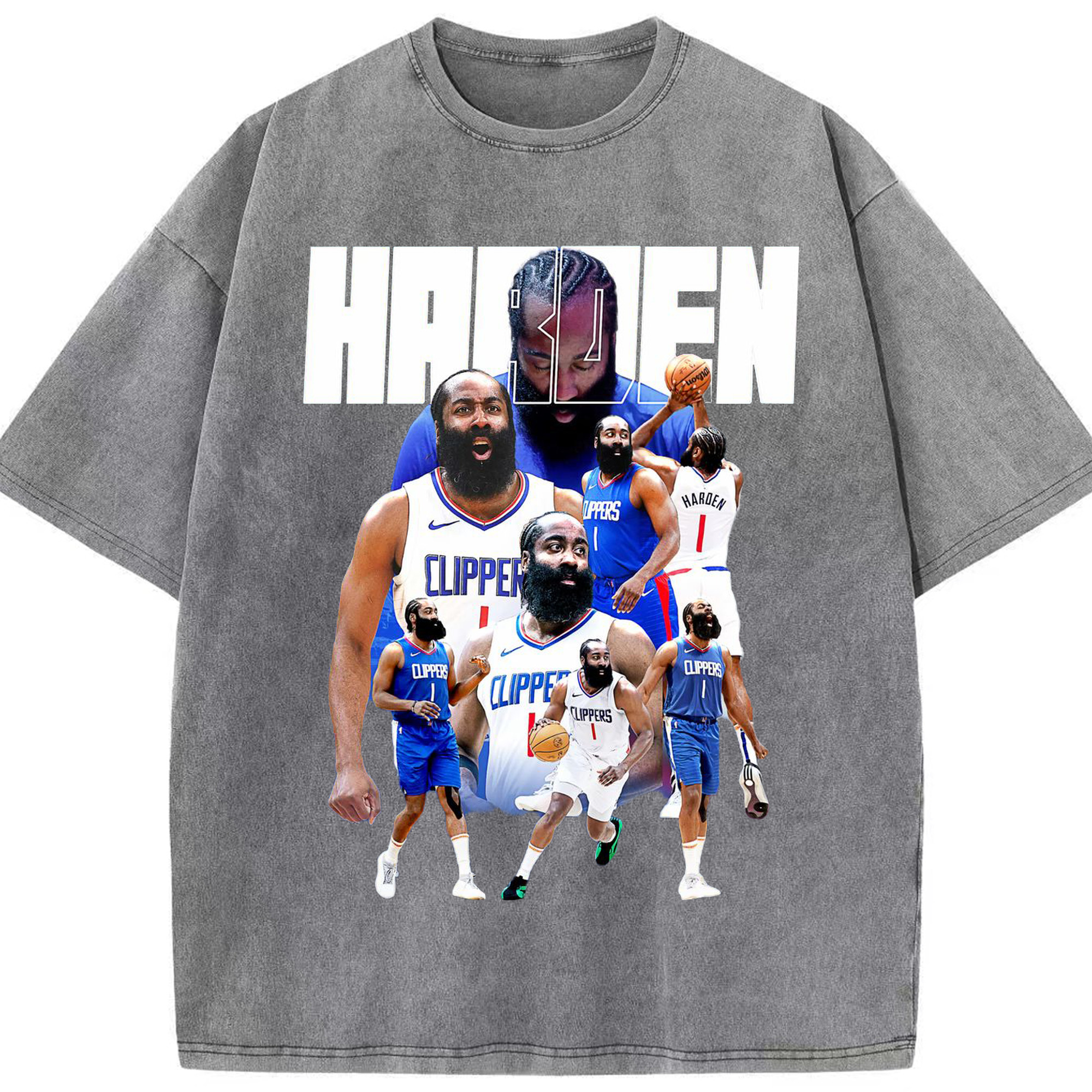 James Harden #1 LA Clippers Shirt - Washed Vintage Look 230g Cotton Oversized T-Shirt With Front Heat Transfer Print – Soft, Lightweight, Stylish Fit – Comfortable Casual Wear For Sports & Everyday Use