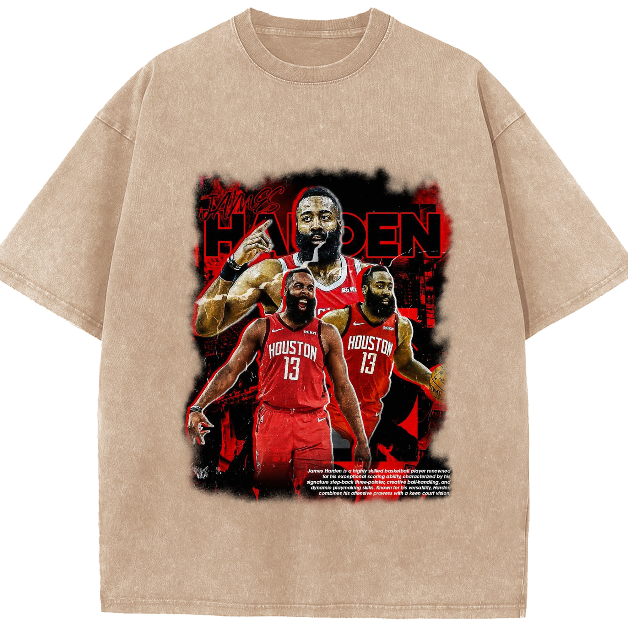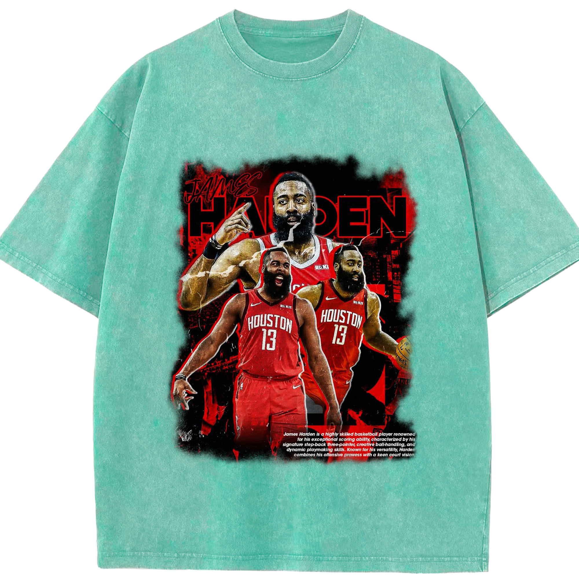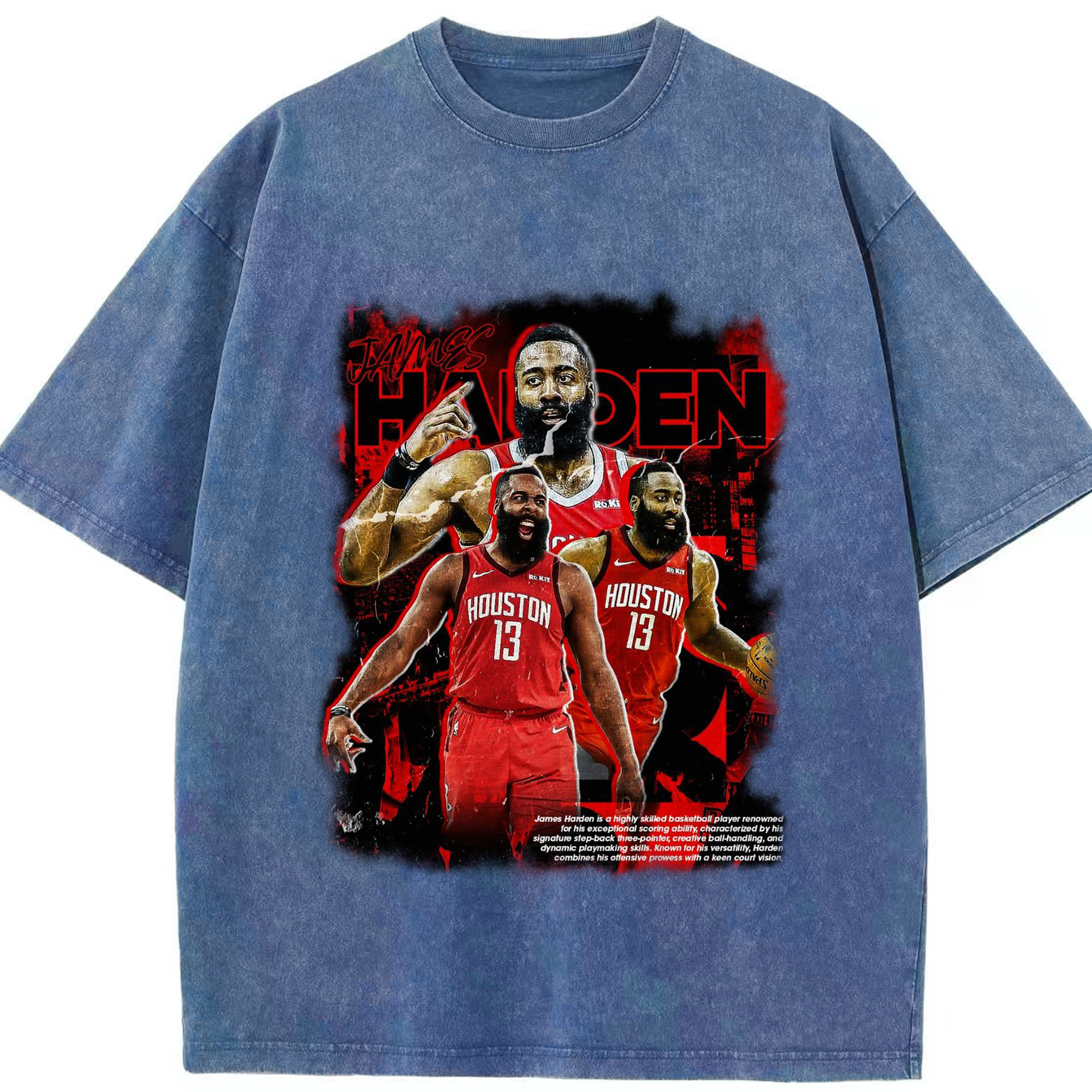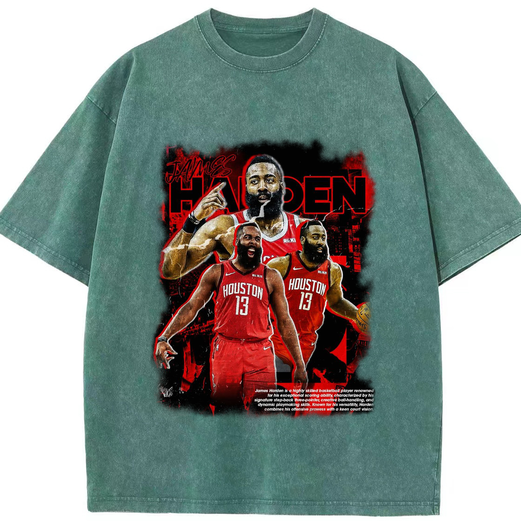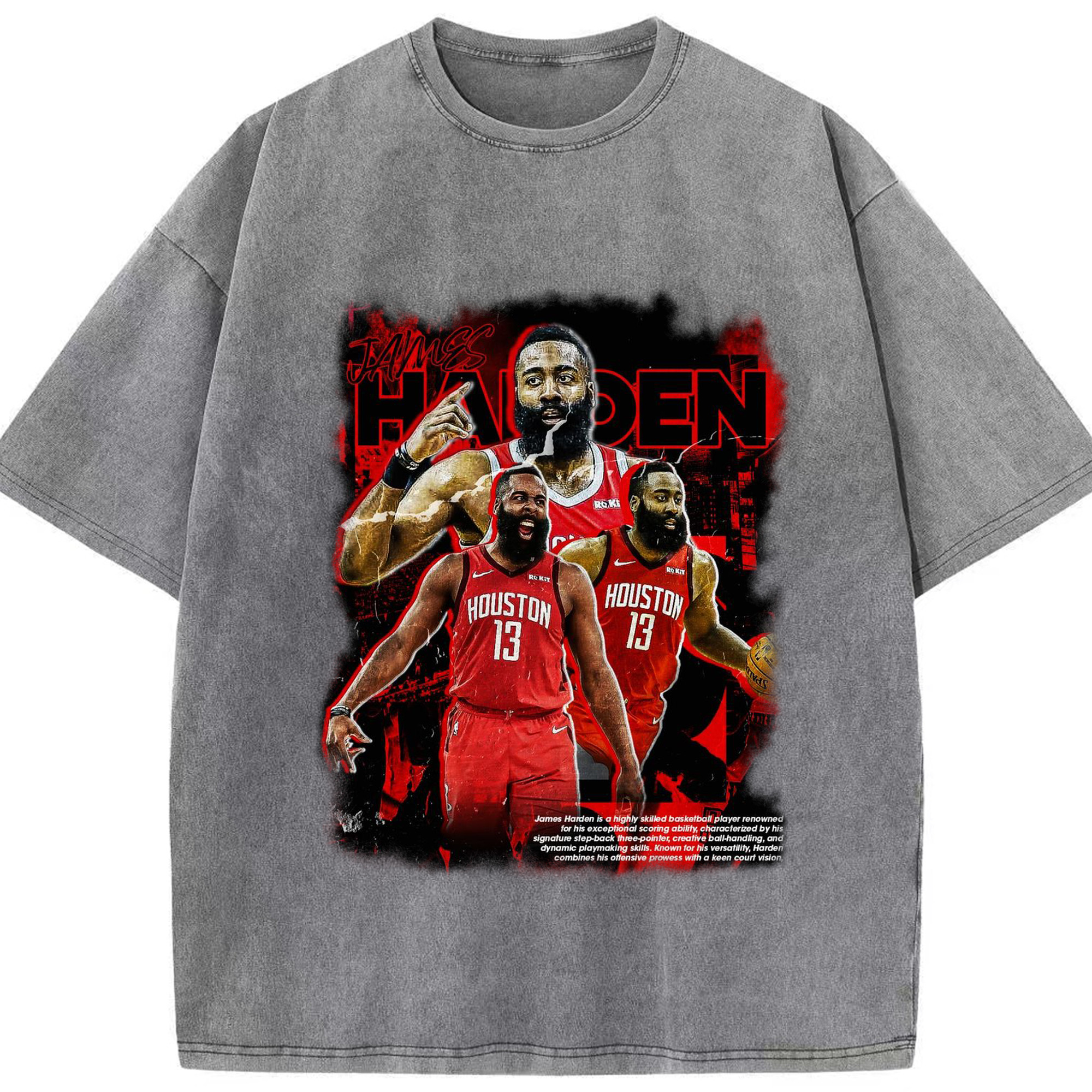 James Harden #13 Houston Rockets MVP Shirt - Washed Vintage Look 230g Cotton Oversized T-Shirt With Front Heat Transfer Print – Soft, Lightweight, Stylish Fit – Comfortable Casual Wear For Sports & Everyday Use