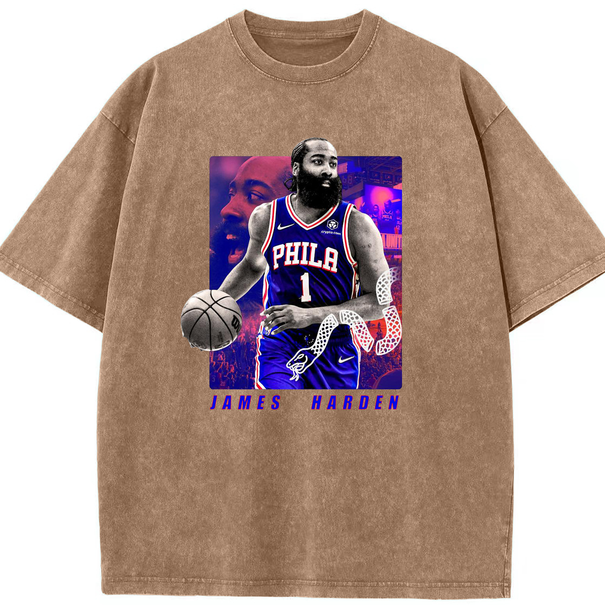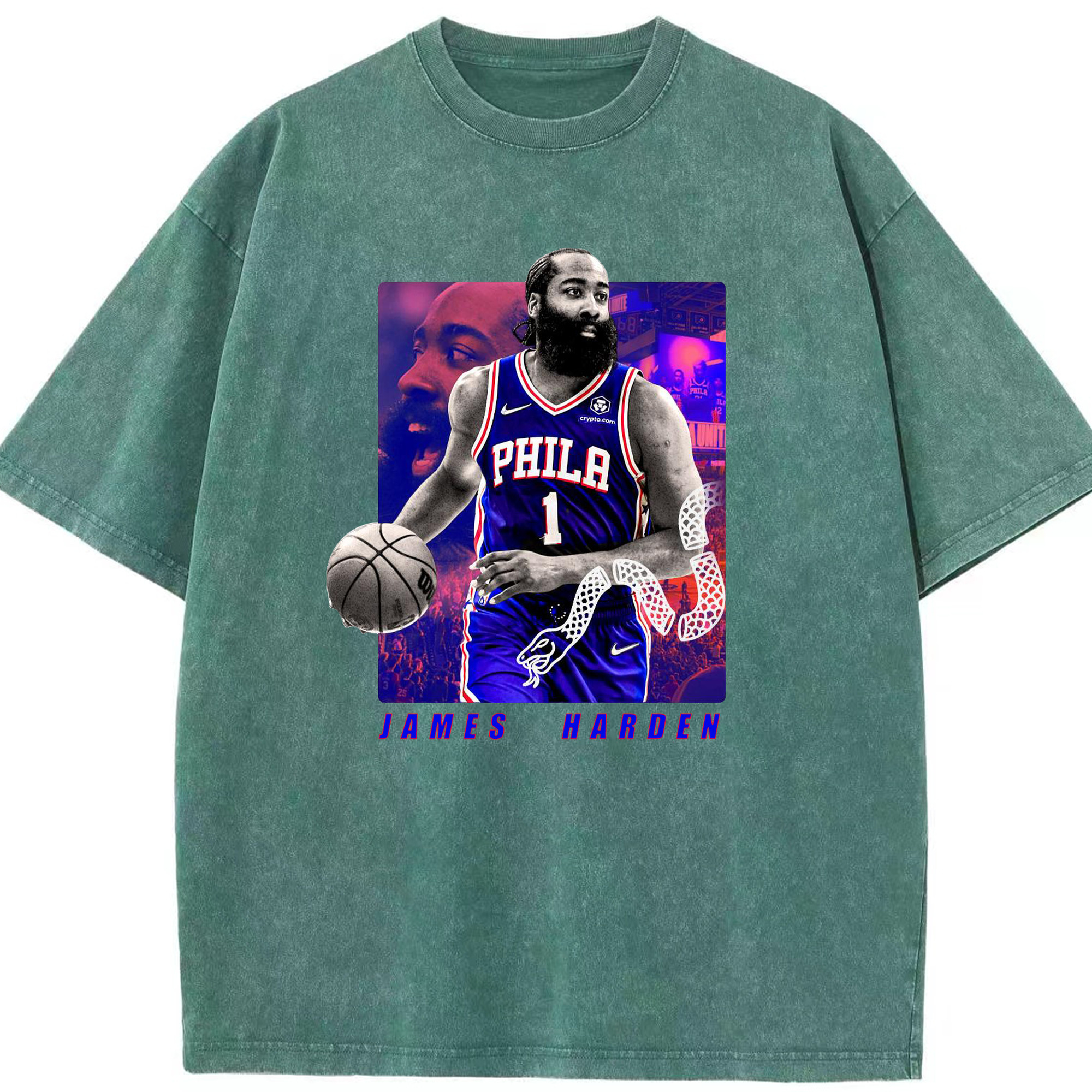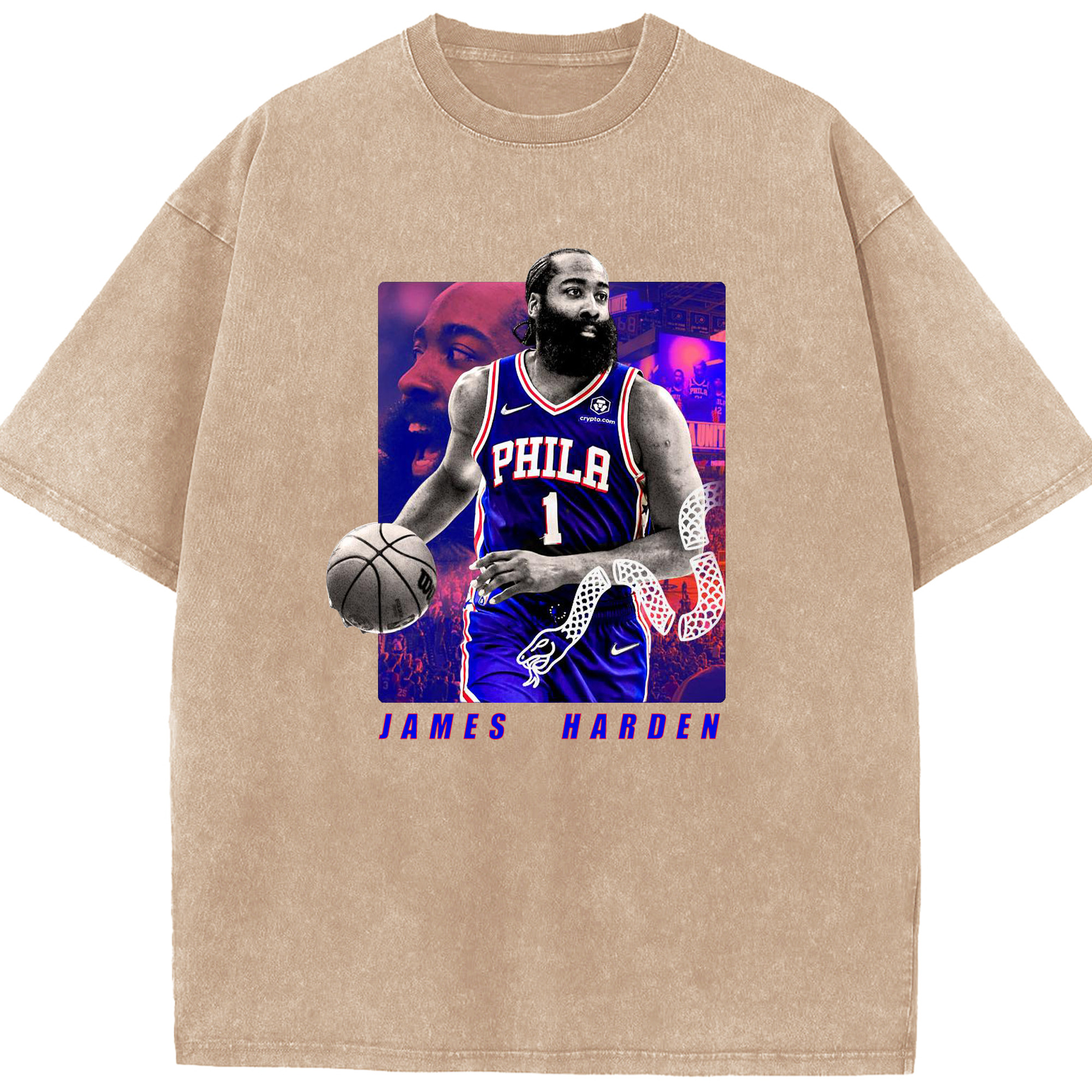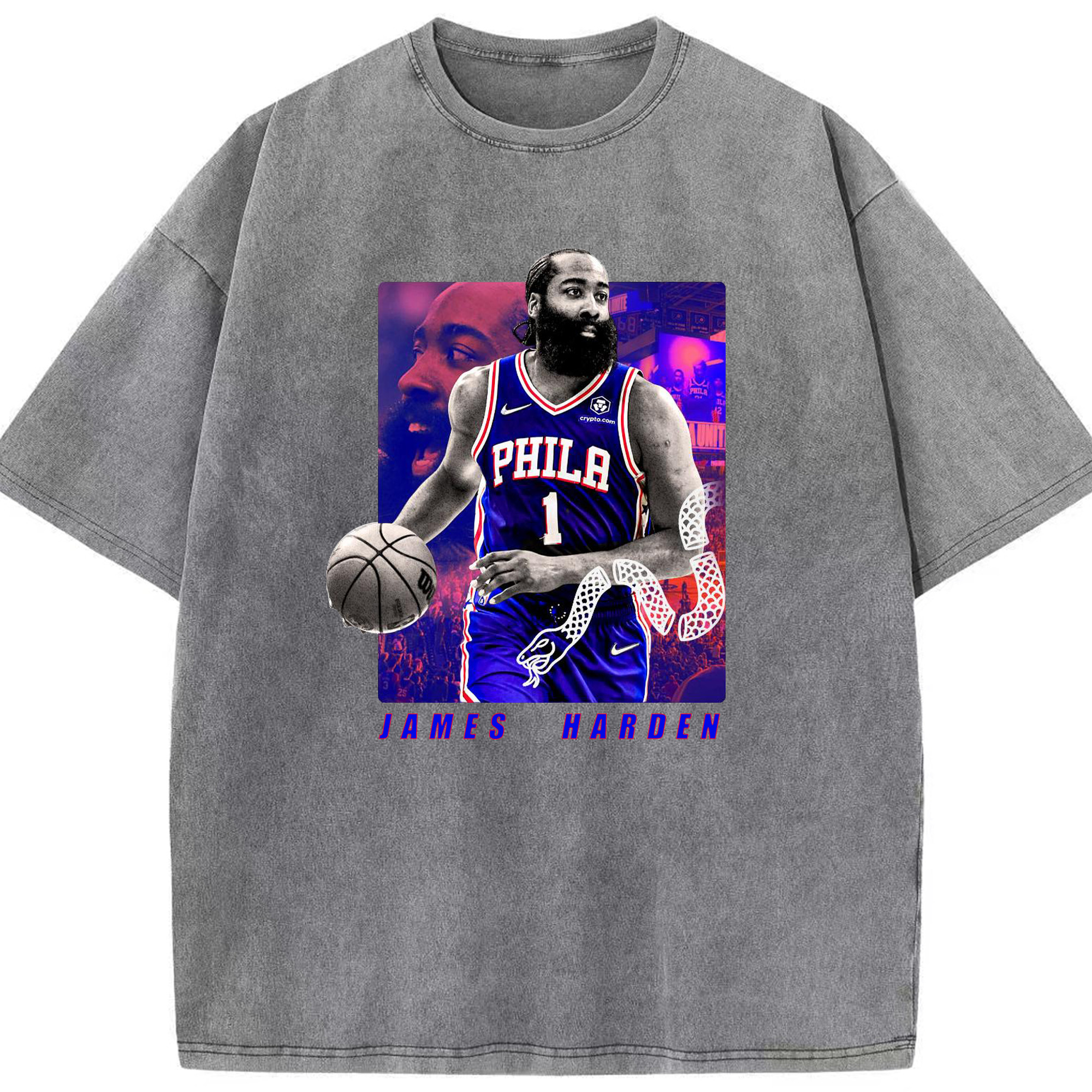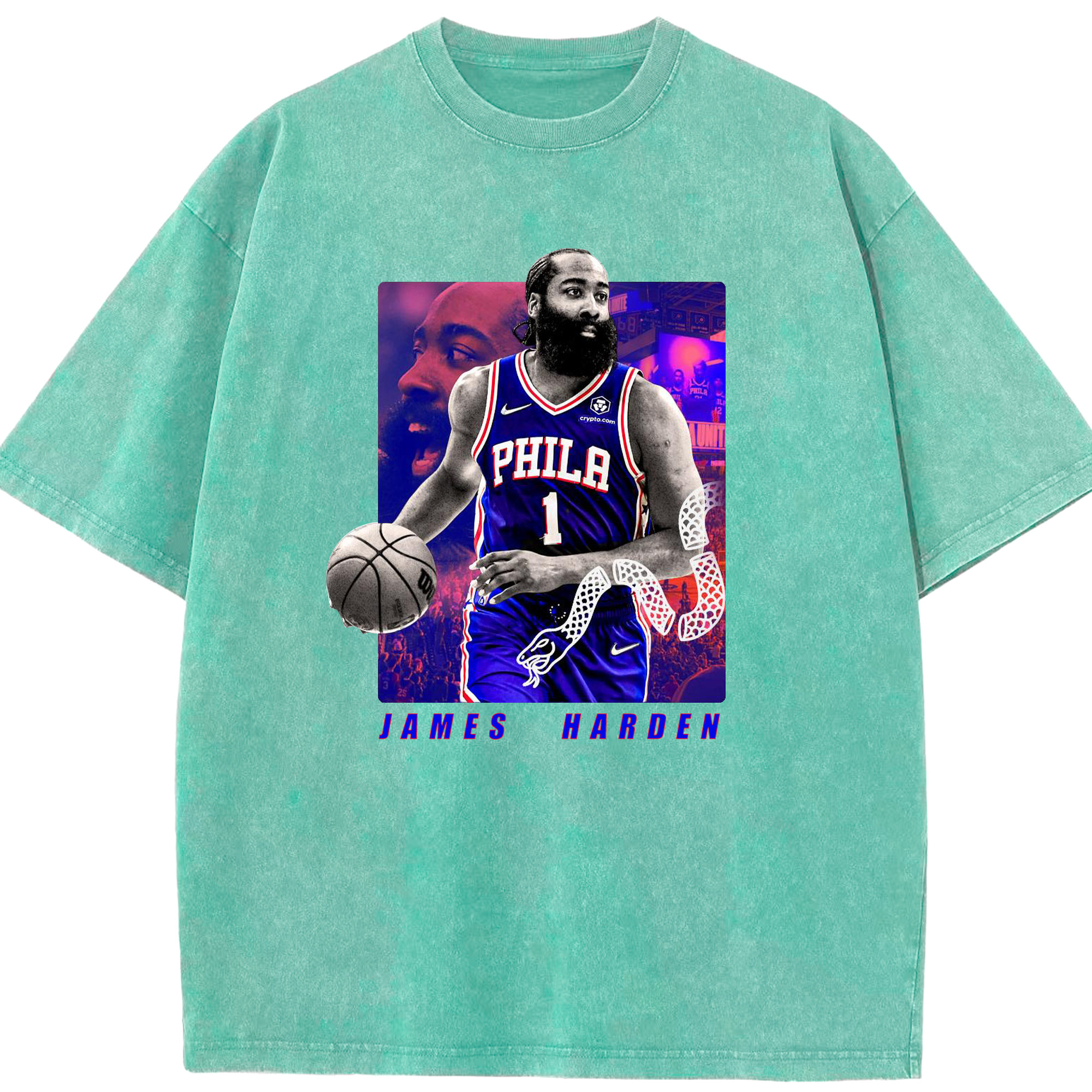 James Harden 76ers #1 White Mamba Art Shirt - Washed Vintage Look 230g Cotton Oversized T-Shirt With Front Heat Transfer Print – Soft, Lightweight, Stylish Fit – Comfortable Casual Wear For Sports & Everyday Use